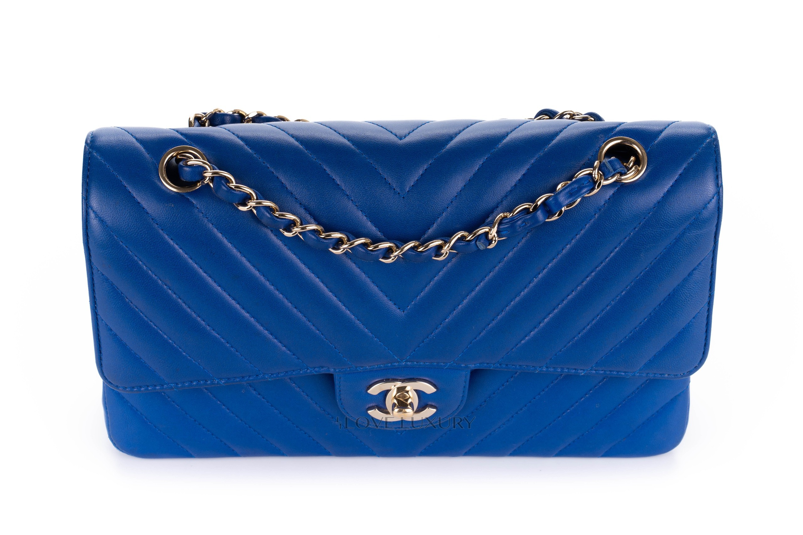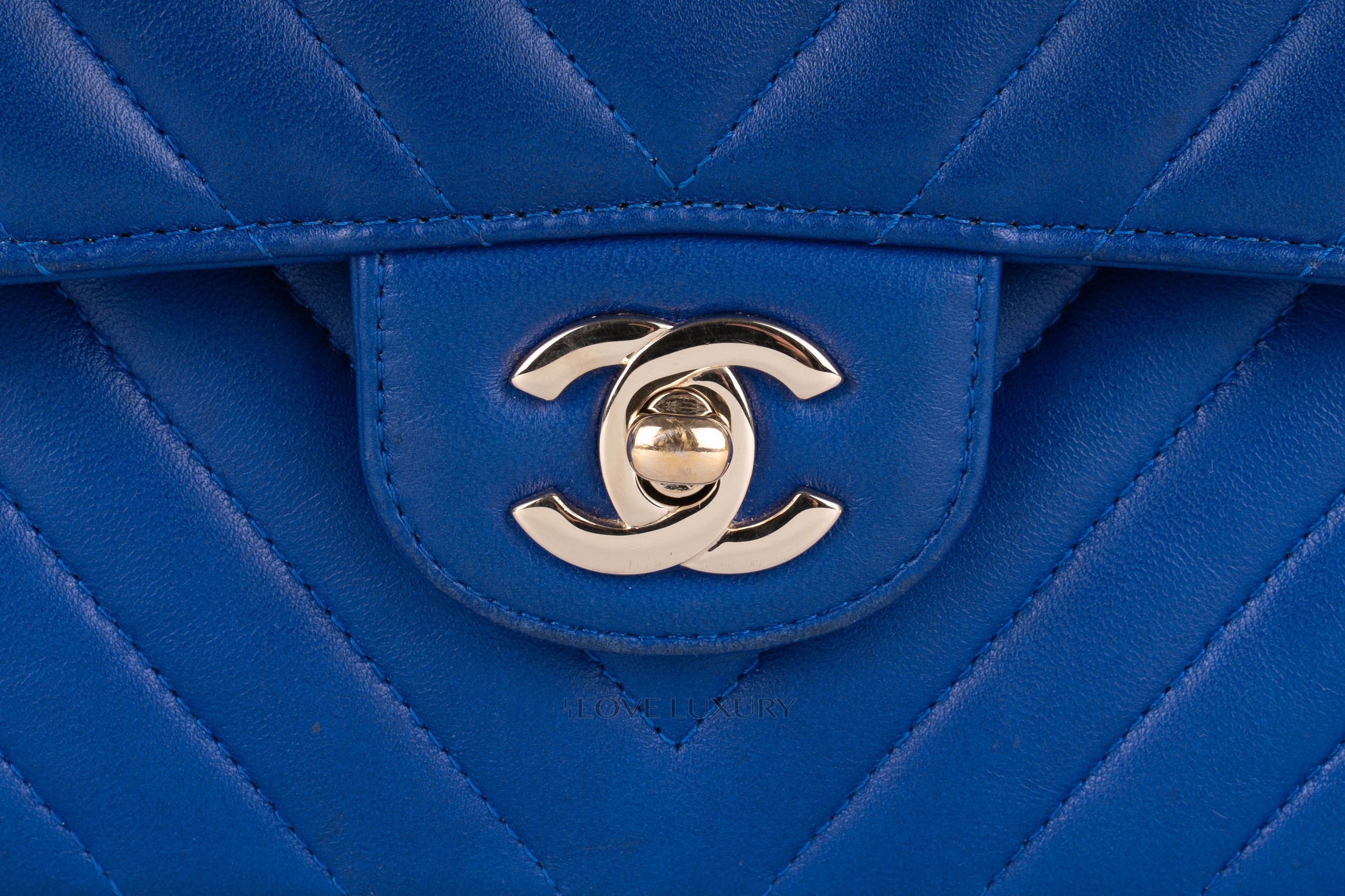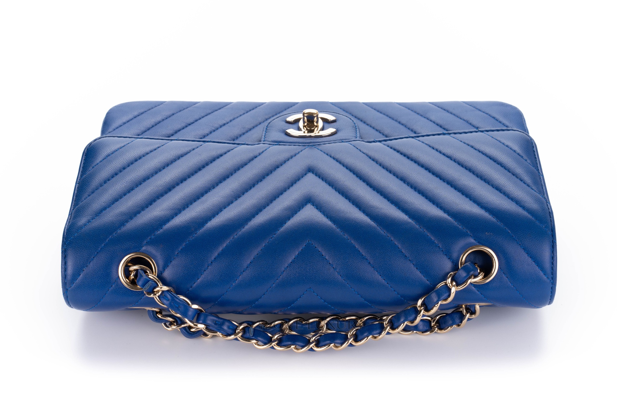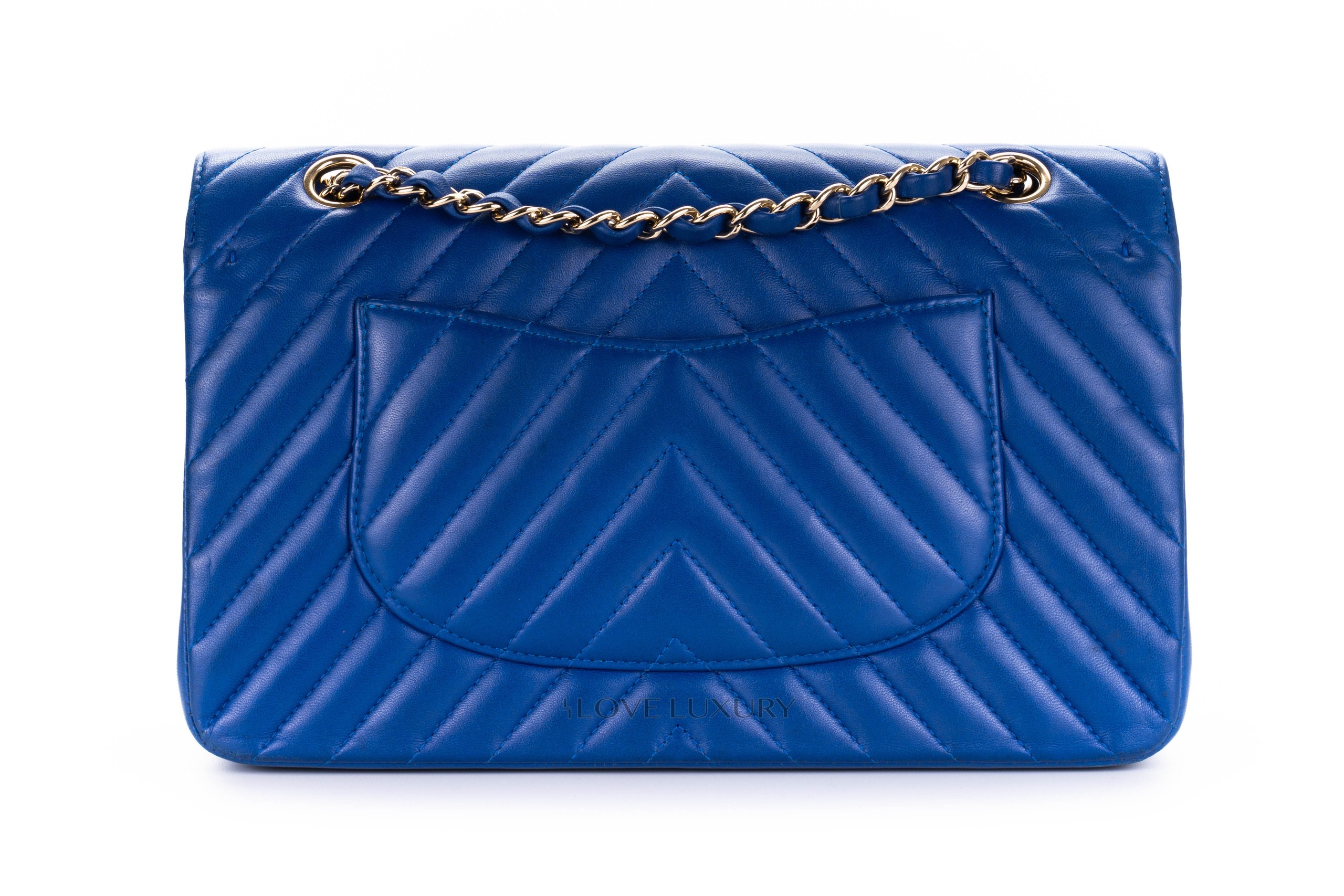 Chanel Medium Classic Flap Royal Bleu Chevron / 24 2017-18 Very Good Pre-loved Condition.