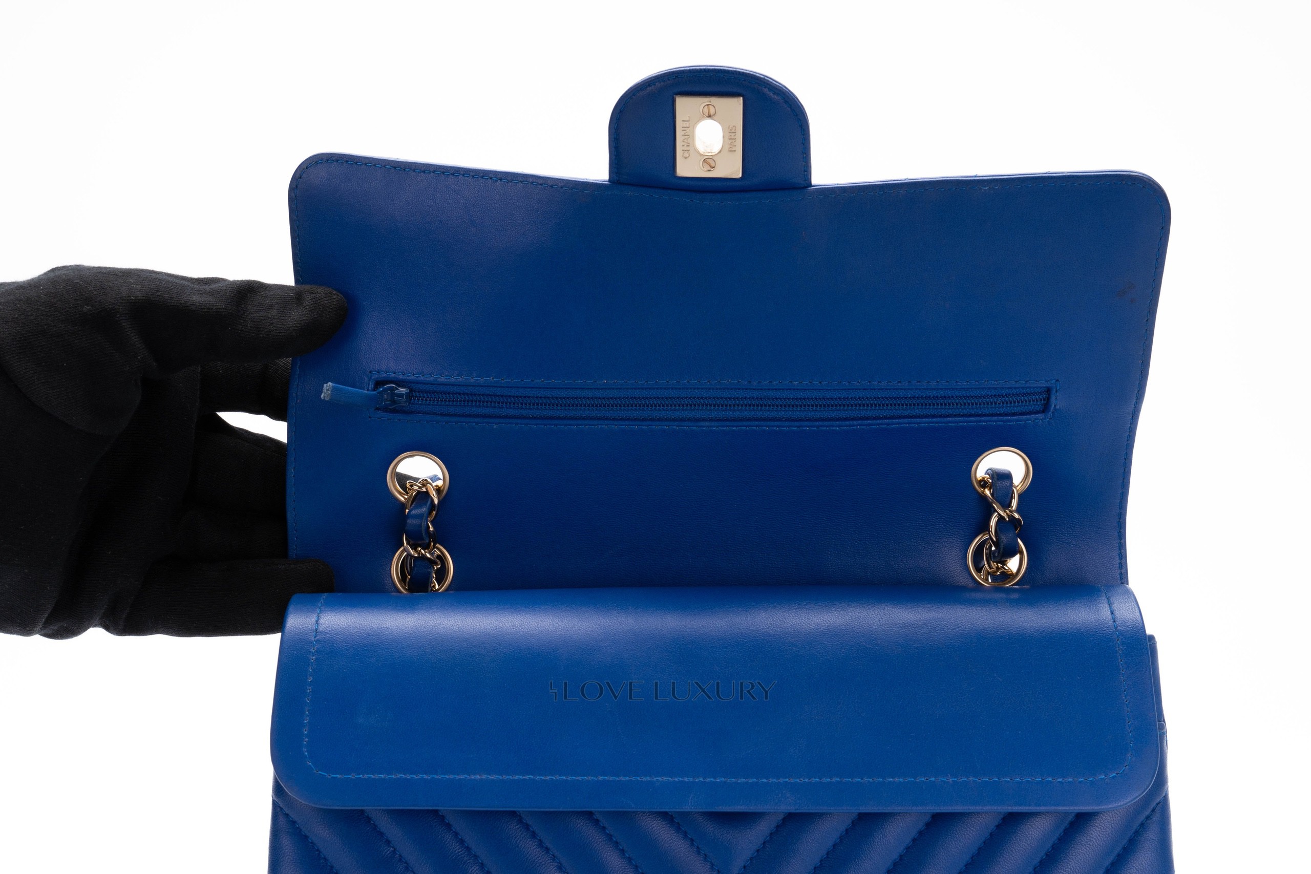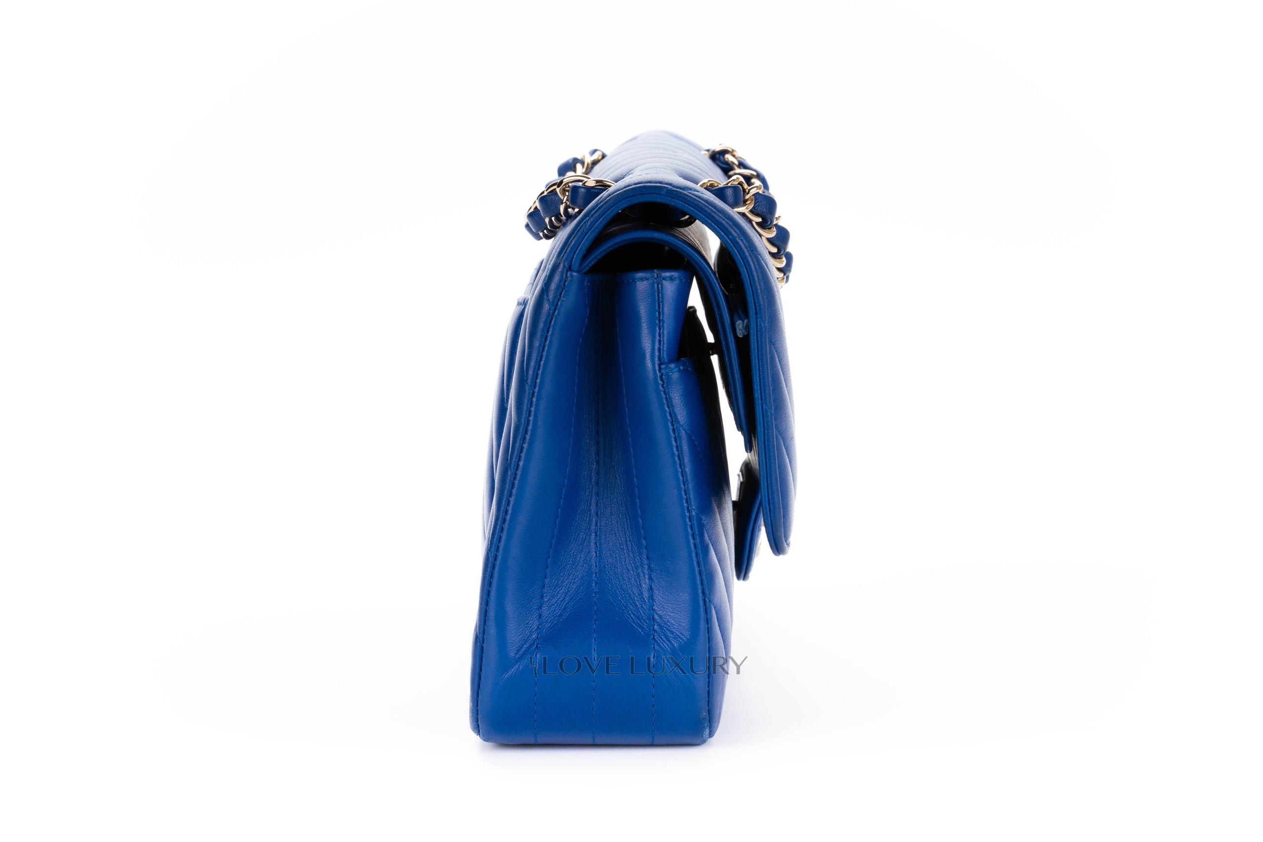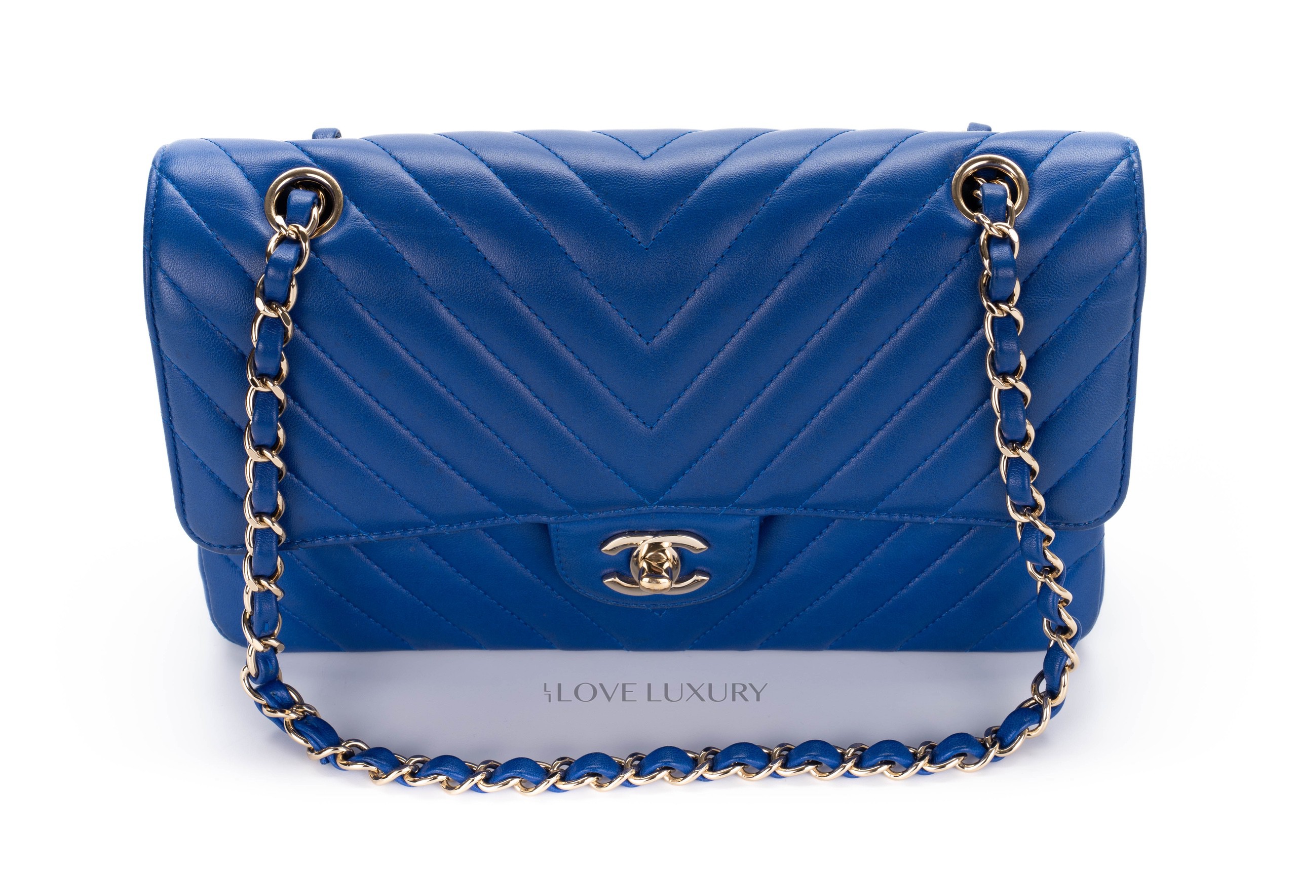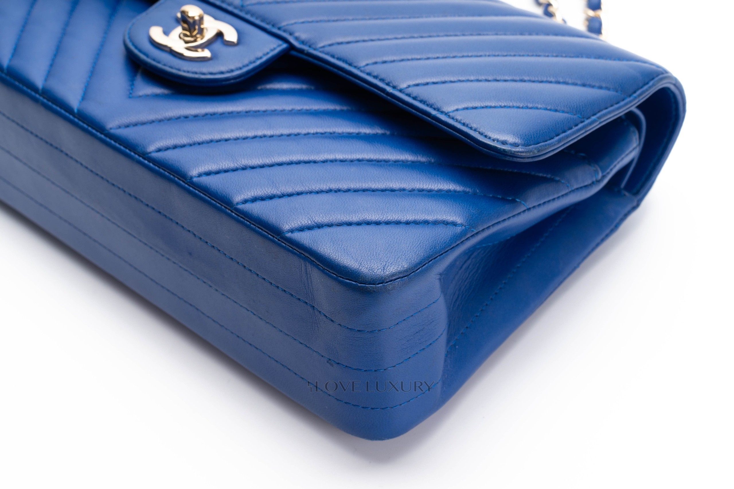 Chanel Medium Classic Flap Royal Bleu Chevron / 24 2017-18 Very Good Pre-loved Condition.