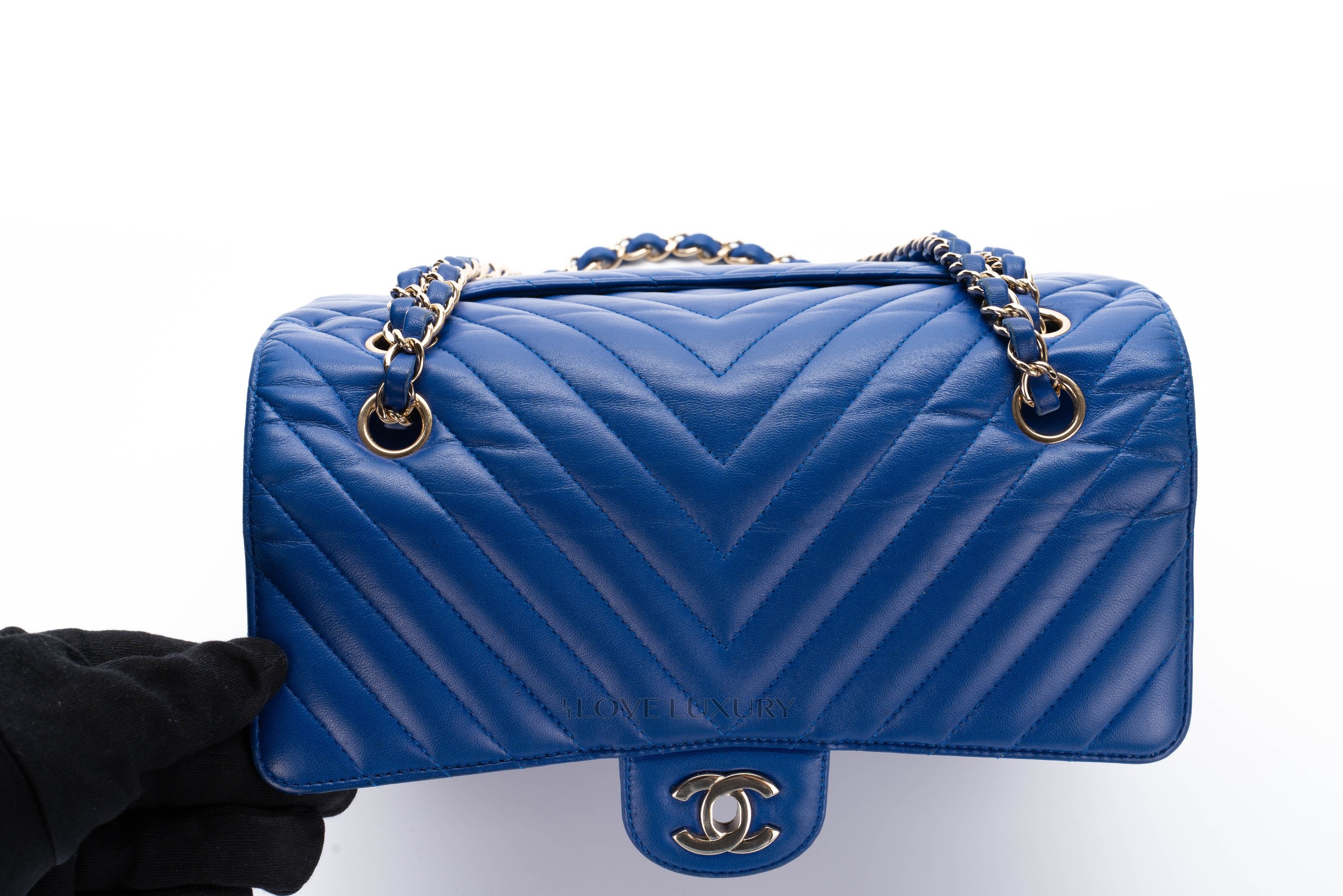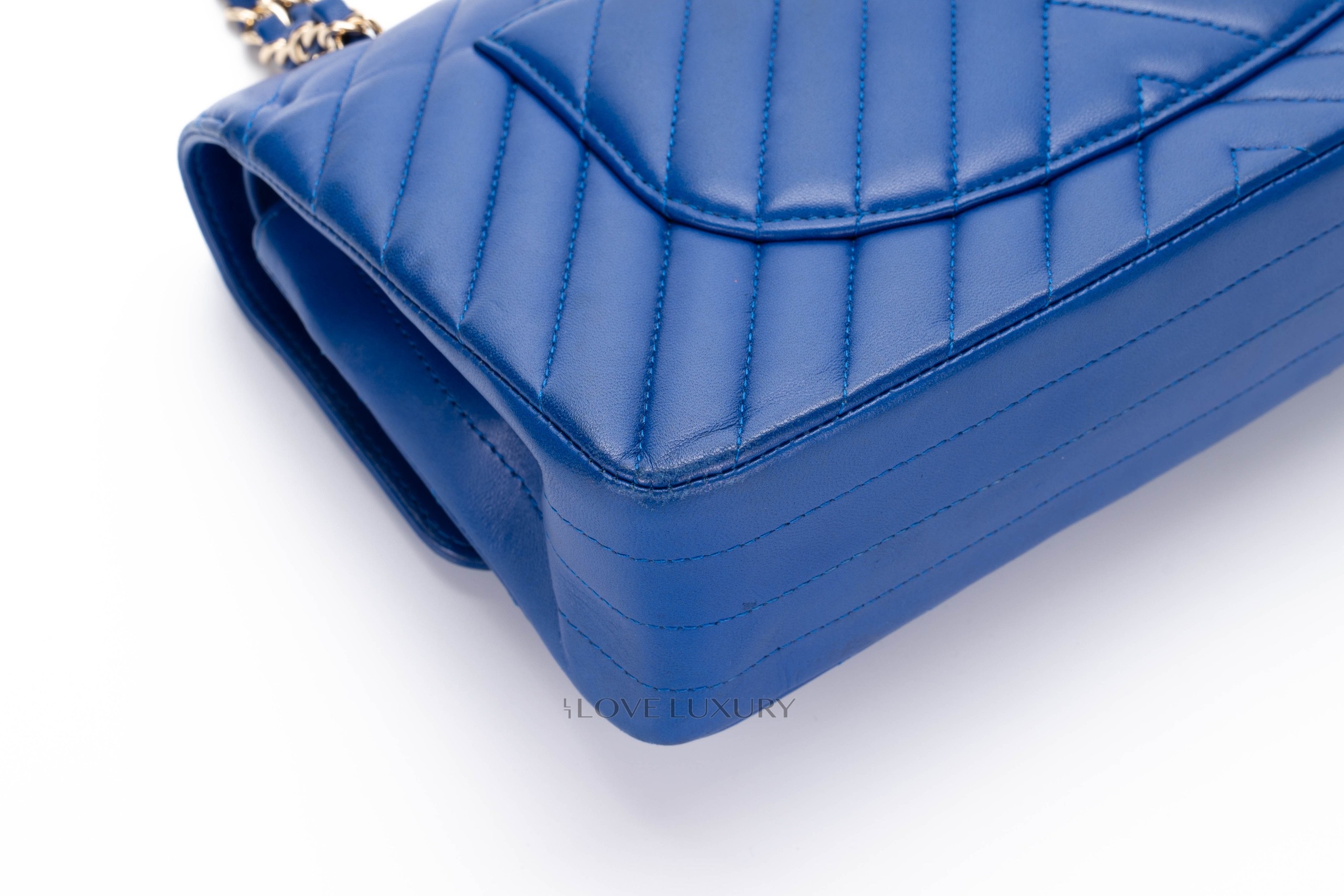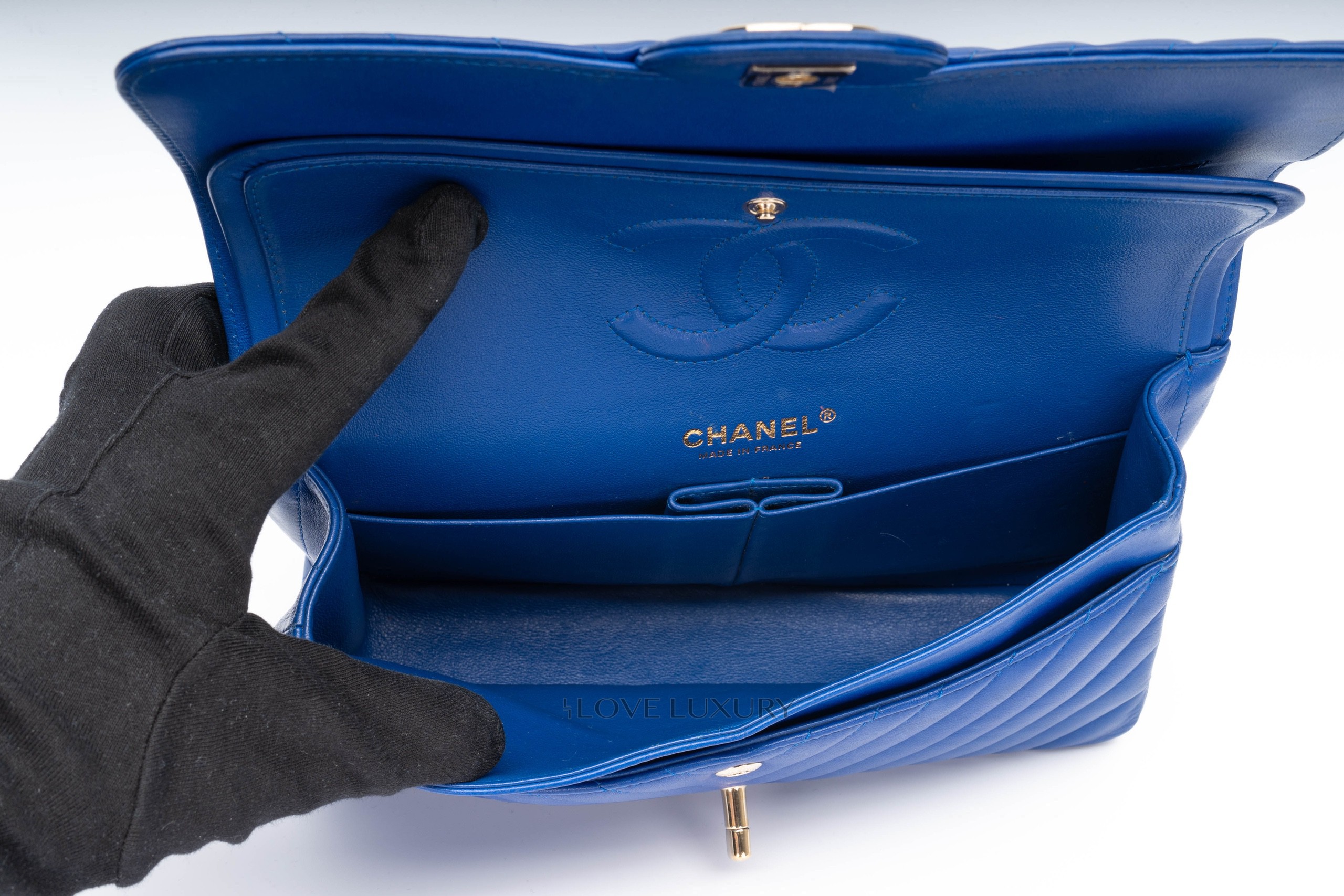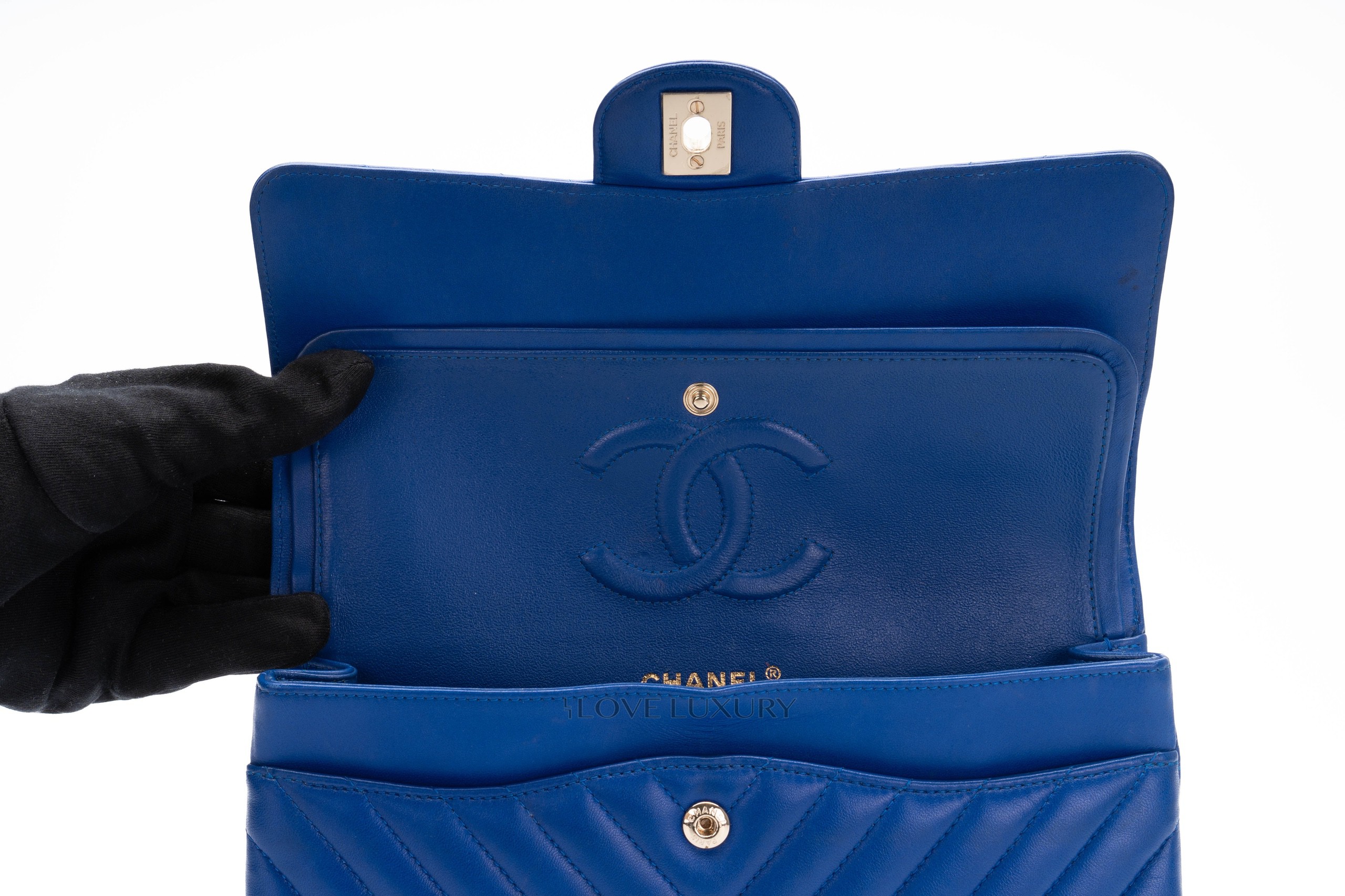 Chanel Medium Classic Flap Royal Bleu Chevron / 24 2017-18 Very Good Pre-loved Condition.