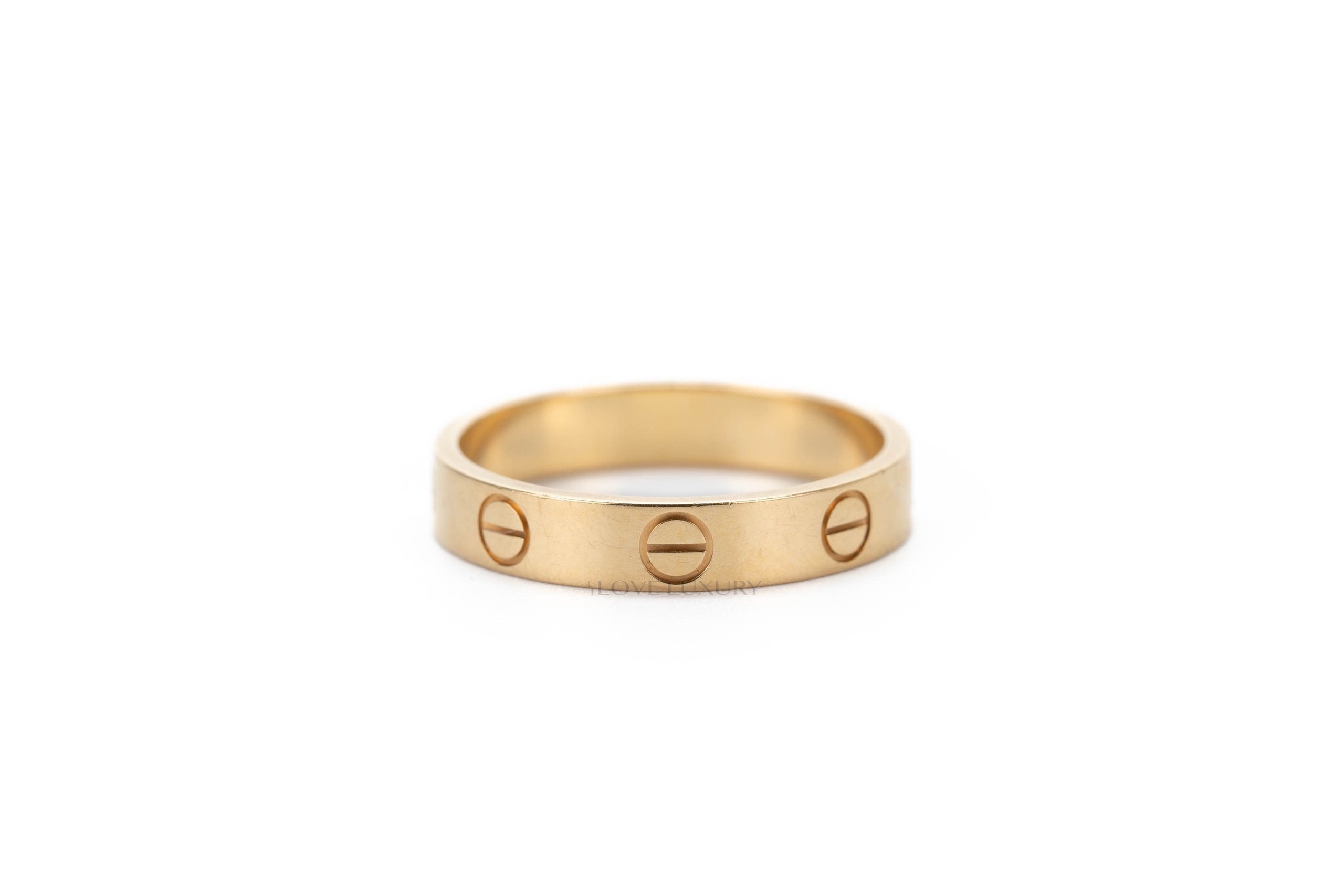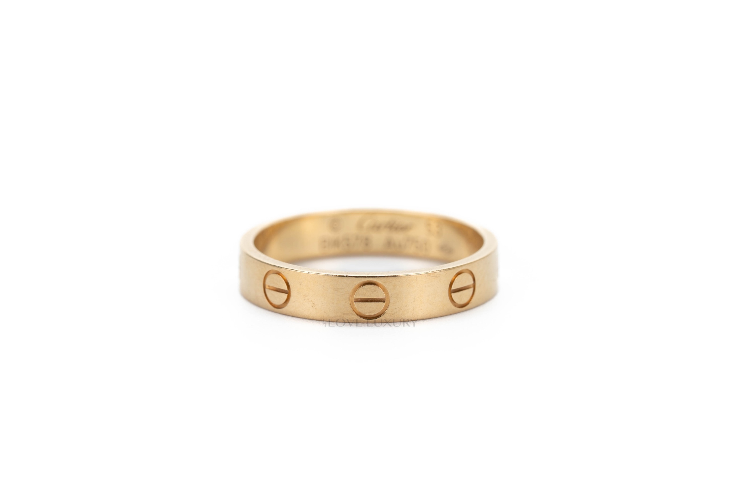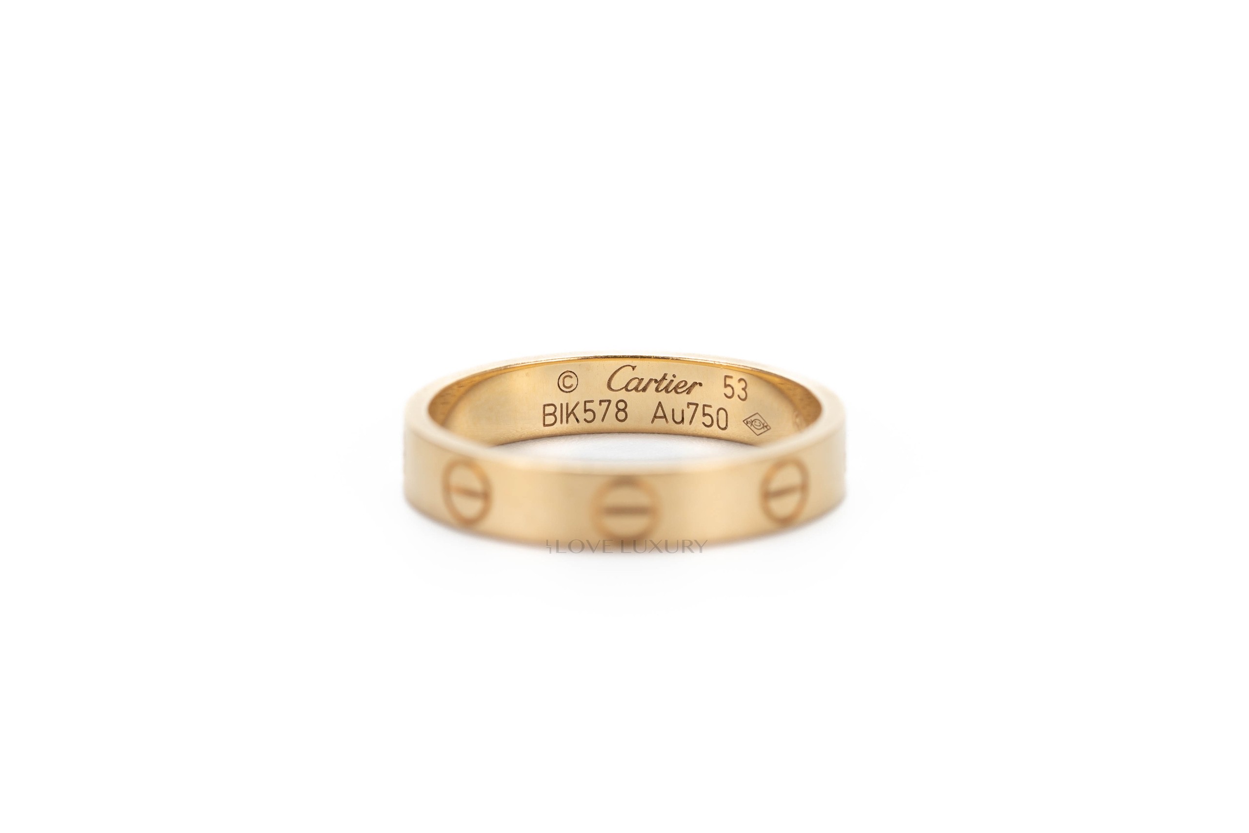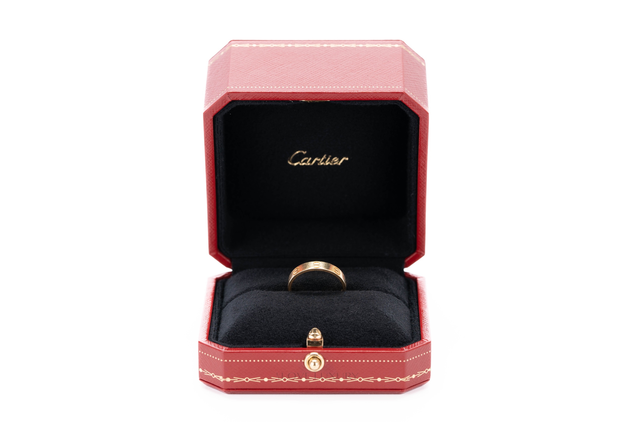 This classic Catier Love wedding band features 18k Yellow gold, the width of the ring is approximately 3.6mm and the size is 53. This ring is in a pre-loved condition and shows some signs of wear. It comes with the display box, outer box and certificate.