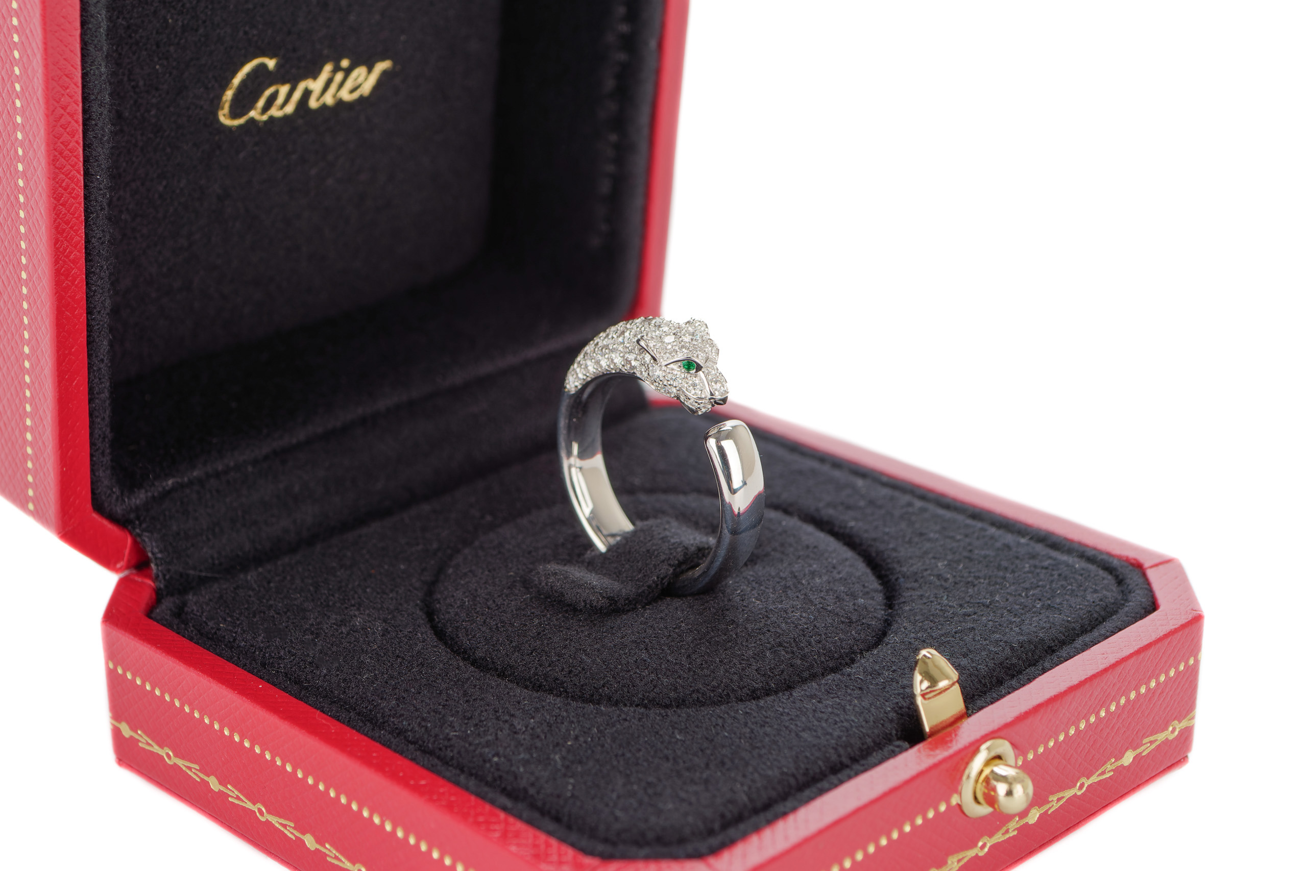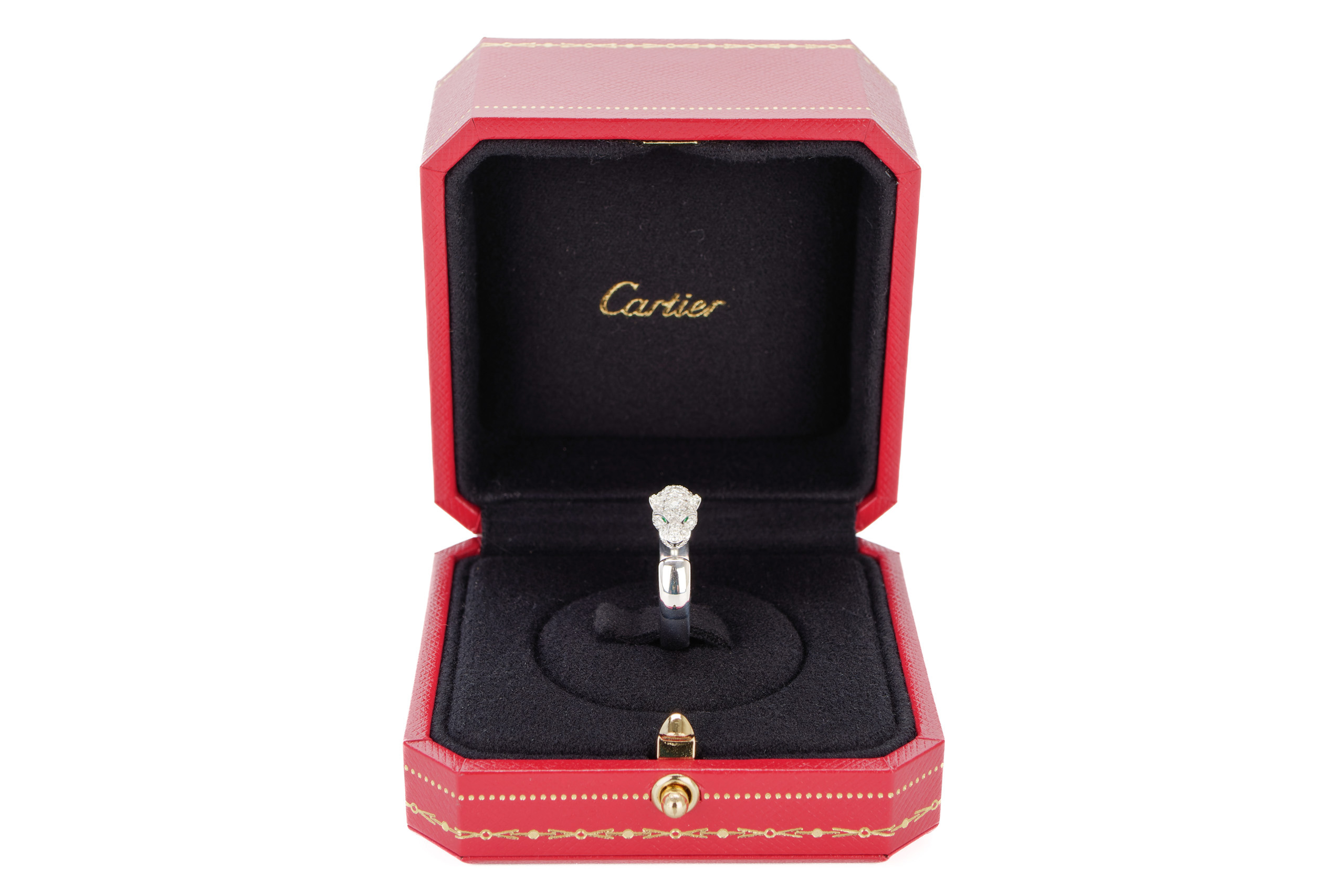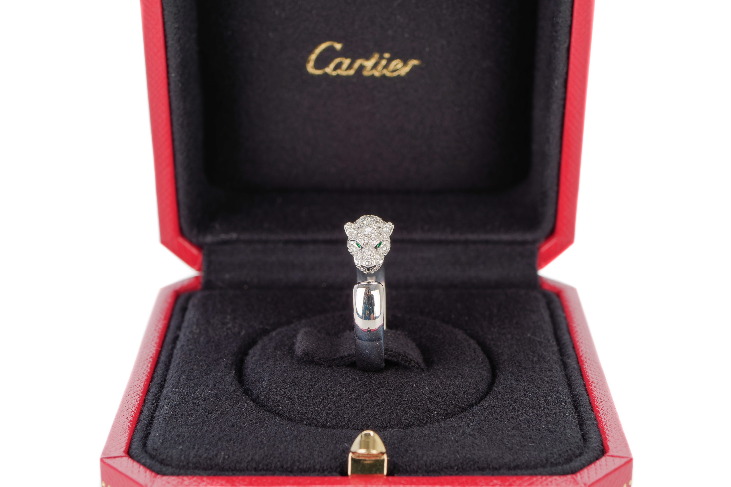 Cartier Panthere White Gold Onyx Emerald Diamond Ring size 55 2022 Pre Loved