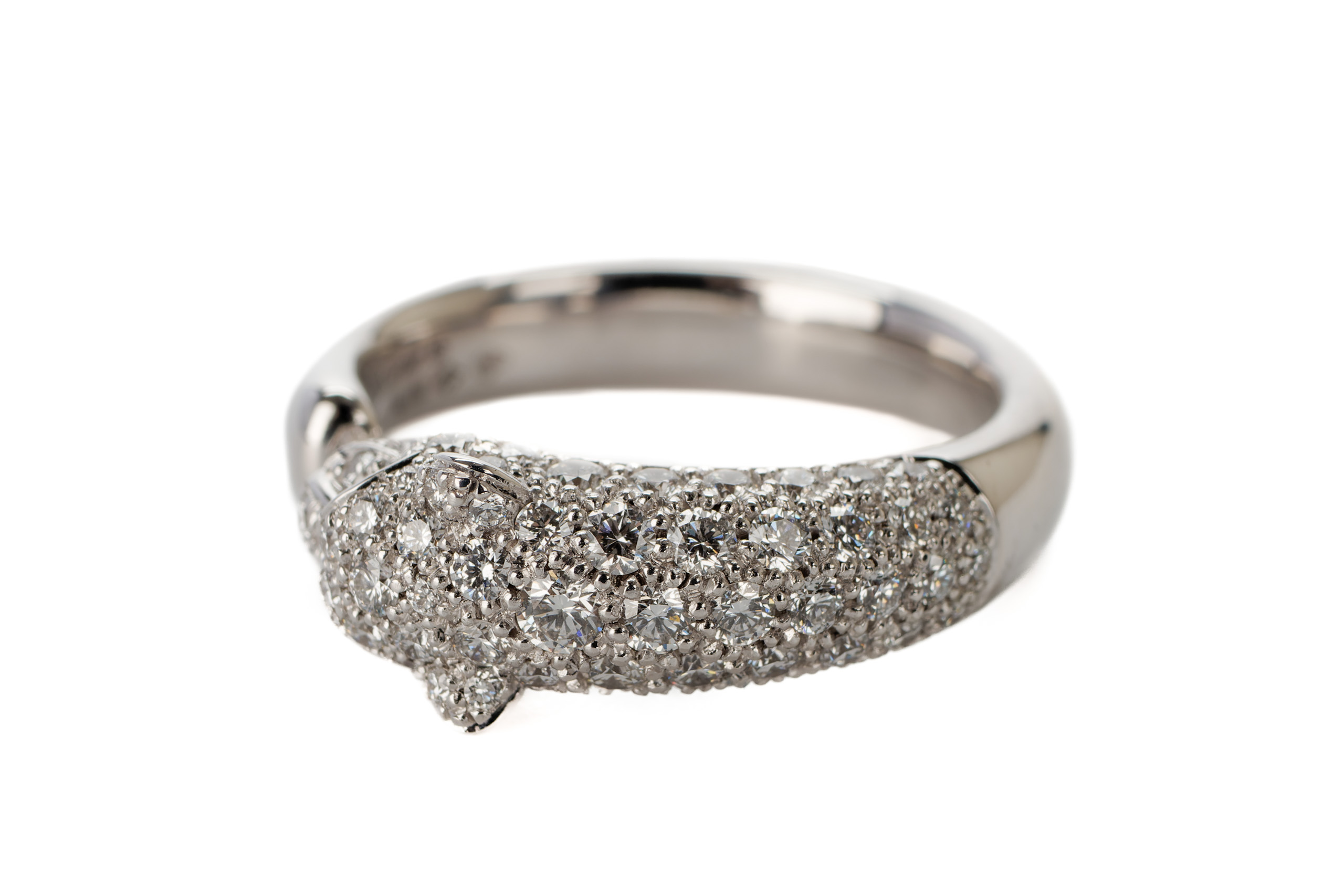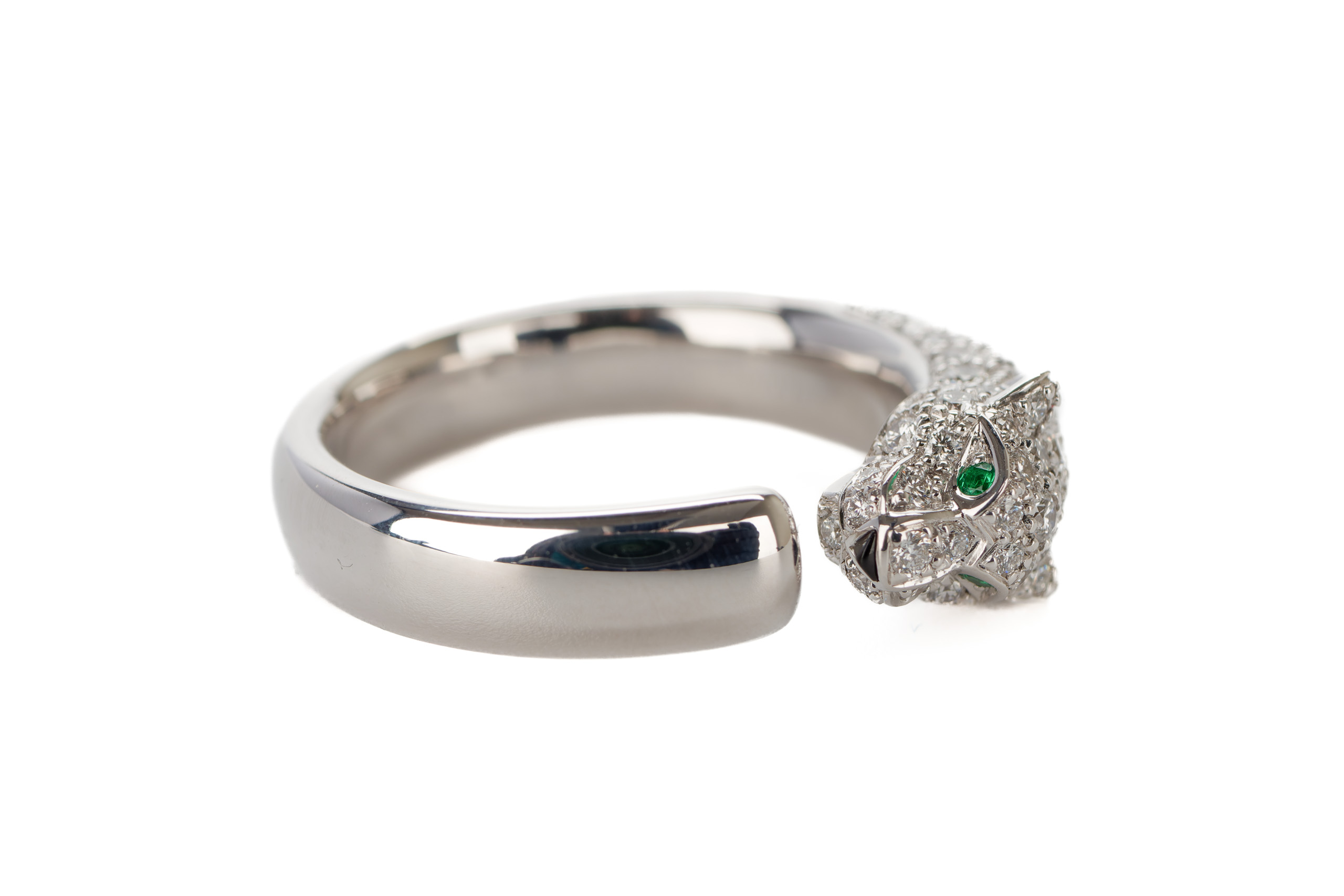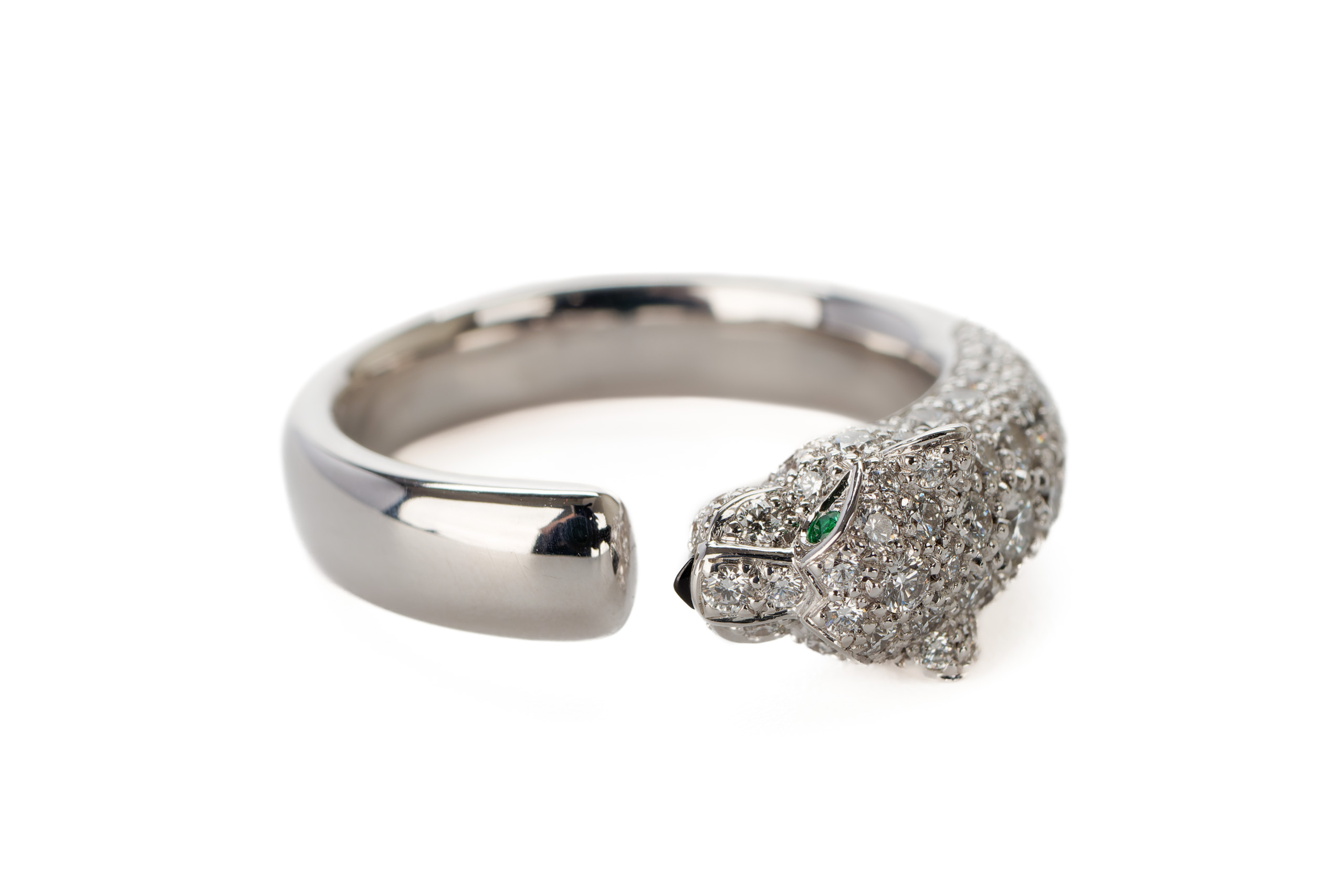 Cartier Panthere White Gold Onyx Emerald Diamond Ring size 55 2022 Pre Loved