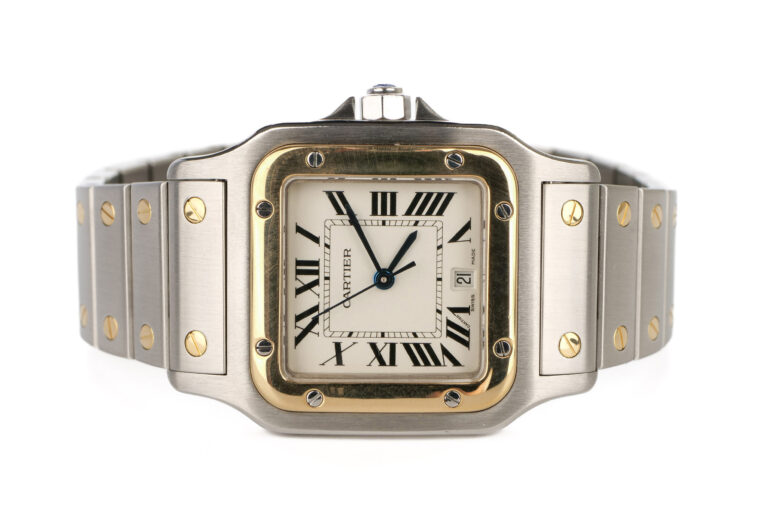 Cartier Santos Galbee Silver Roman Dial Two Tone Yellow Gold and Steel 1566