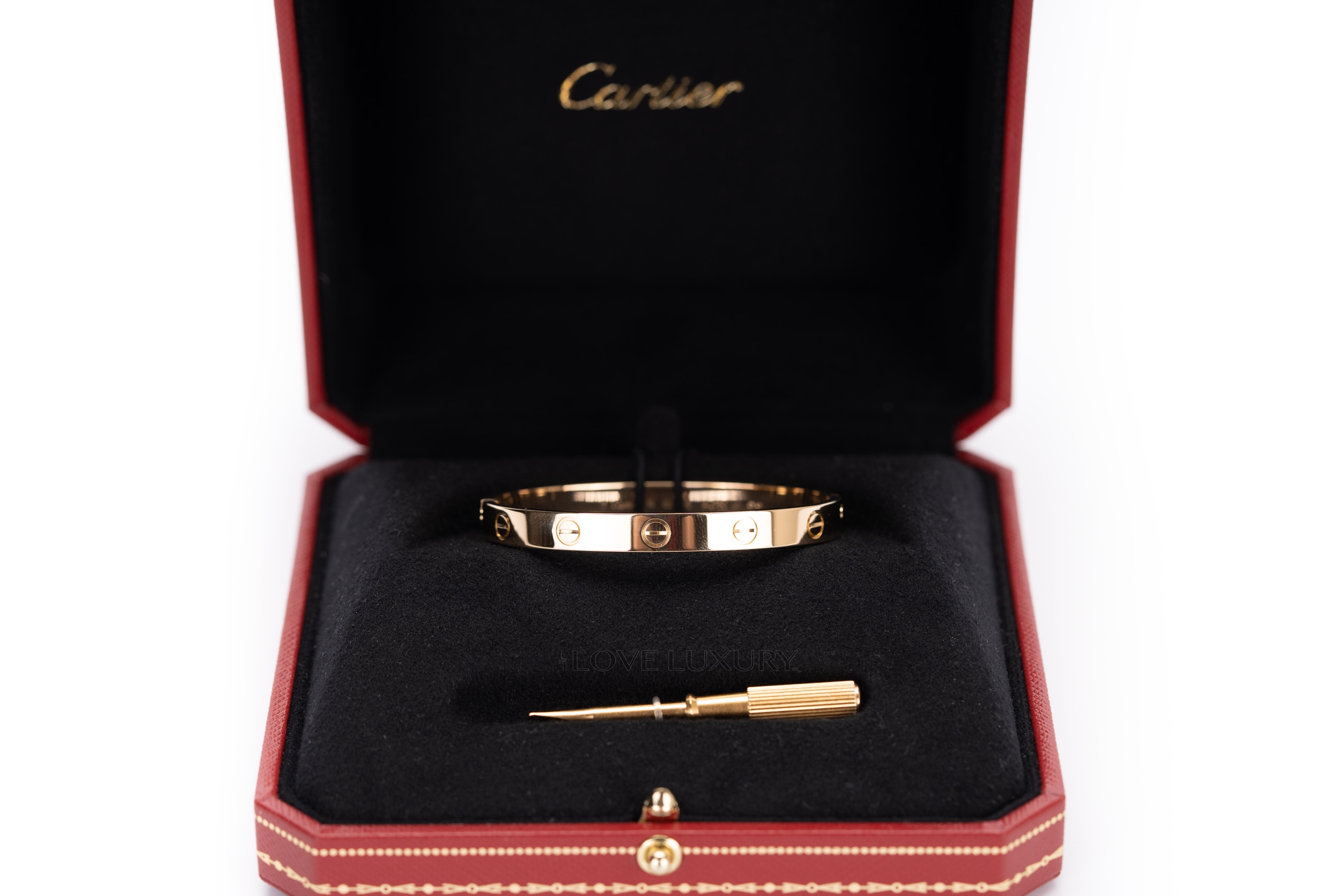 Yellow Gold 18k 750/1000 Love Bangle, Created in New York in 1969. This bangle is fastened with its own specific screwdriver. Size is 16cm. Condition: Excellent polished condition.
