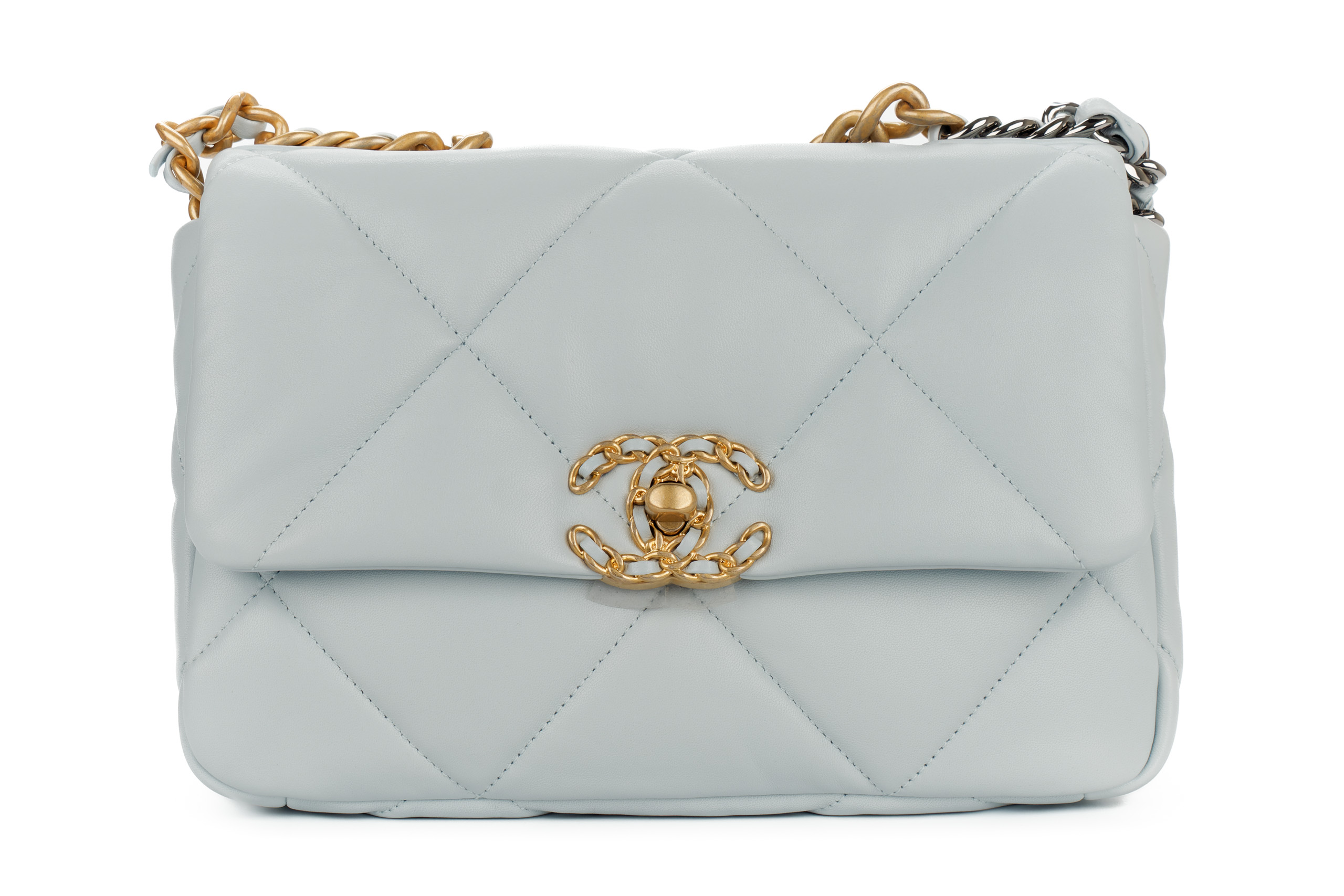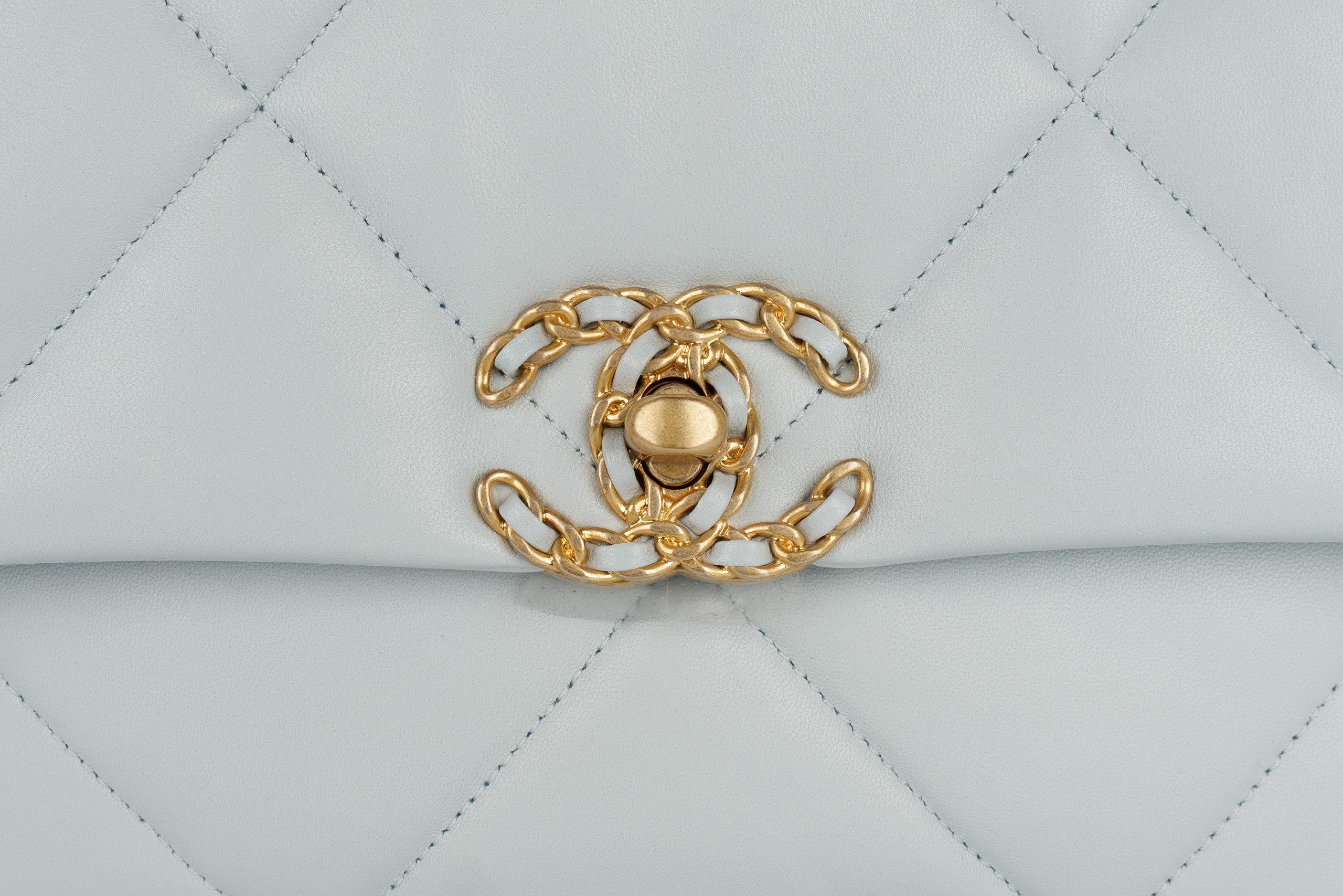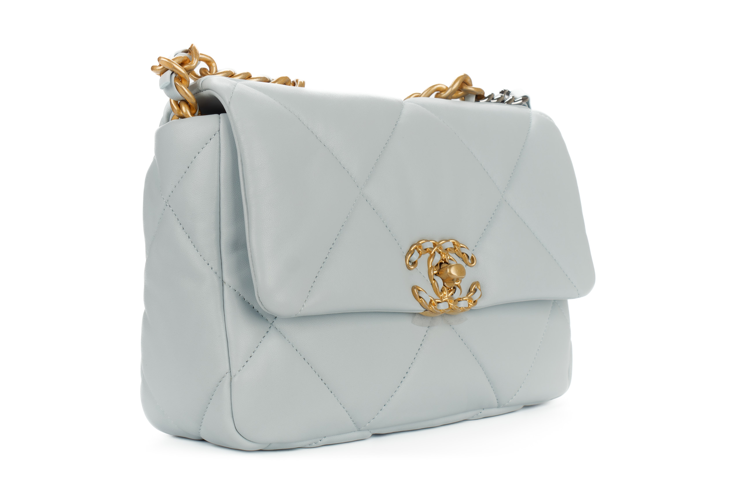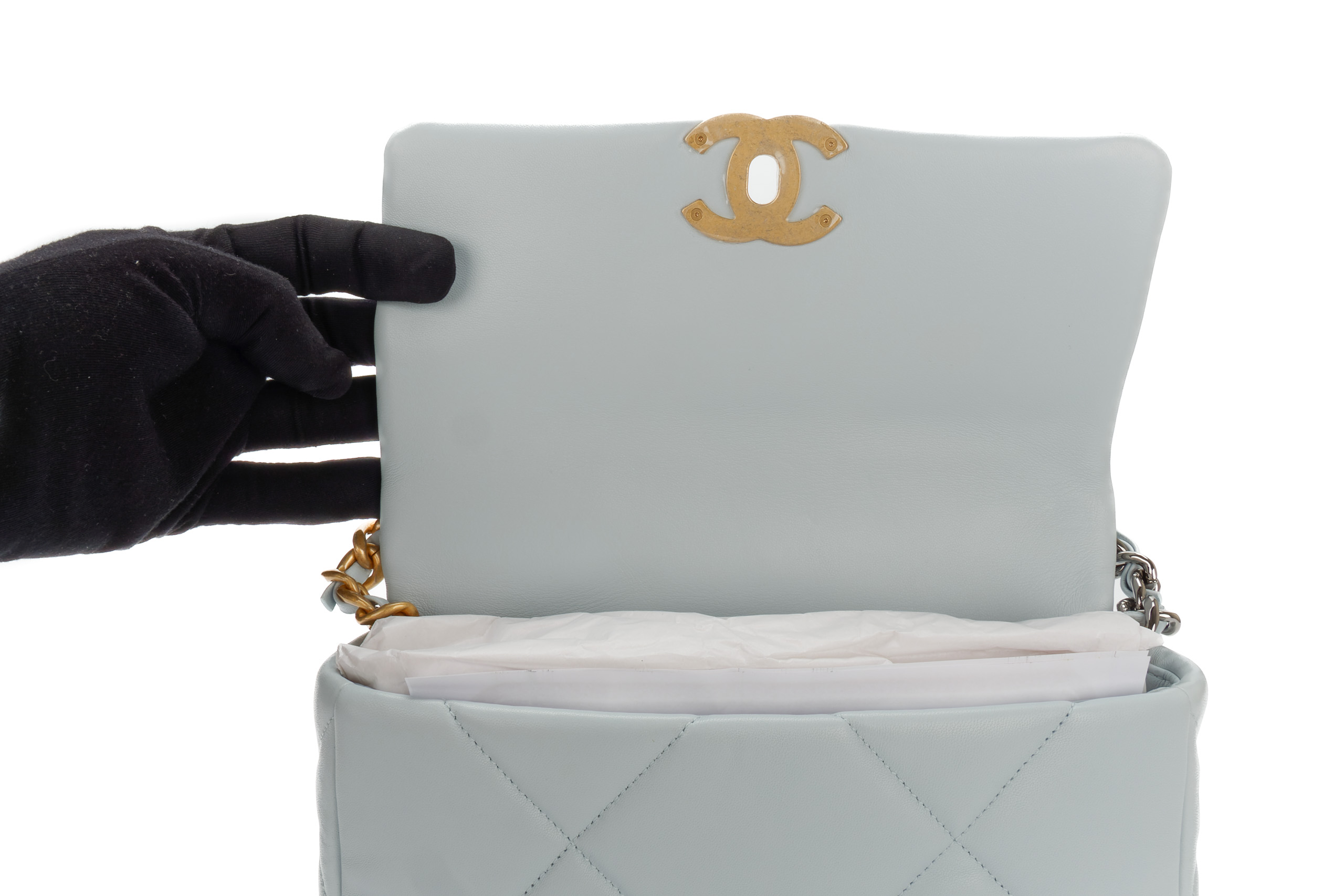 Chanel 19 Medium Baby Blue Goatskin Mixed Gold Hardware / Microchipped 2021 Brand new
