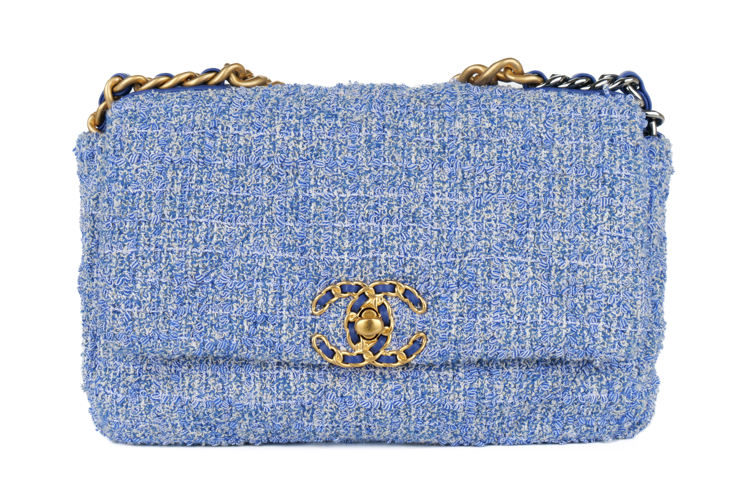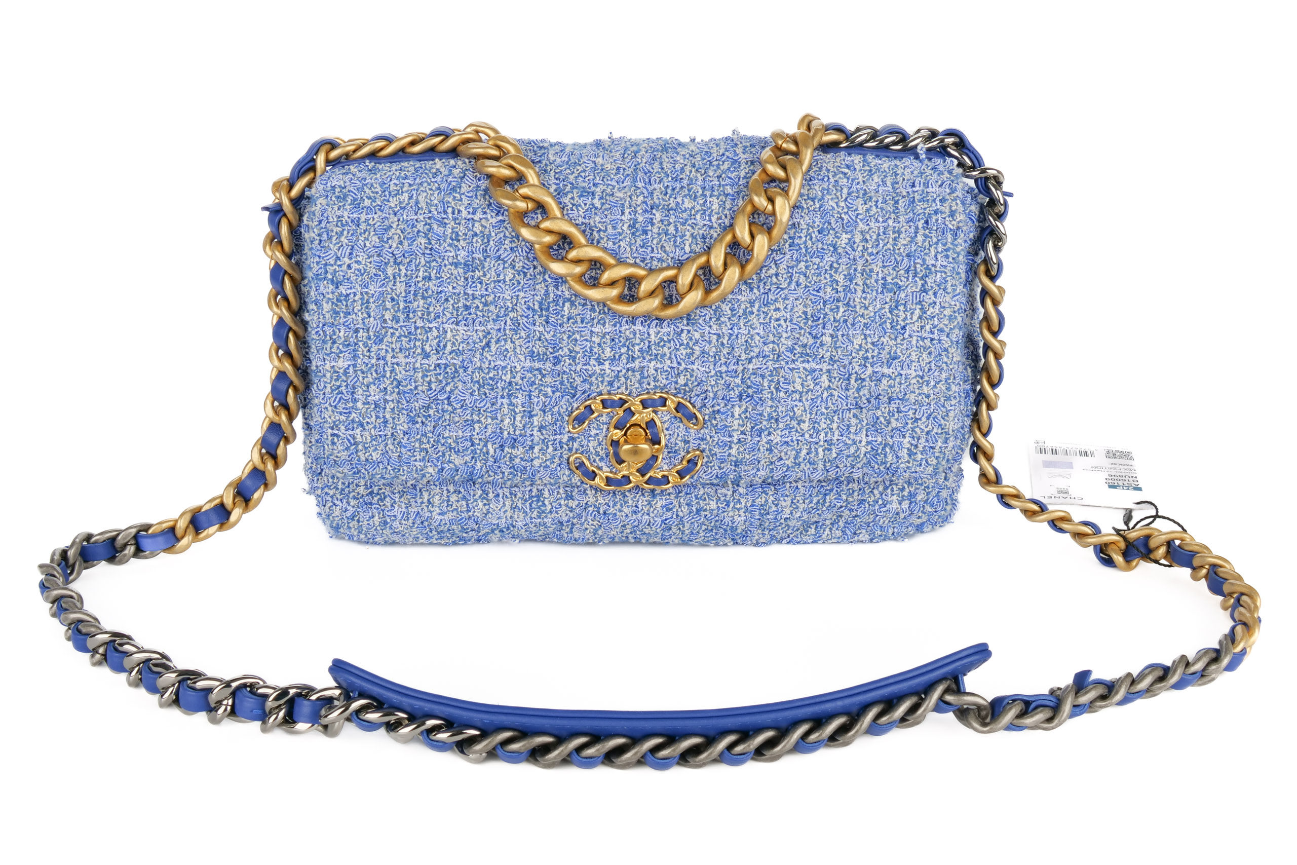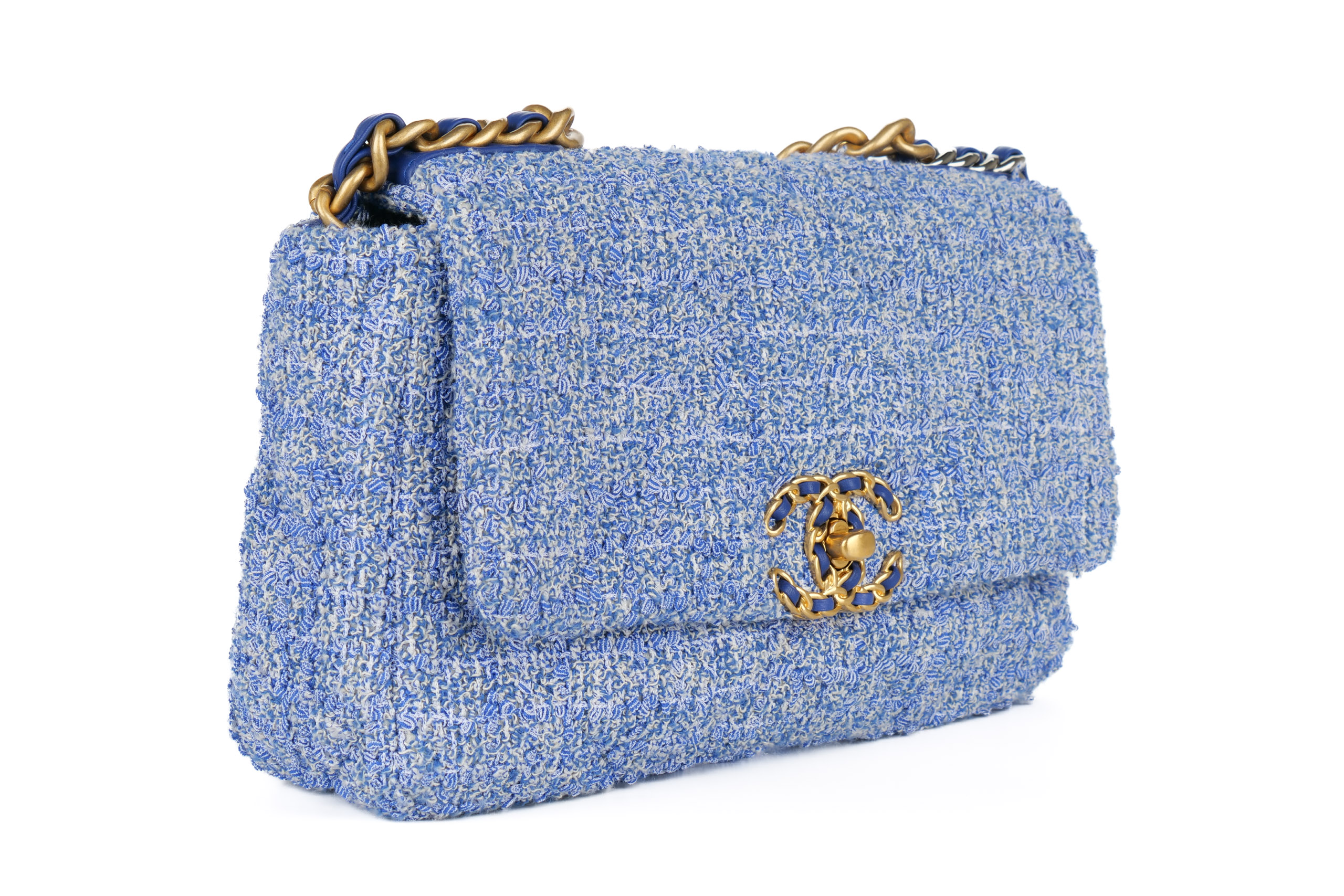Chanel 19 Medium Blue Tweed Mixed Hardware / Mirochipped 2024, As New