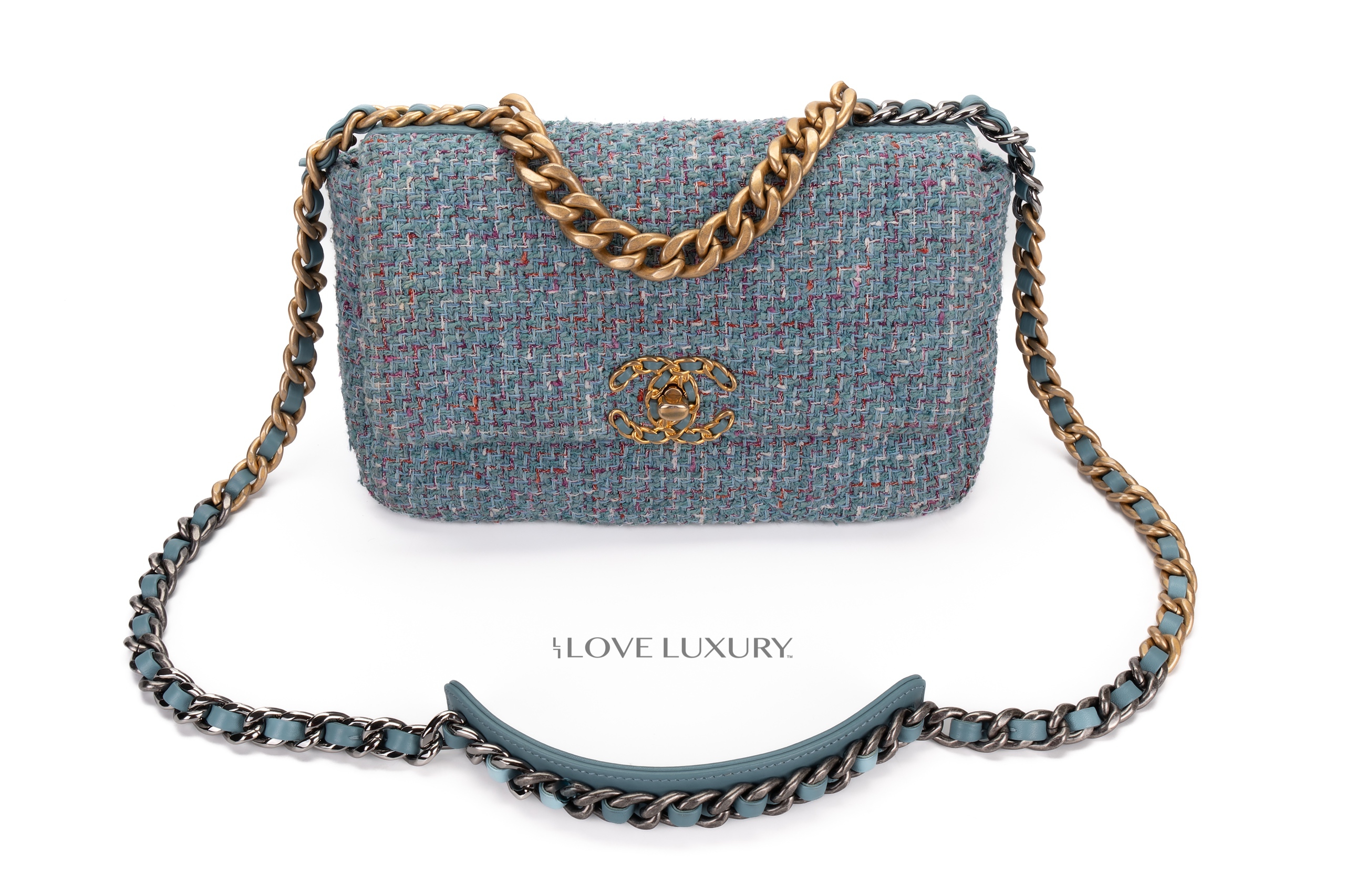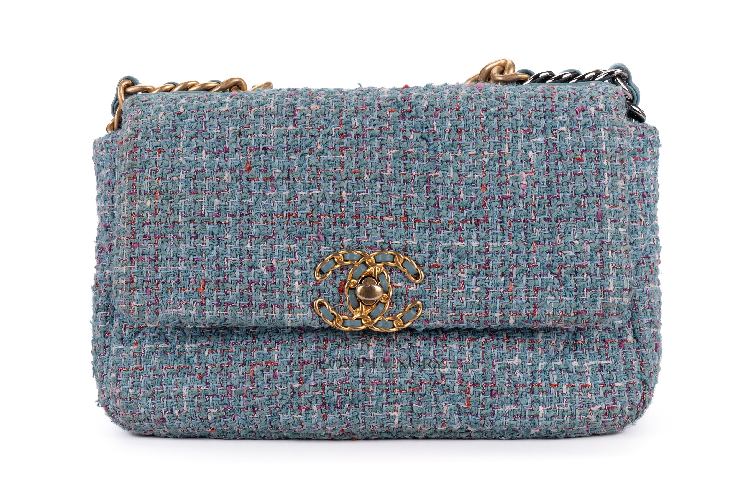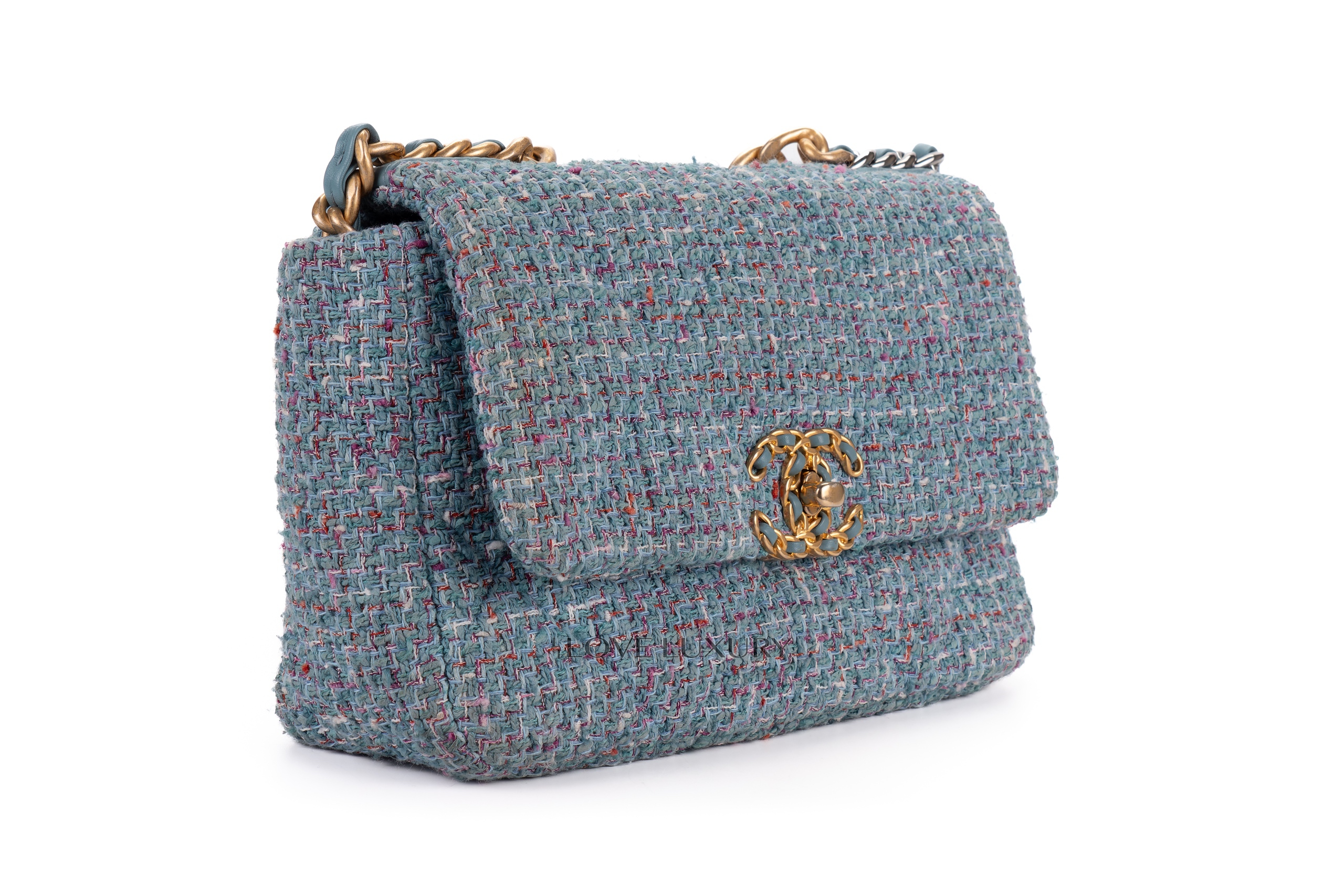 Chanel 19 Medium Tweed Blue & Pink Mixed Hardware