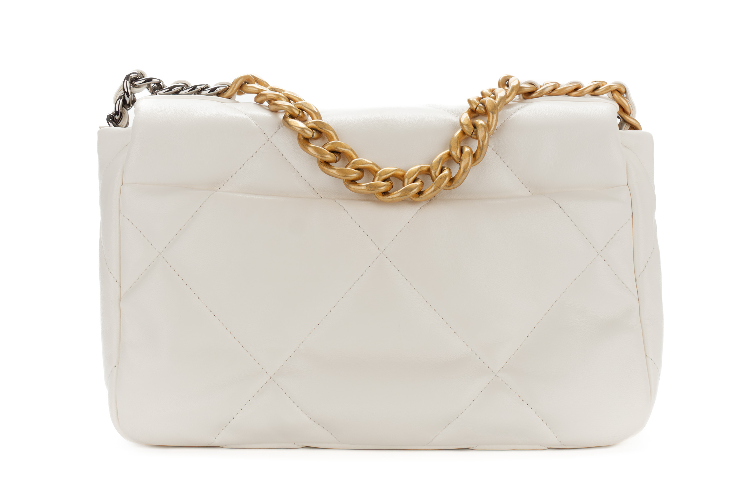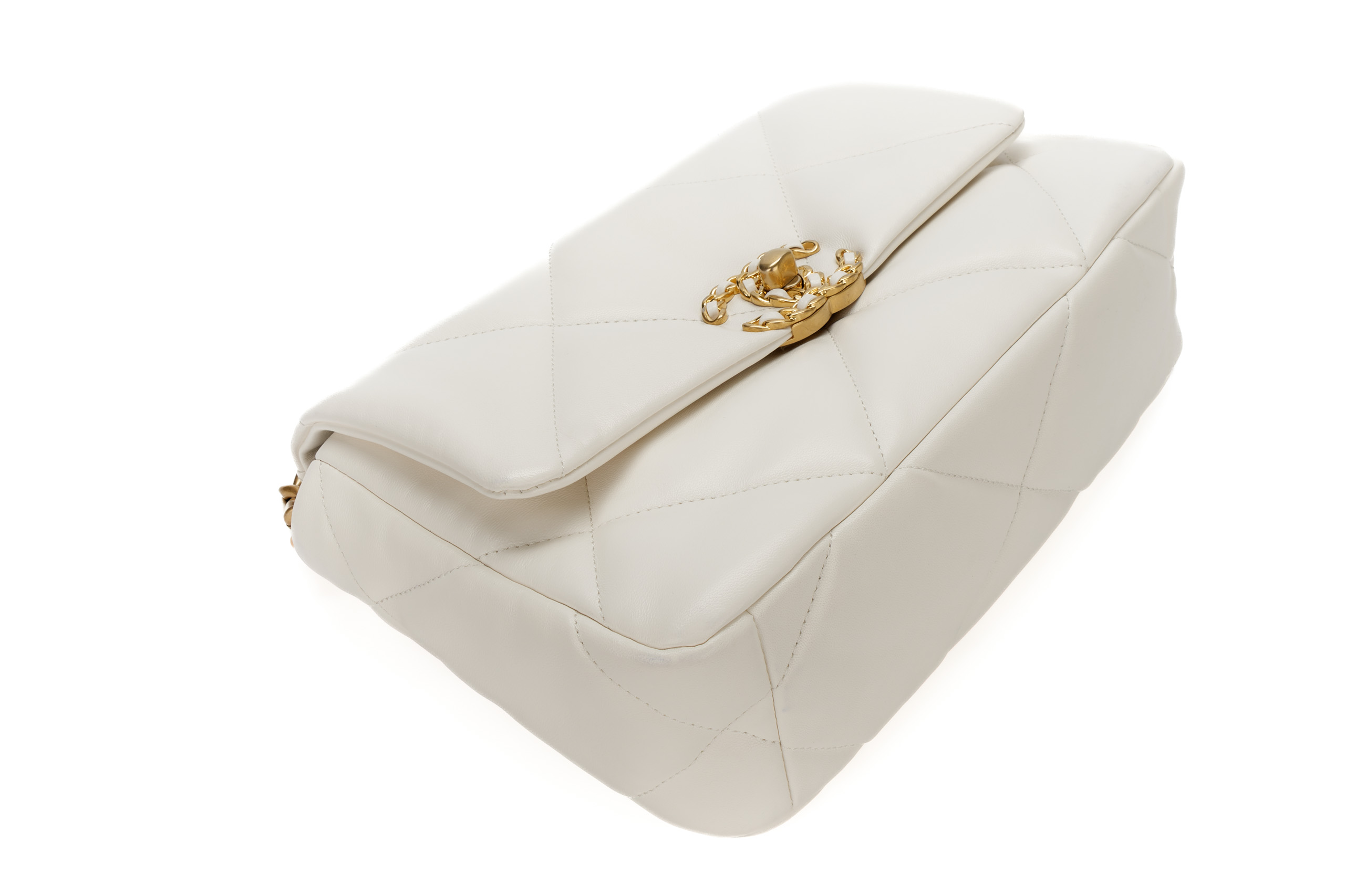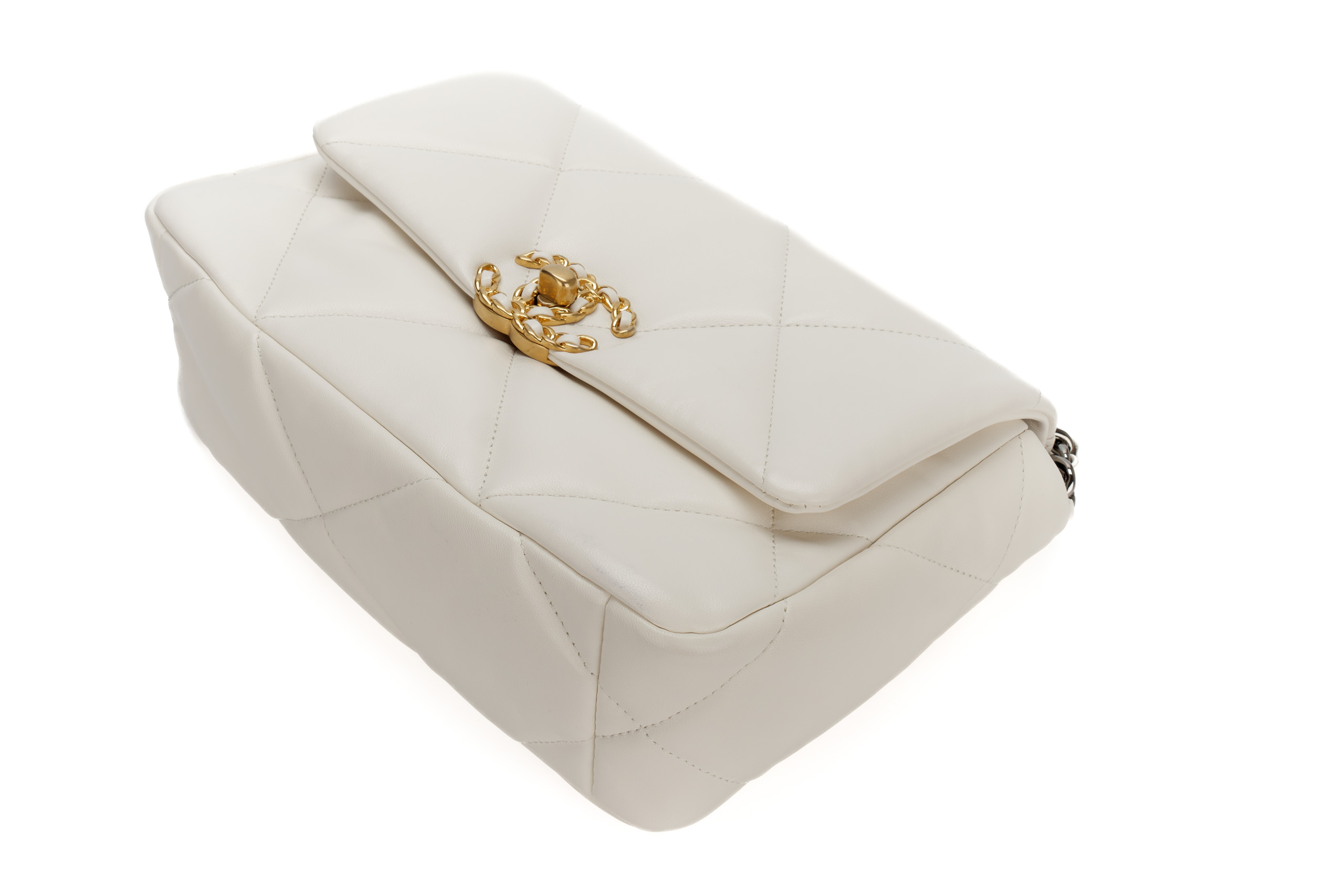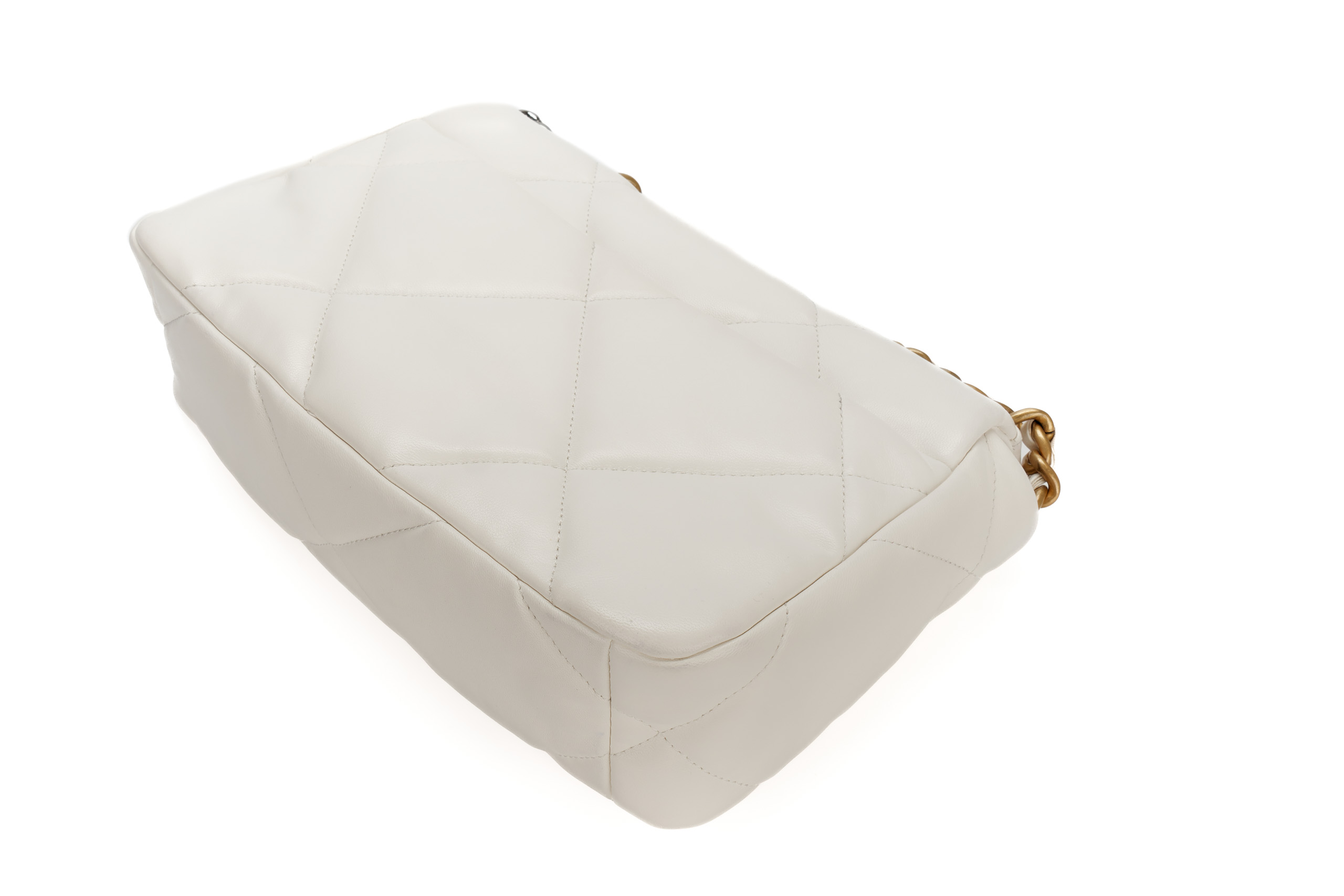Chanel 19 Medium White Goatskin Mixed Gold Hardware / Microchipped 2022 Excellent Pre-Loved condition