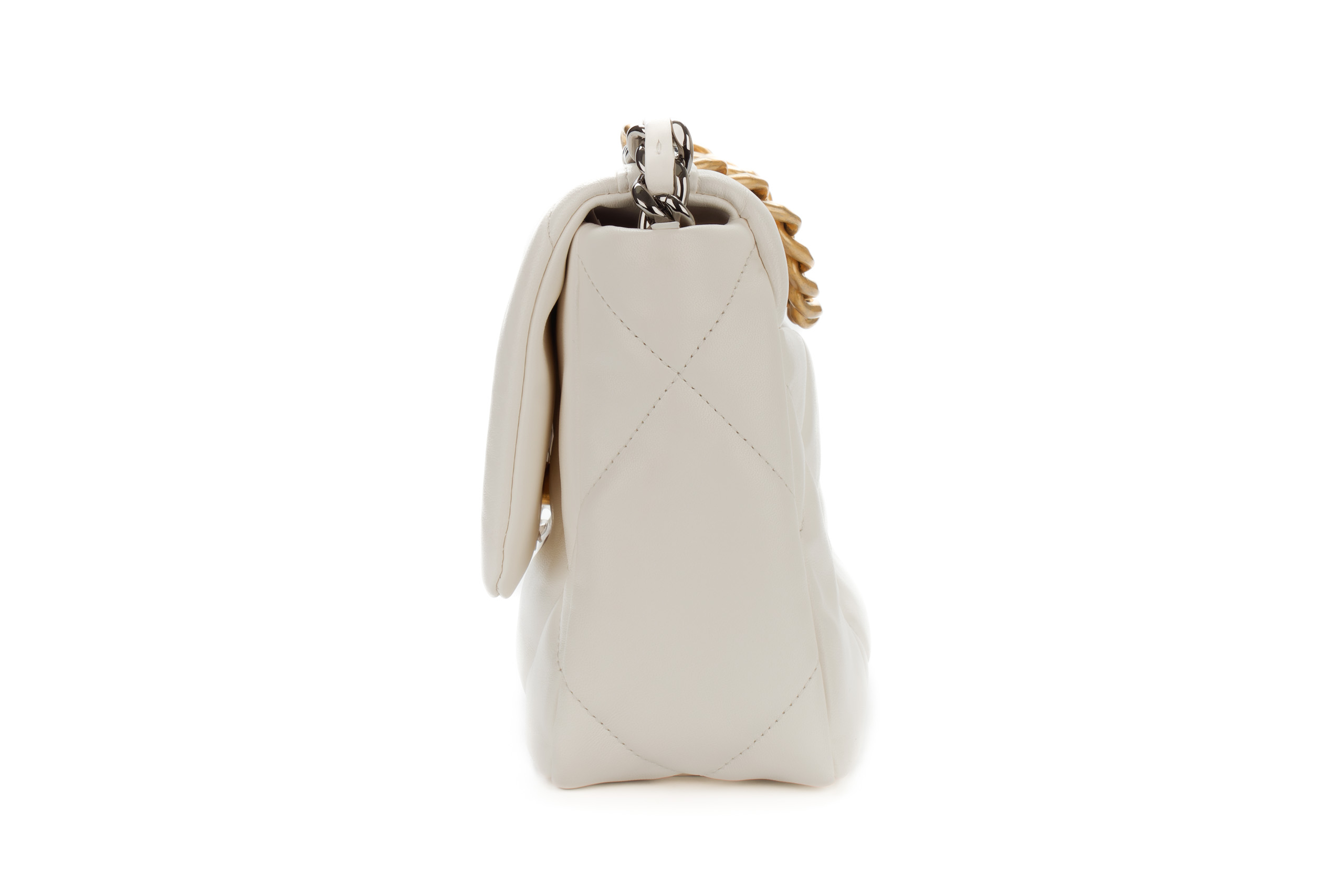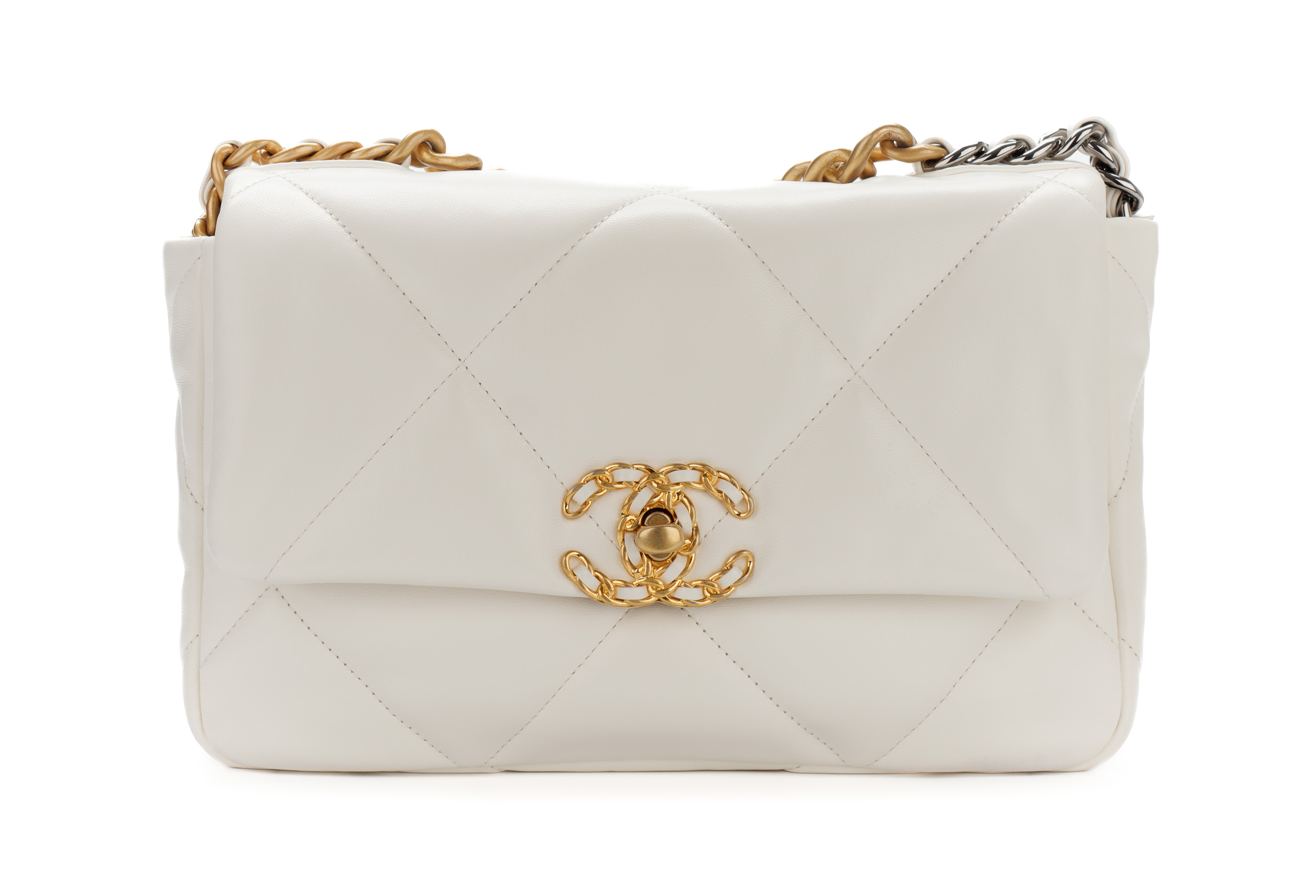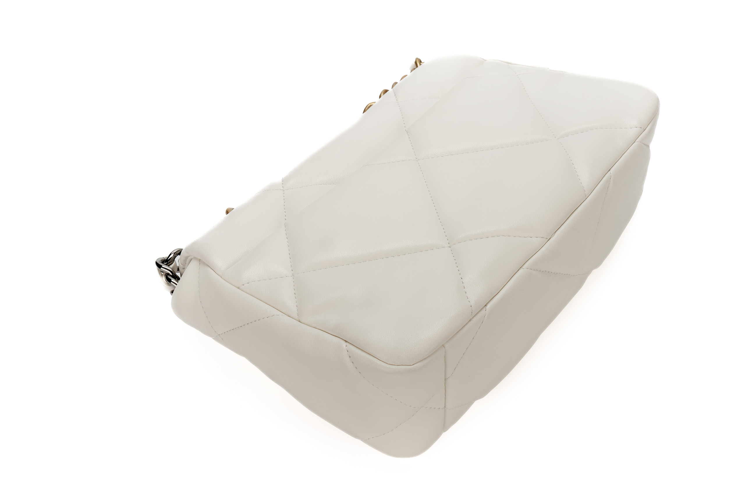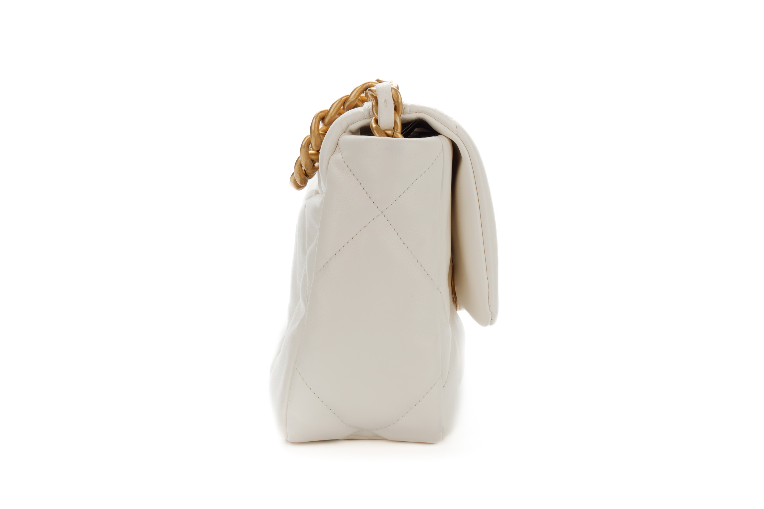 Chanel 19 Medium White Goatskin Mixed Gold Hardware / Microchipped 2022 Excellent Pre-Loved condition