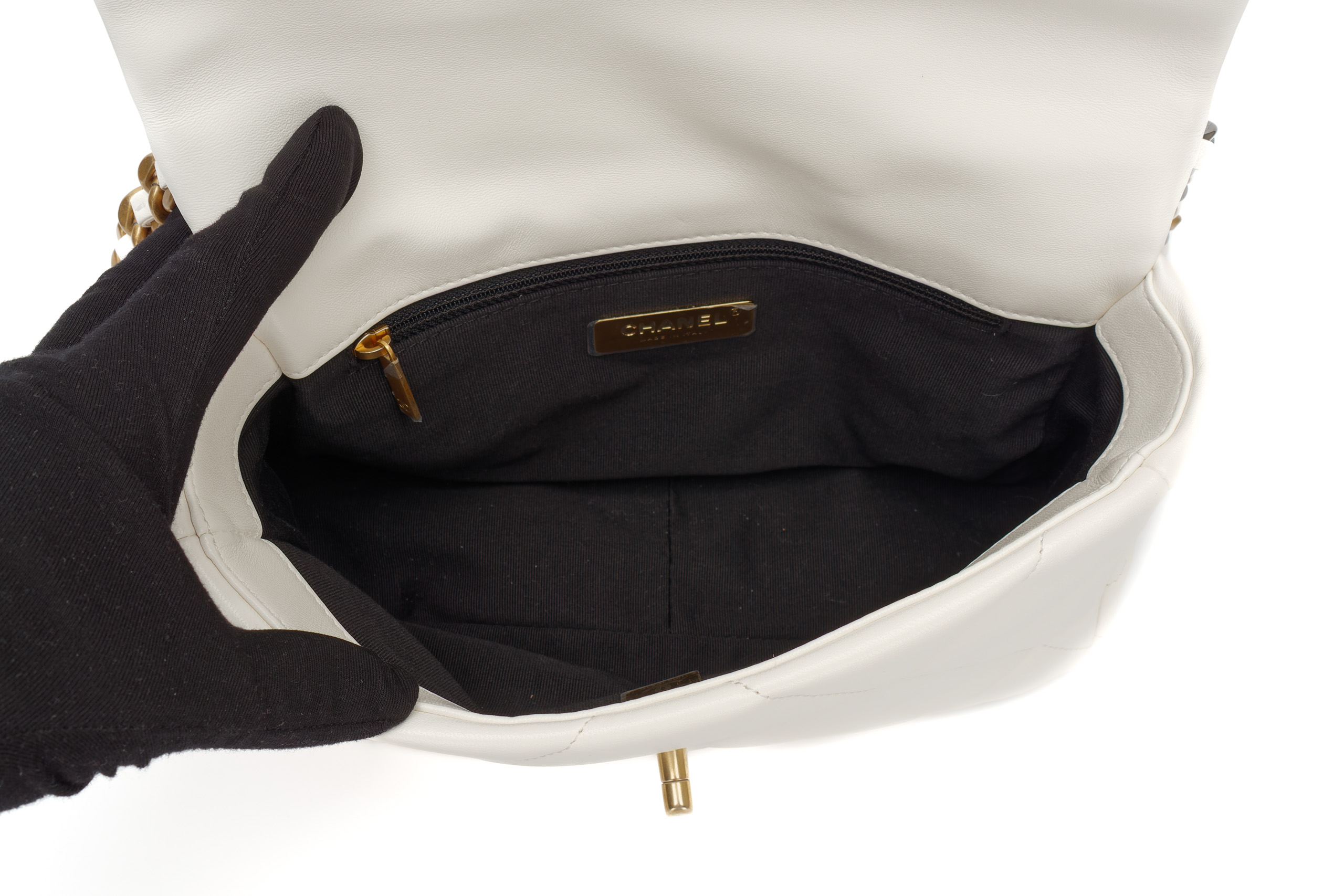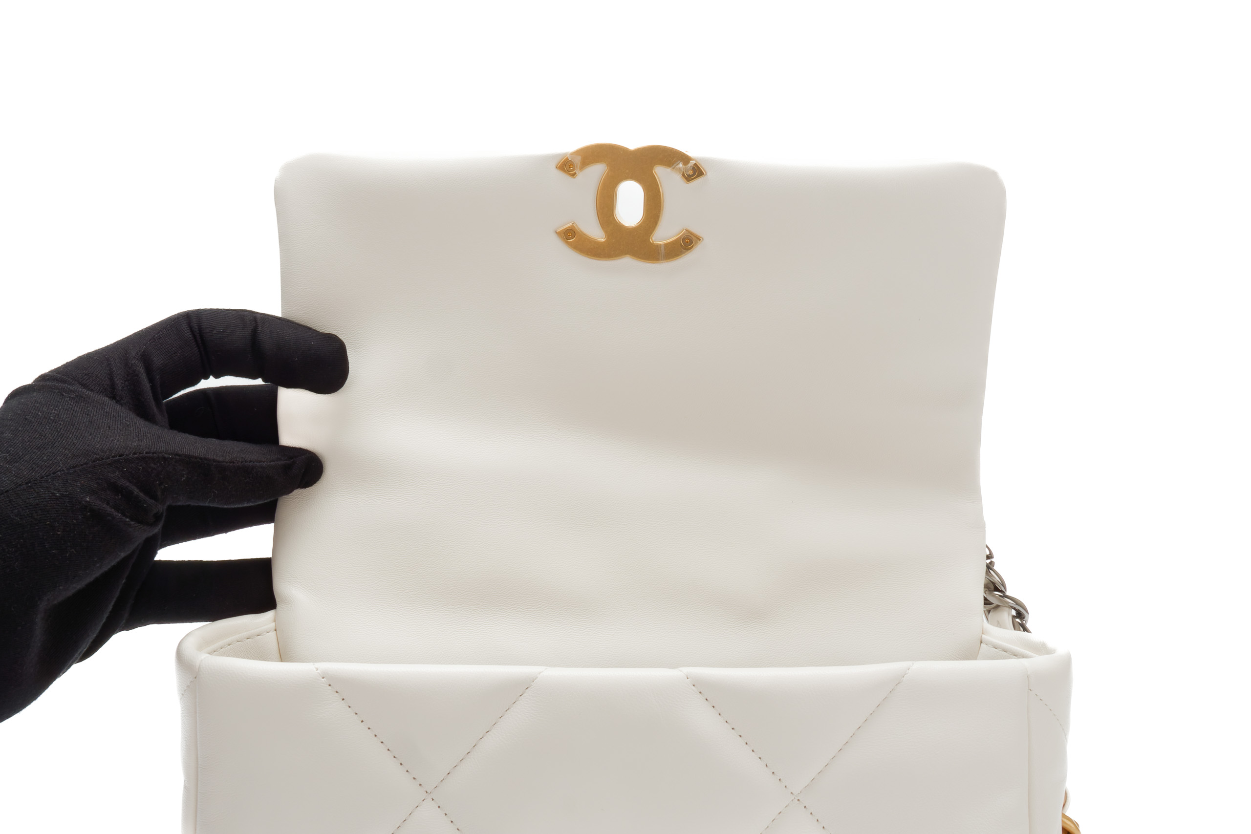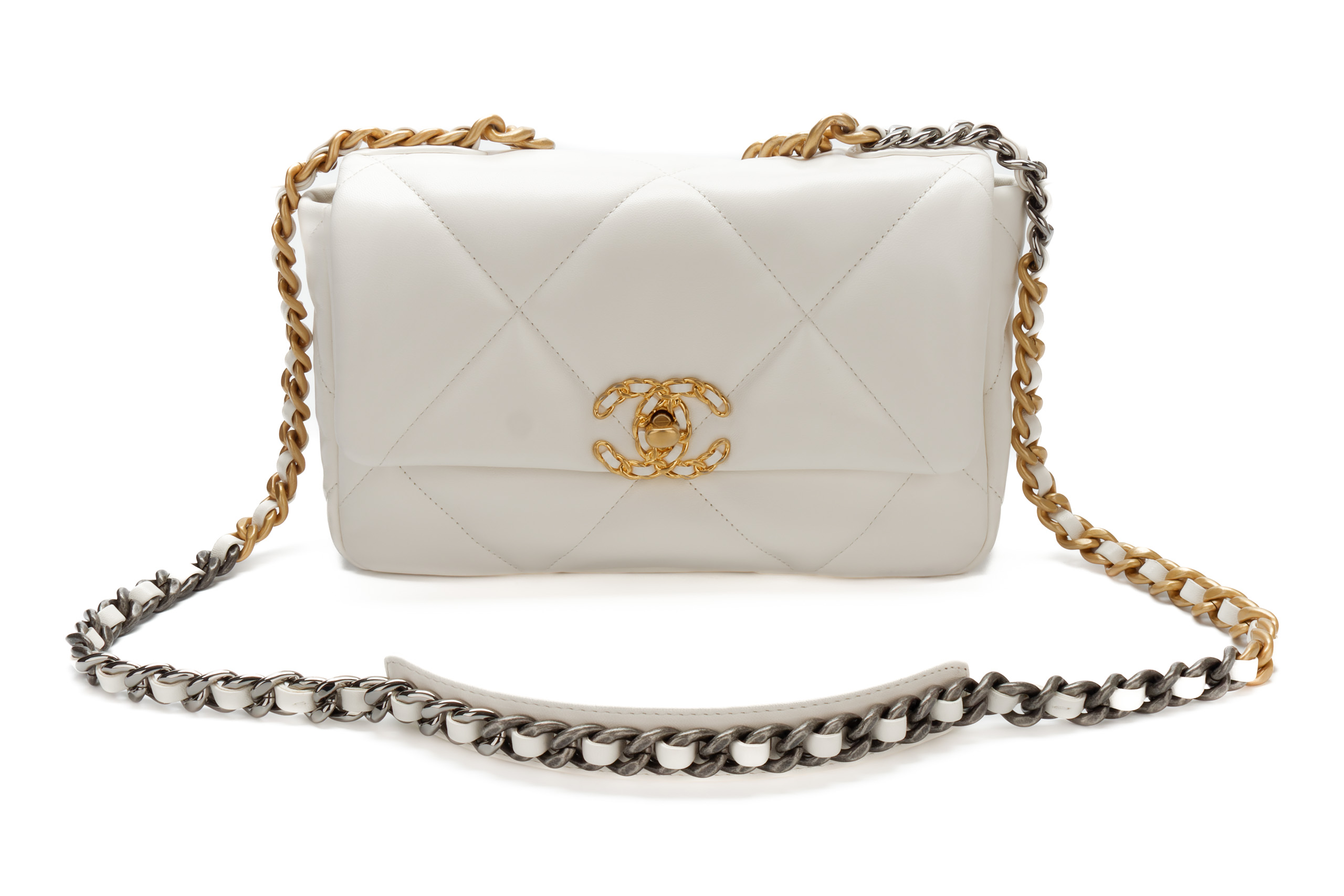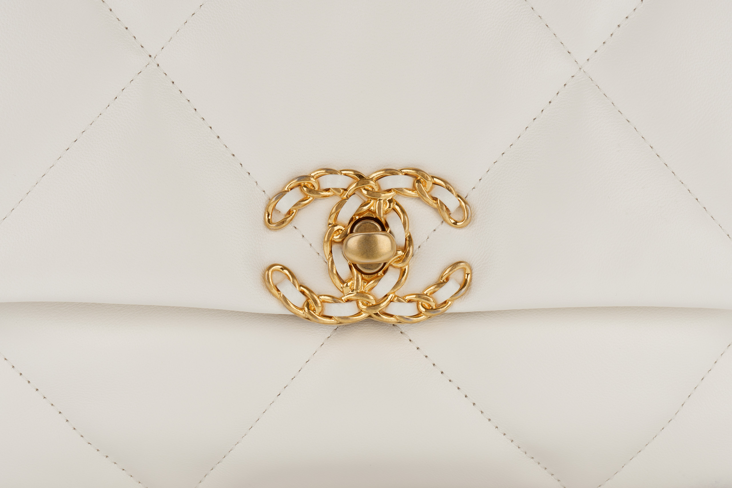 Chanel 19 Medium White Goatskin Mixed Gold Hardware / Microchipped 2022 Excellent Pre-Loved condition