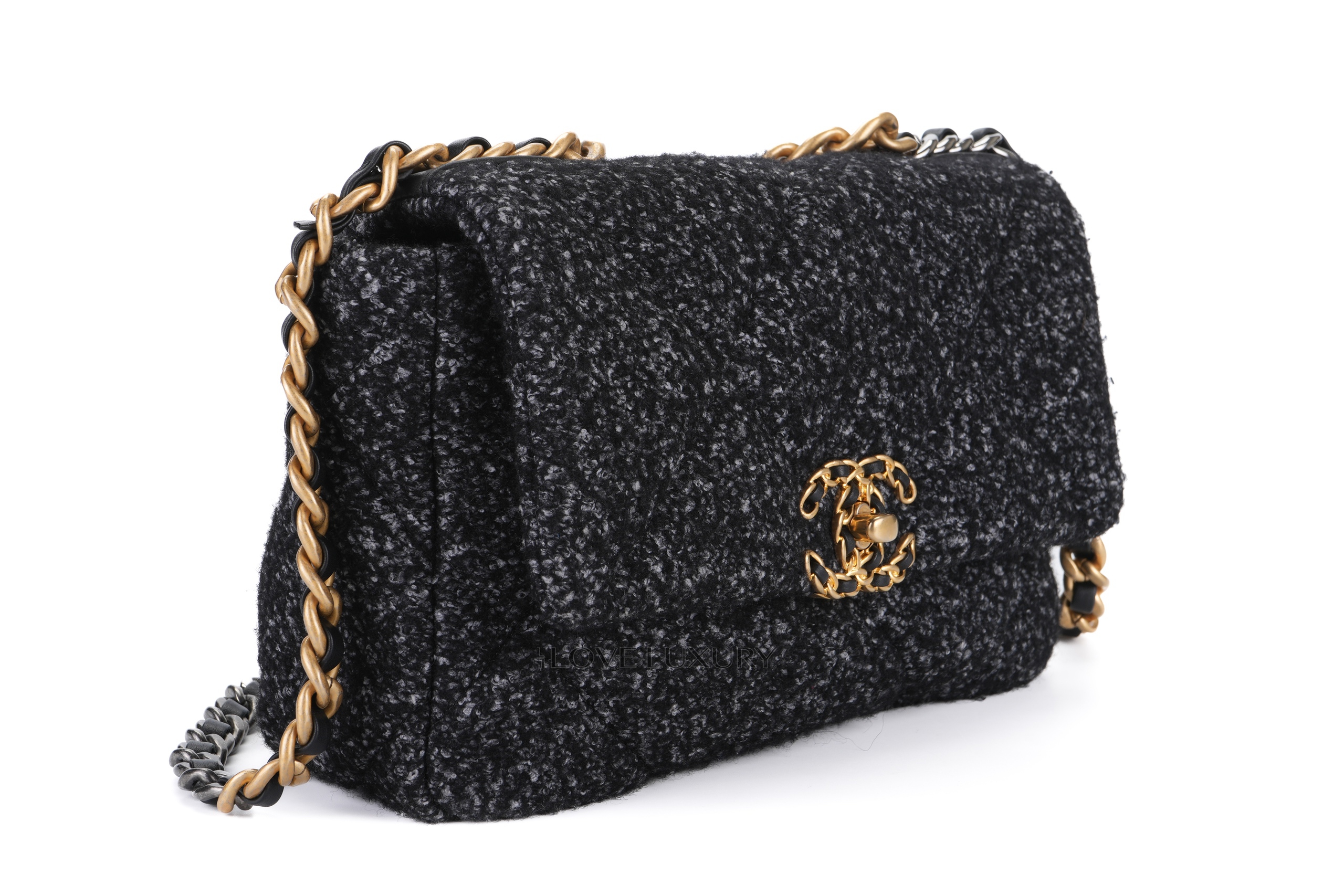 Chanel 19 Tweed Navy Mixed Hardware / Microchipped 2022 Pre-Loved condition