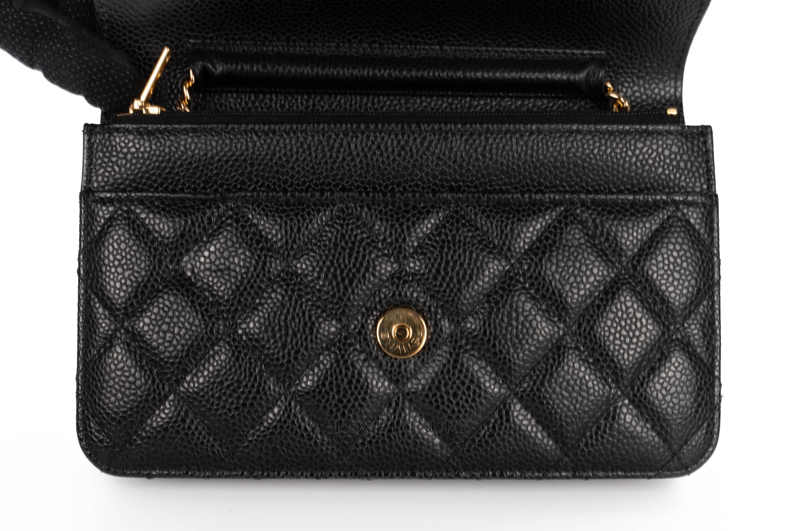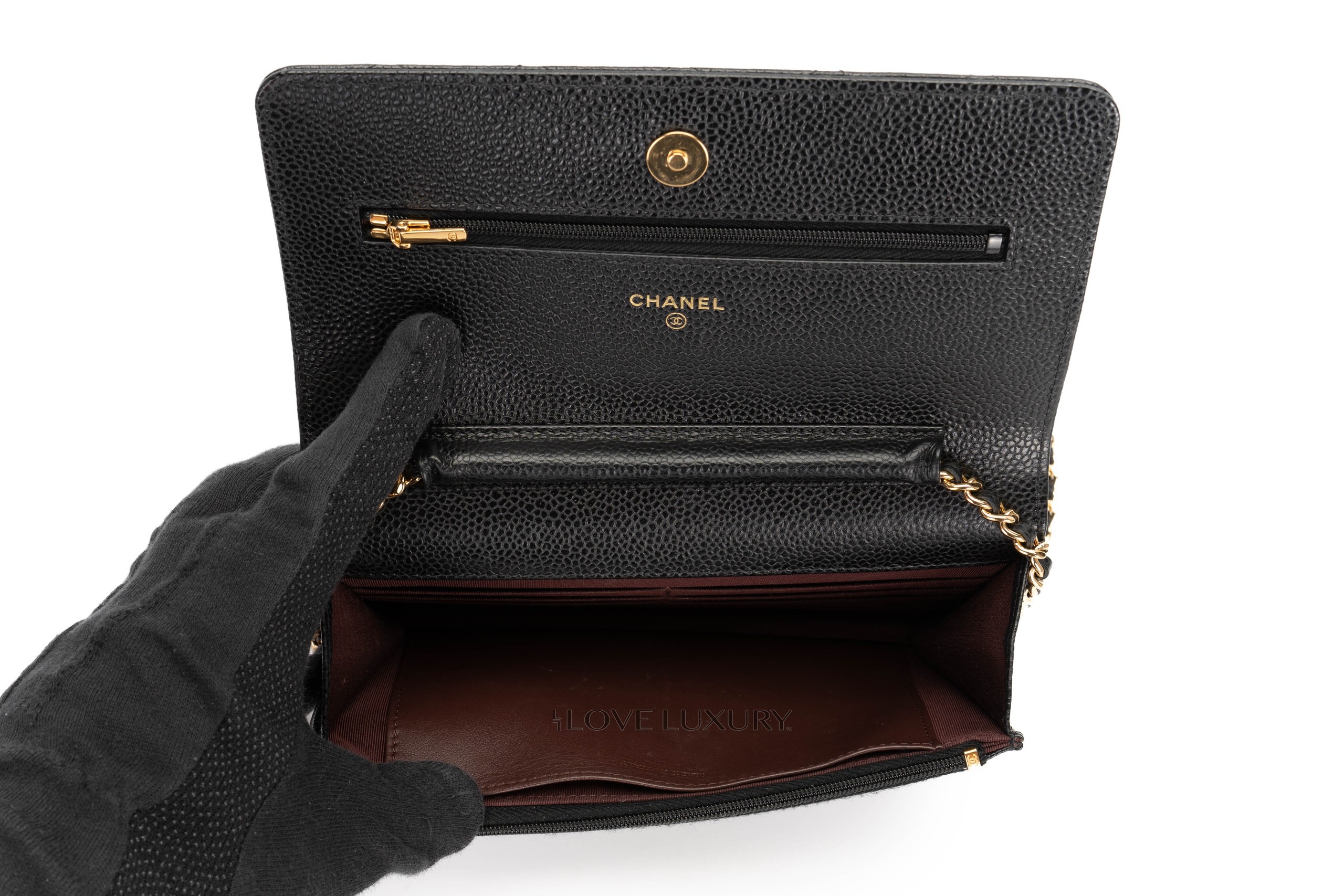 This classic Wallet on chain otherwise known as a WOC is made from caviar leather accentuated with Gold hardware, the condition of this pre-loved bag is excellent and shows very little signs of use, please refer closely to the image to view the condition.