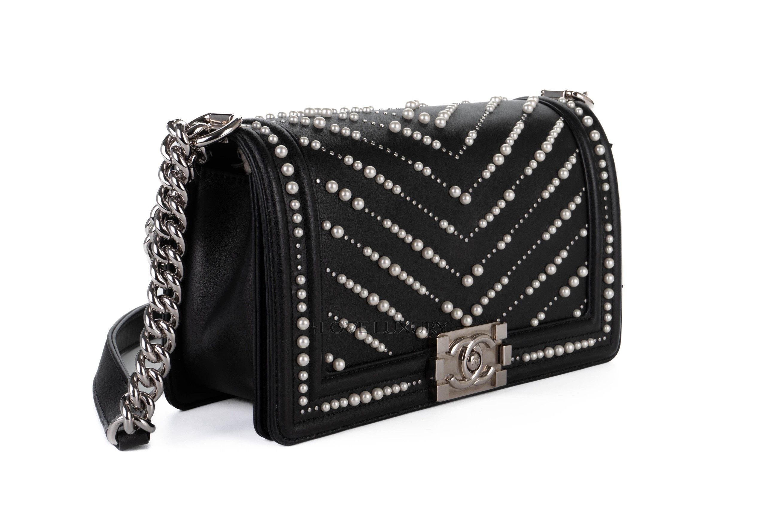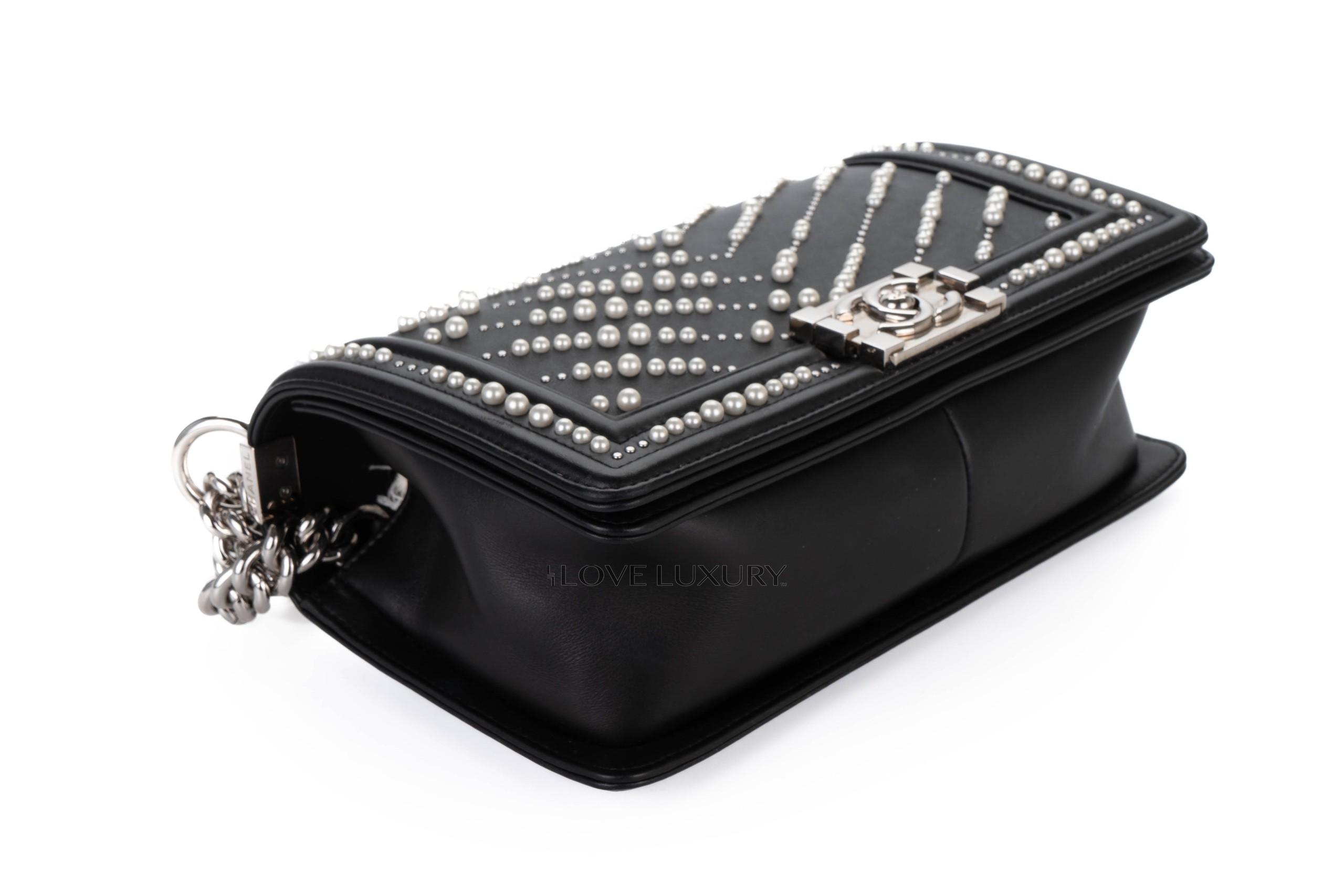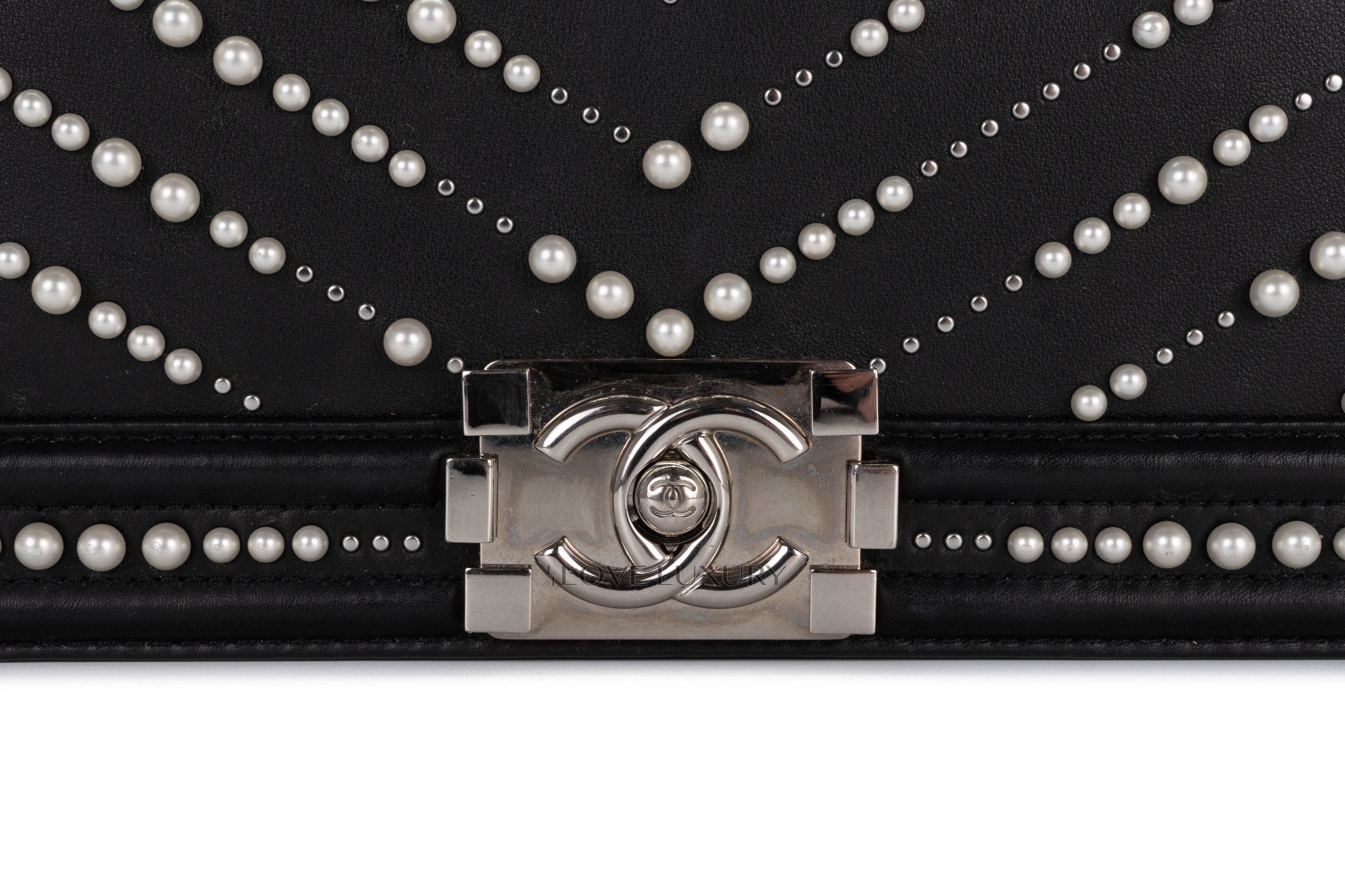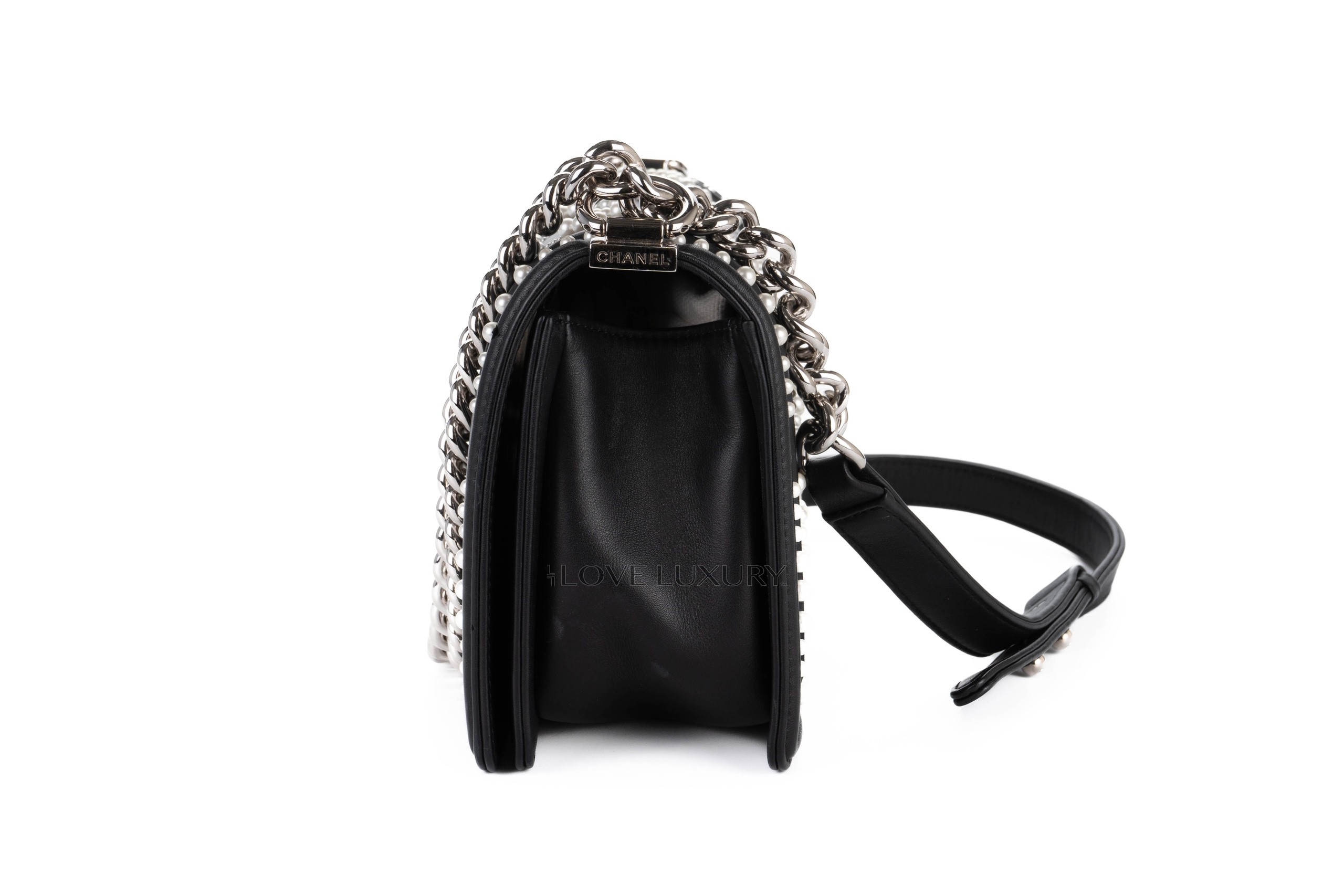 Chanel Boy Bag Pearl Black Calfskin Silver Hardware