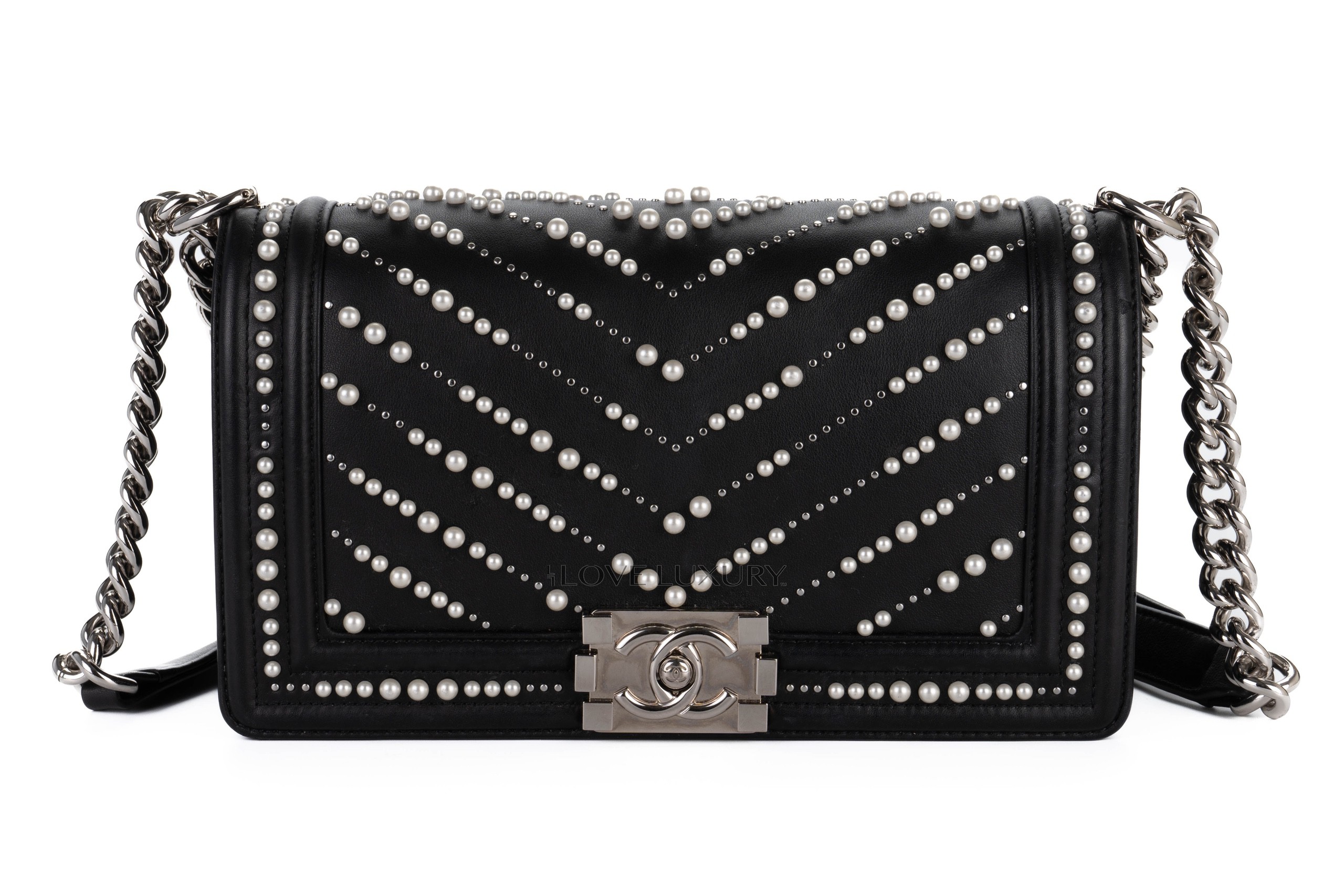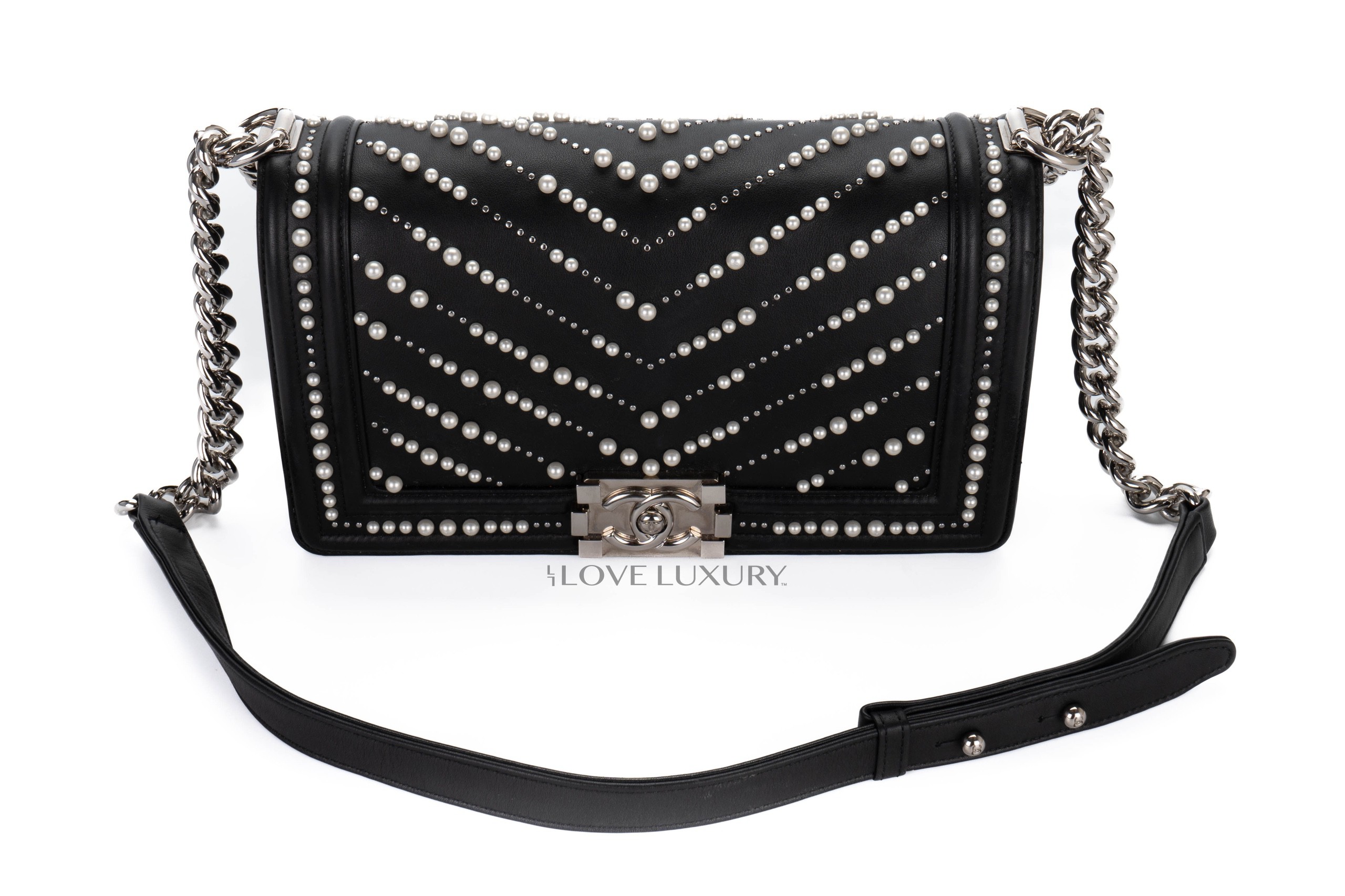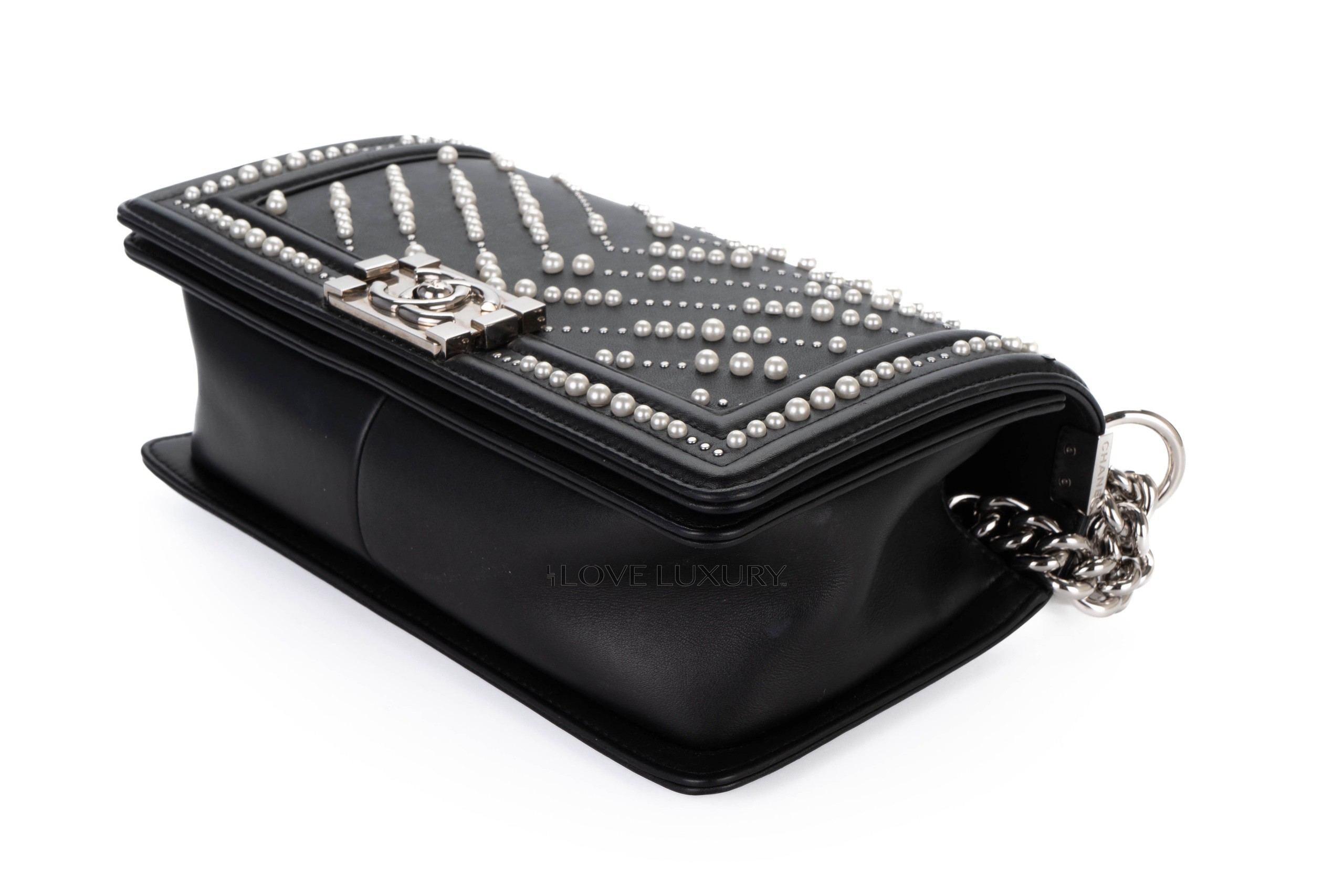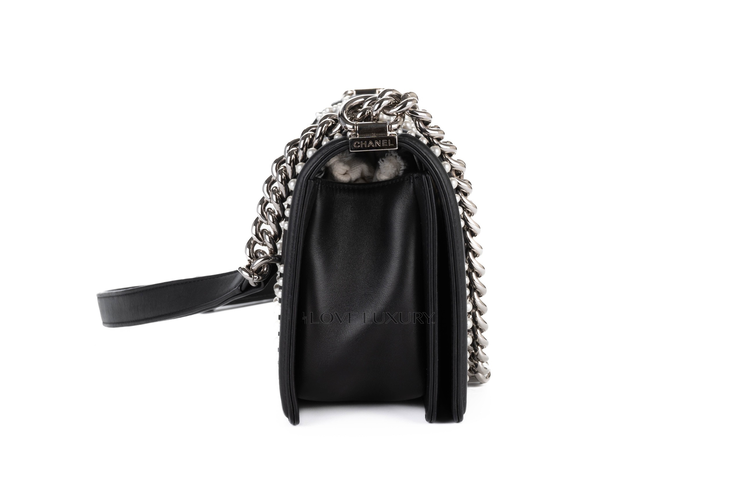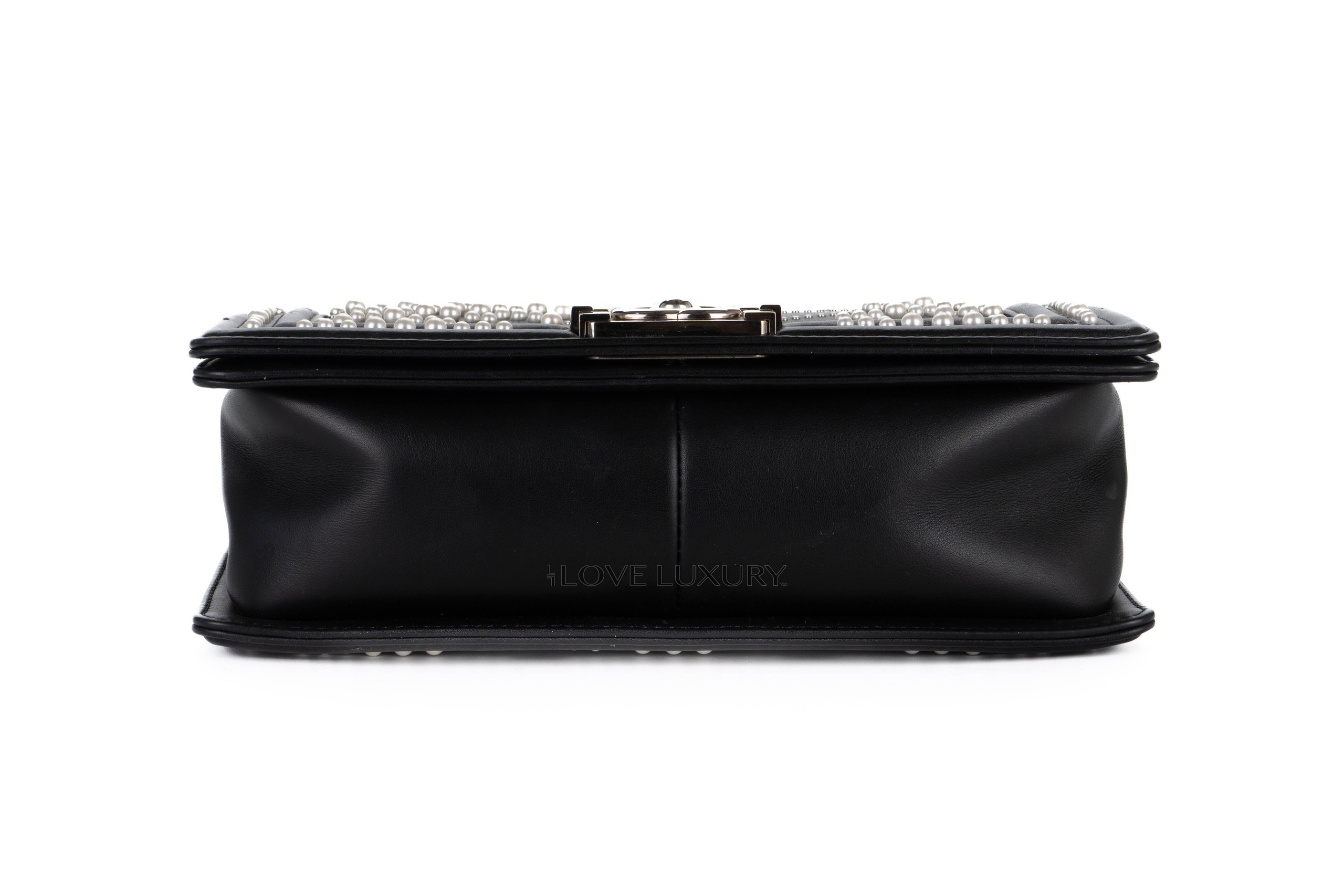 Chanel Boy Bag Pearl Black Calfskin Silver Hardware