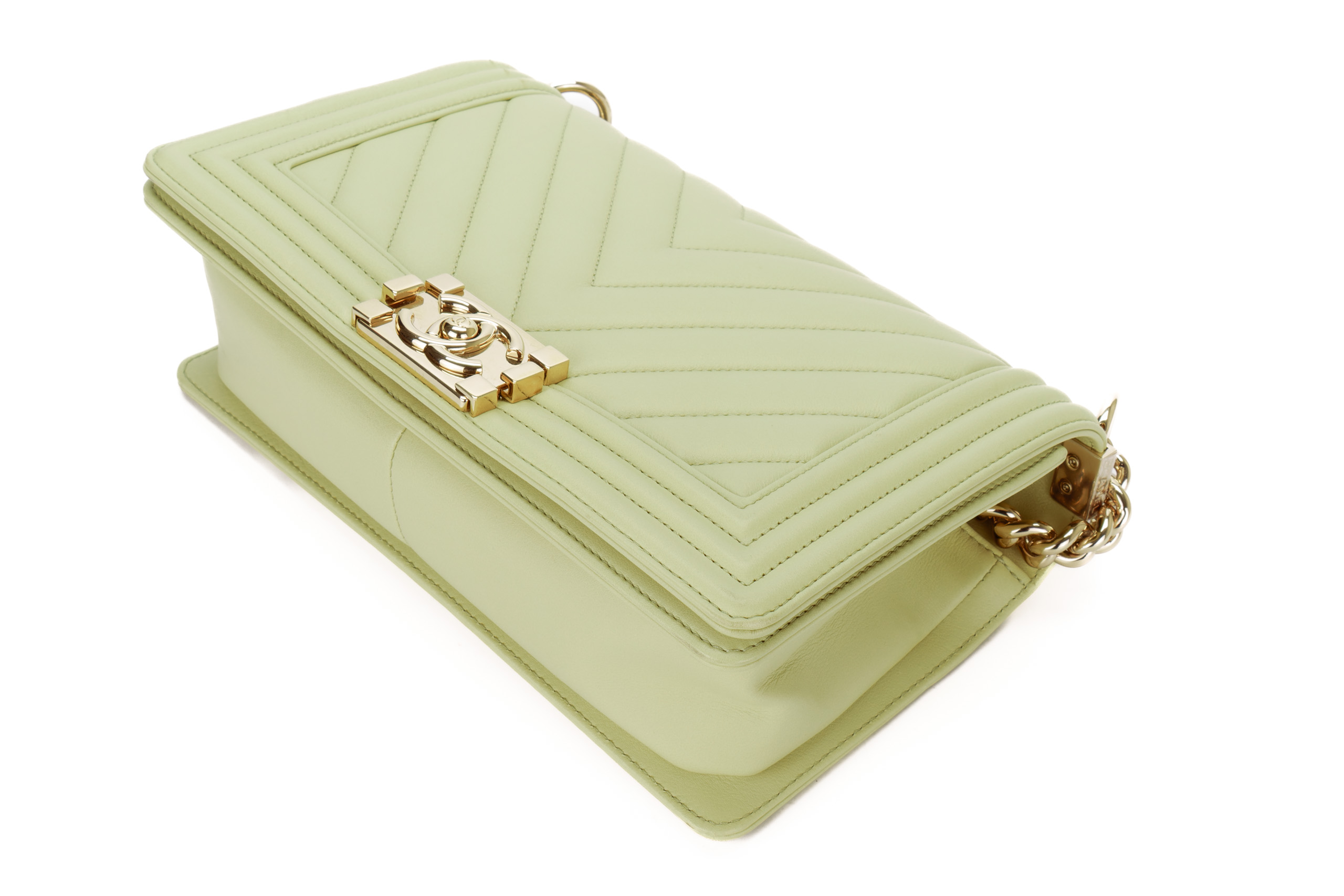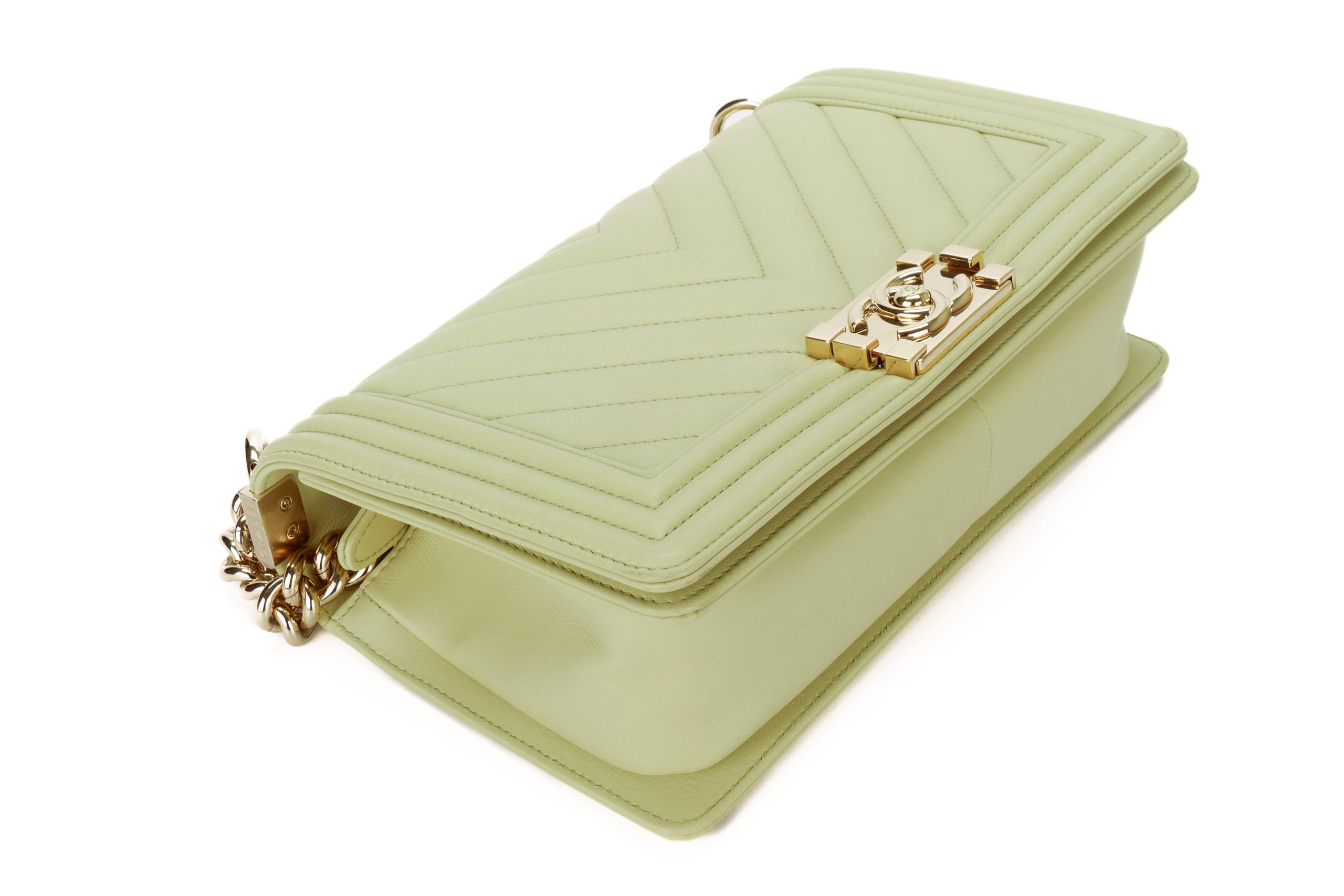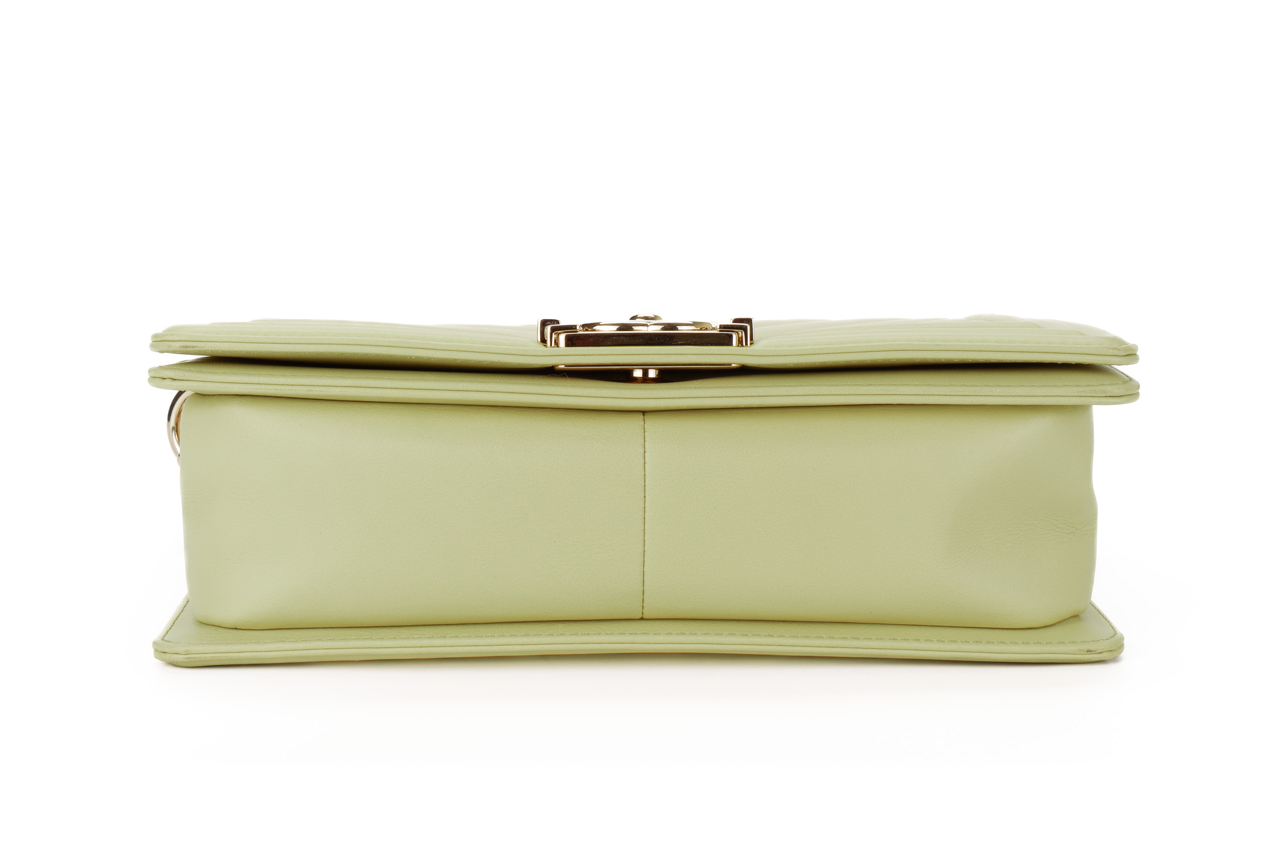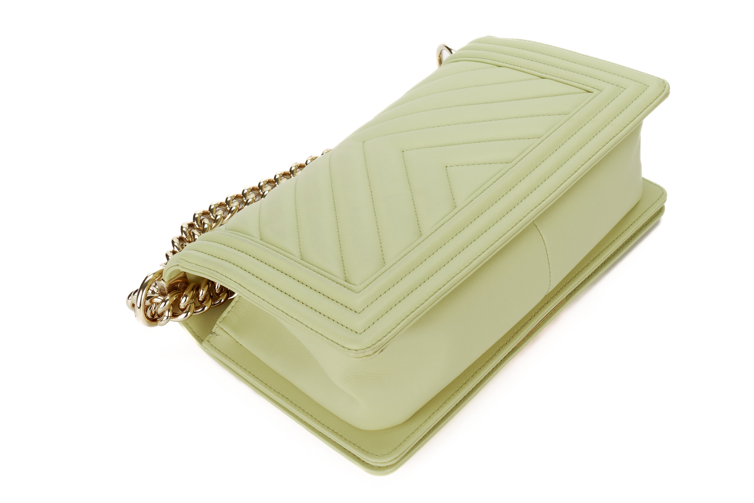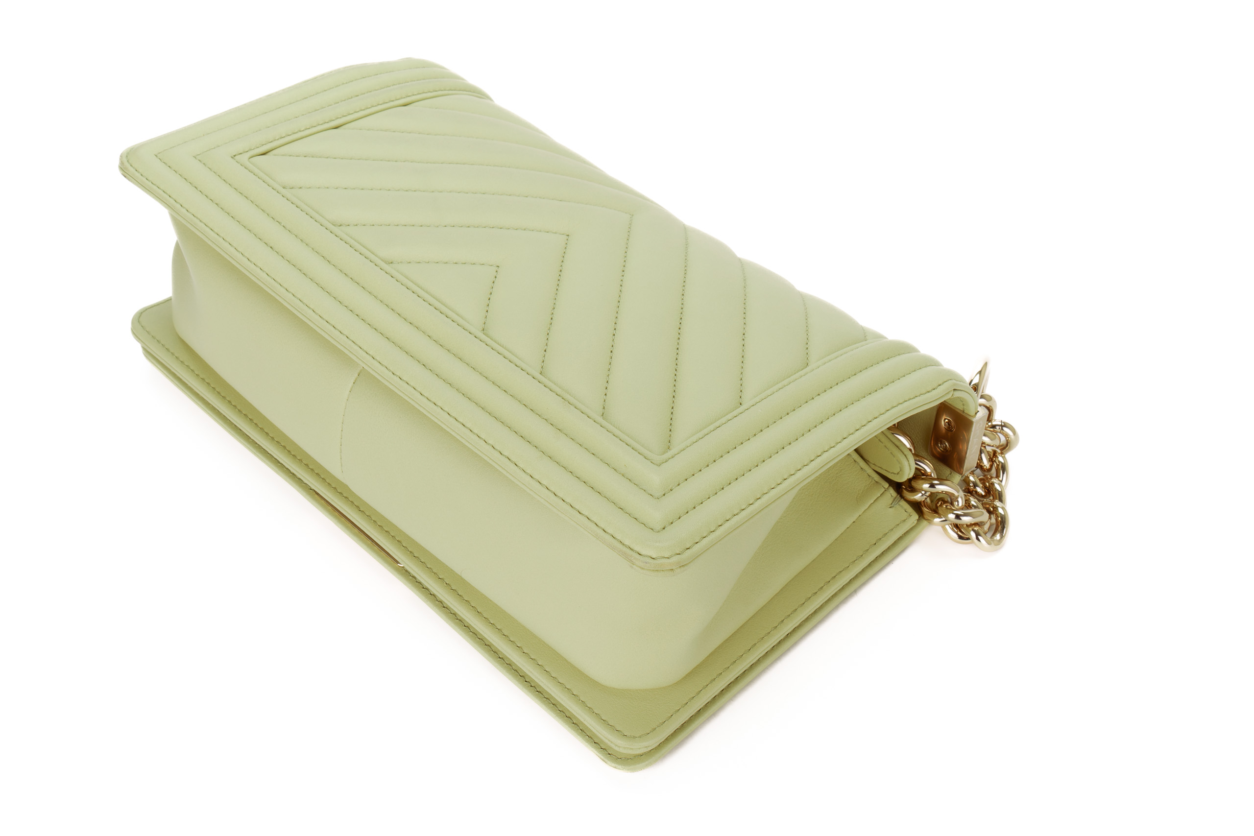 Chanel Boy Medium Lime Yellow Chevron Lambskin Champagne Hardware / Microchipped 2021 Pre-Loved condition