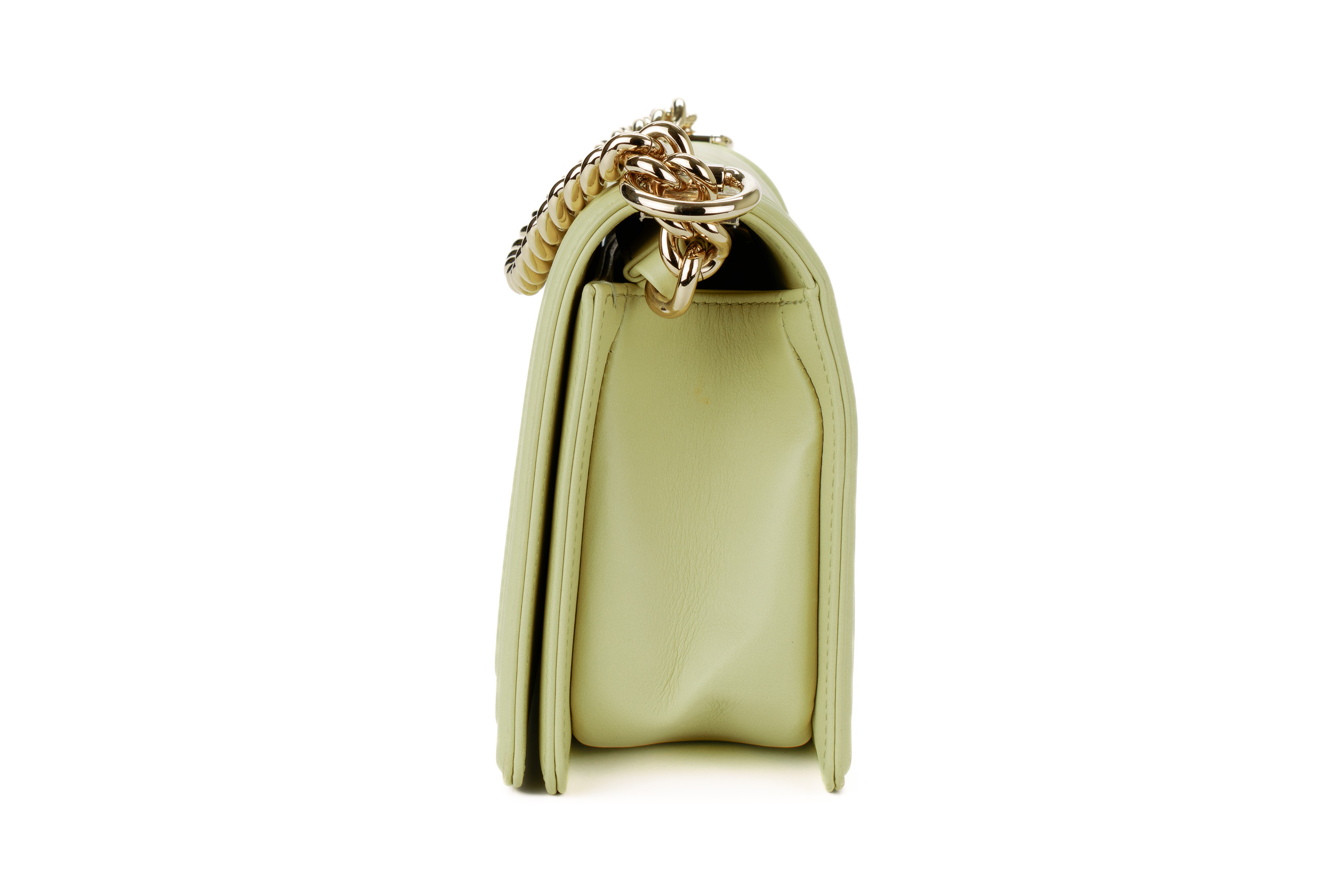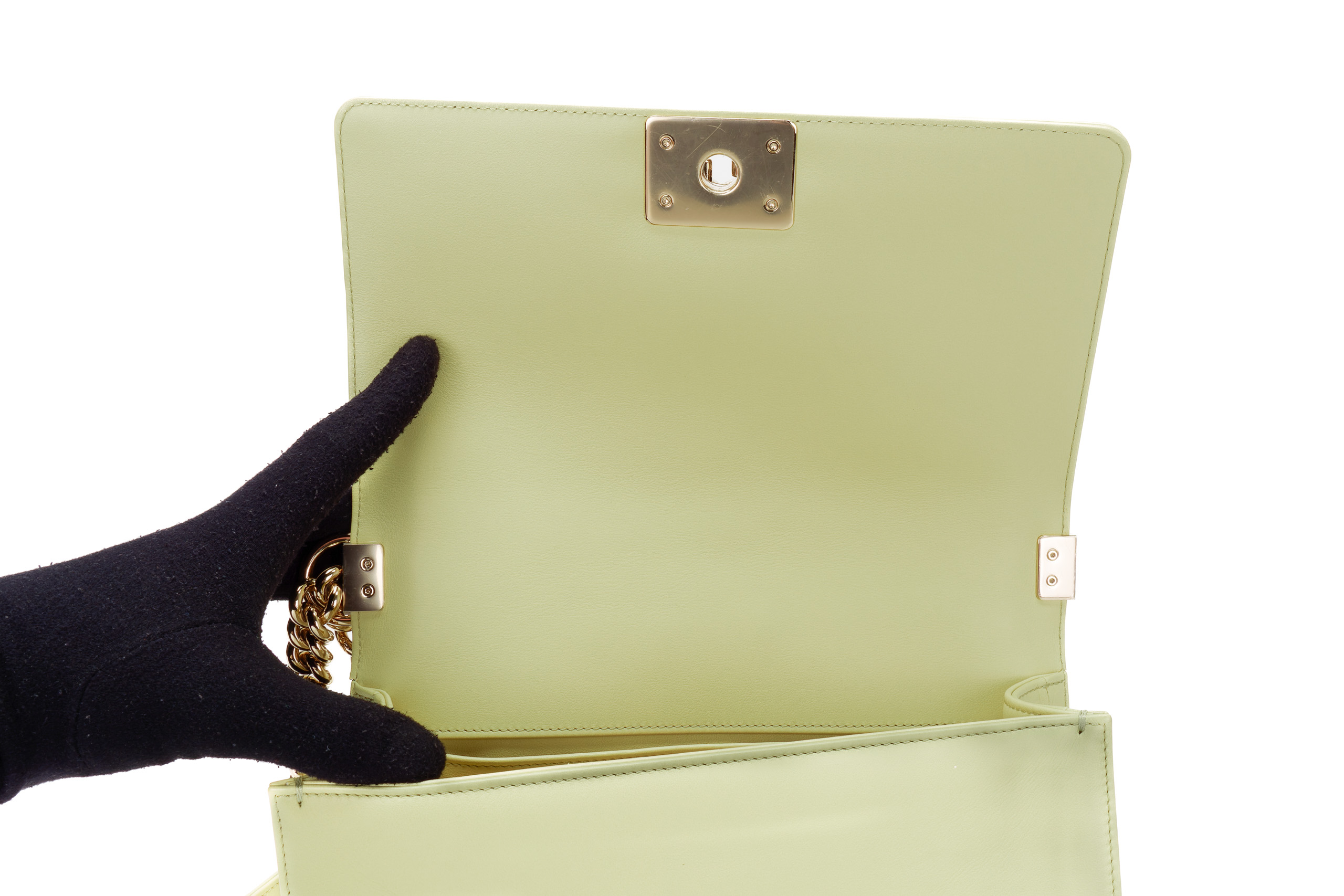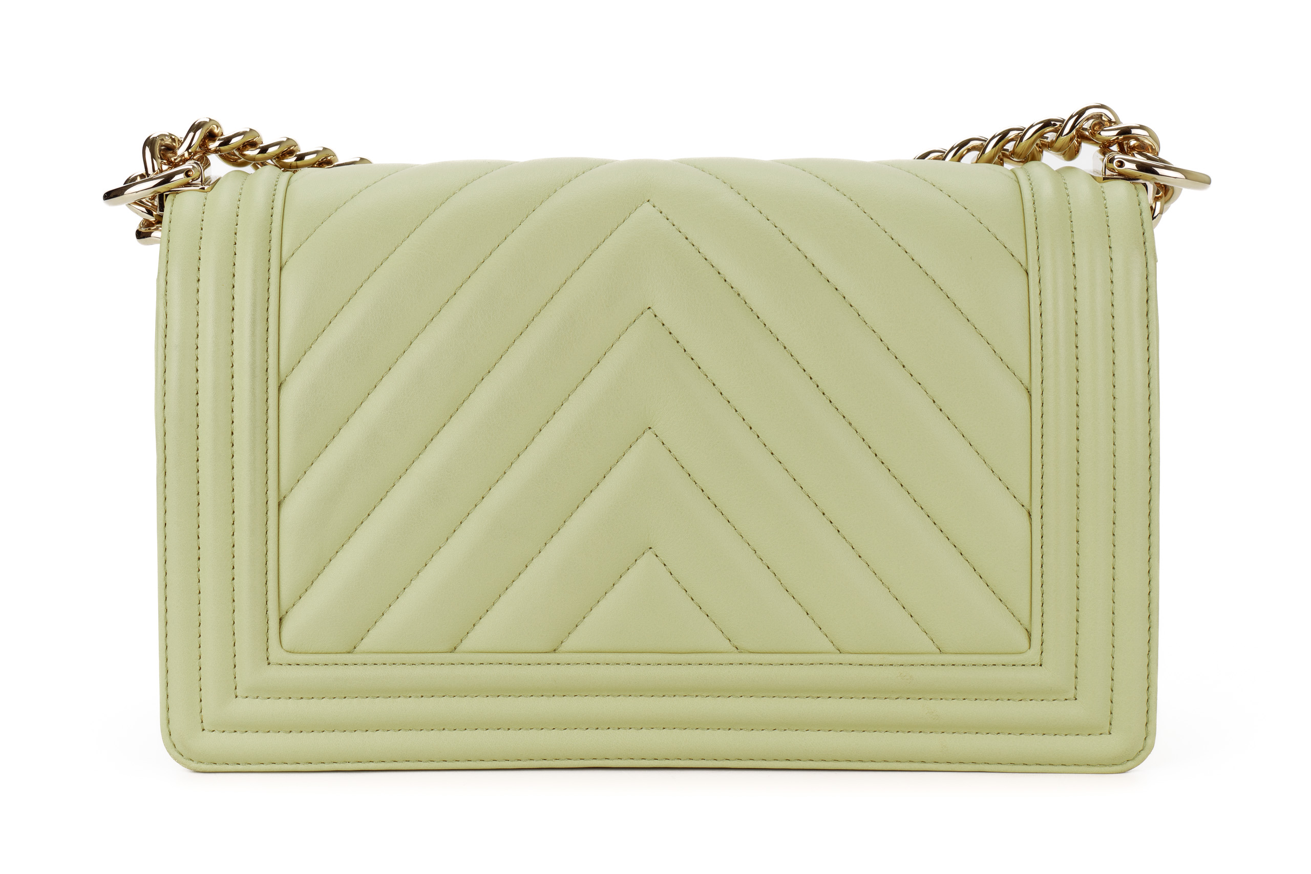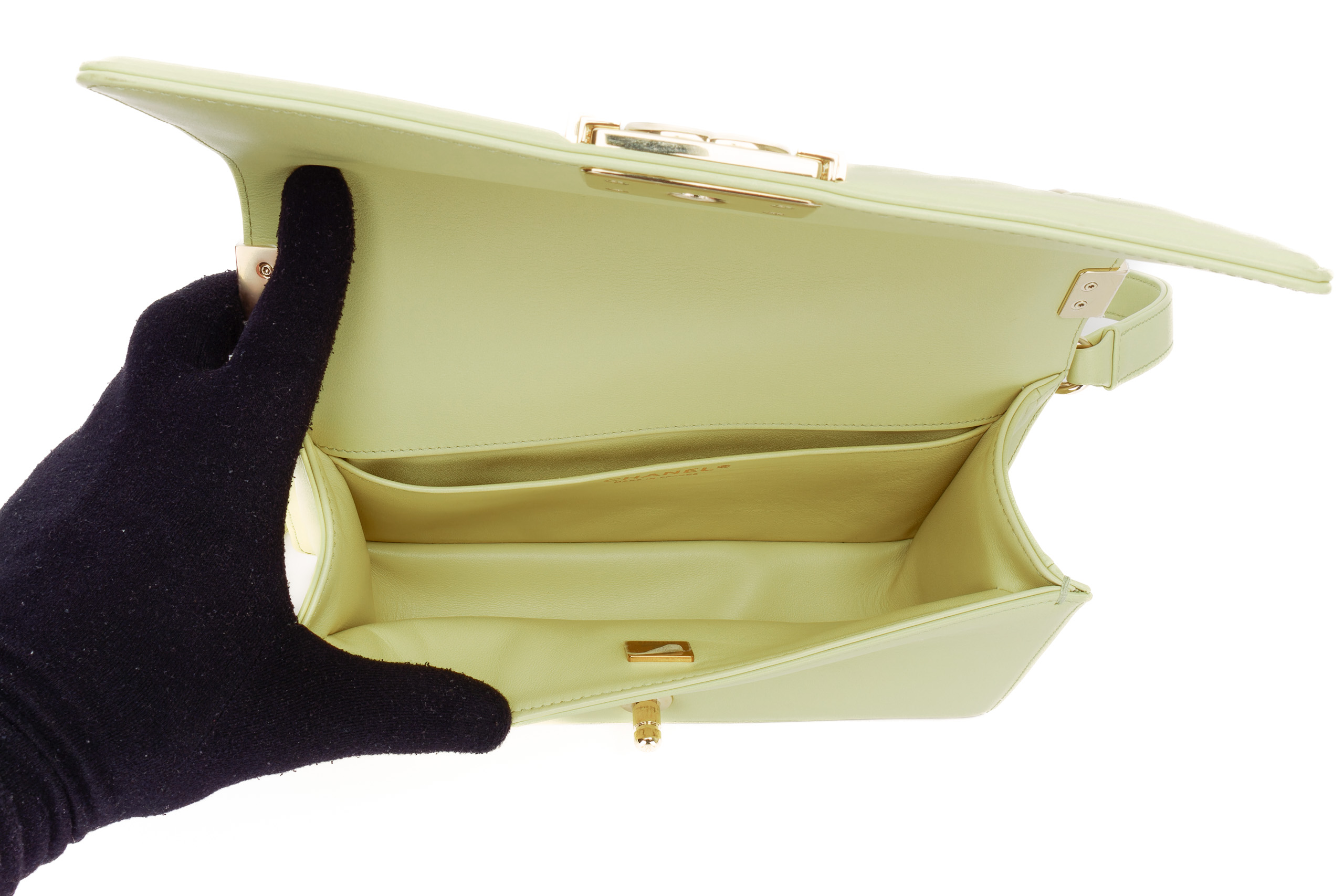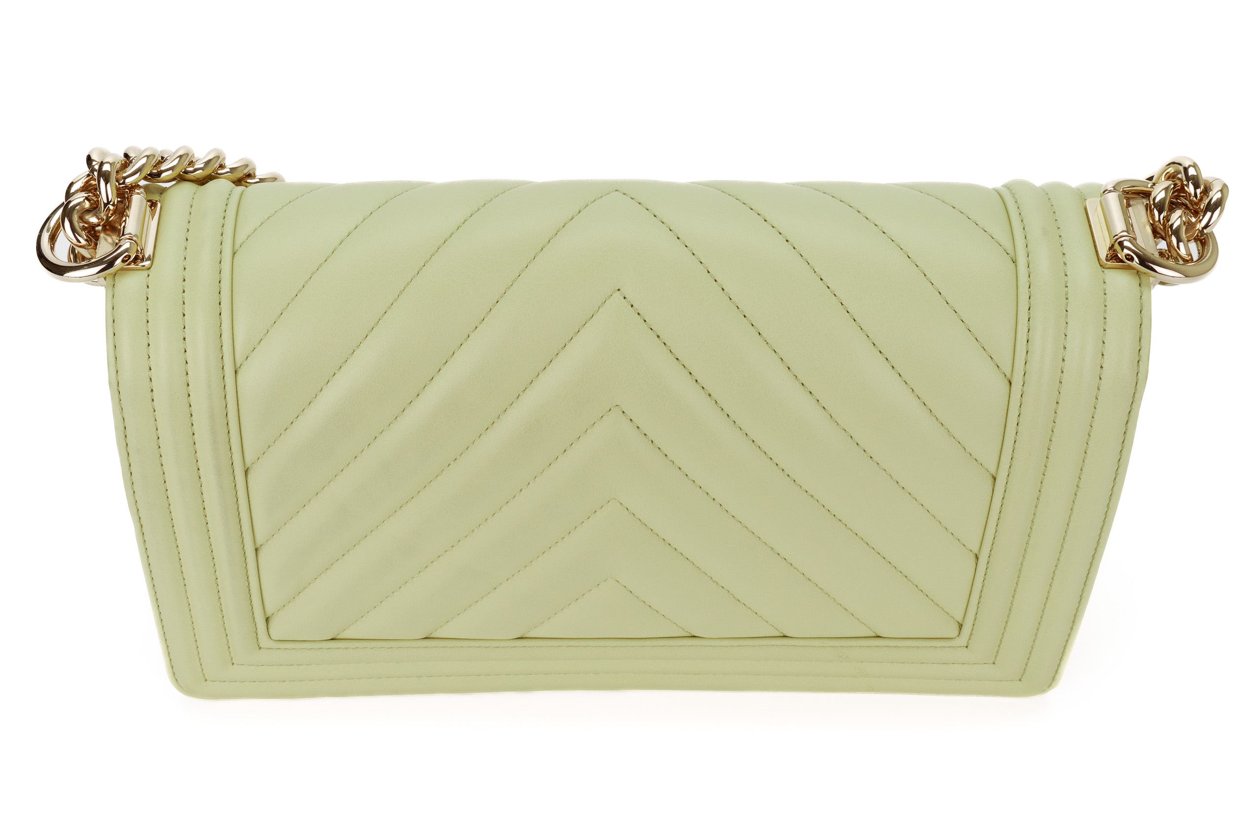 Chanel Boy Medium Lime Yellow Chevron Lambskin Champagne Hardware / Microchipped 2021 Pre-Loved condition