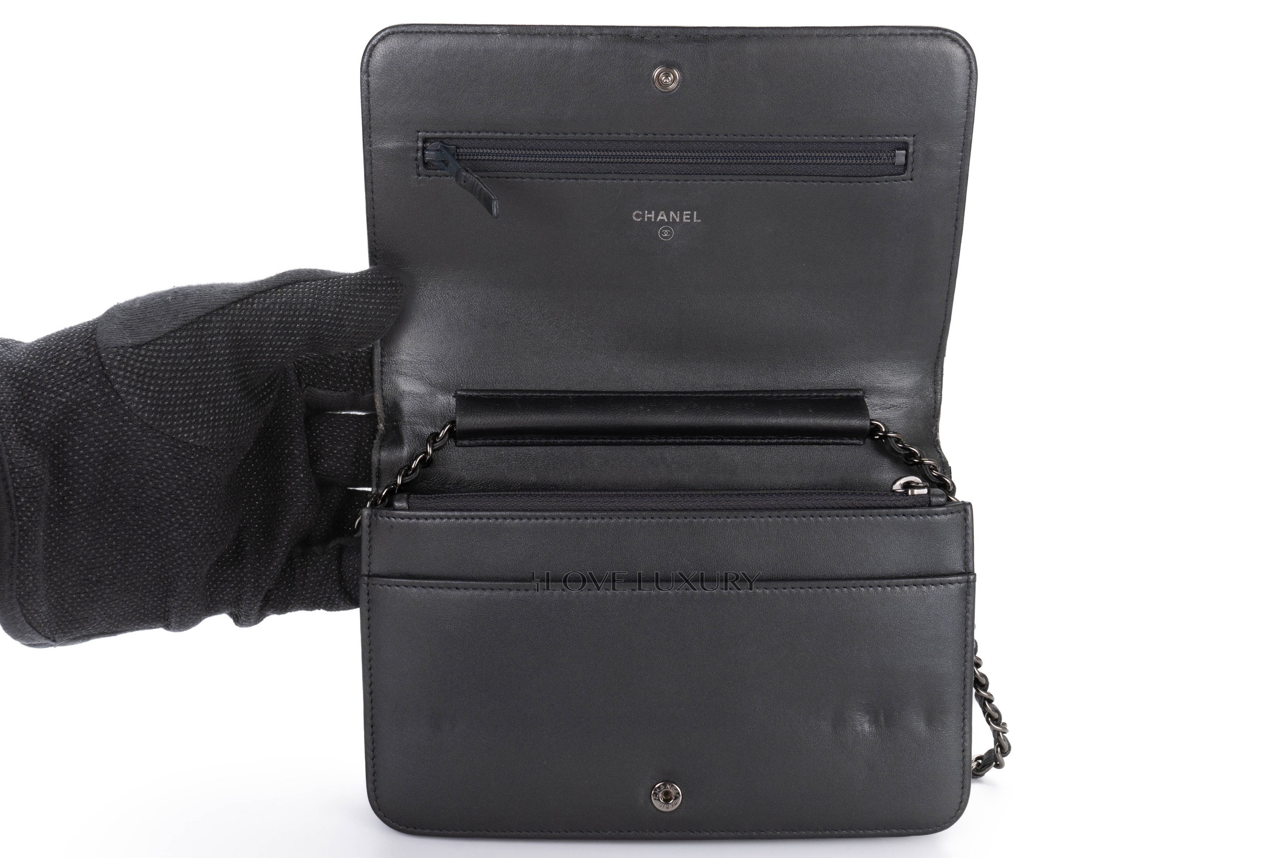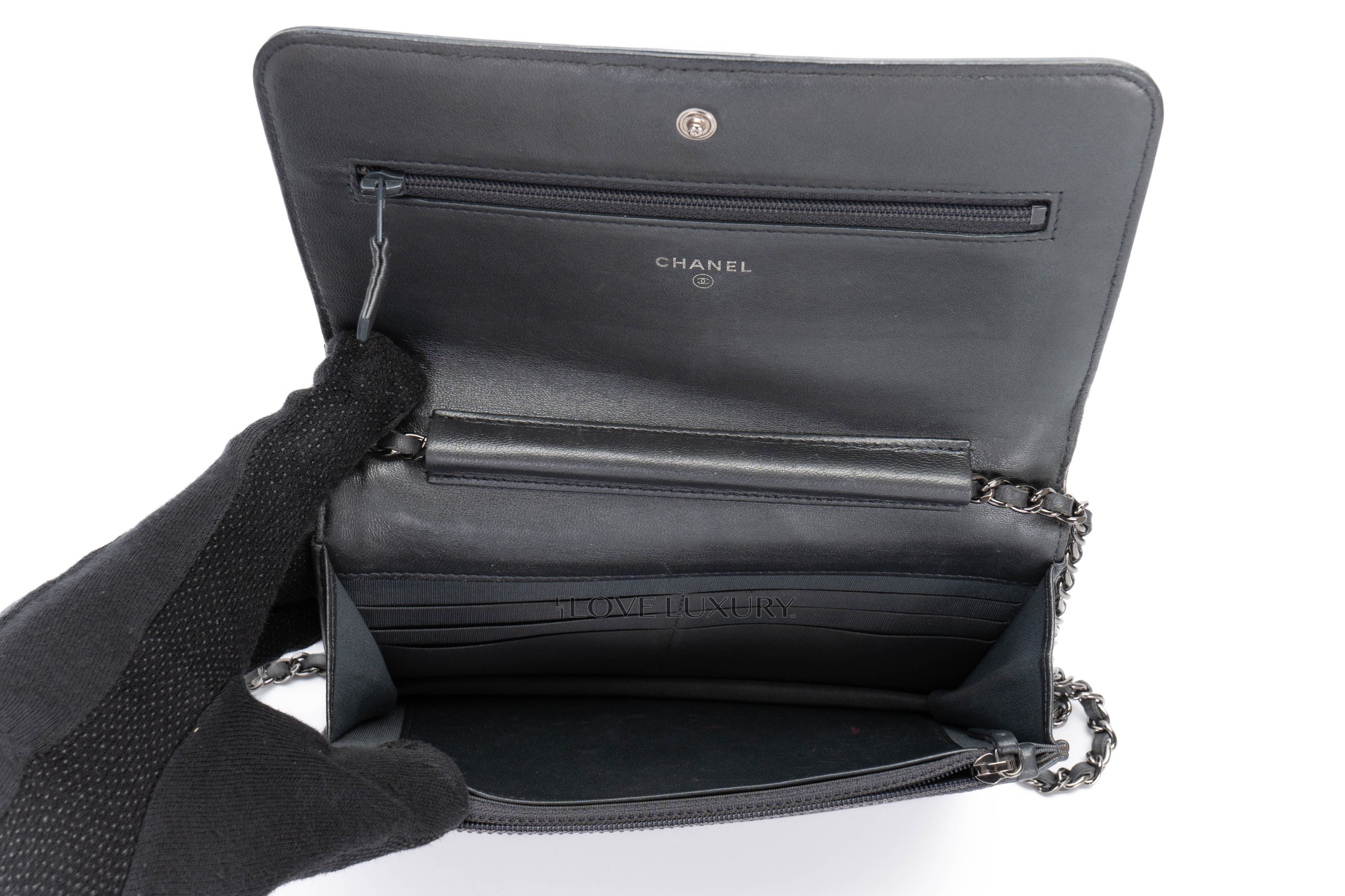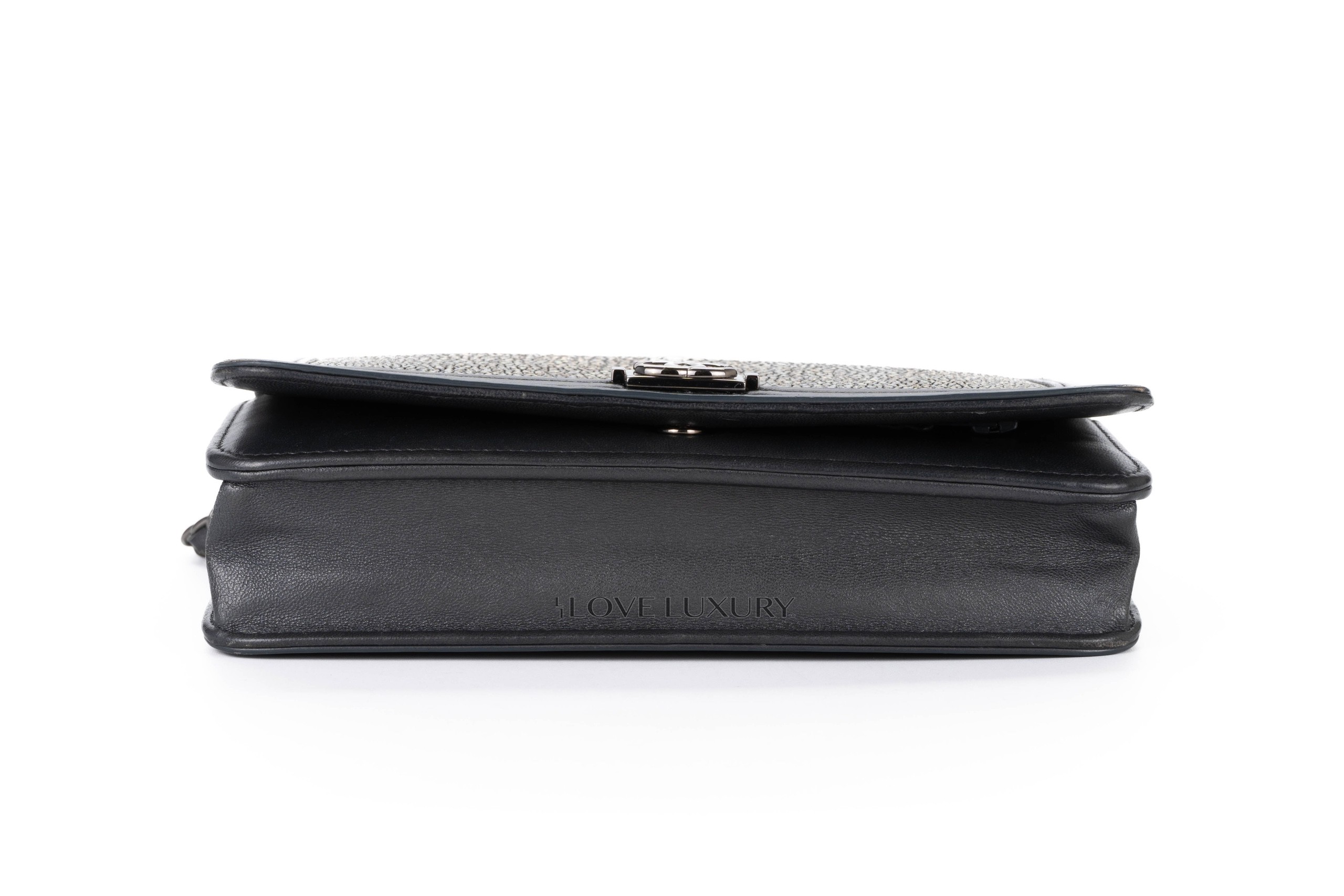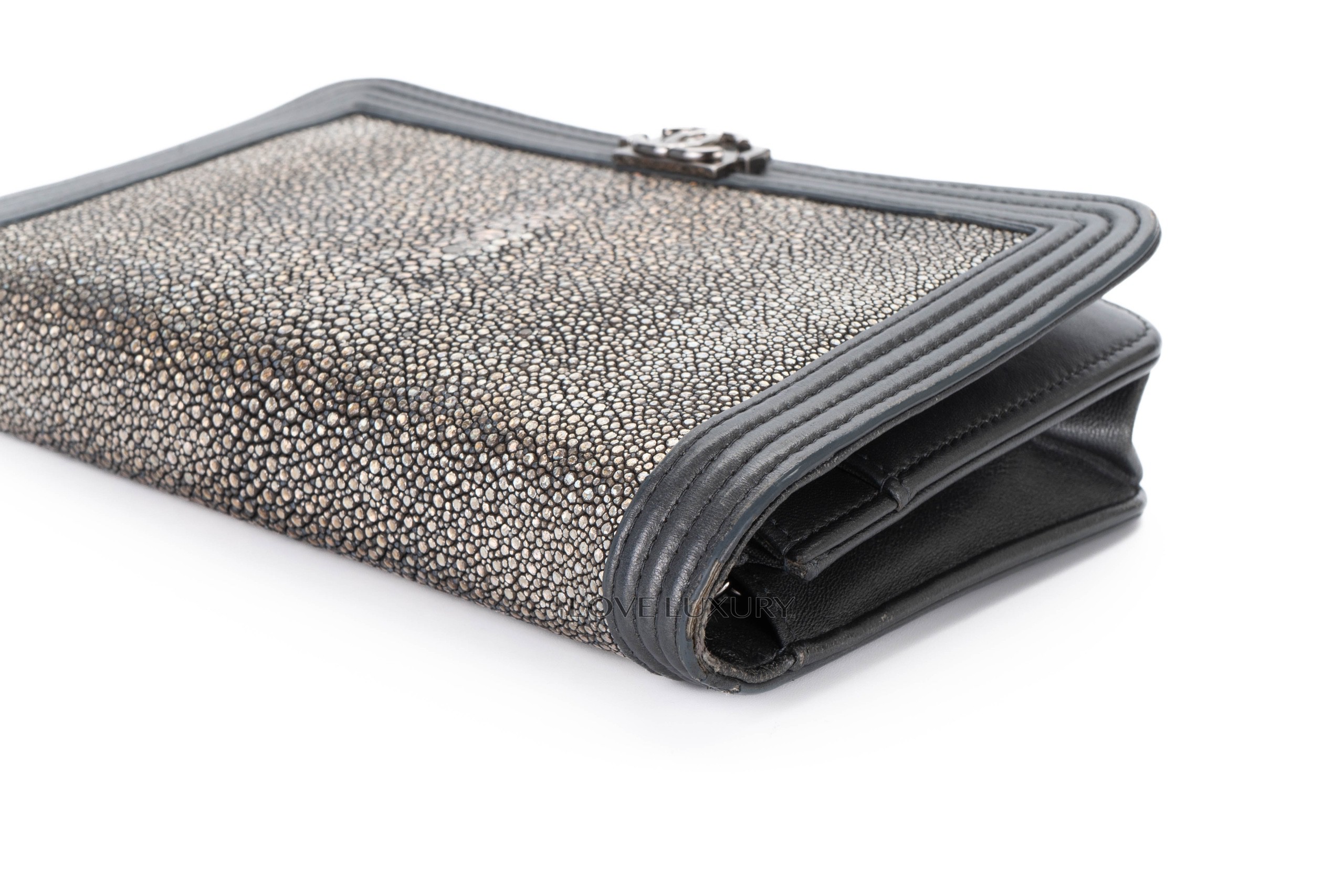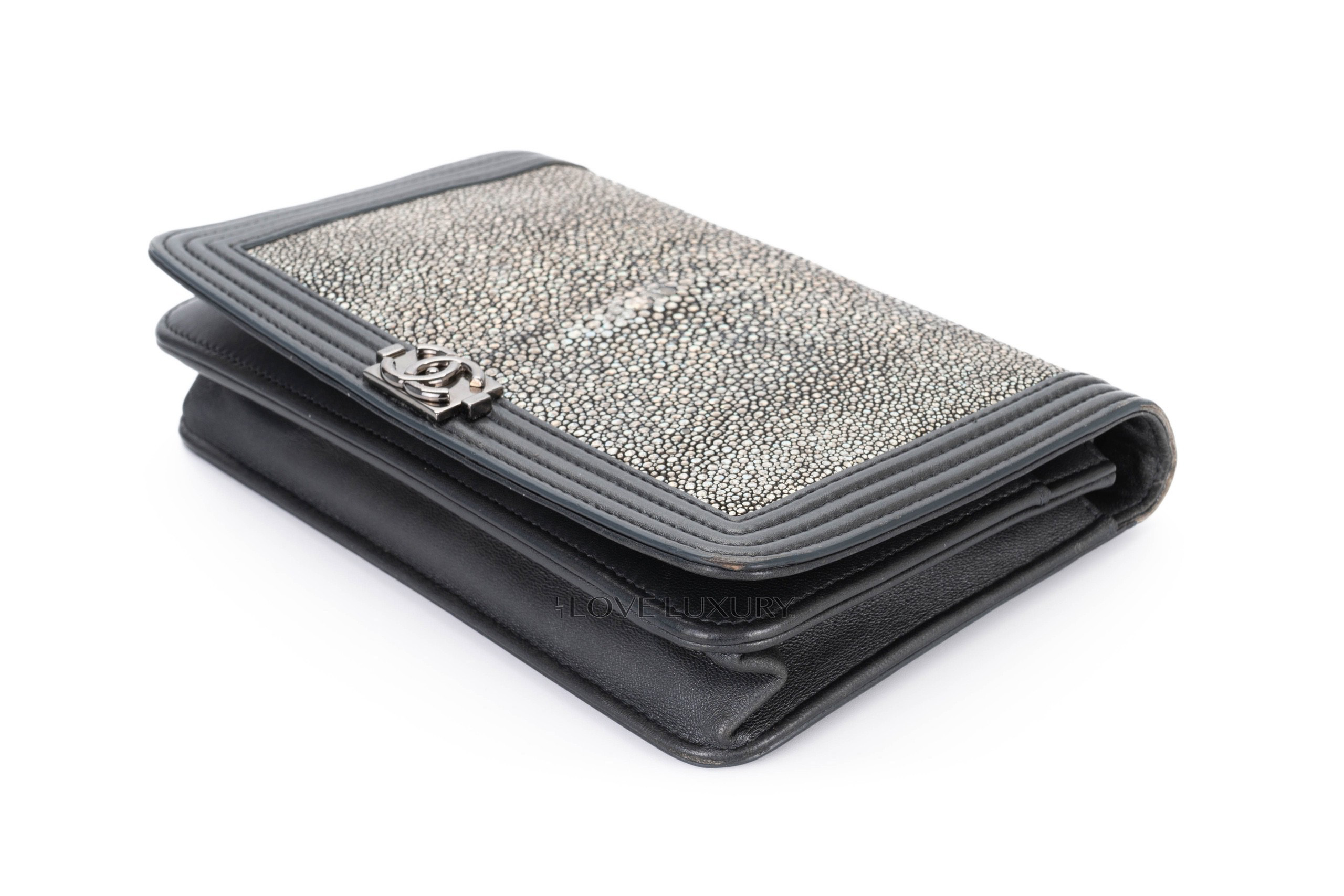 Chanel Boy Wallet on Chain Stingray Lambskin Grey Silver Hardware / 21 series 2015-16 Pre-Loved condition
