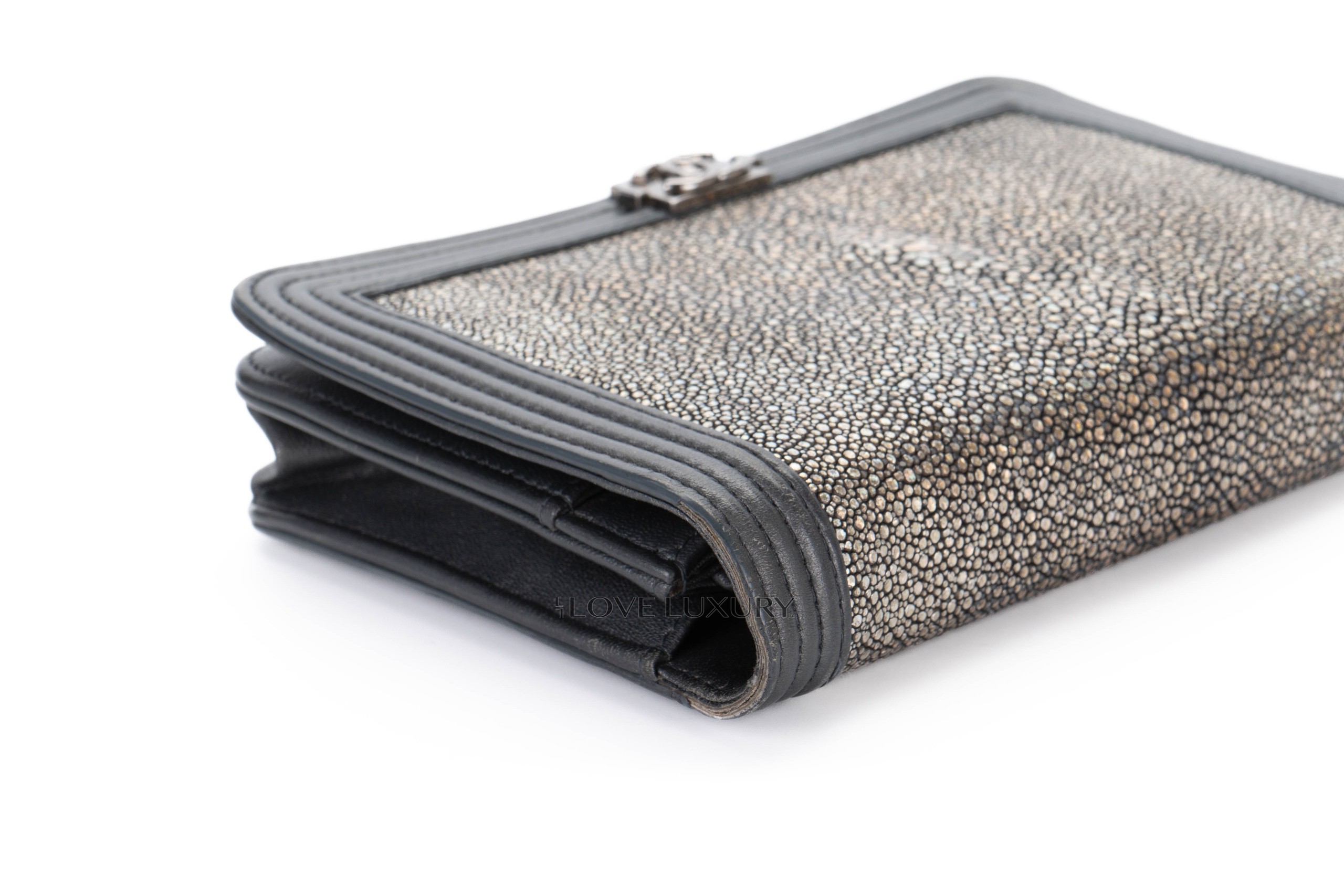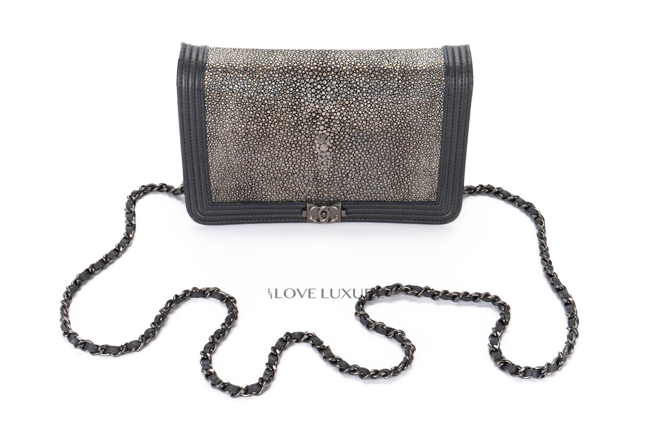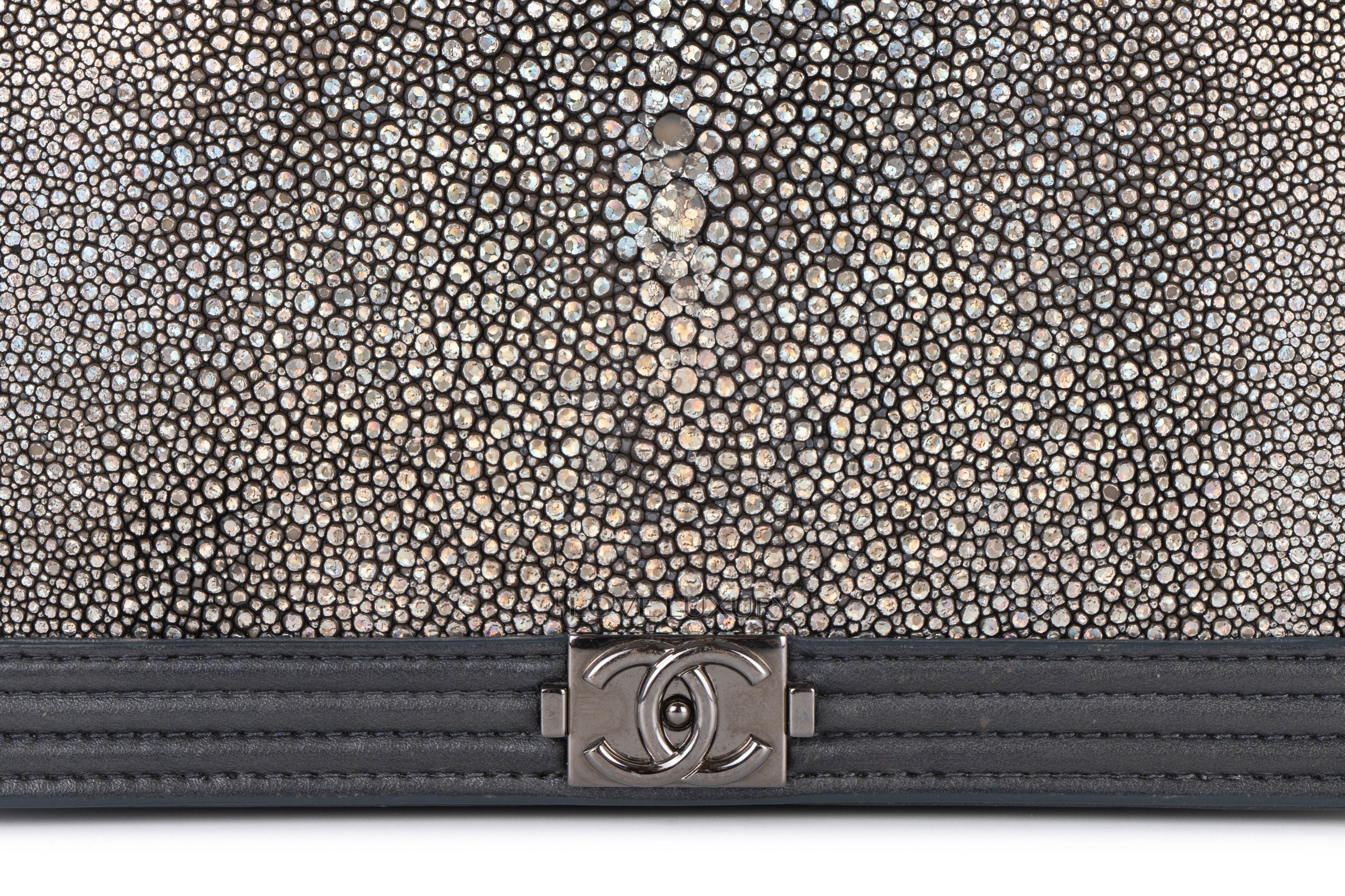 Chanel Boy Wallet on Chain Stingray Lambskin Grey Silver Hardware