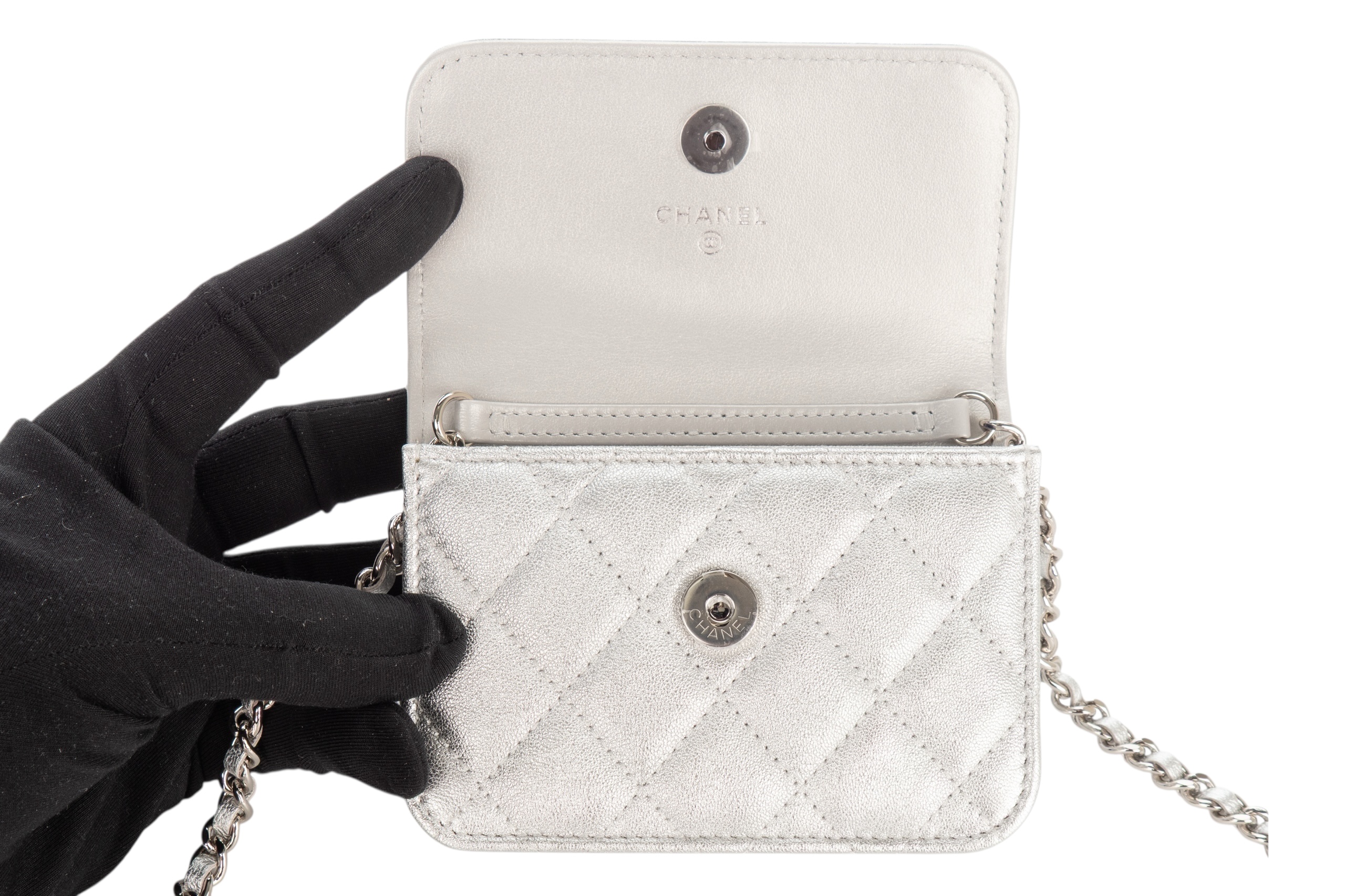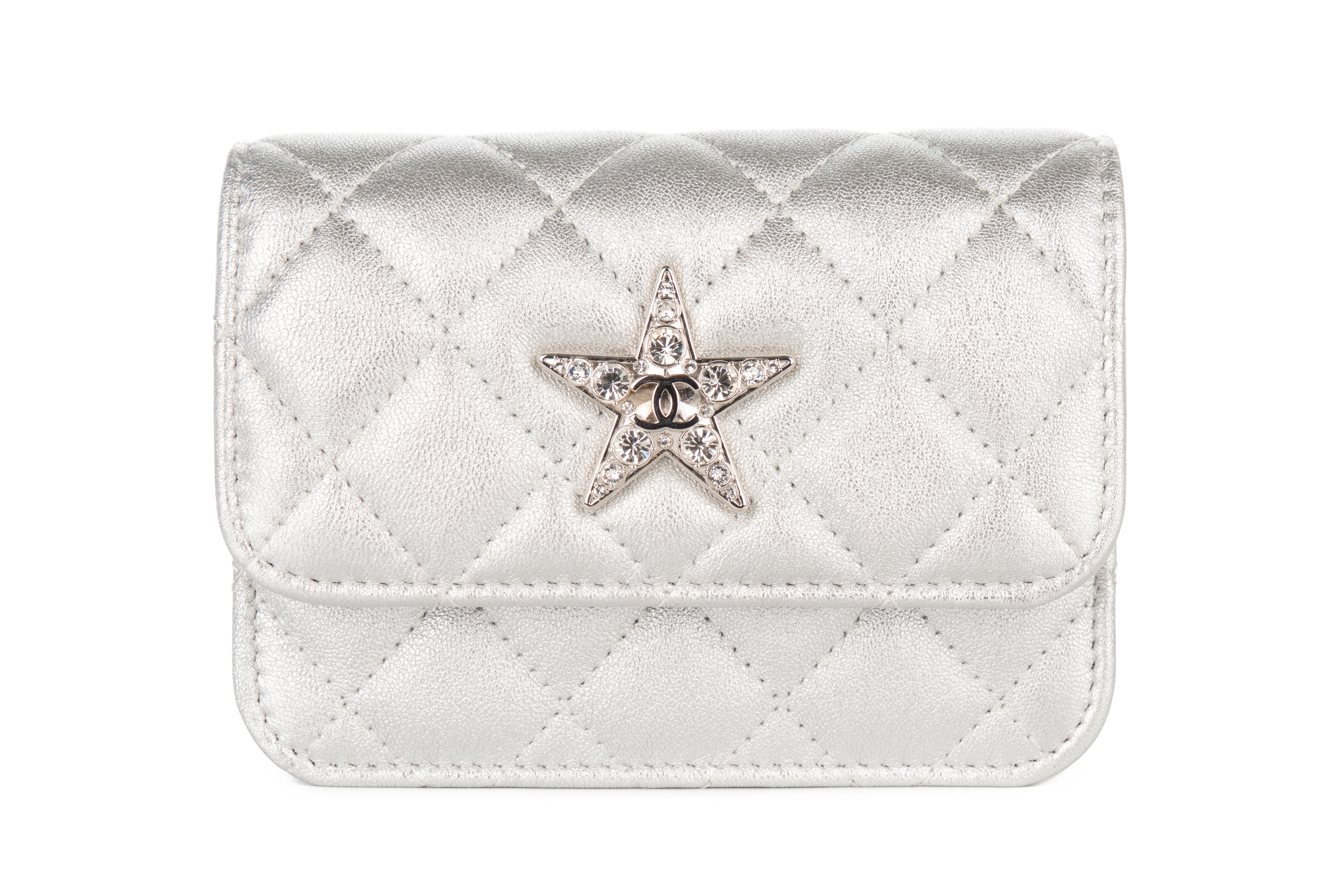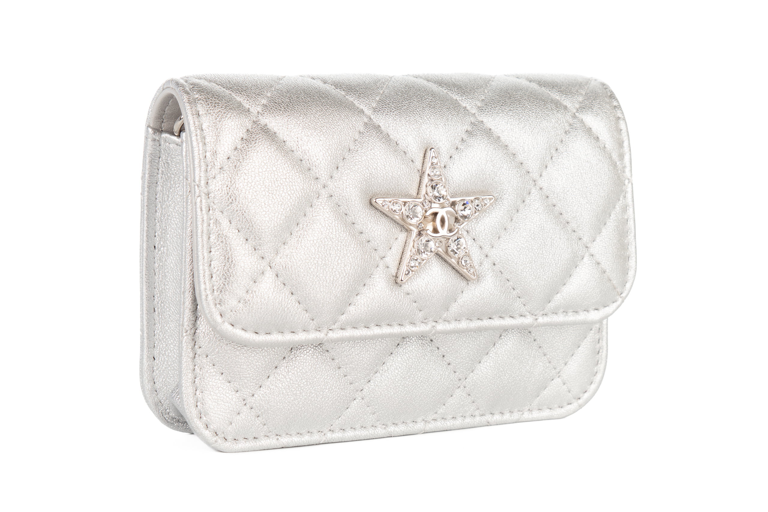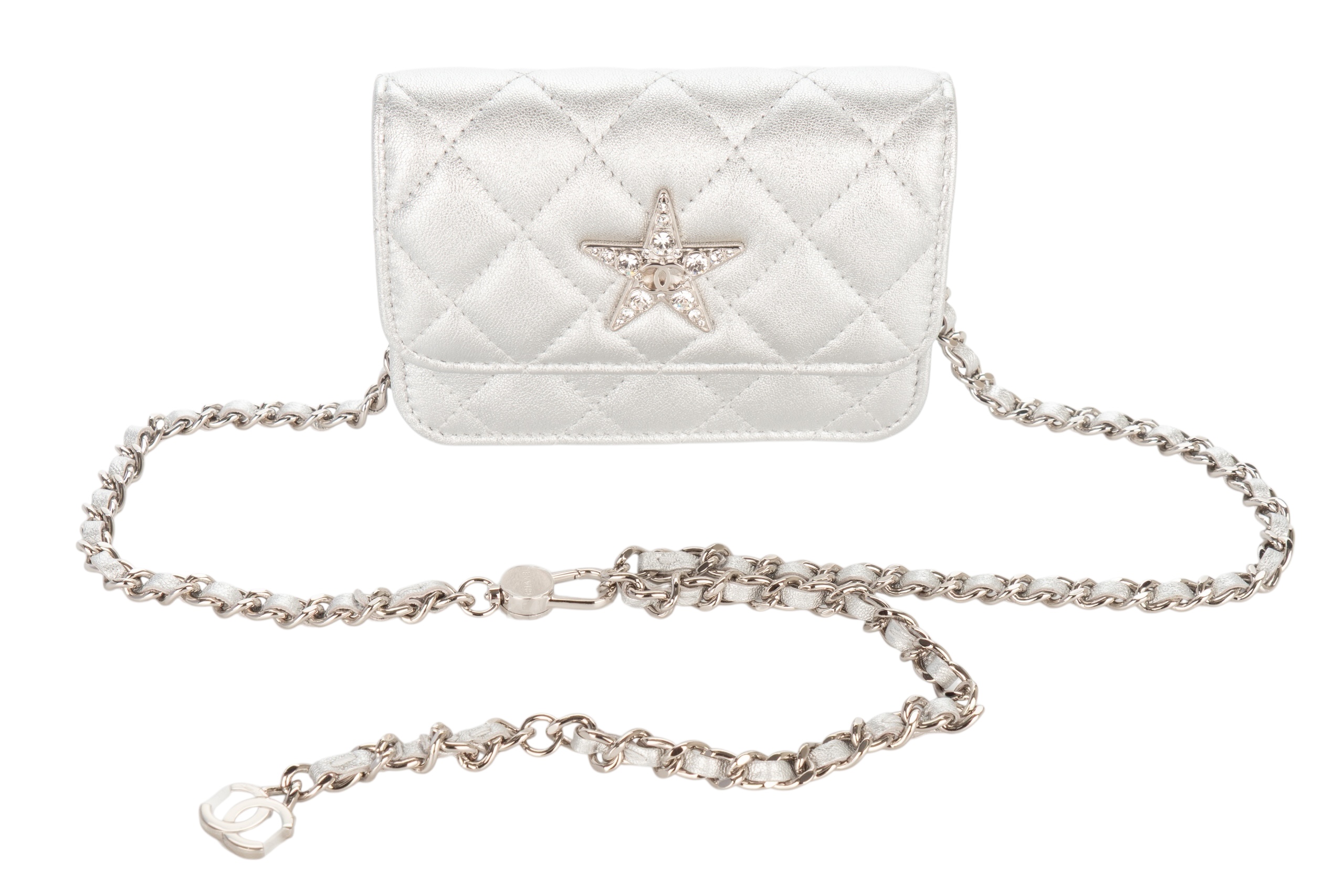 Chanel Chain Belt Bag Crystal Quilted Star Mini Metallic Lambskin Silver Hardware / Microchipped, Unworn