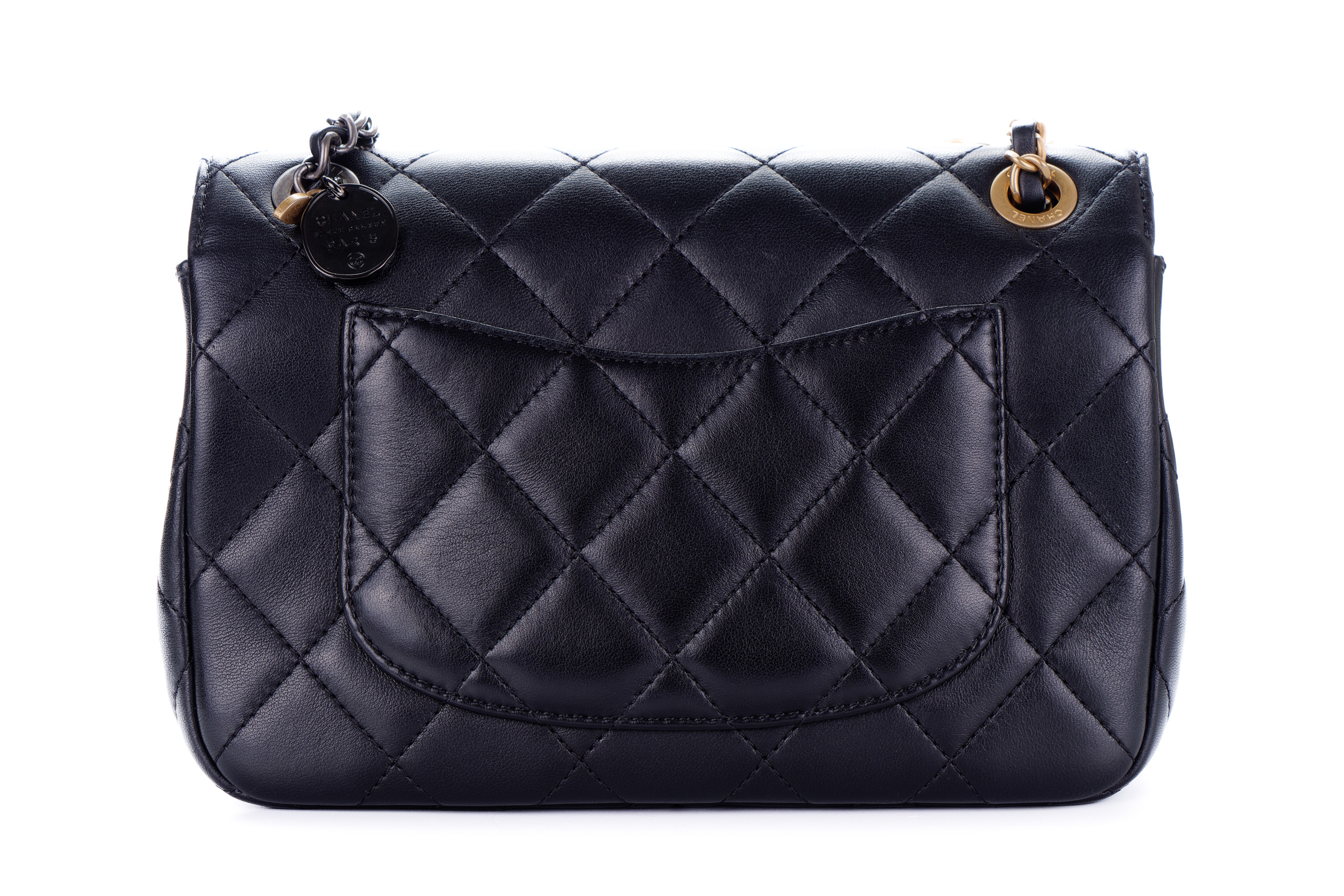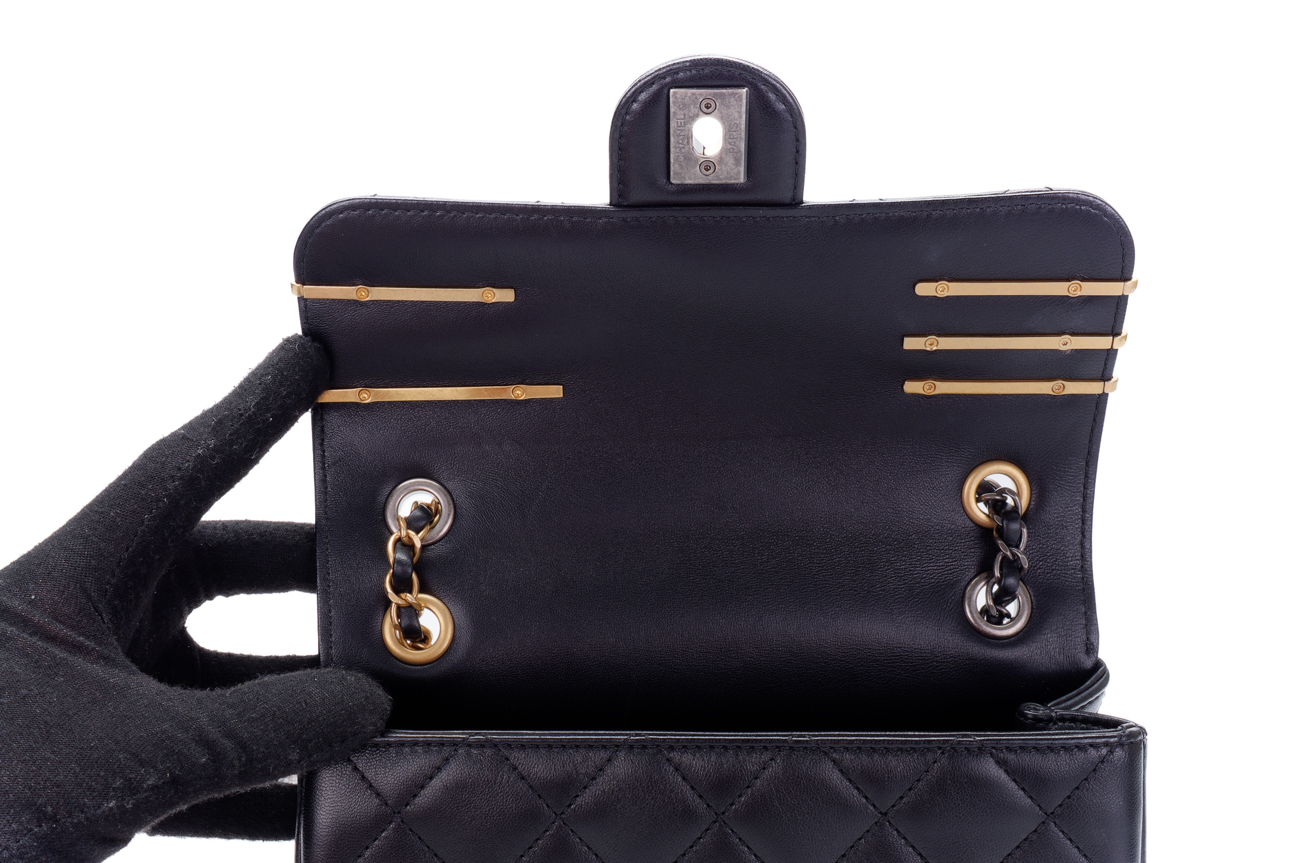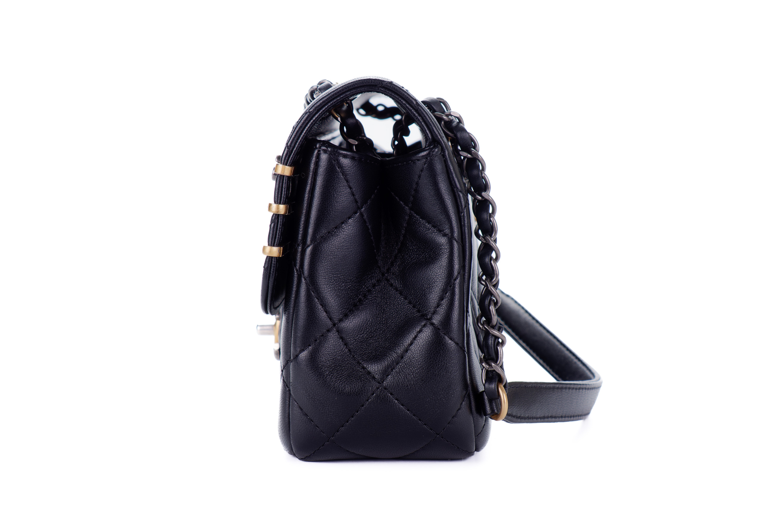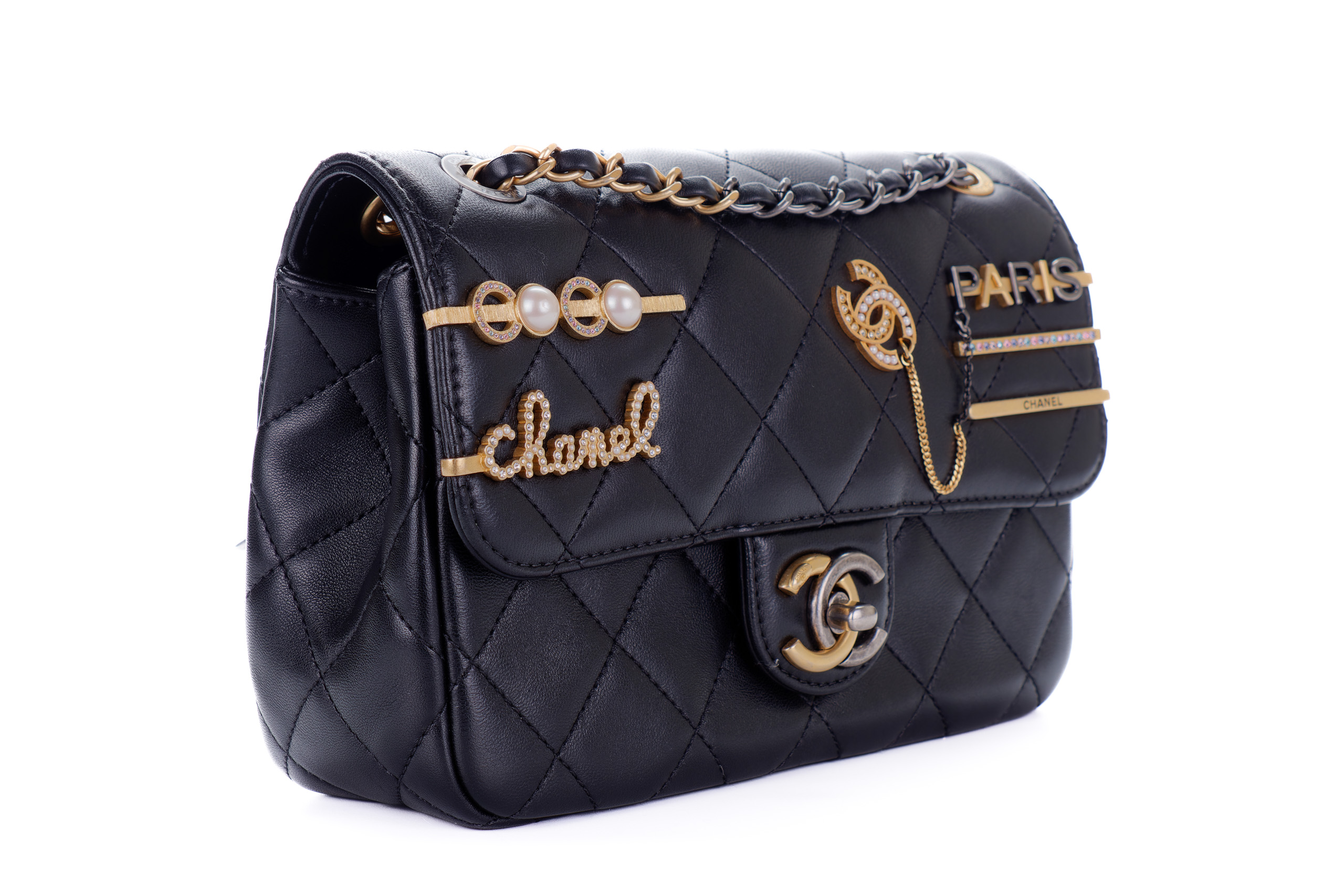 Chanel Charm Flap Paris Black Lambskin Gold Hardware