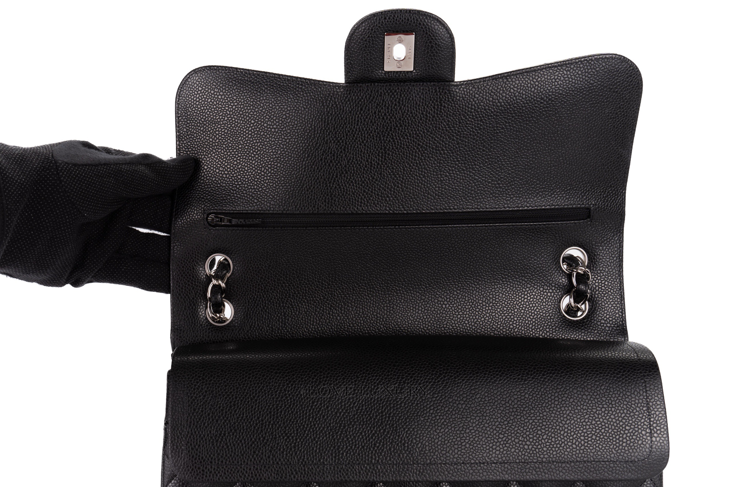 Chanel Classic Flap Black Caviar Jumbo Silver Hardware