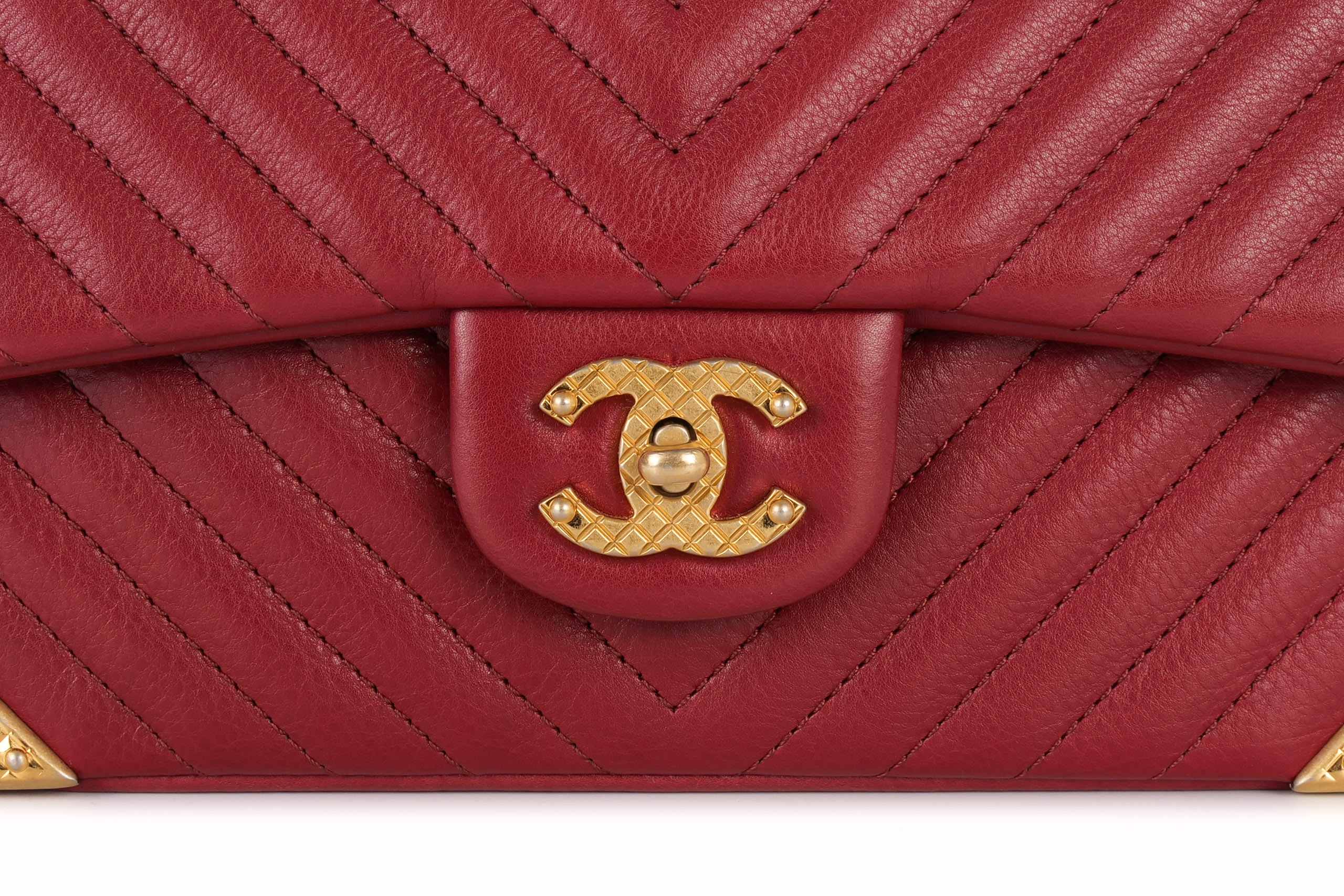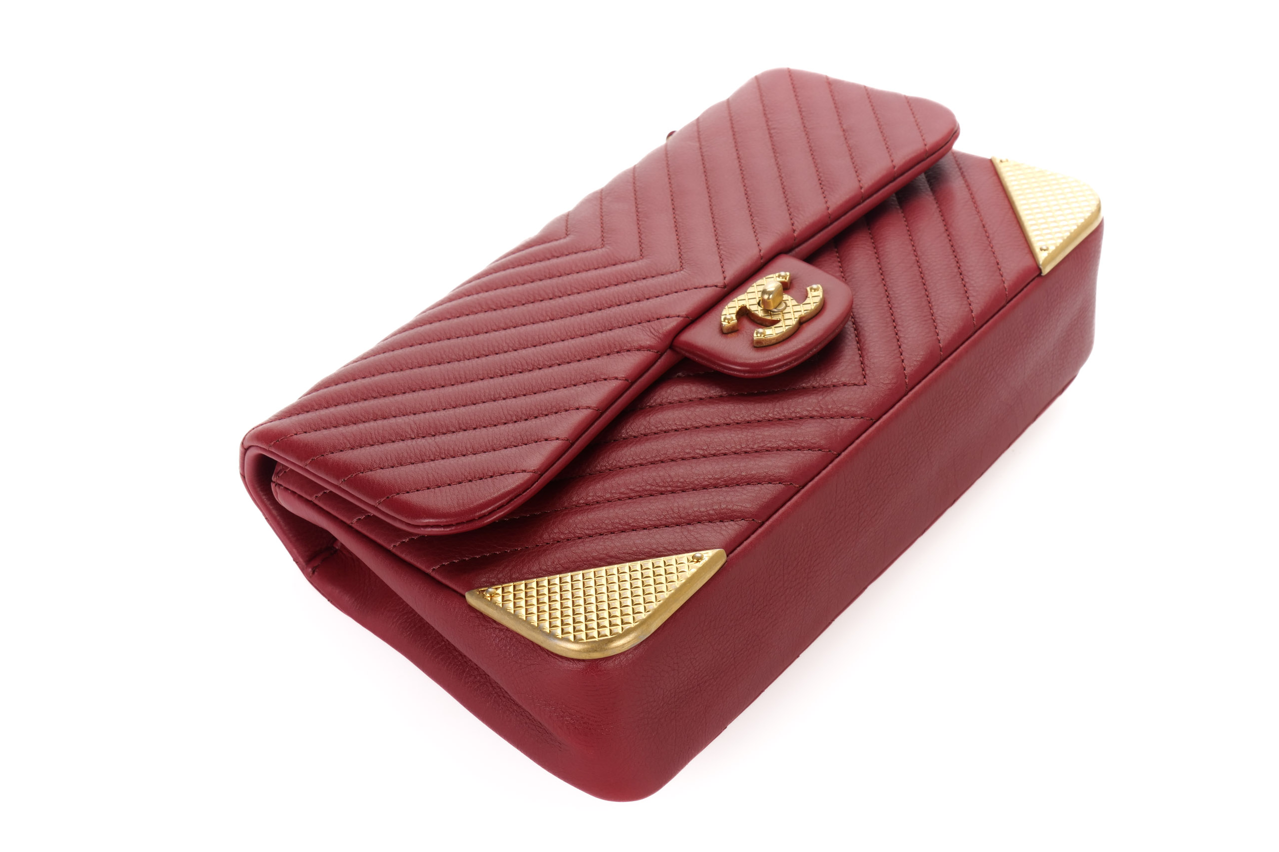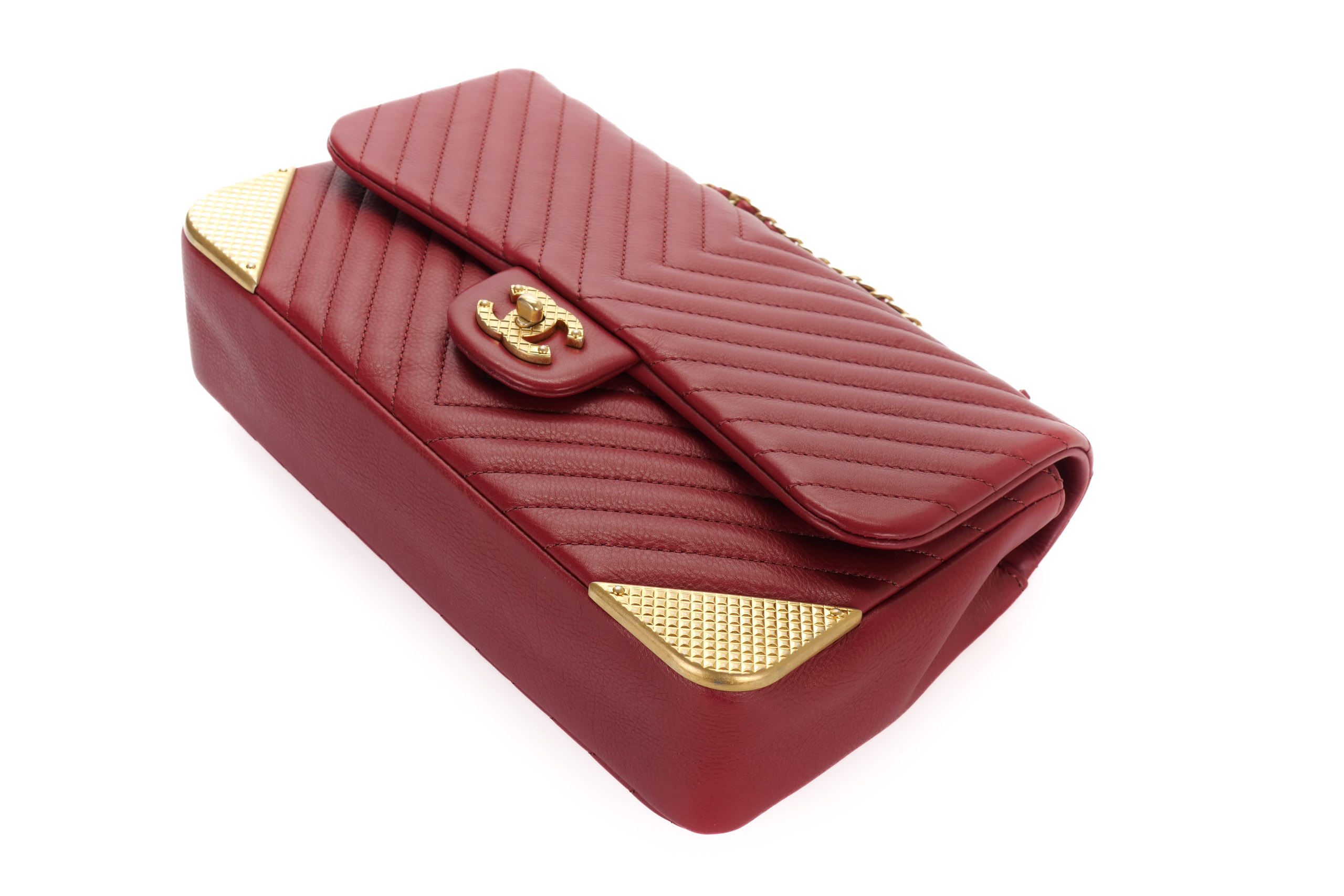 Chanel Classic Single Flap Chevron Red Rock The Corner Flap Gold Hardware