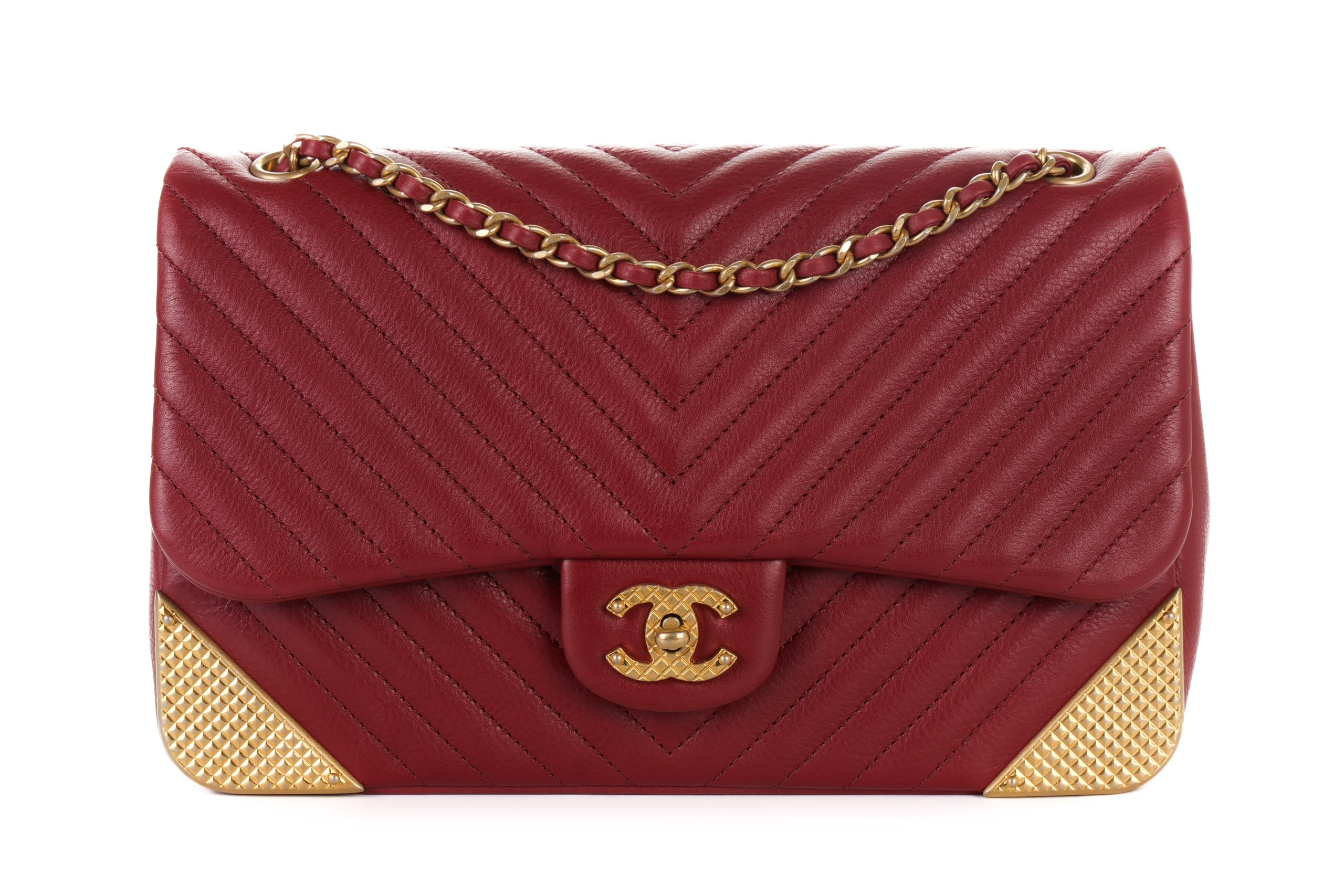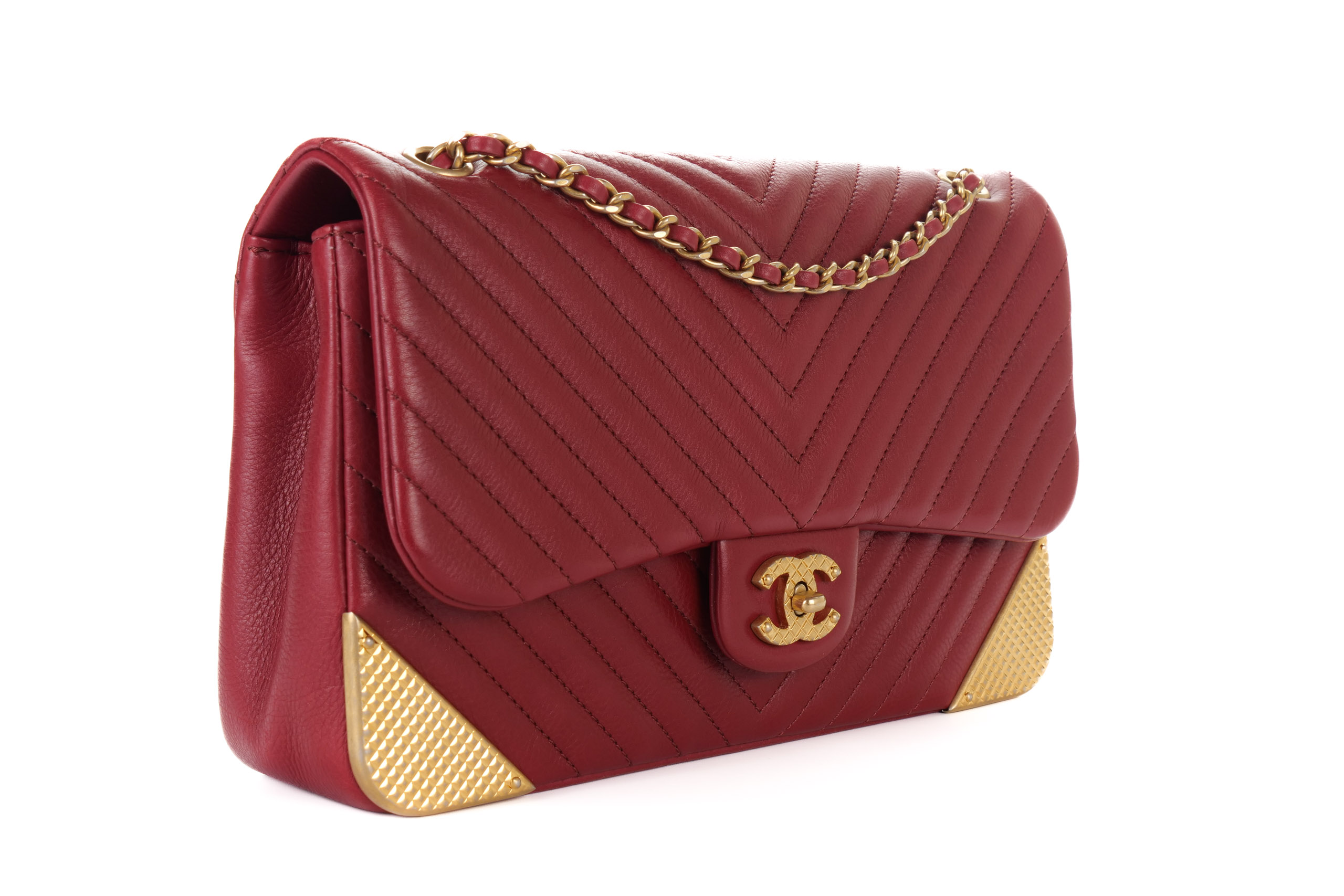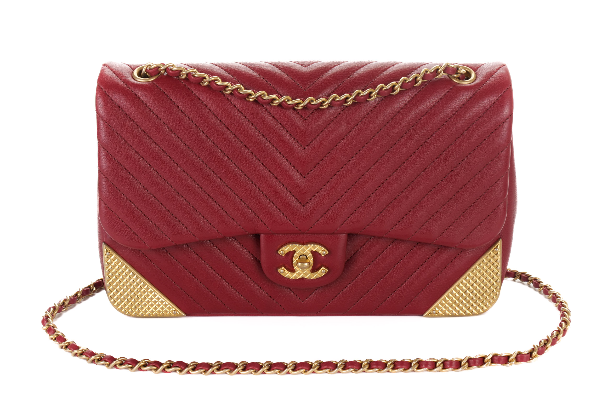 Chanel Classic Single Flap Chevron Red Rock The Corner Flap Gold Hardware
