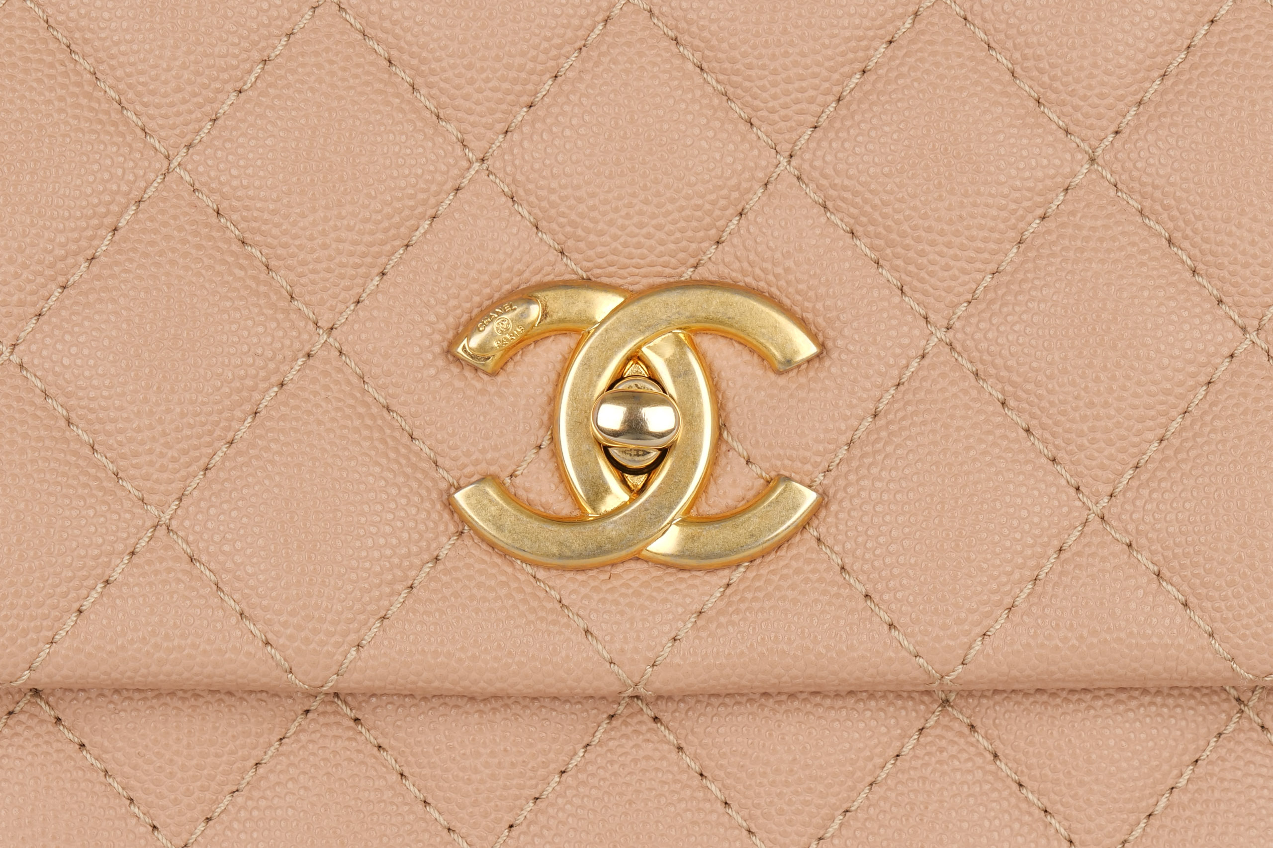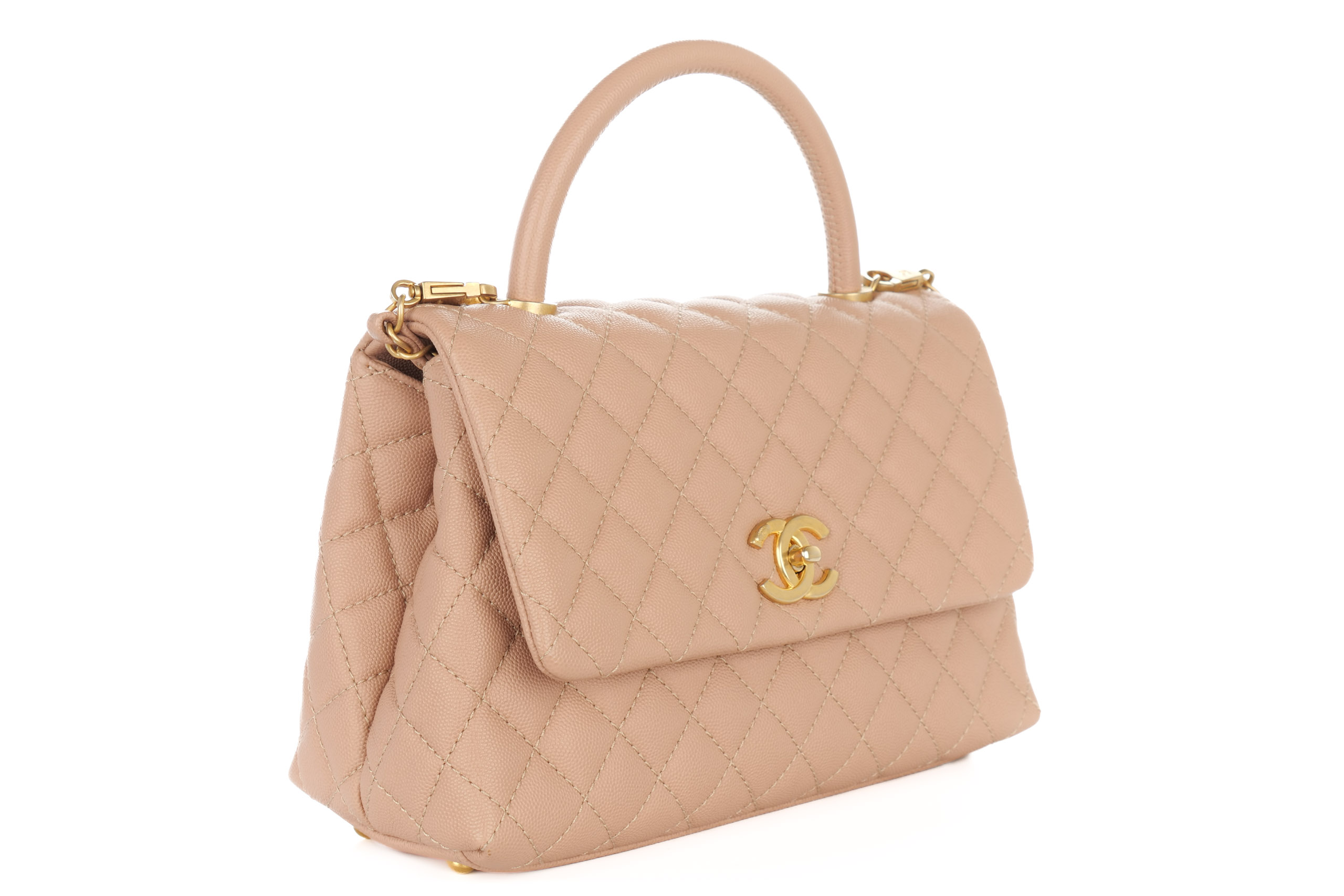 Chanel Coco Top Handle Medium Beige Caviar Gold Hardware