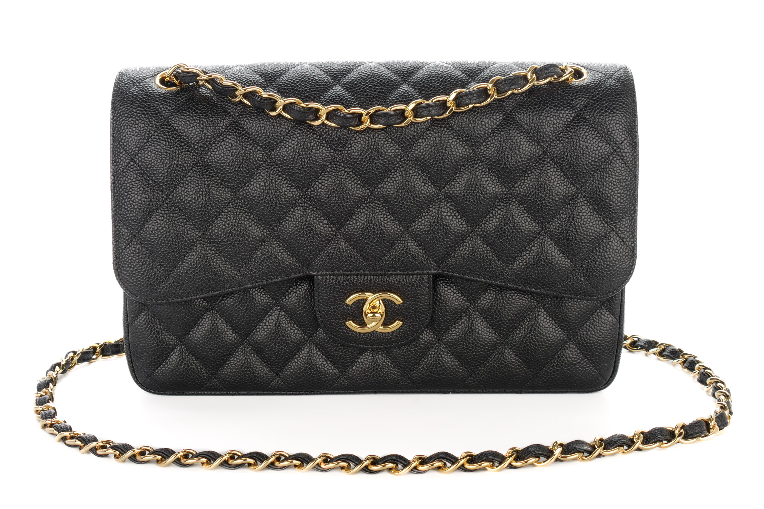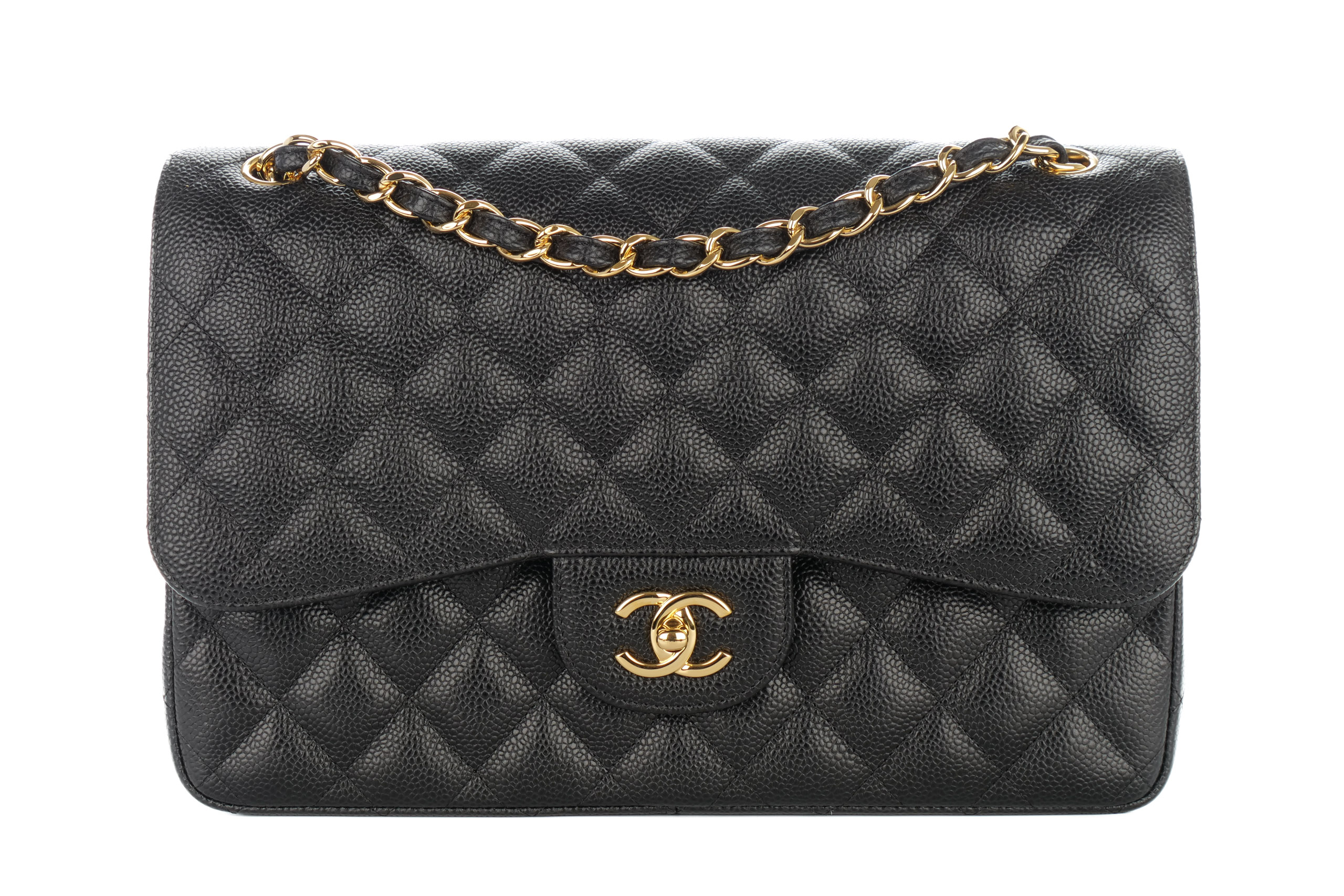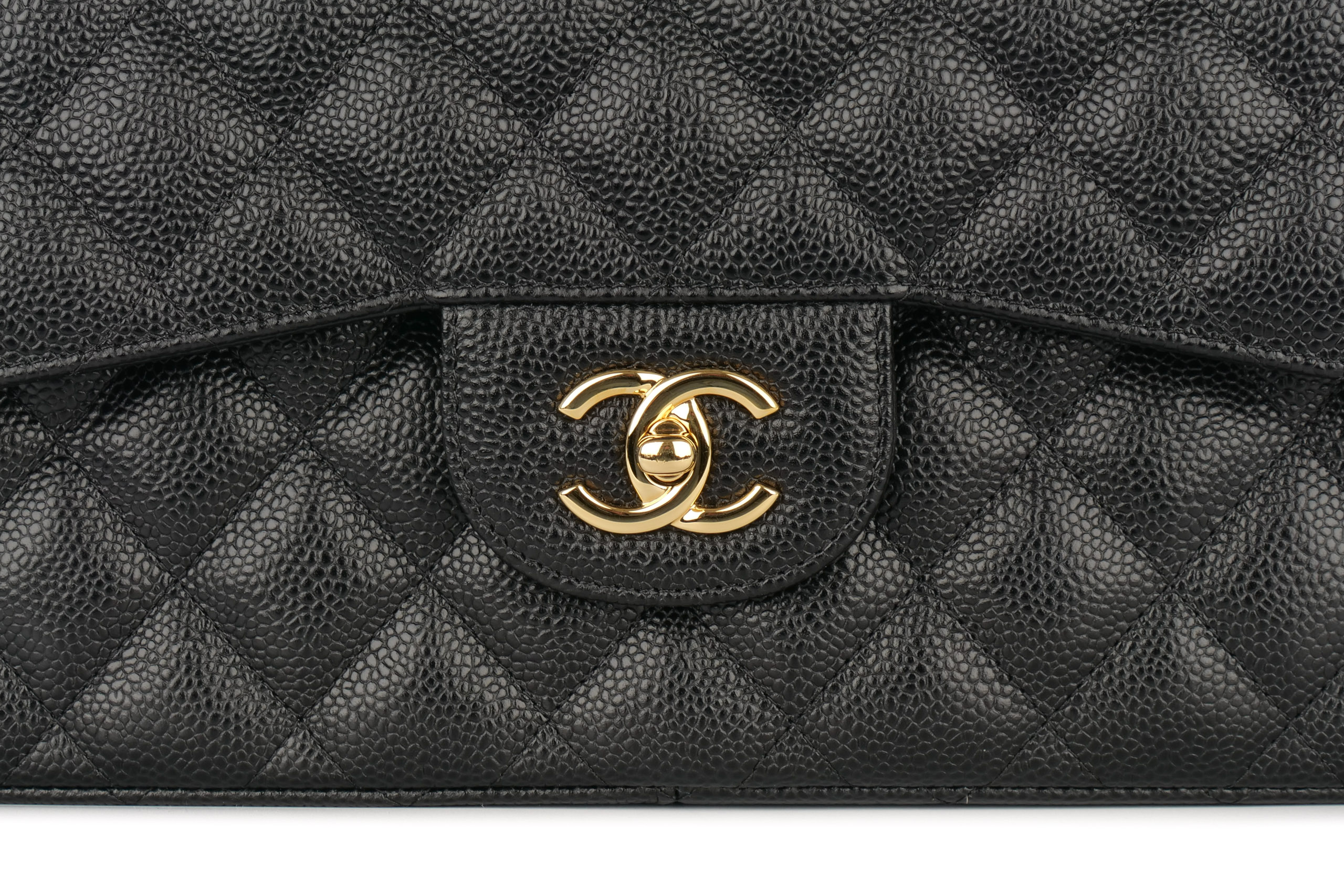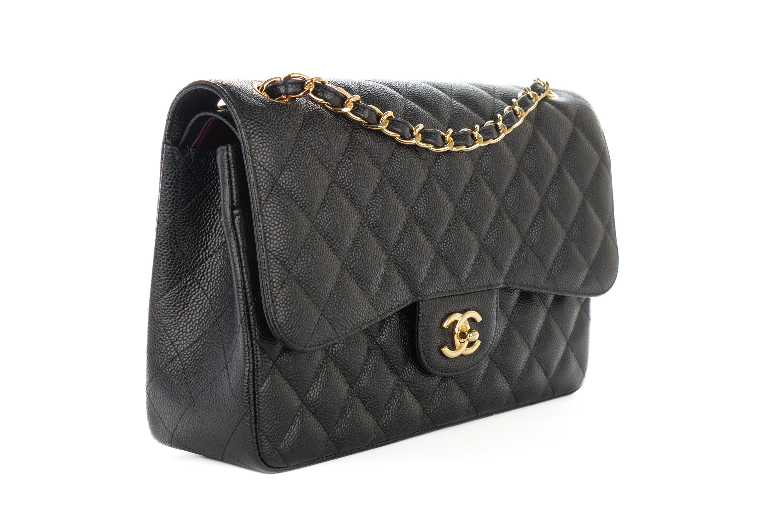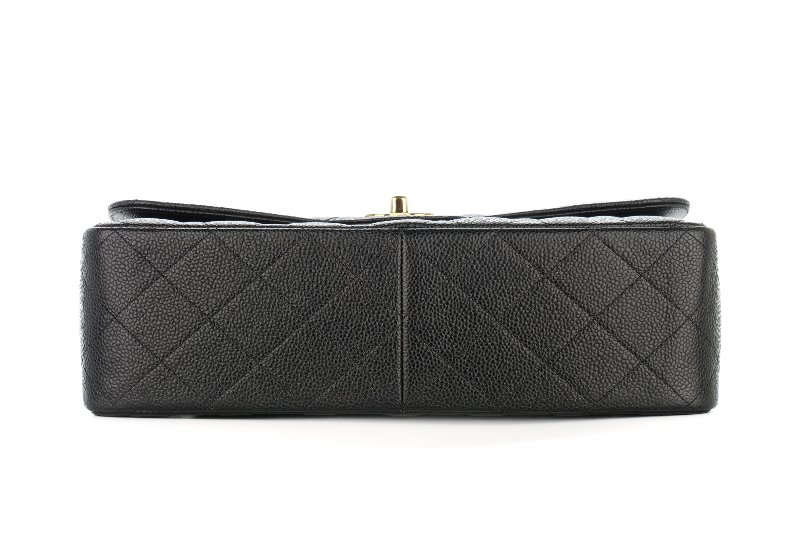 Chanel Double Classic Flap Jumbo Black Caviar Gold Hardware / 20 Series 2014, Excellent Preloved