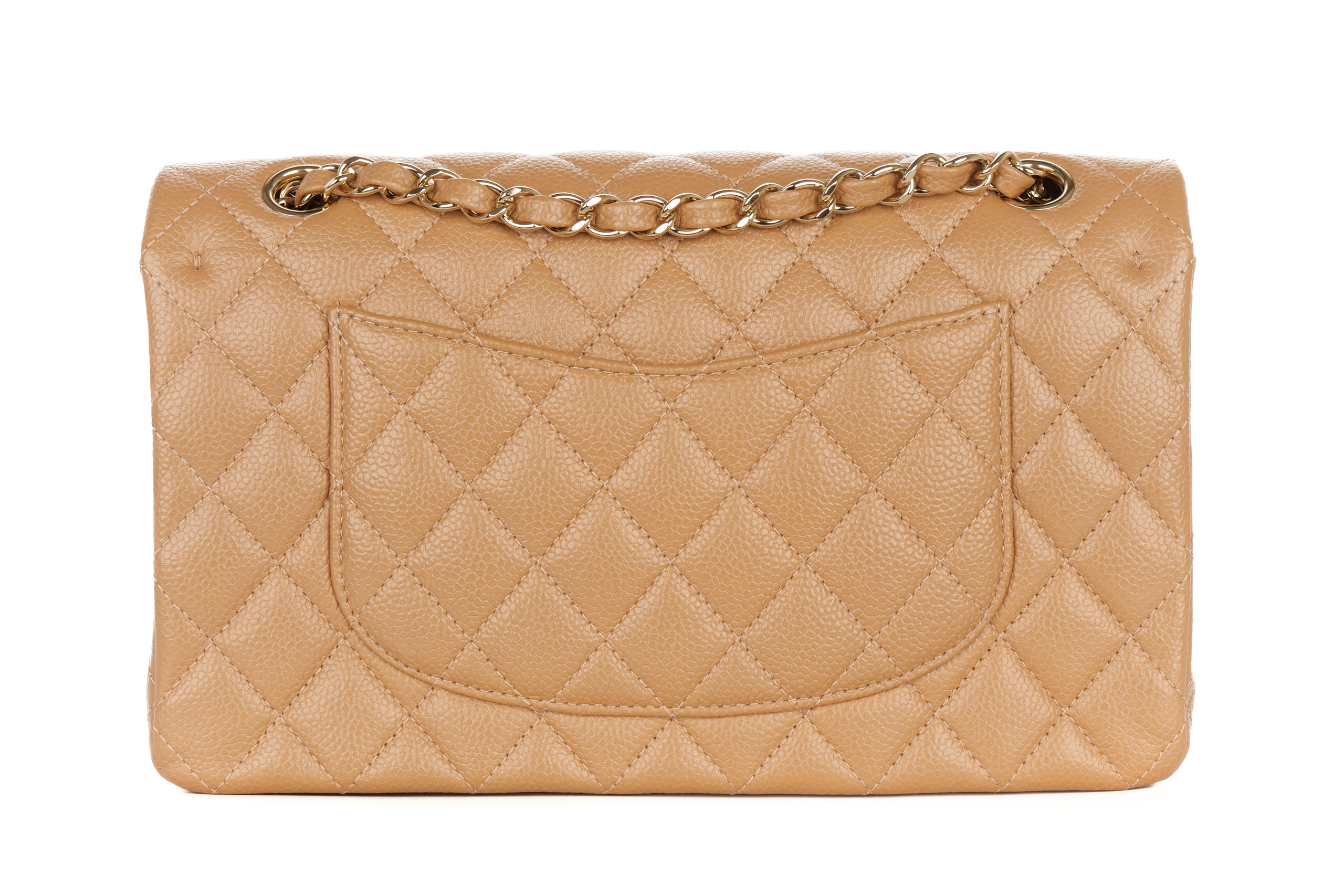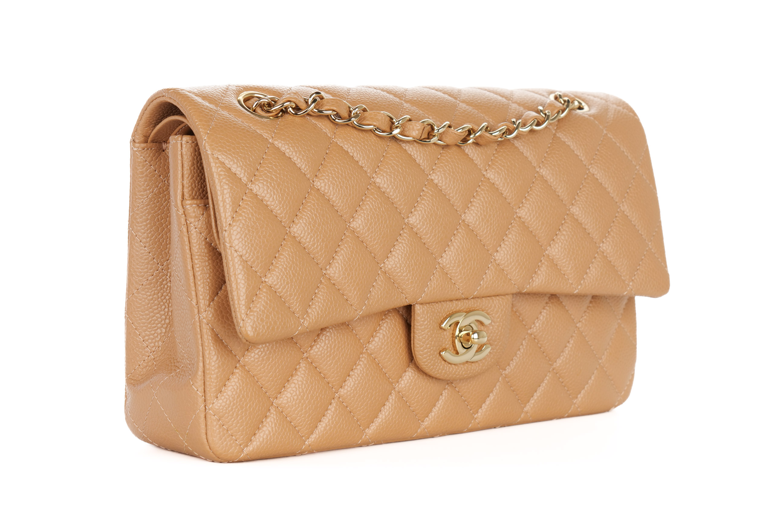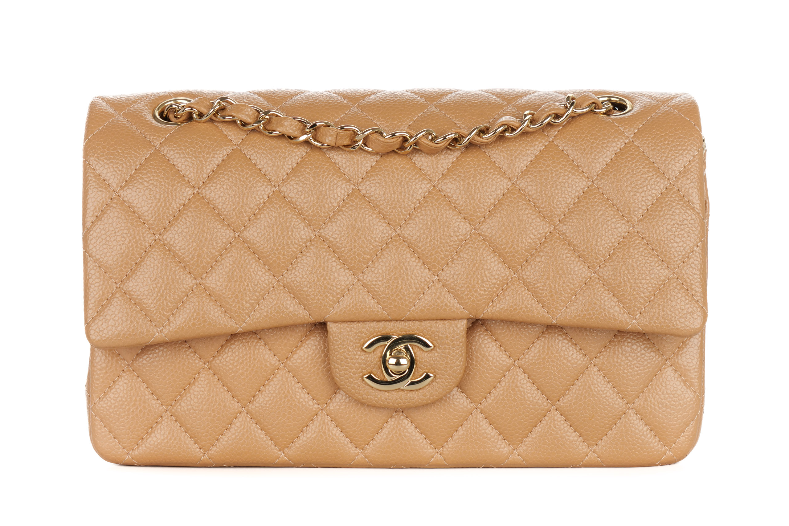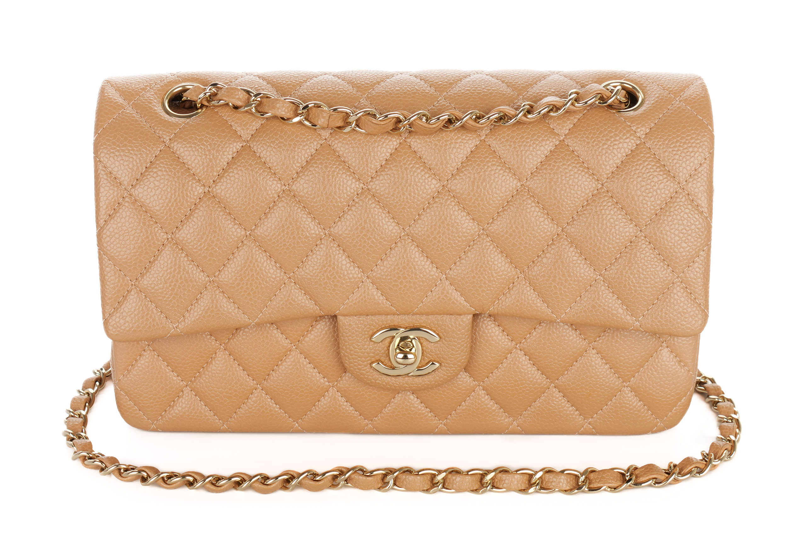 Chanel Double Classic Flap Medium Salmon Caviar Gold Hardware / 28 Series 2018, Preloved