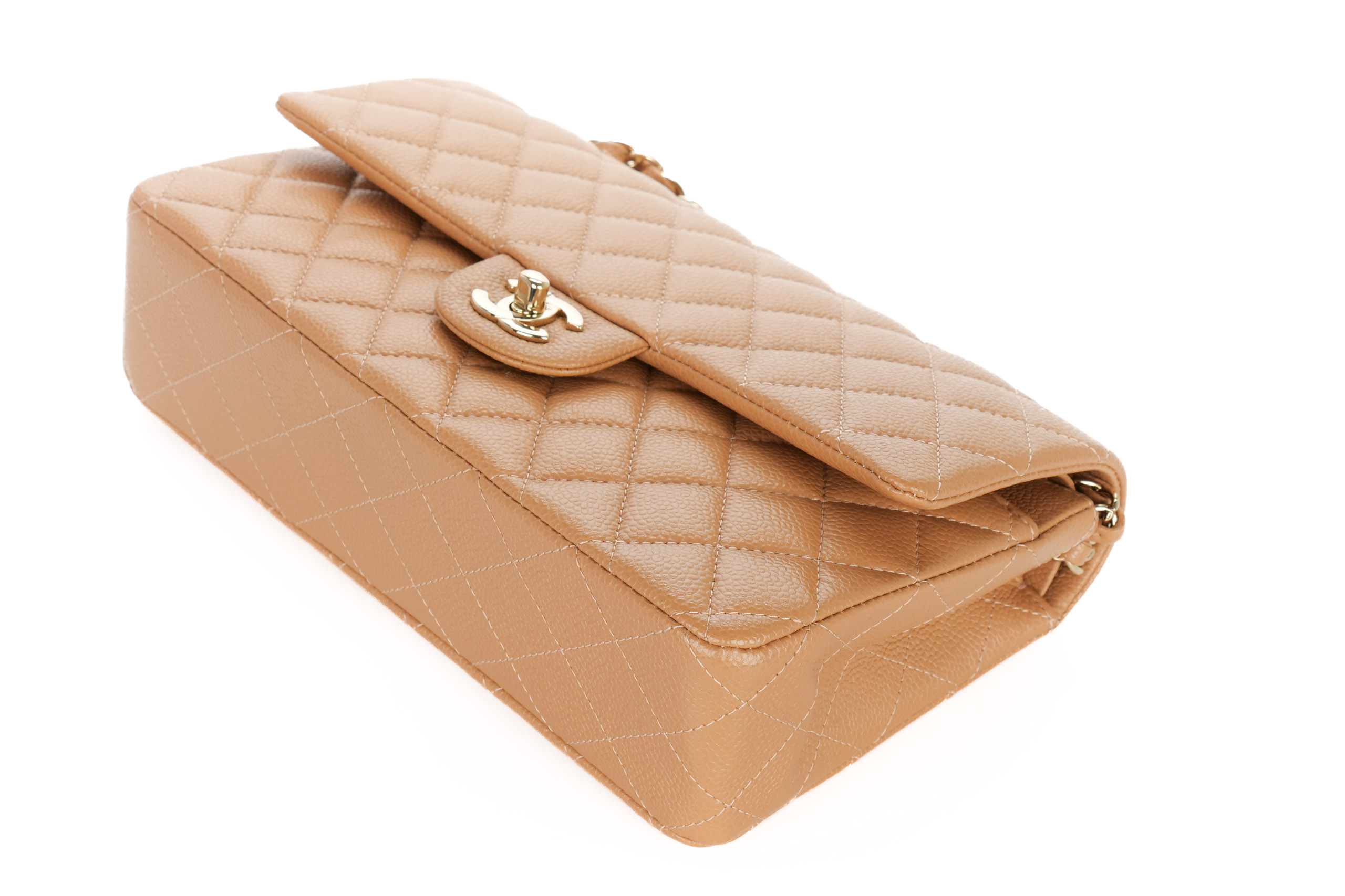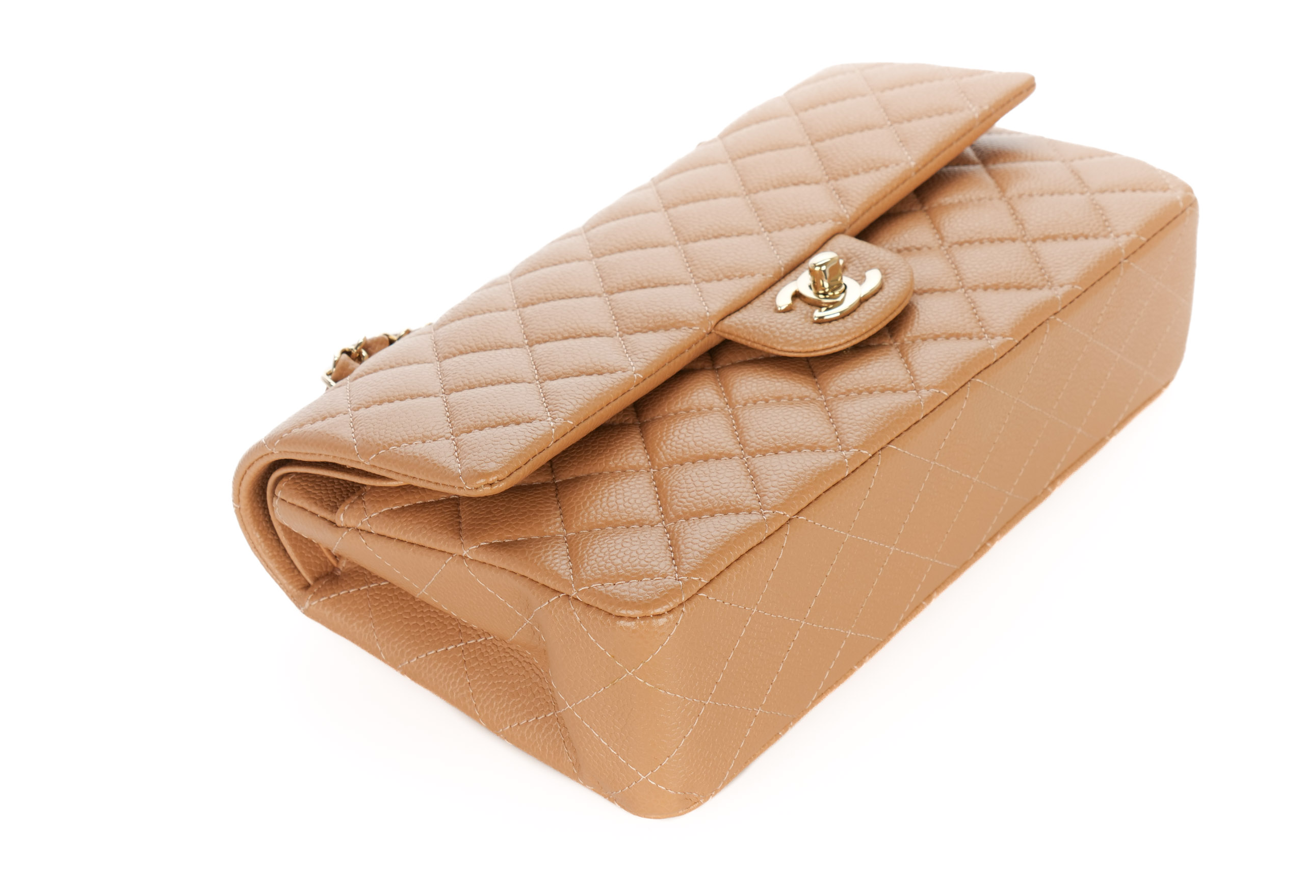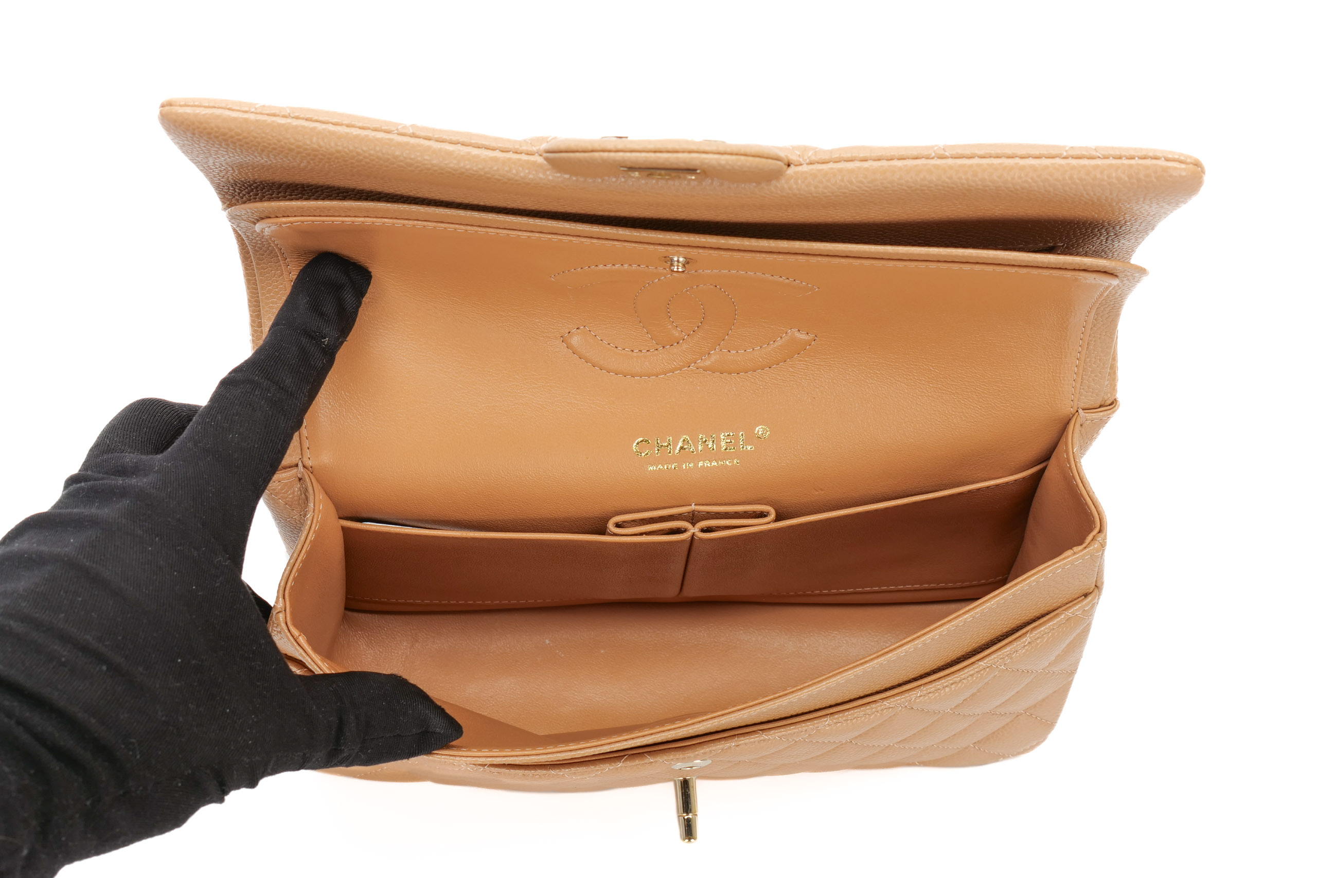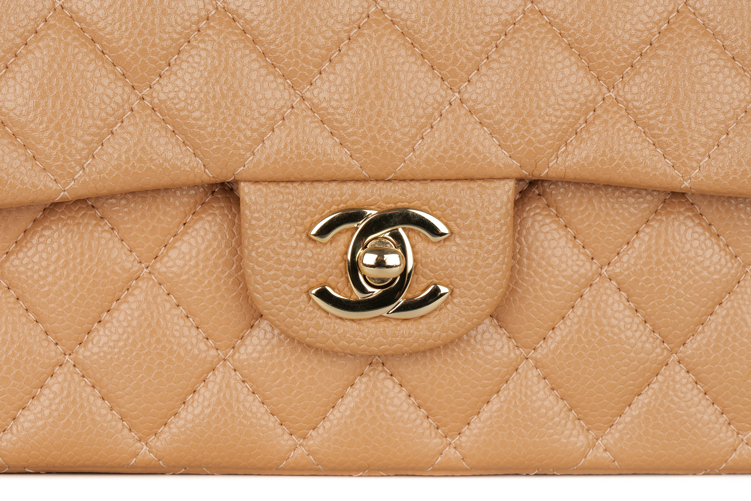 Chanel Double Classic Flap Medium Salmon Caviar Gold Hardware / 28 Series 2018, Preloved