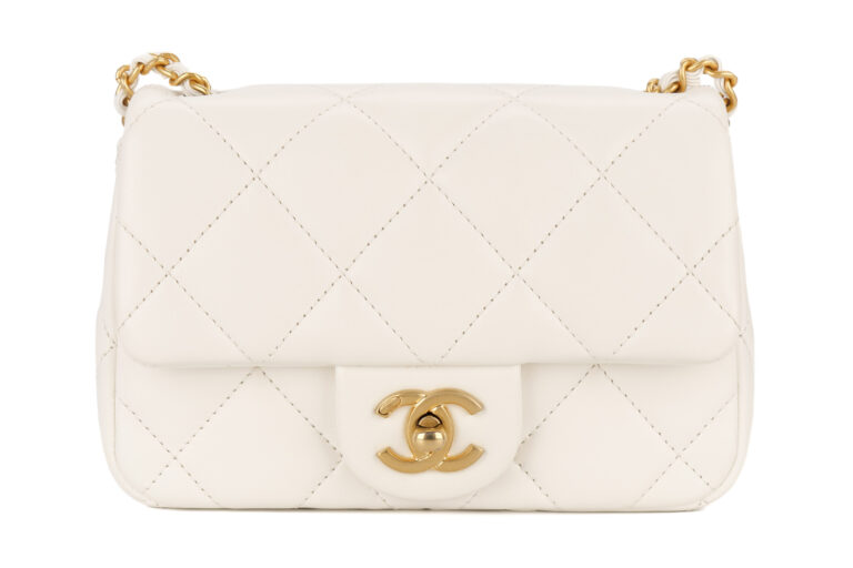 Chanel Mini Flap White Pearl Lambskin Gold Hardware