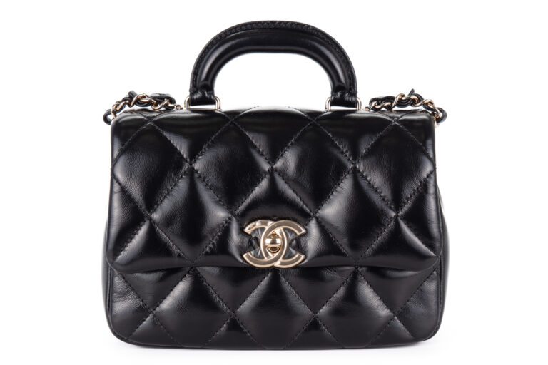 Chanel Mini Flap Top Handle Black Goatskin Light Gold Hardware