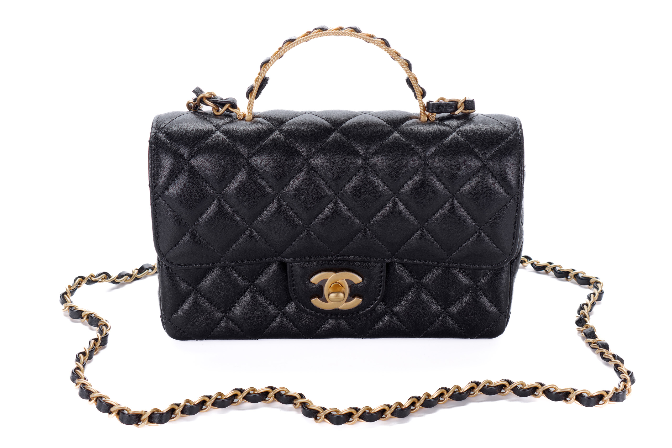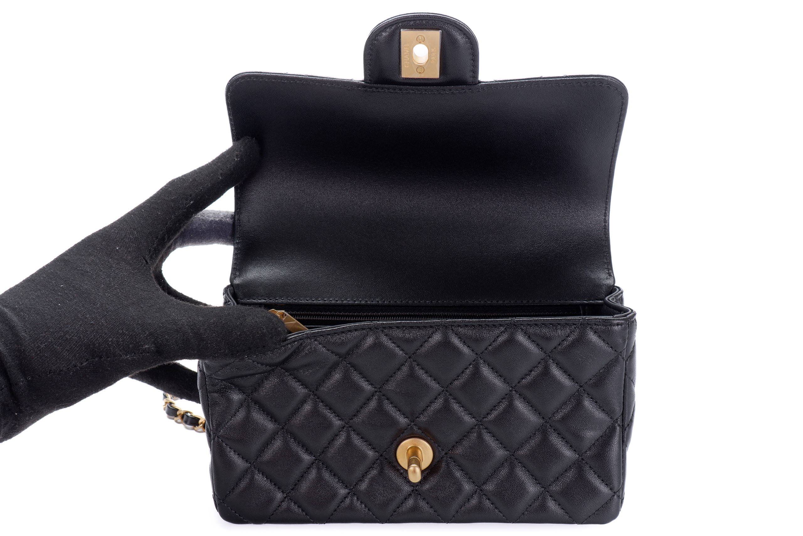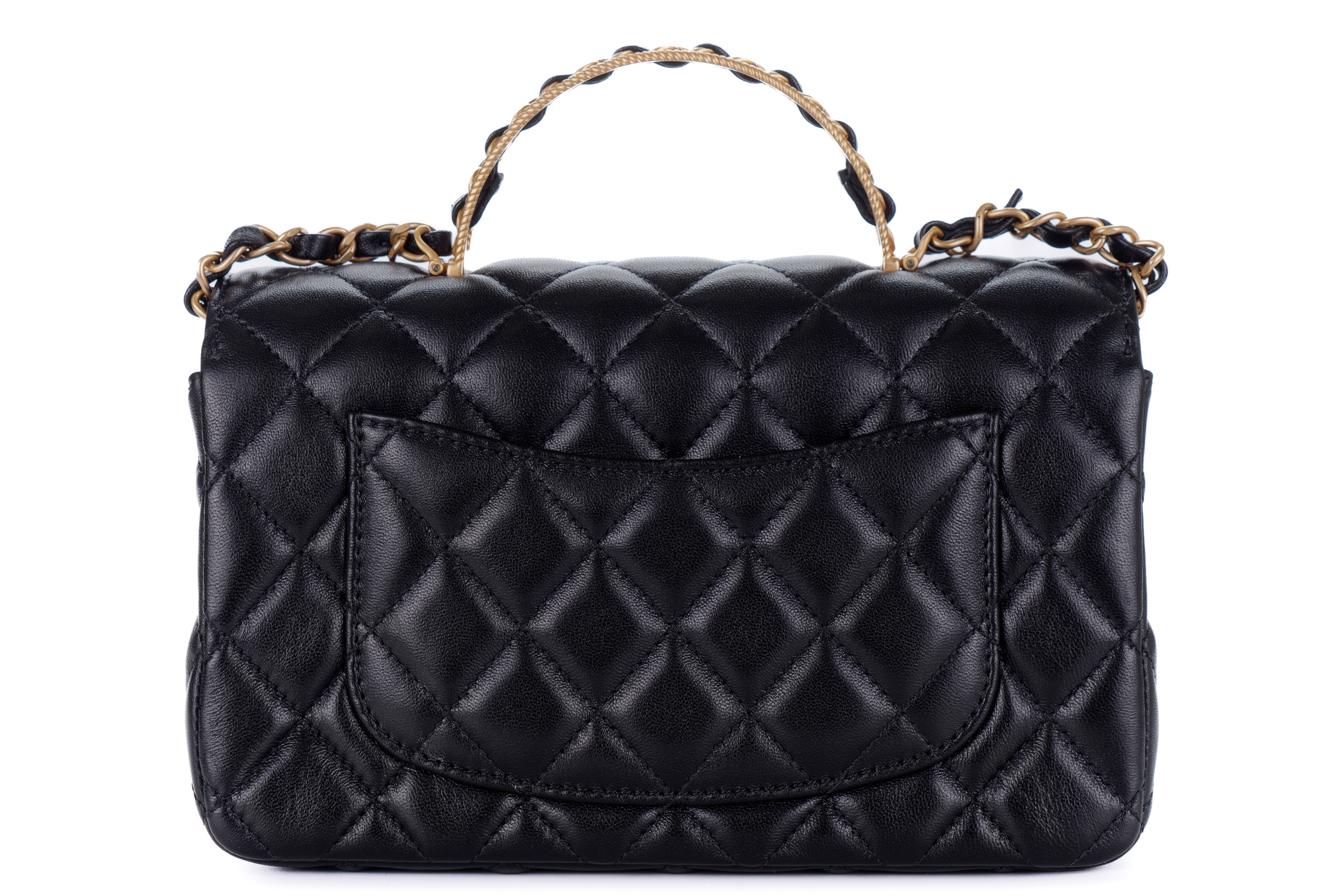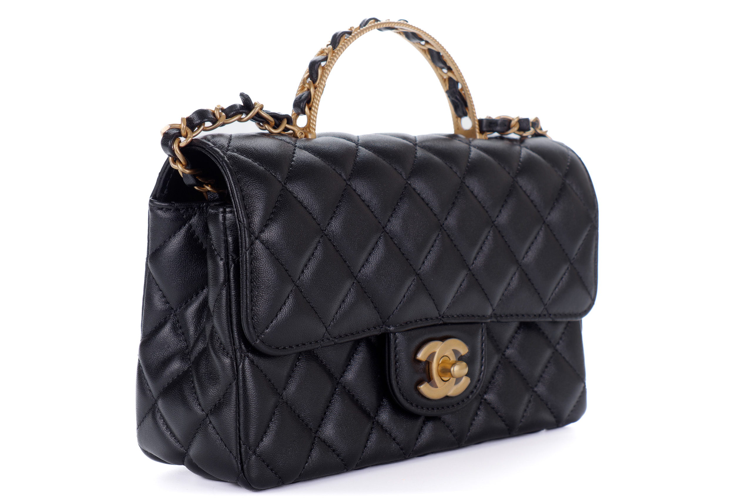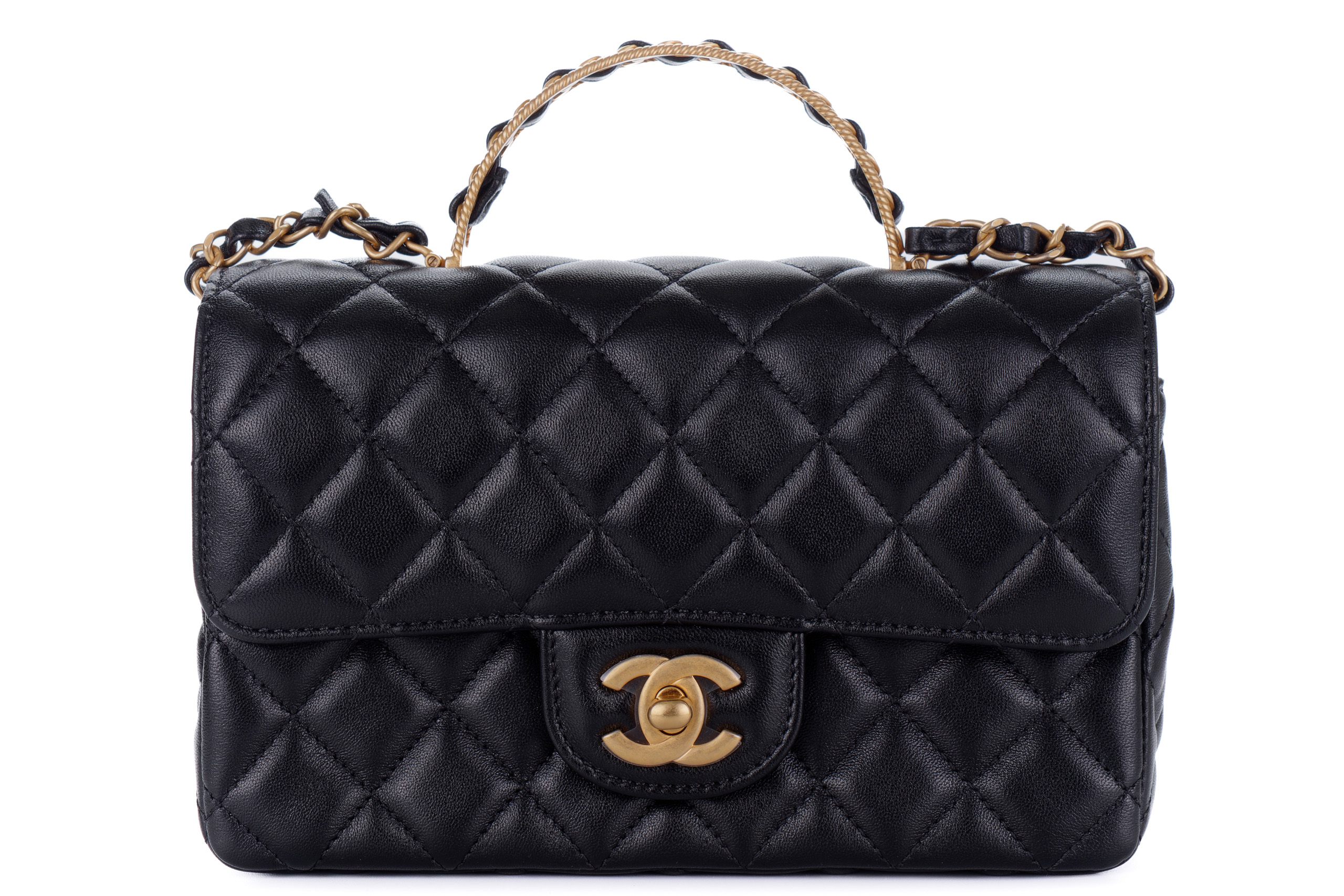 Chanel Flap Chain Top Handle Black Lambskin Gold Hardware / Microchipped 2023 Box Fresh