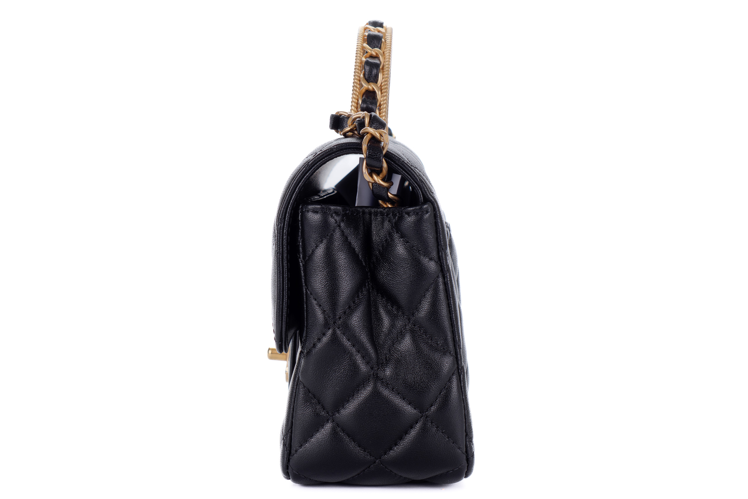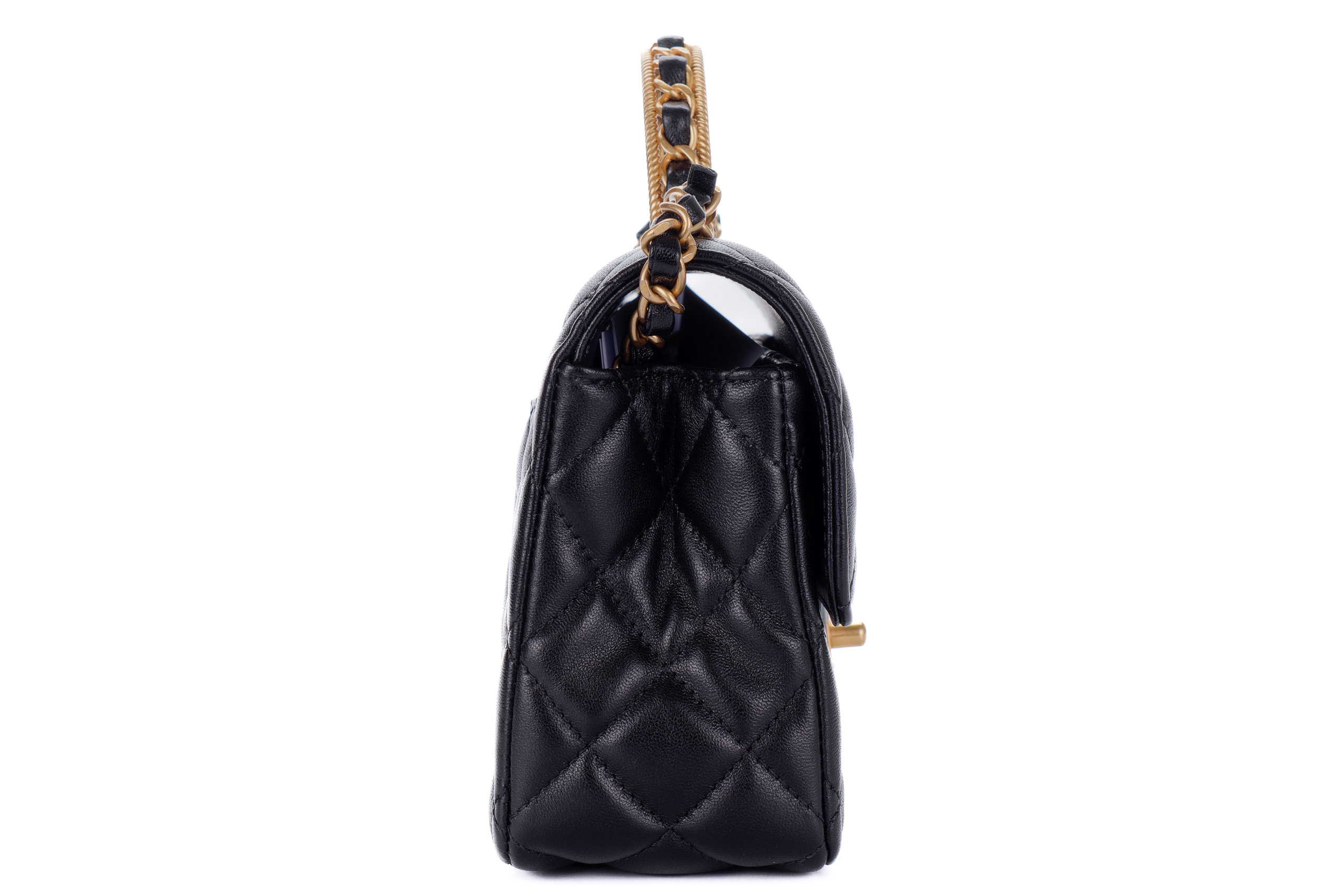 Chanel Flap Chain Top Handle Black Lambskin Gold Hardware