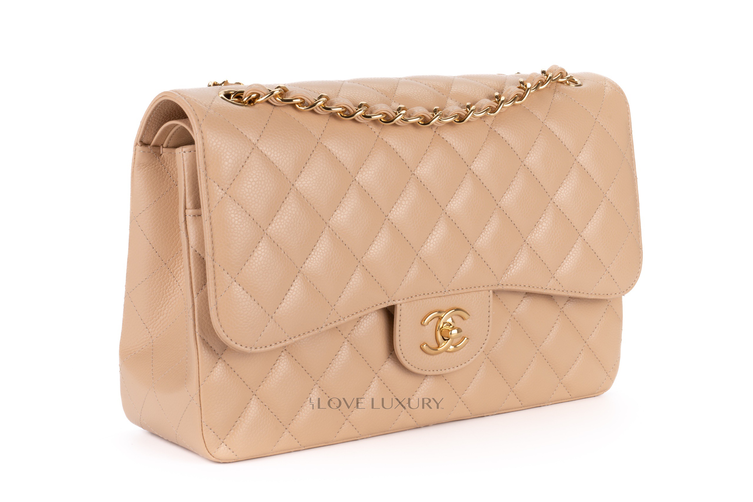 This is a beautiful example of a Chanel Jumbo, the caviar is excellent quality and the beige Clair is beautifully offset with the gold hardware. This bag comes box fresh condition, comes as a full set with authentication.