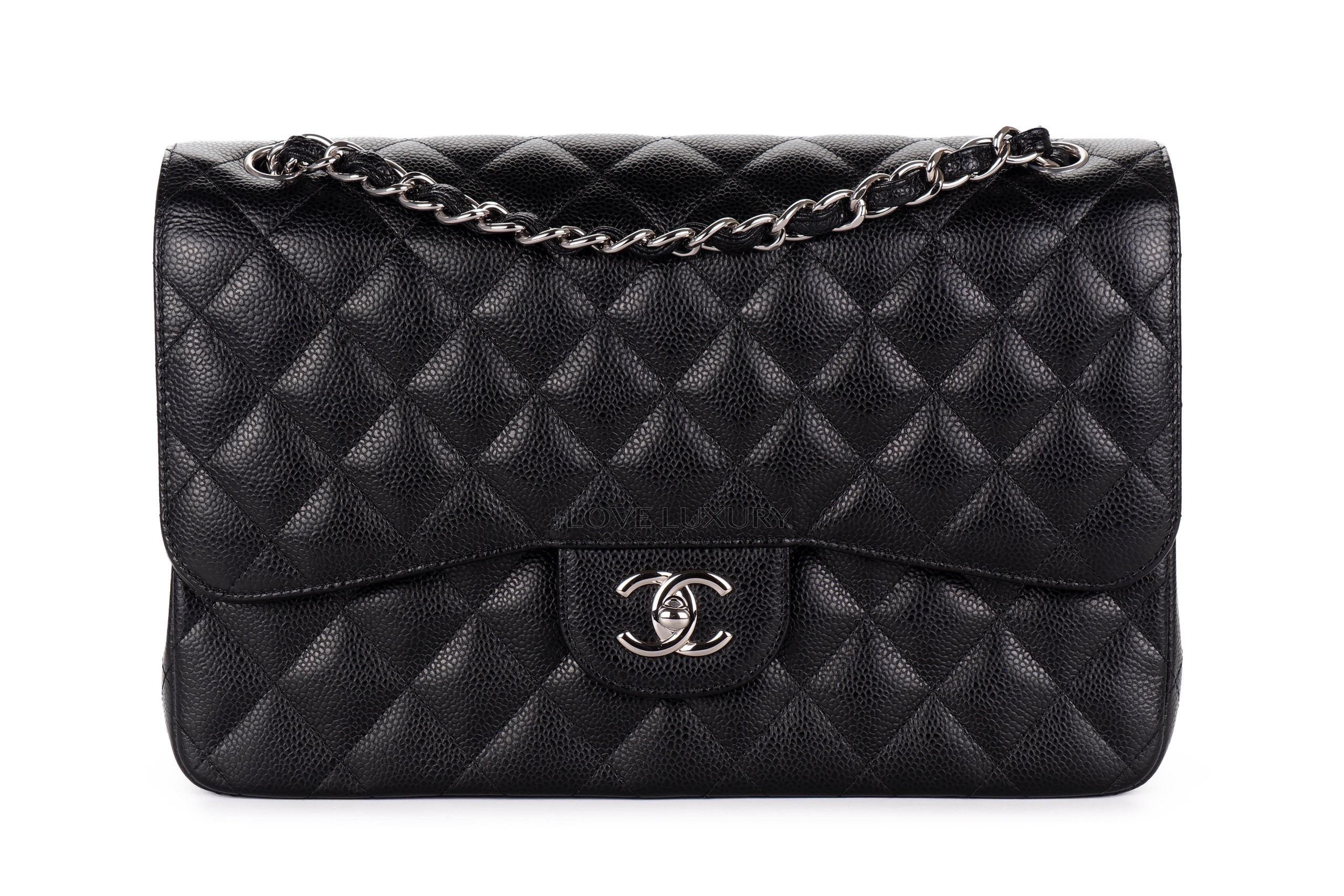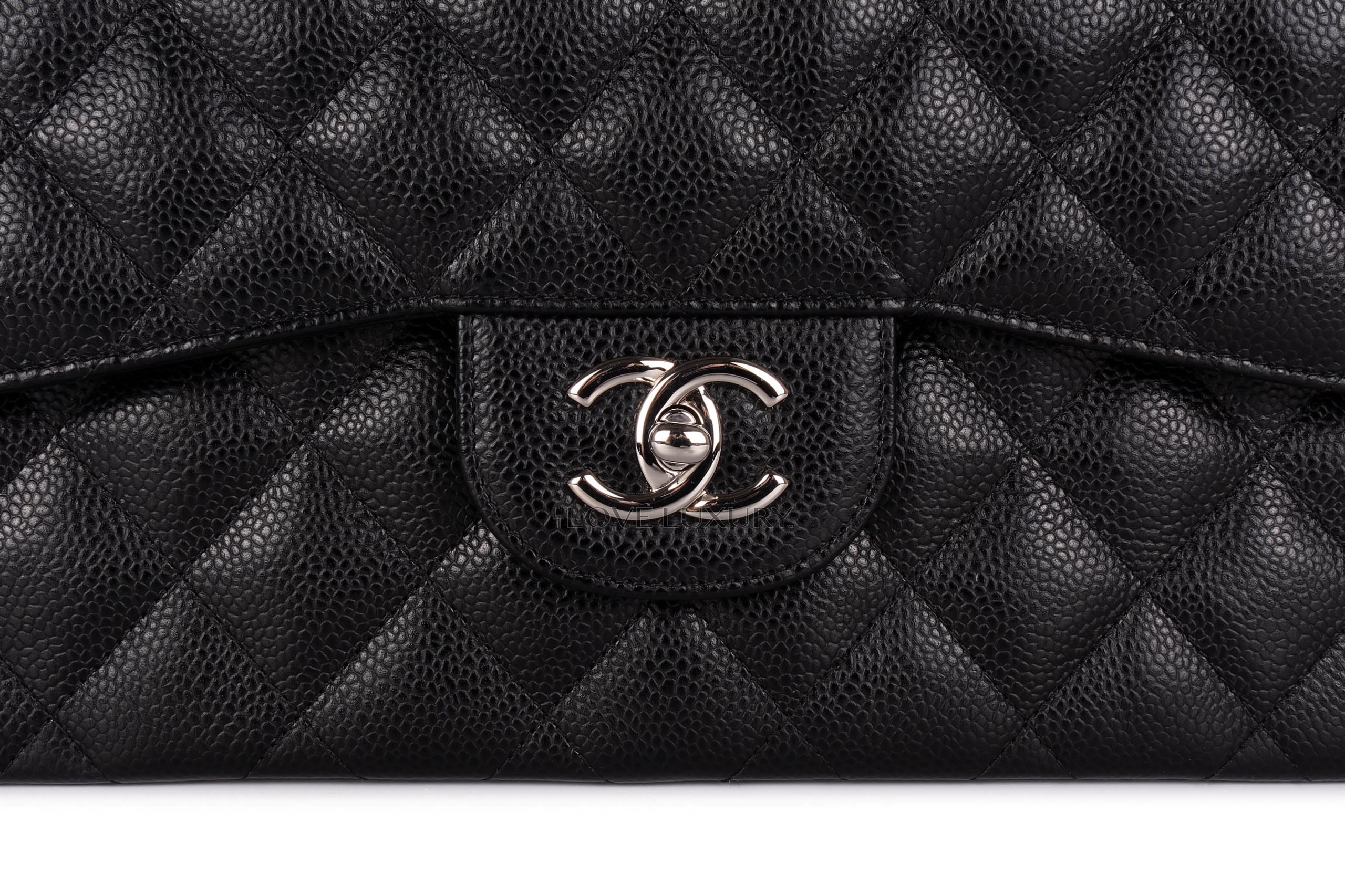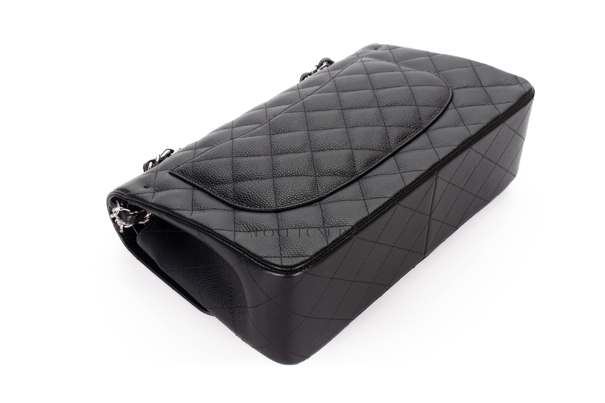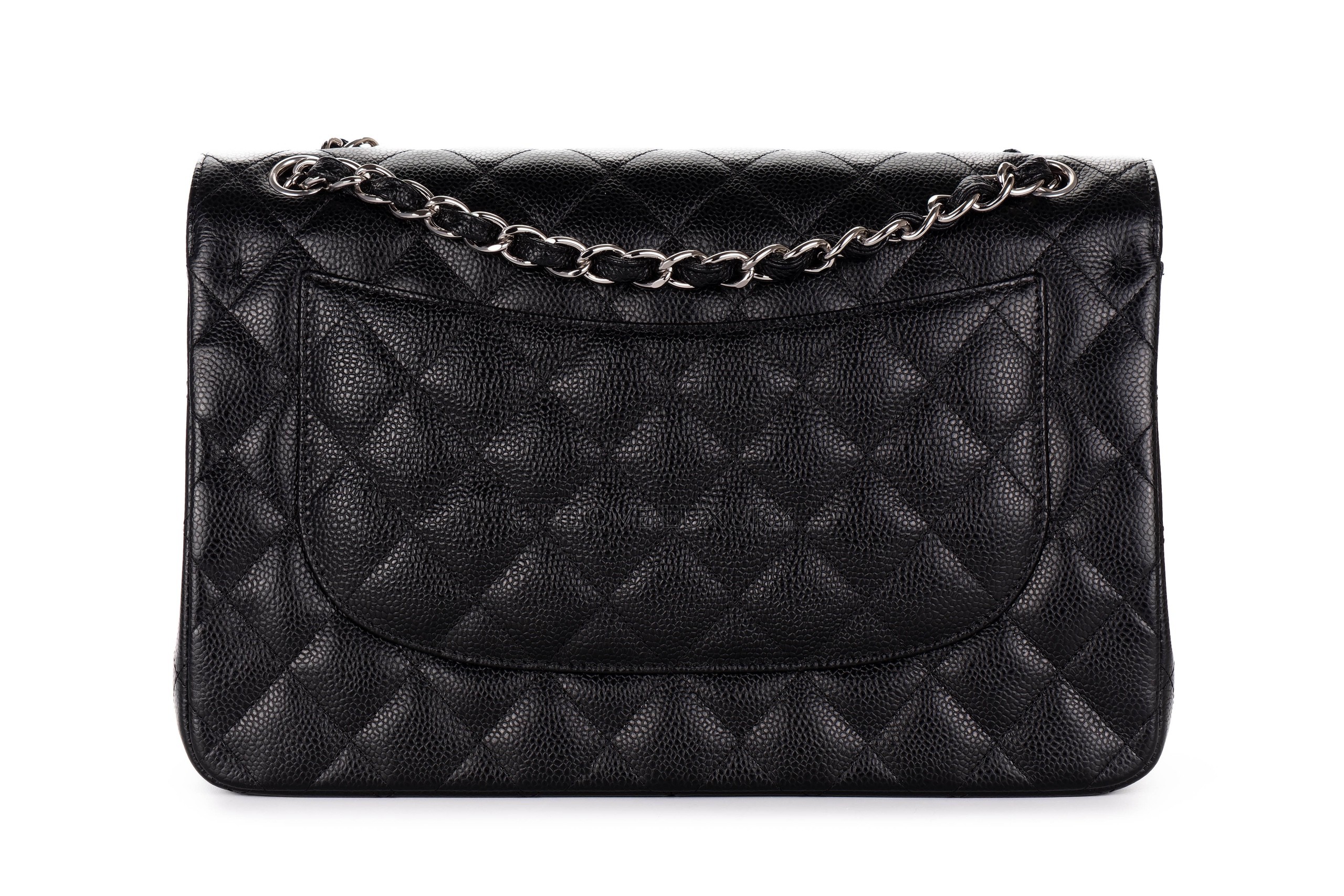 Chanel Jumbo Classic Flap Black Caviar Silver Hardware / 20 series 2014-15 Pre-Loved condition
