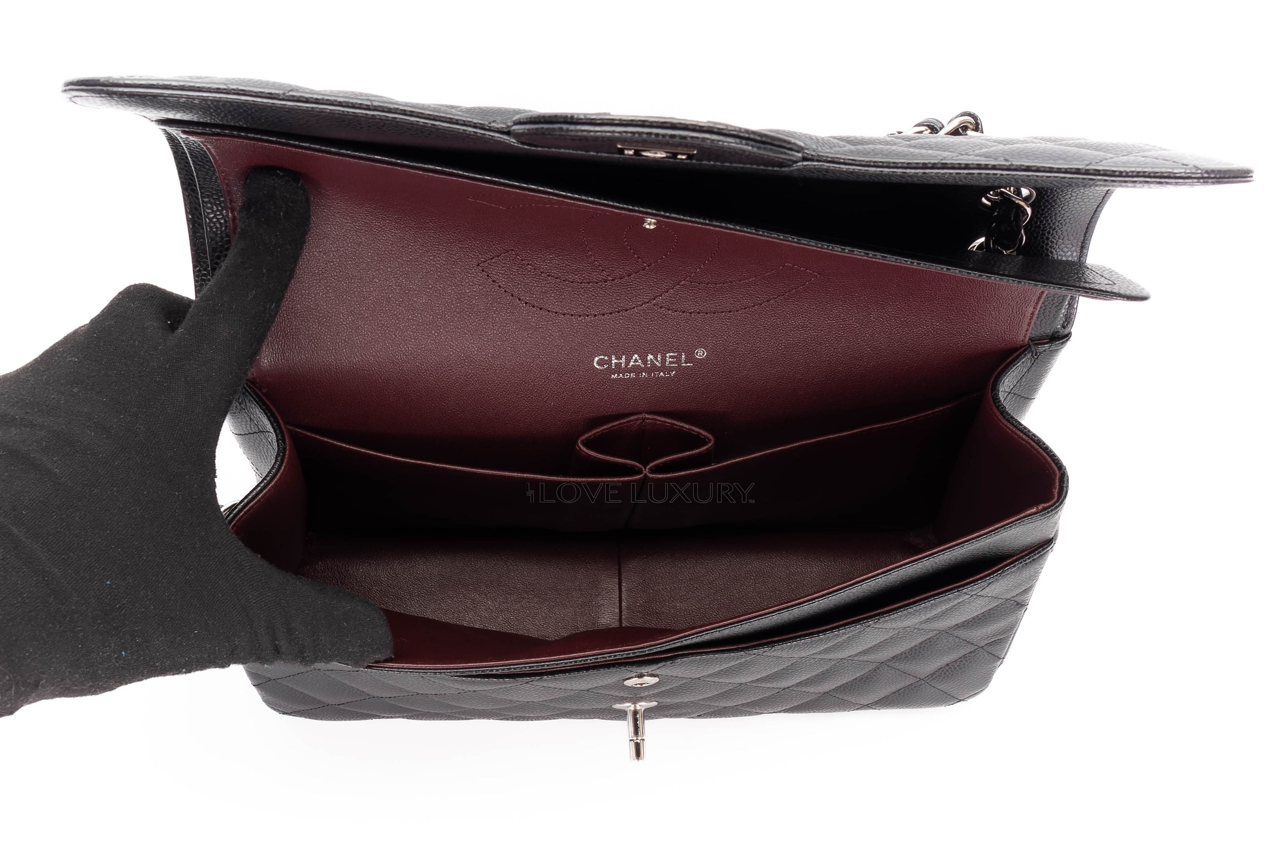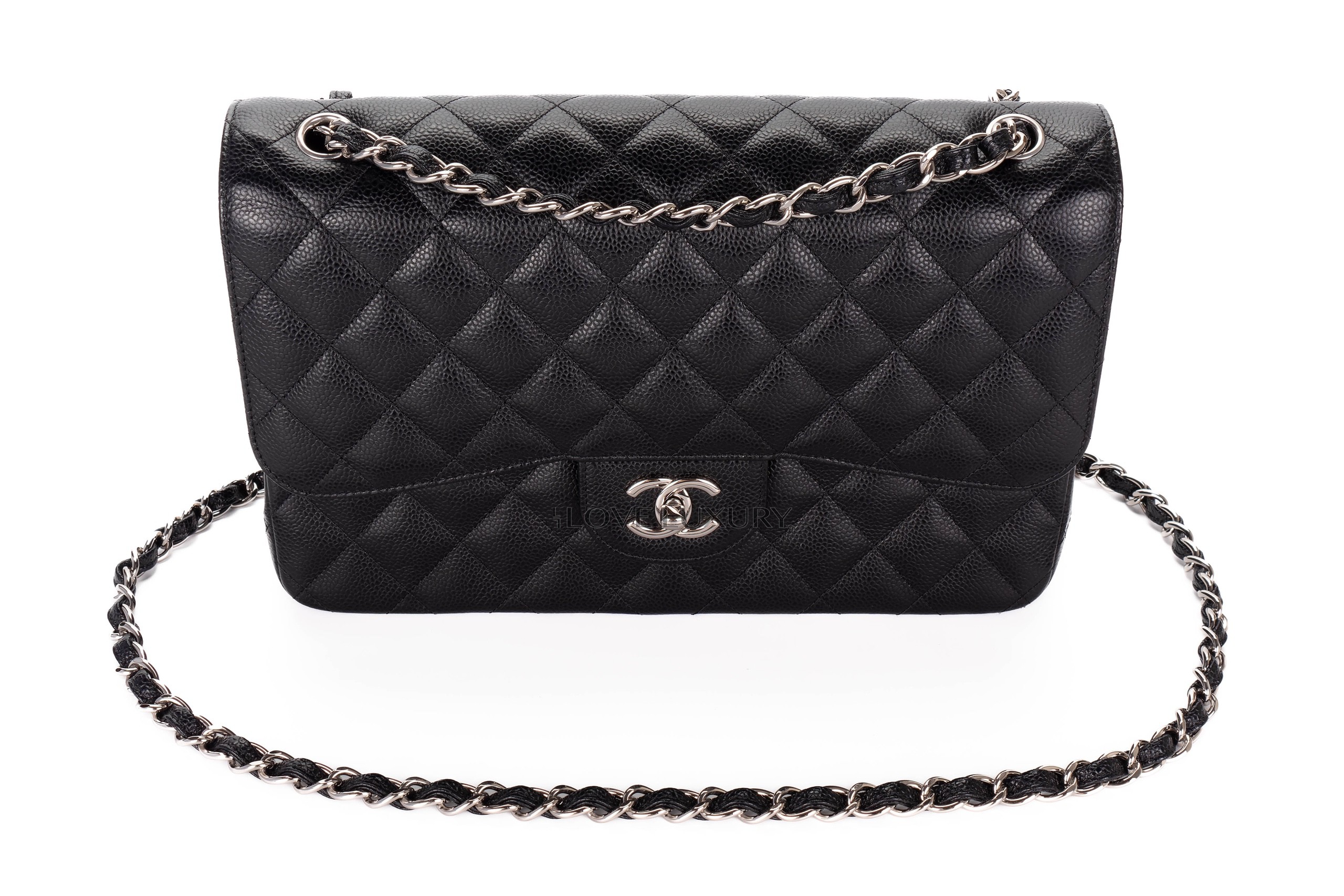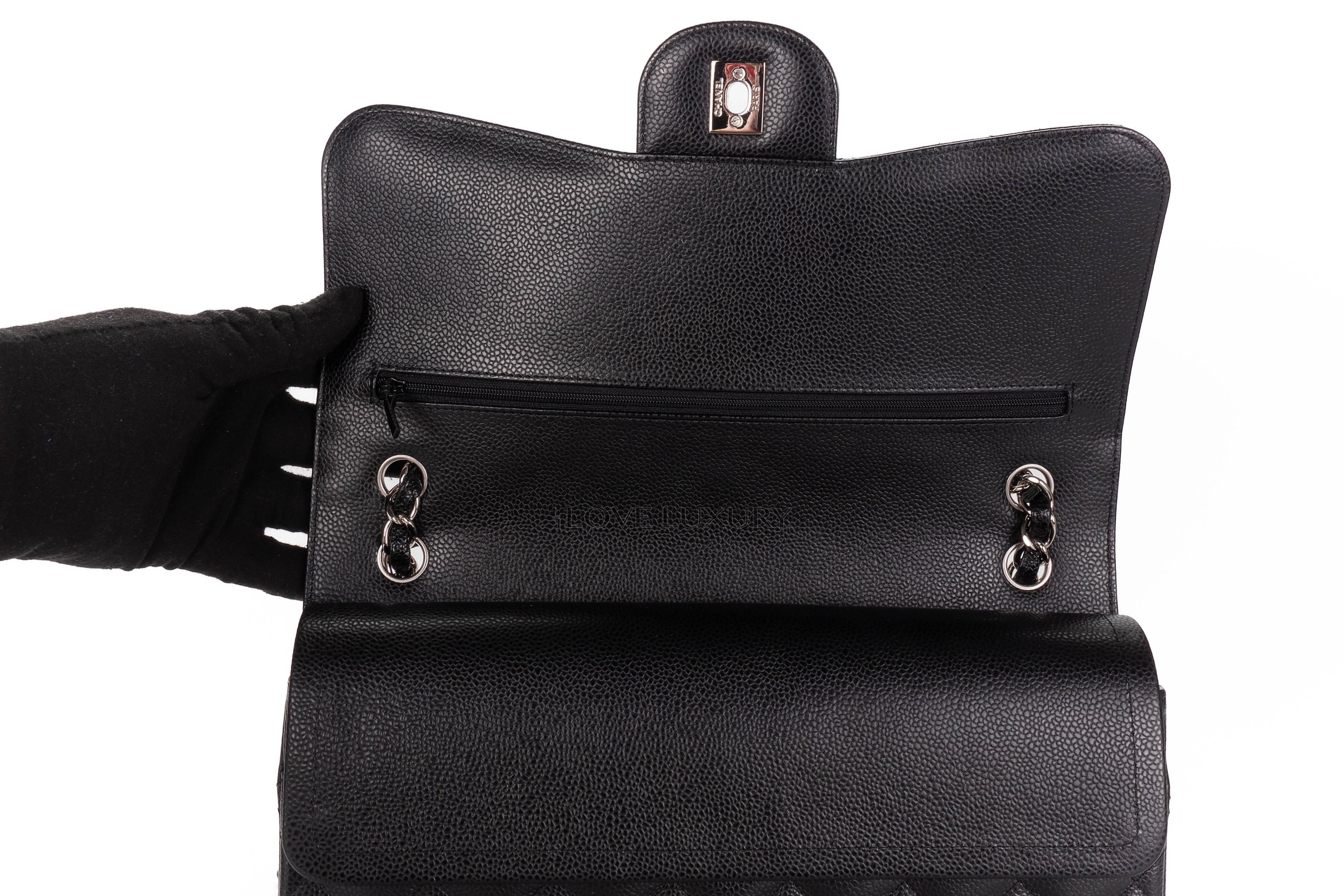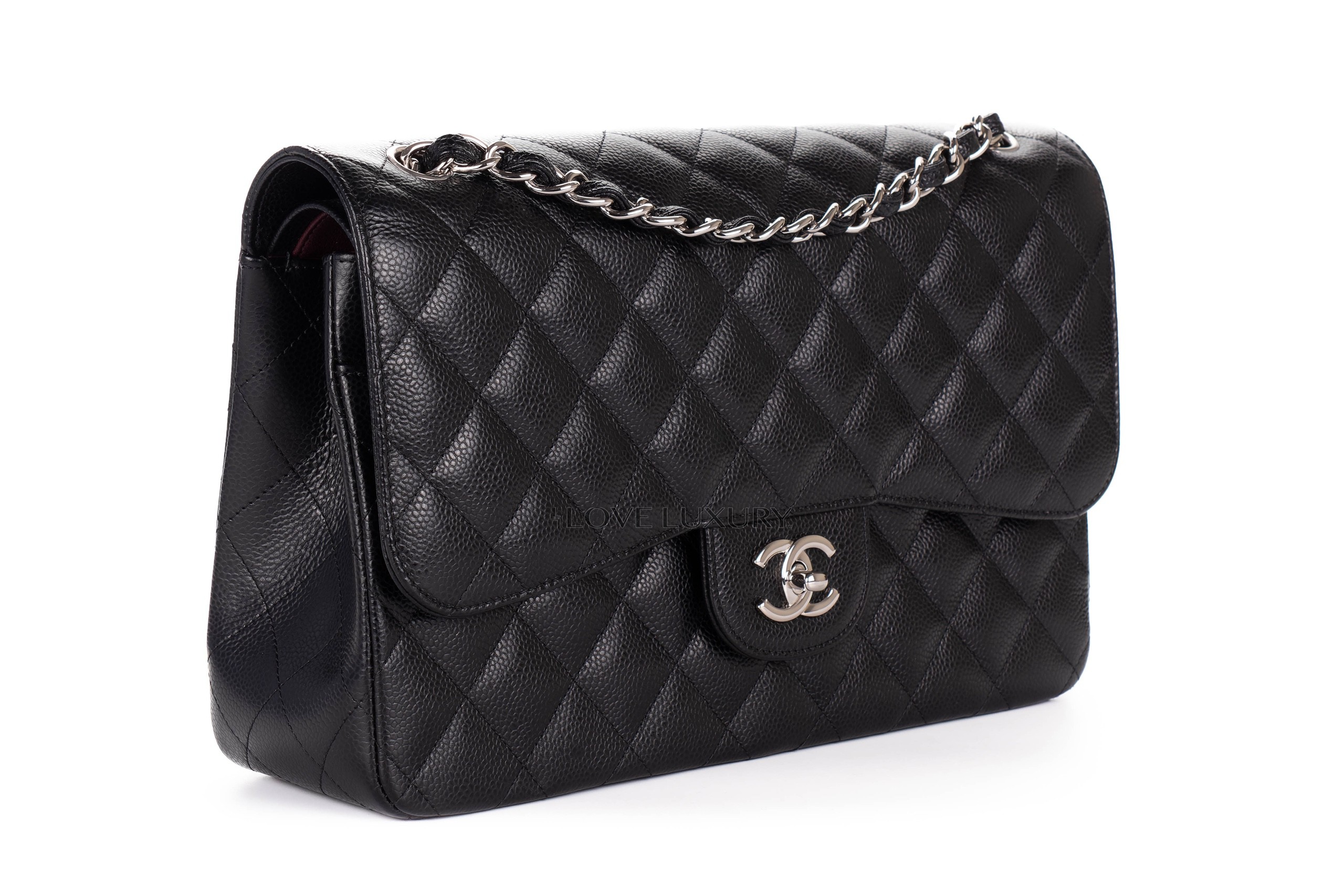 Chanel Jumbo Classic Flap Black Caviar Silver Hardware / 20 series 2014-15 Pre-Loved condition