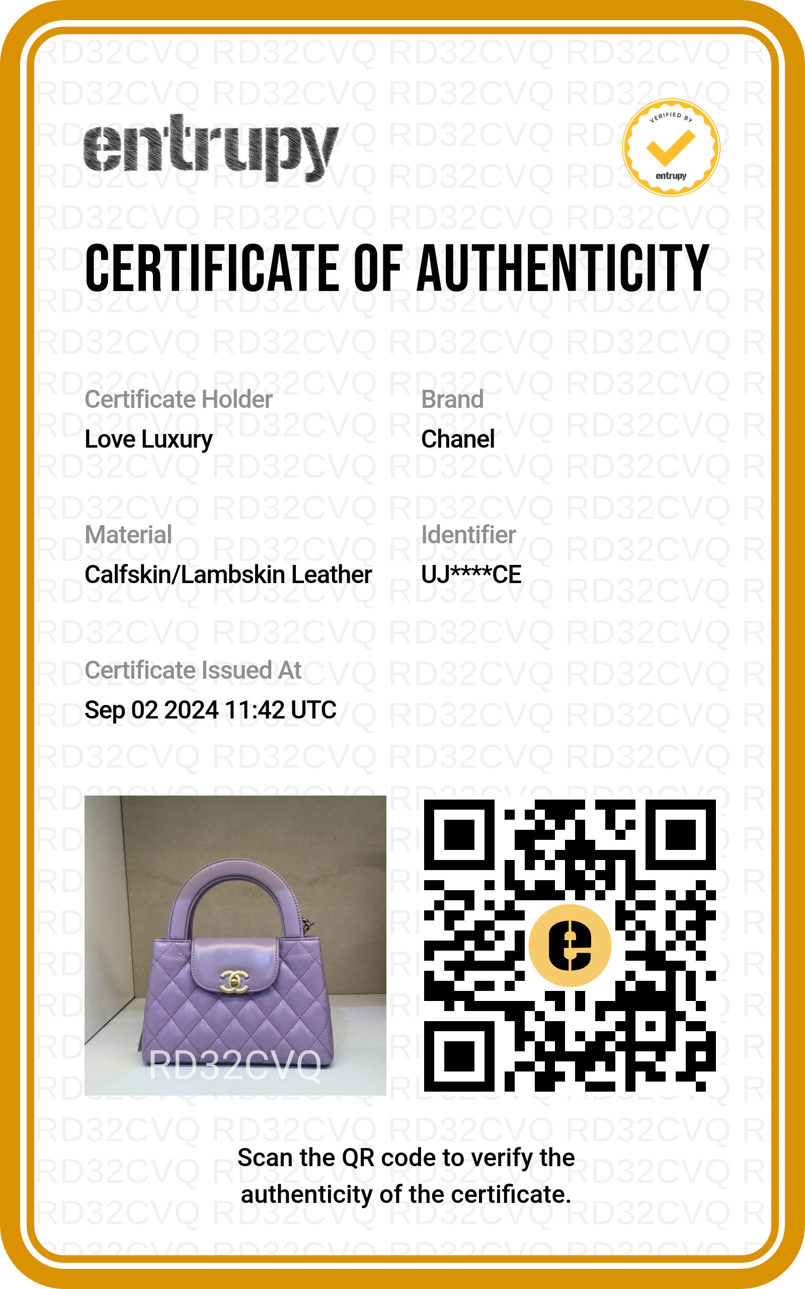 All online orders purchased via our e-shop, please forward 2 forms of ID to our email orders@loveluxury.co.uk, these should be one valid photo ID and one utility bill or bank statement dated in the last month, when this is received we will ship your item.