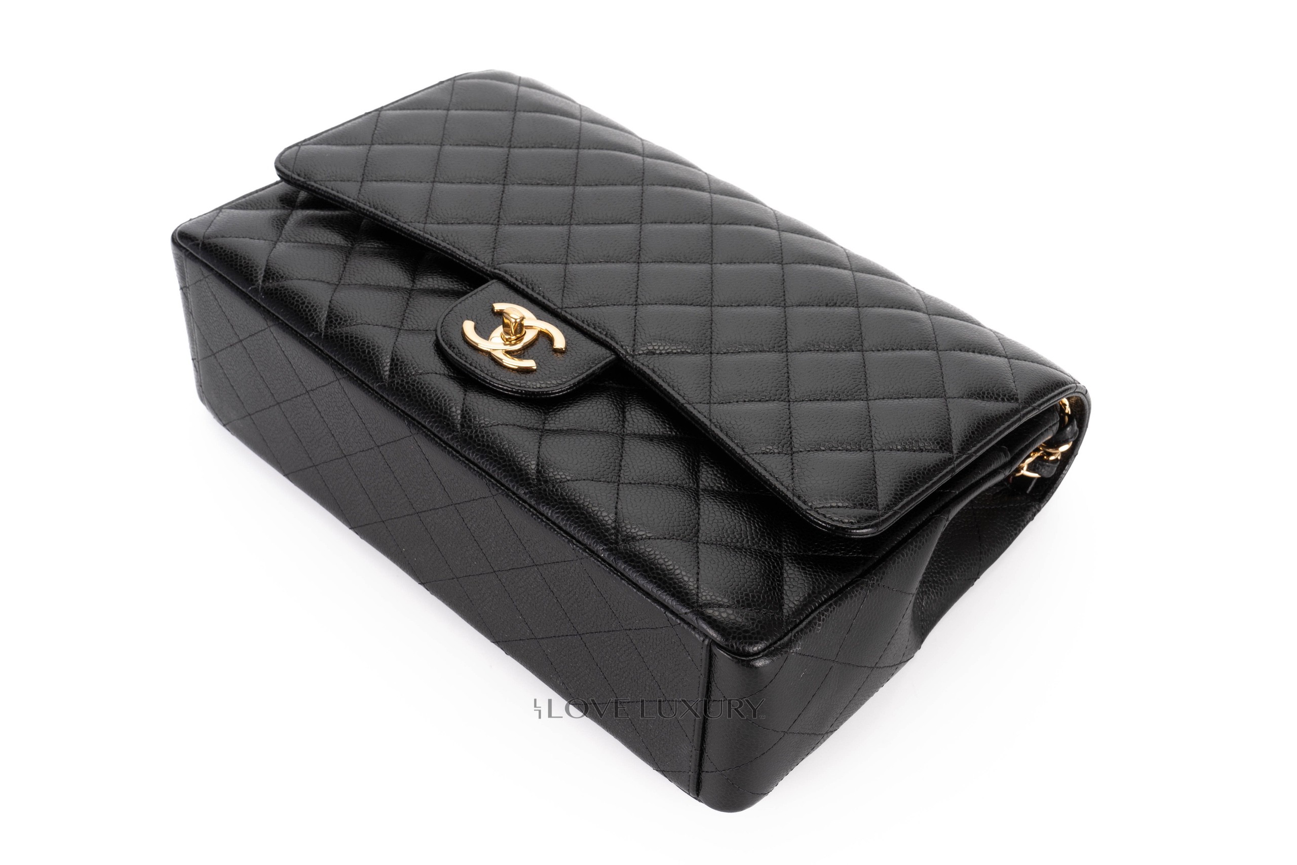 Chanel Maxi Classic Flap Caviar Black Gold Hardware / 24 series 2018 Preloved condition
