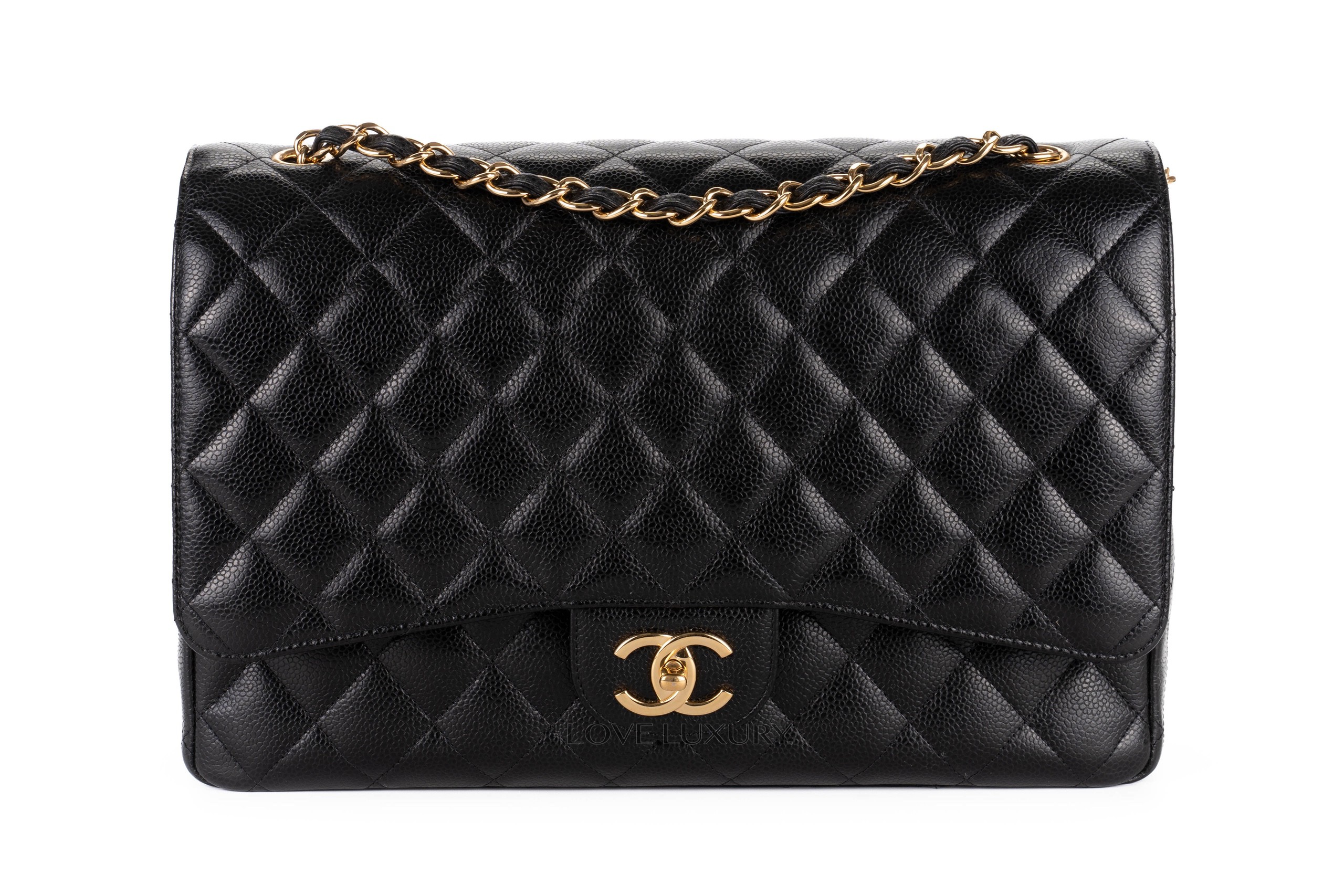 Chanel Maxi Classic Flap Caviar Black Gold Hardware / 23 series 2017 Very Good Pre-Loved.
