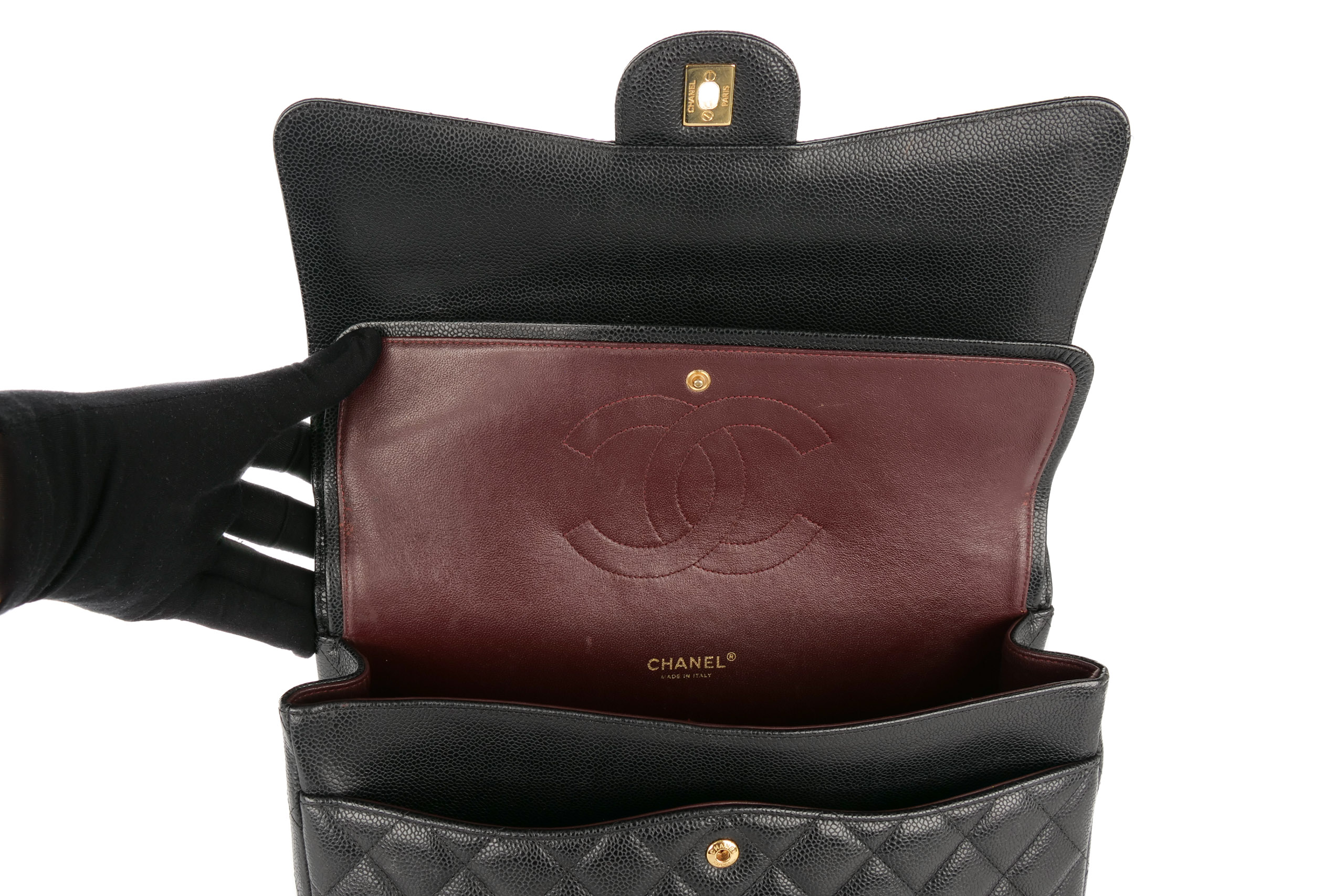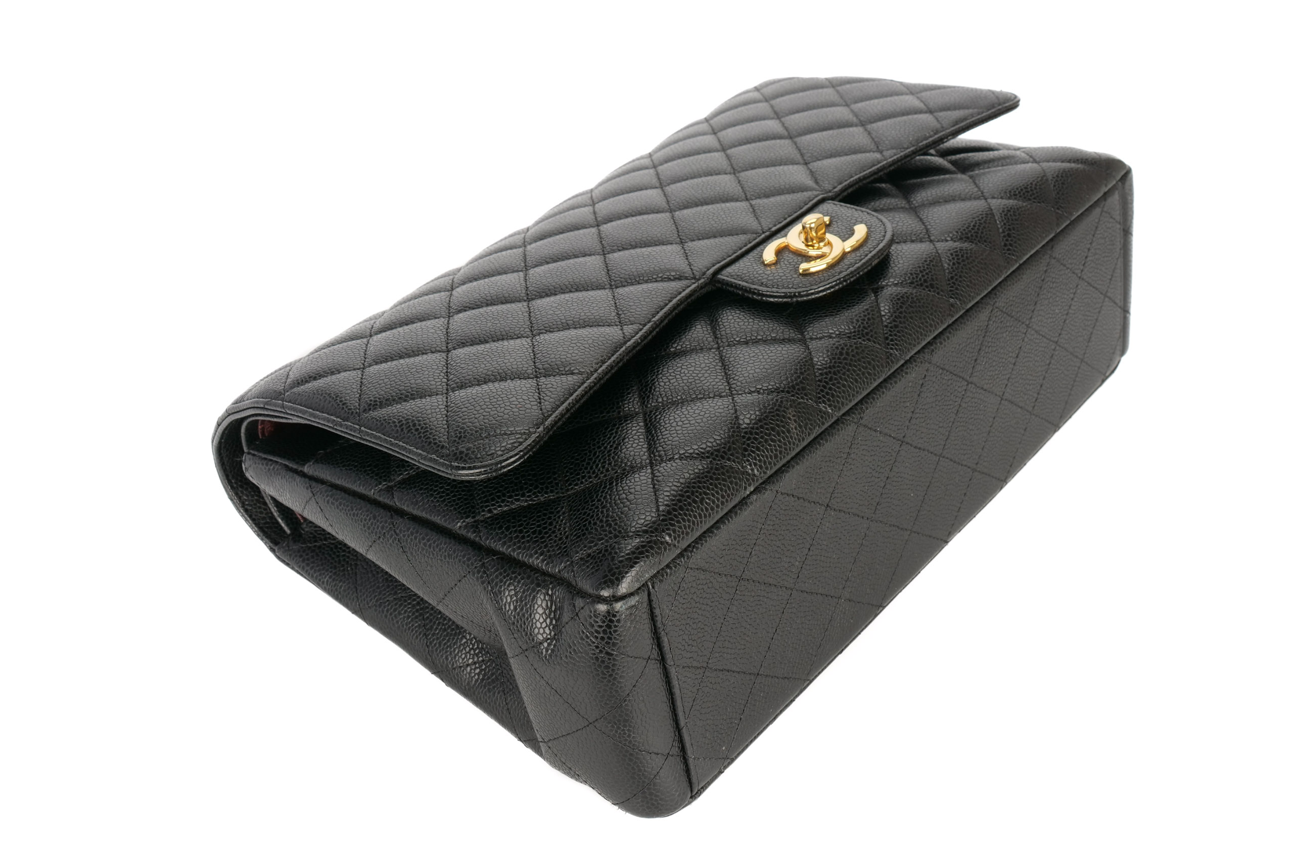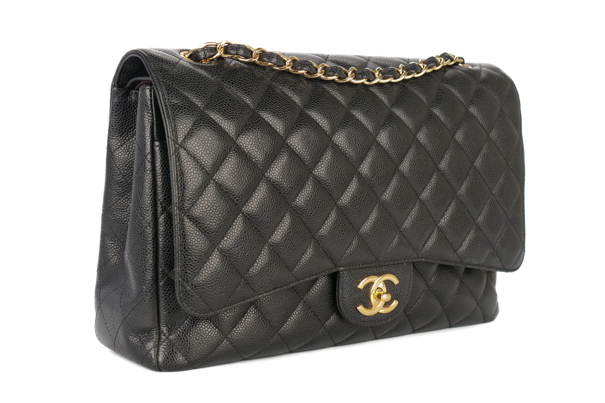 Chanel Maxi Double Classic Flap Black Caviar Gold Hardware / 20 Series 2014-2015, Preloved