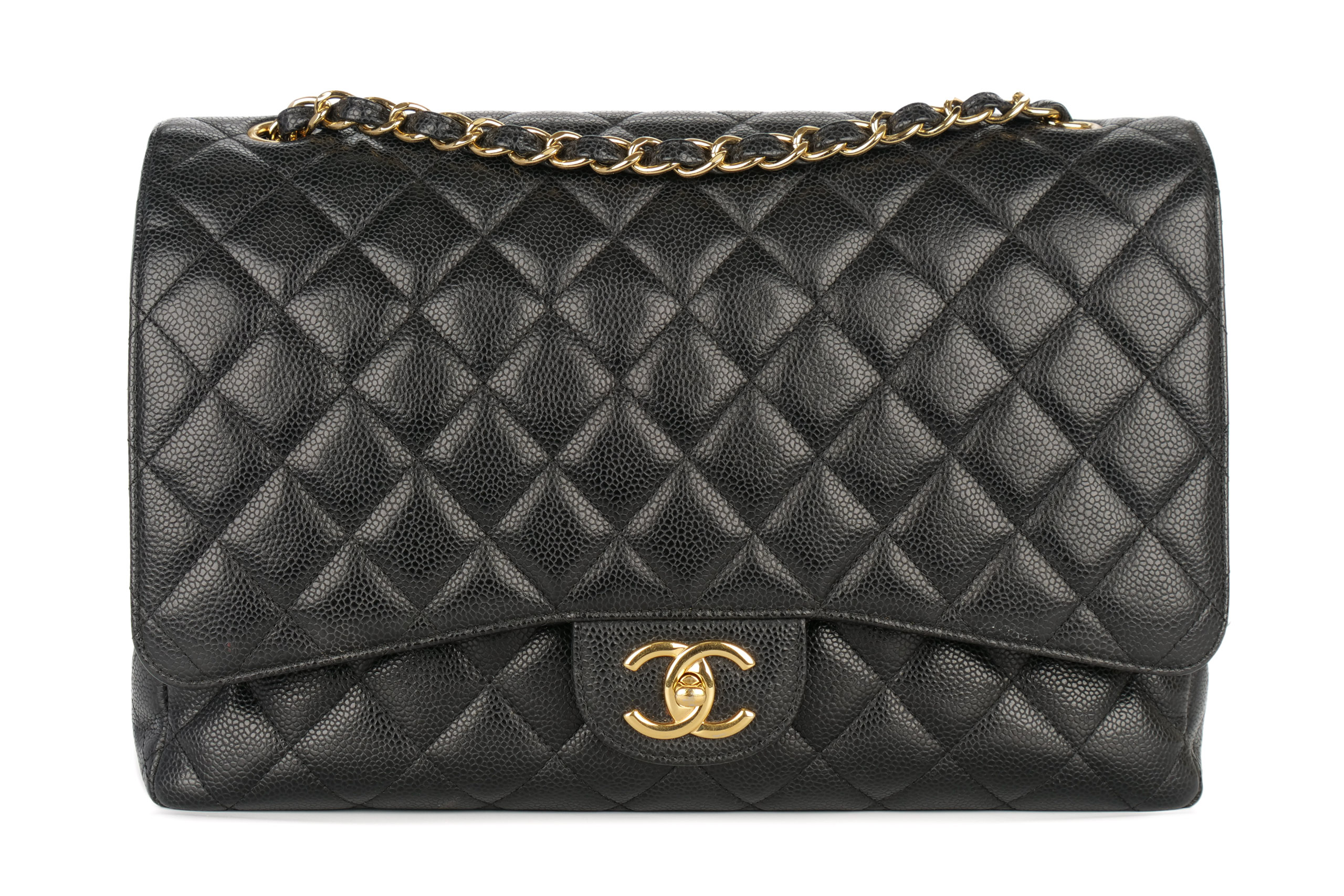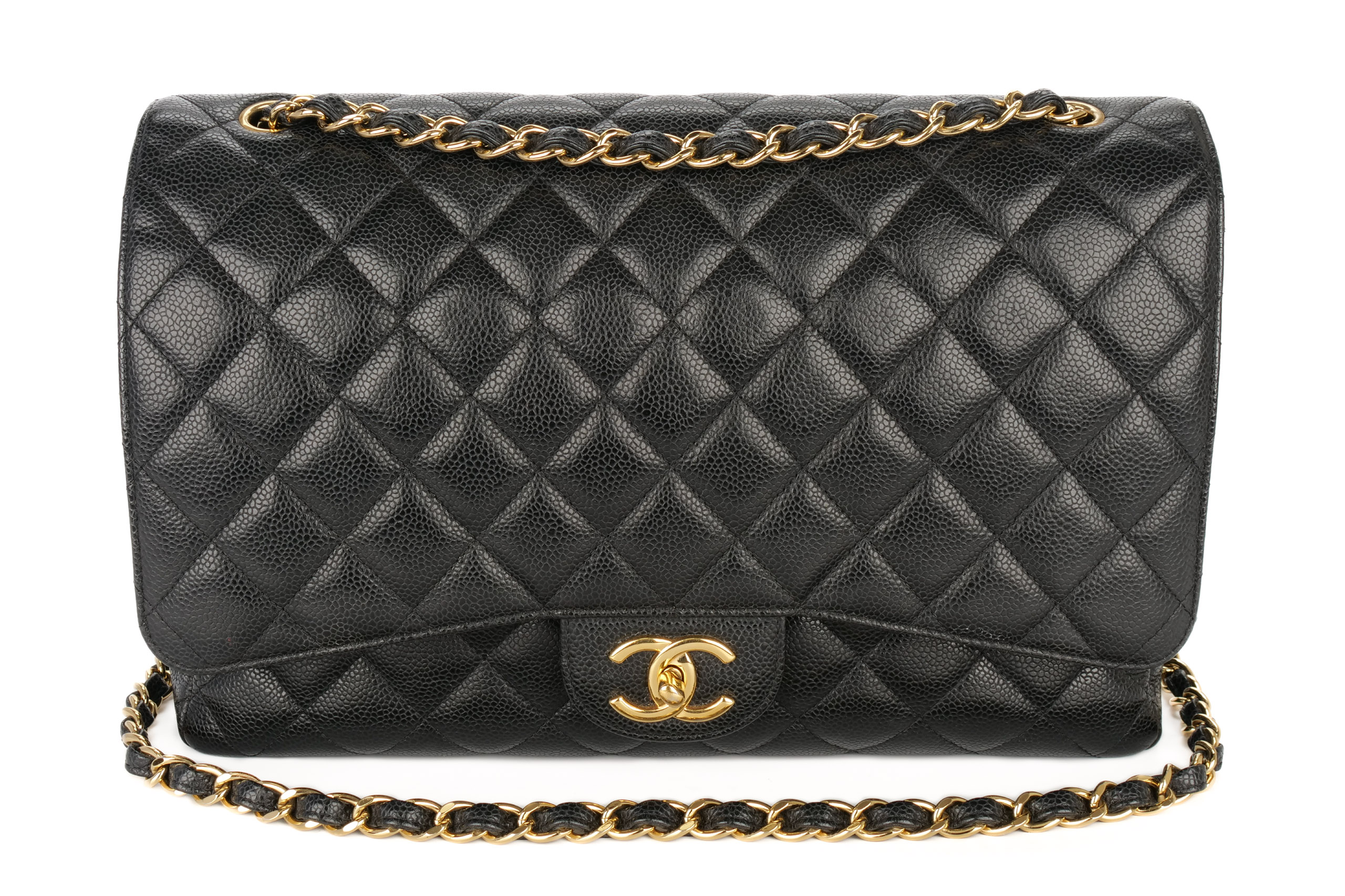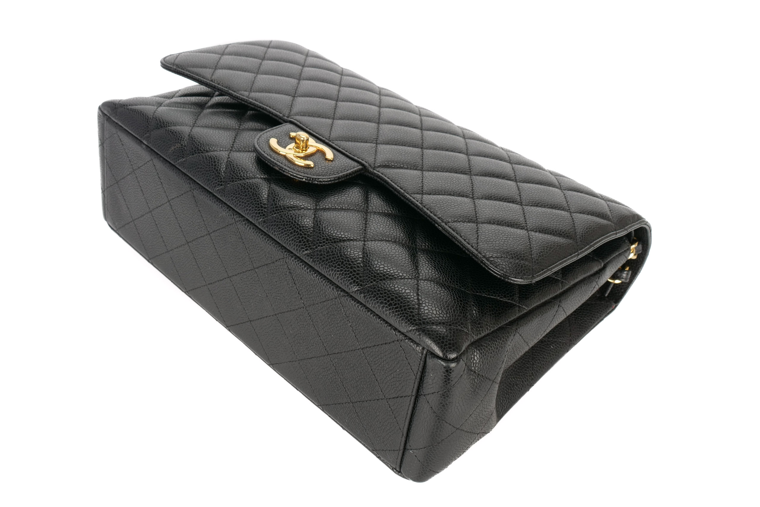 Chanel Maxi Double Classic Flap Black Caviar Gold Hardware / 20 Series 2014-2015, Preloved