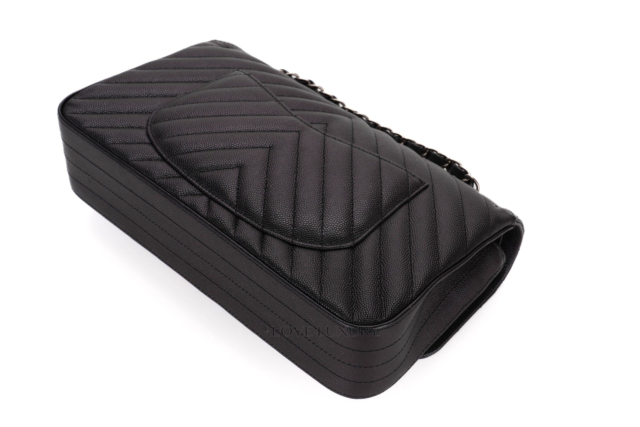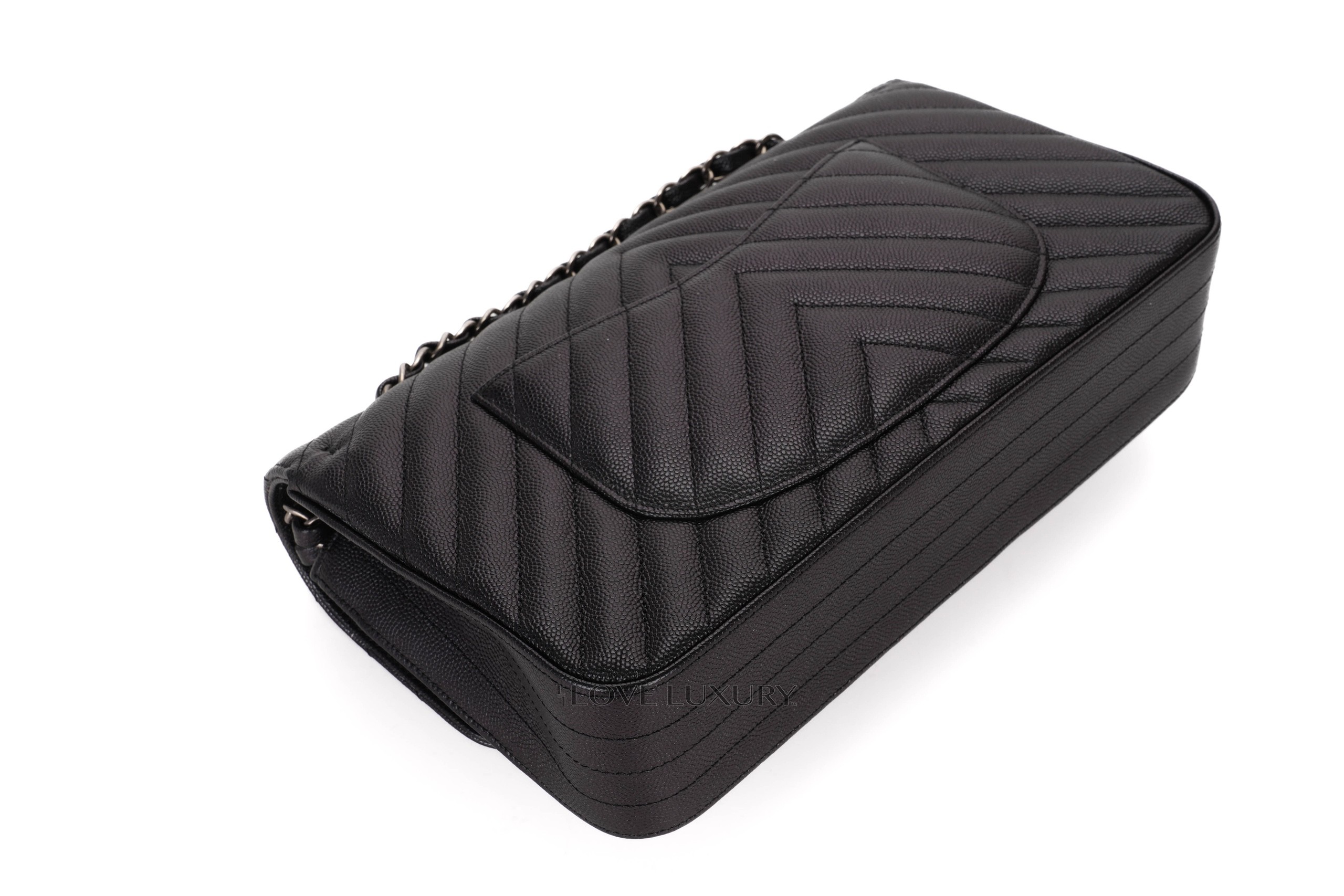 Chanel Medium Chevron Black Iridescent Caviar Ruthnium Hardware