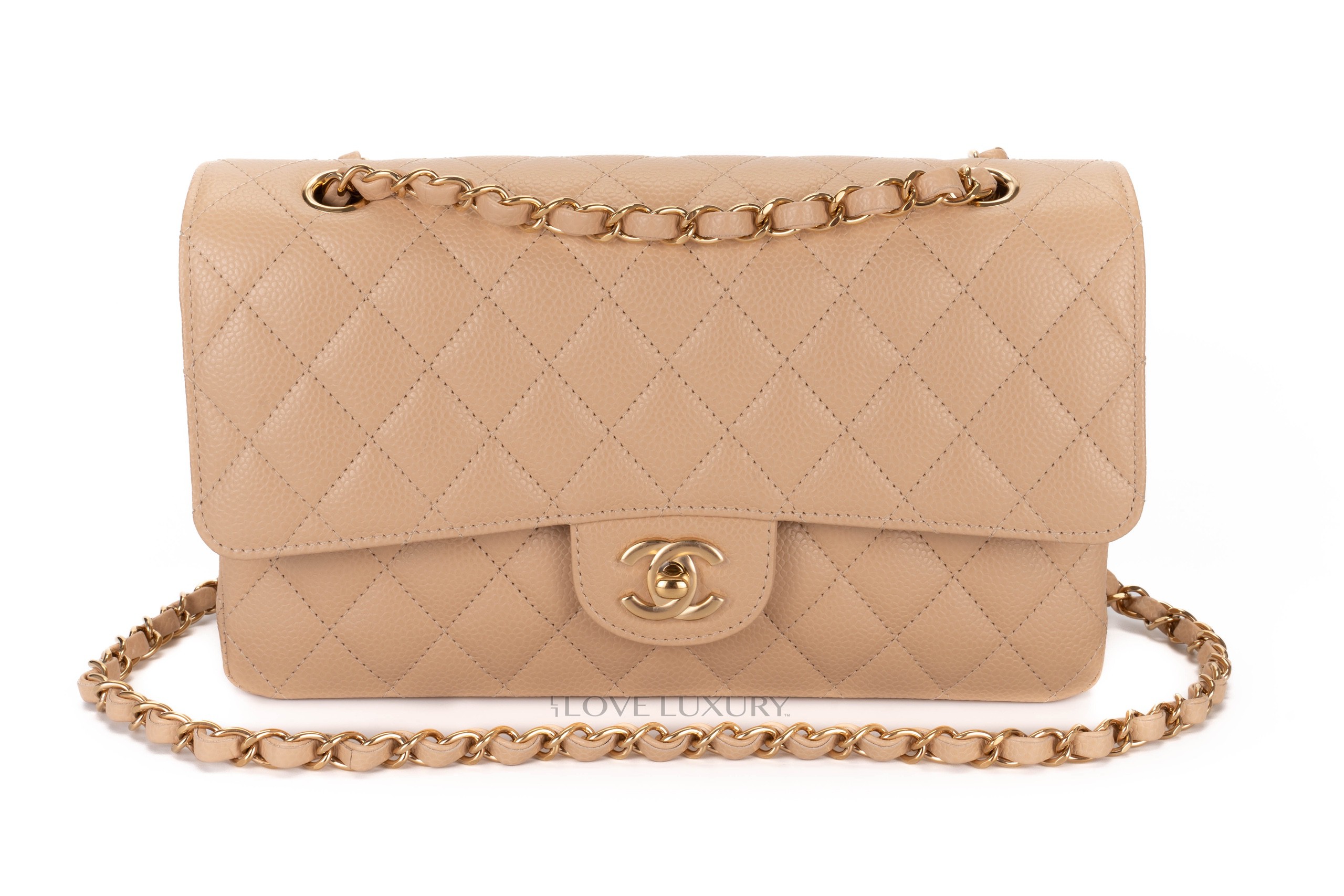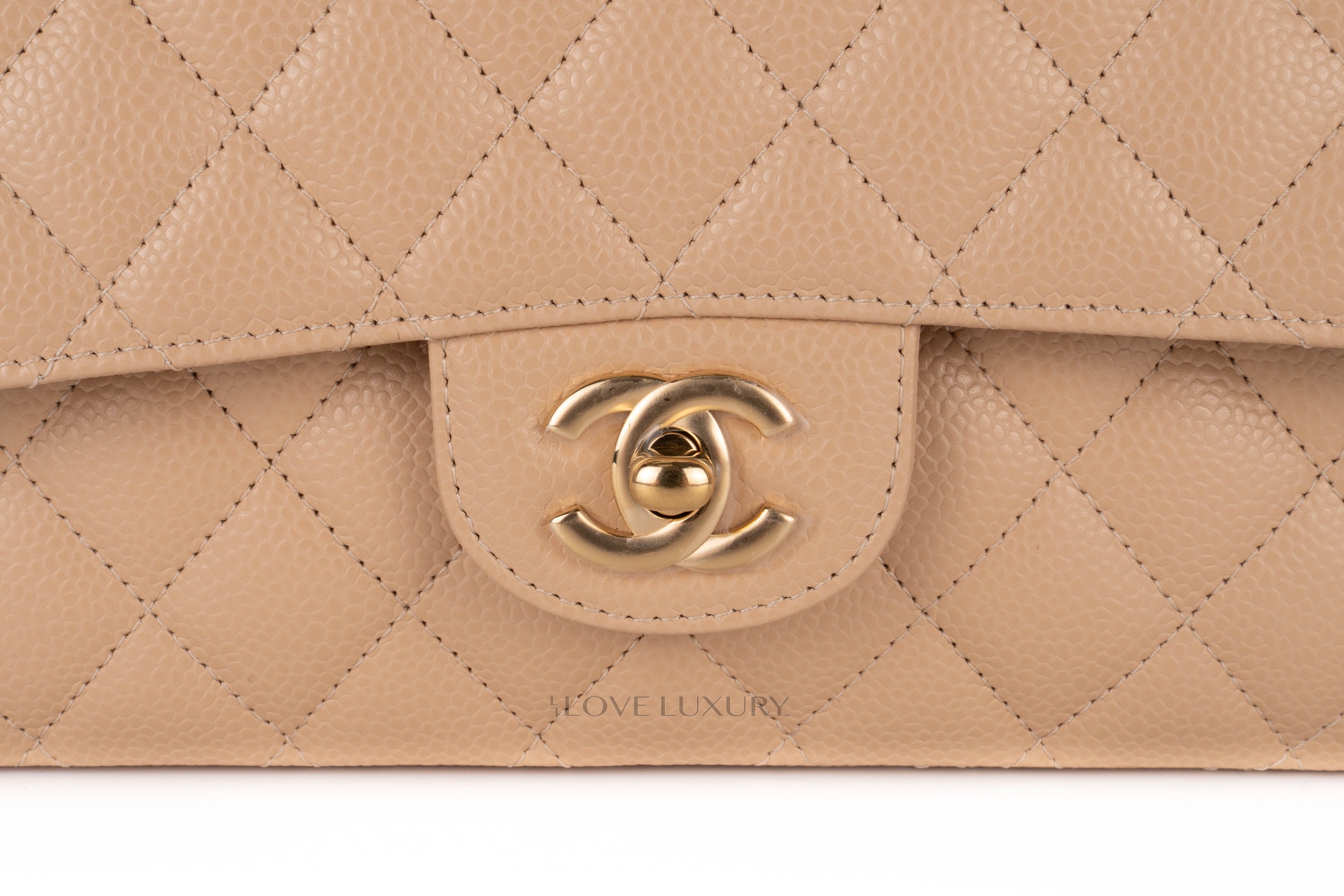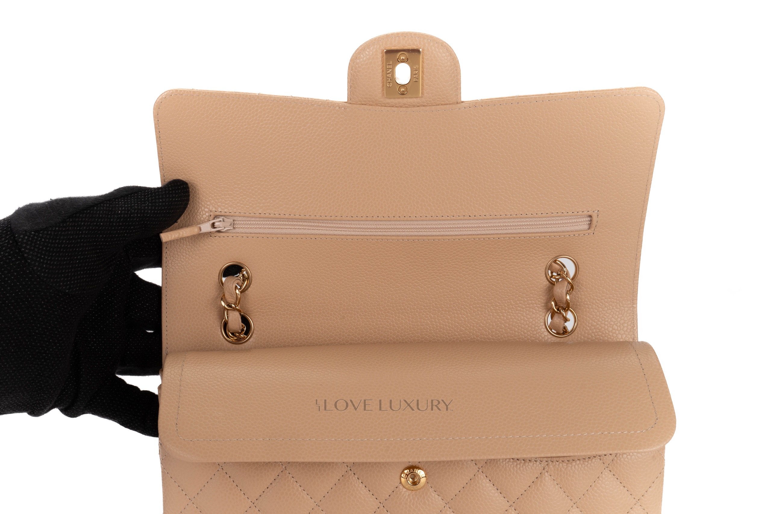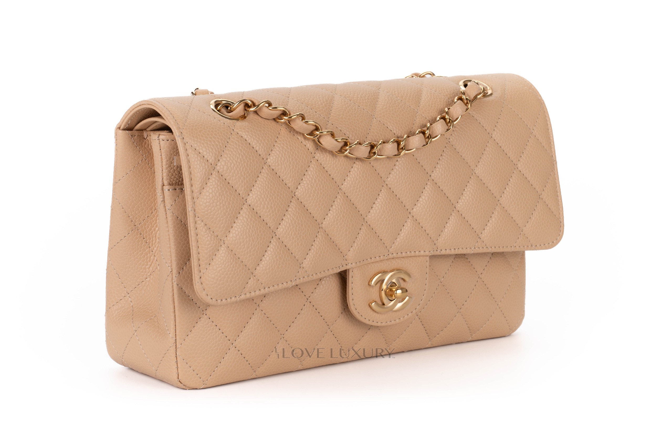 Chanel Medium Classic Flap Beige Gold Hardware / Microchipped 2022 Excellent Pre-Loved condition