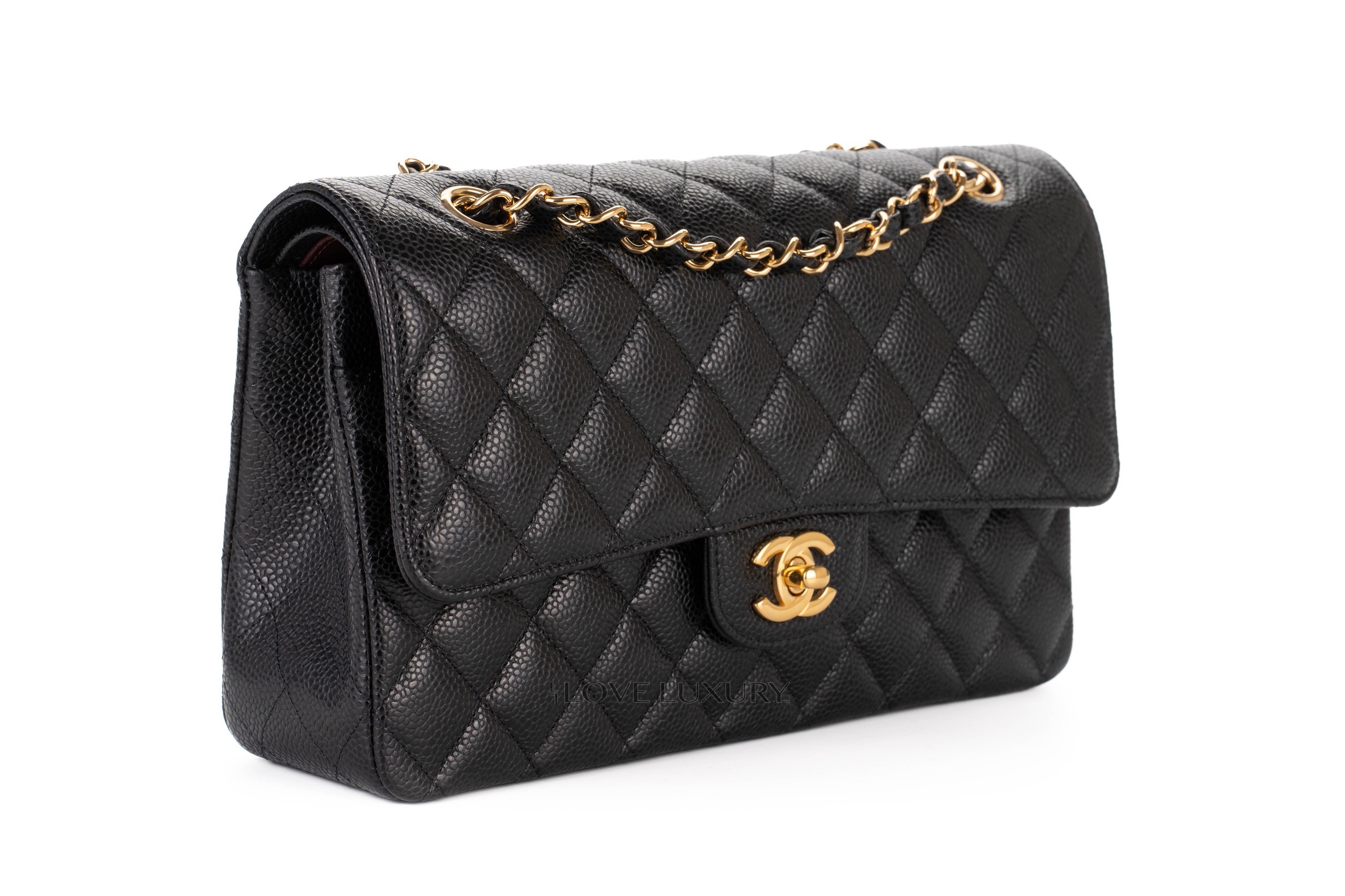 Chanel Medium Classic Flap Black Caviar Gold Hardware / Microchipped 2022 As New condition