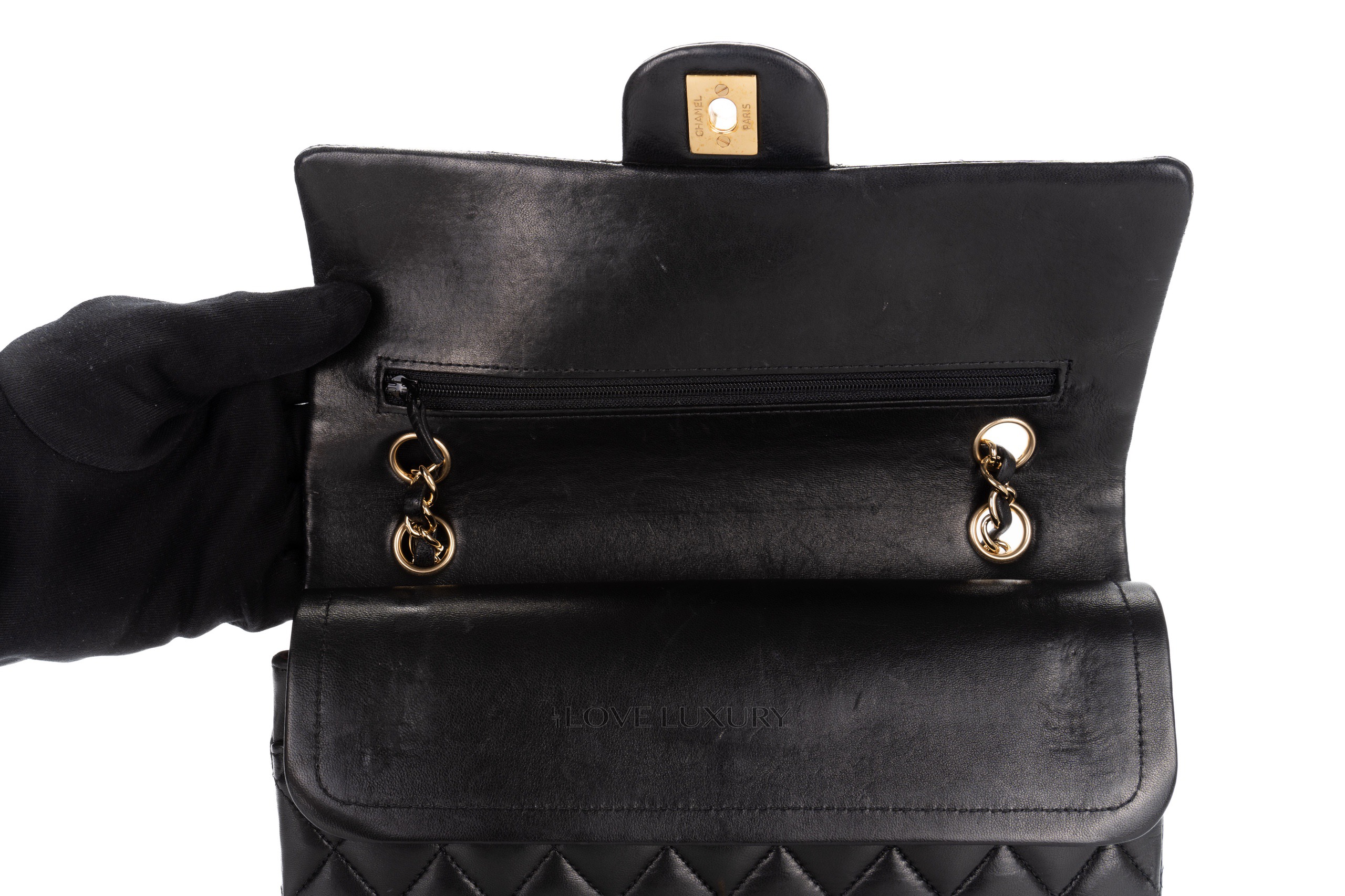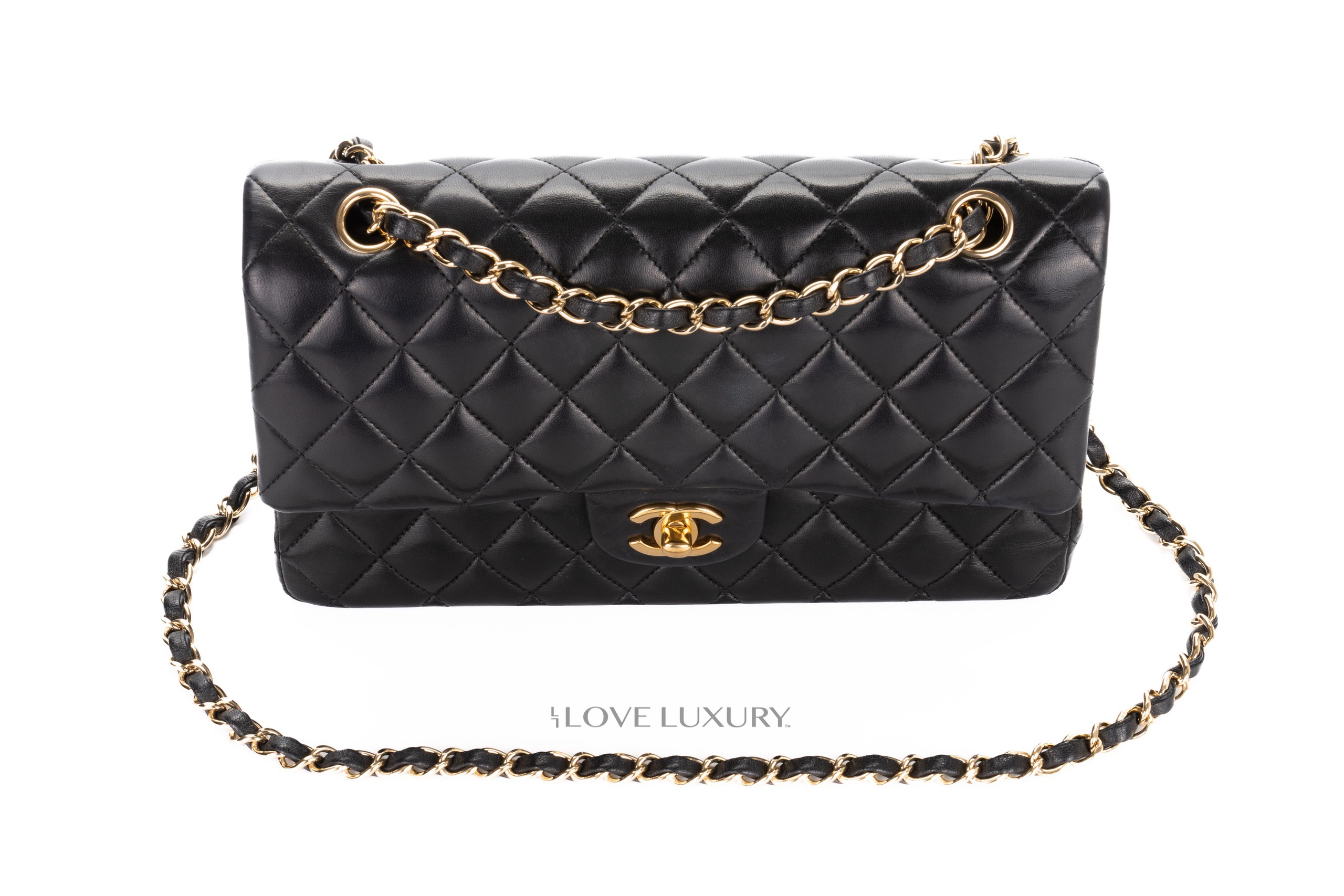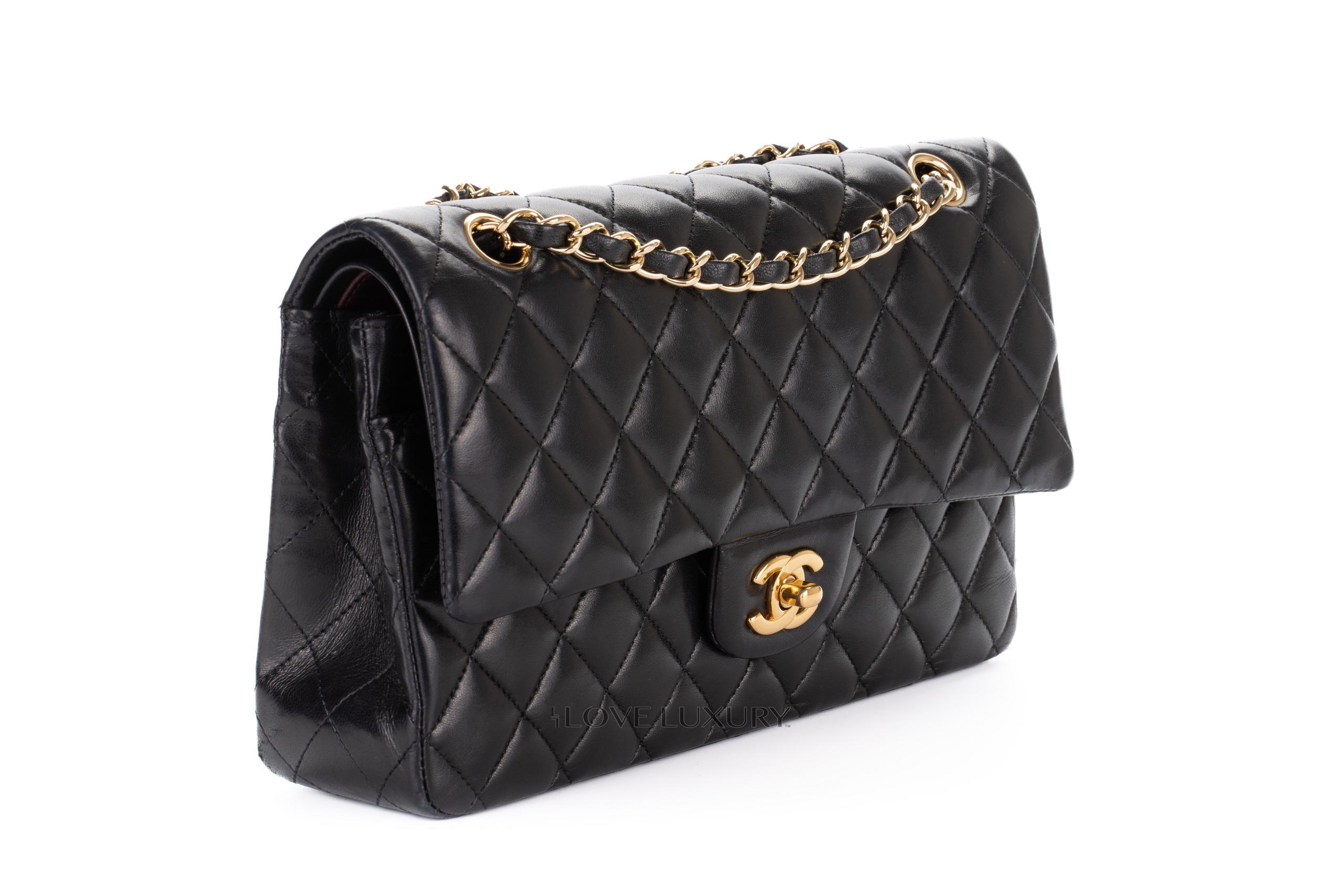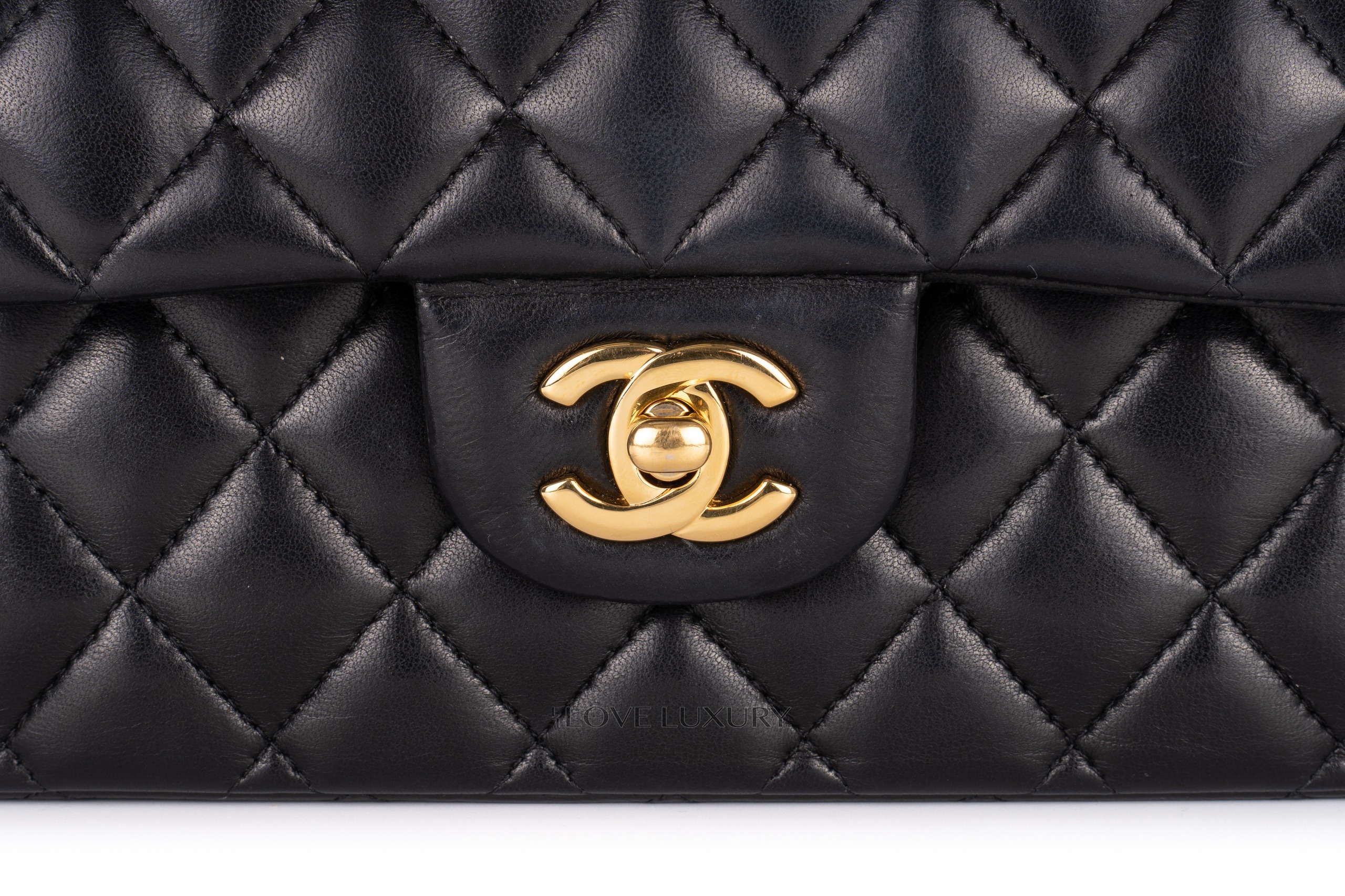 The medium classic flap is a wardrobe staple for any Chanel lover. Crafted from sumptious lambskin complimented with gold hardware. This is the classic colour way from chanel. Please refer to the images for detailed view of the condition.