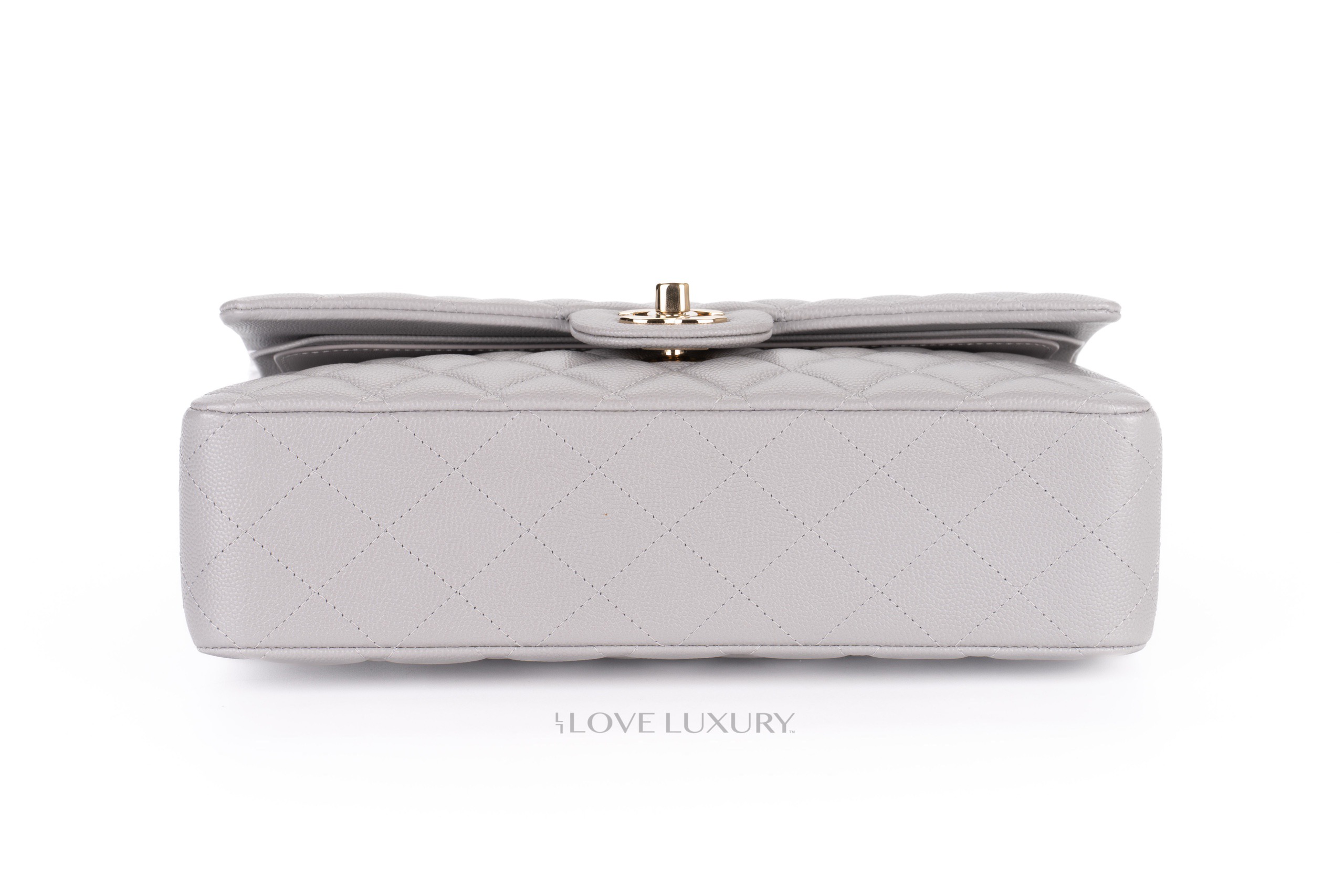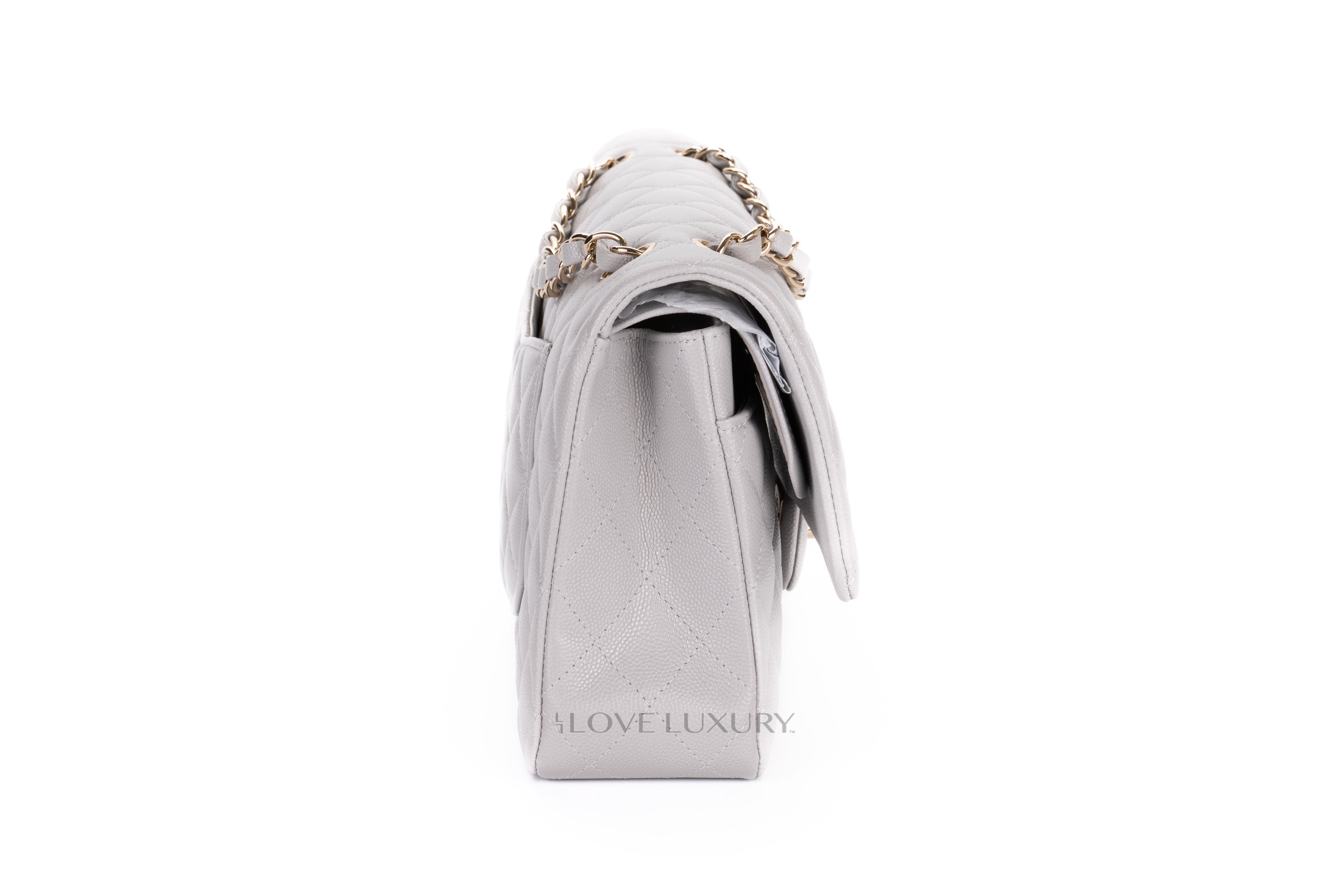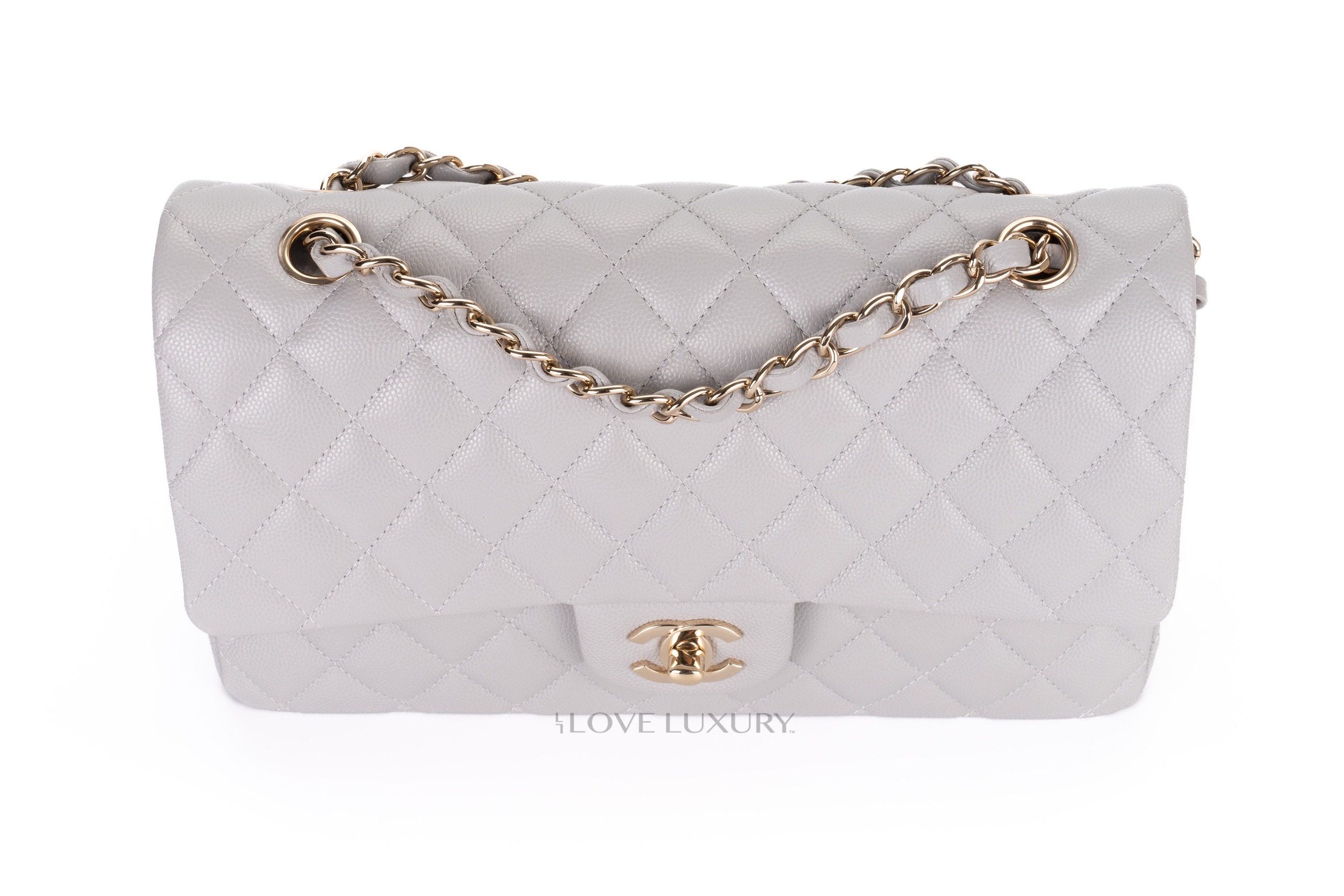 Chanel Medium Classic Flap Caviar Pastel Grey Champagne Hardware / Microchipped Box Fresh 2021 Receipt