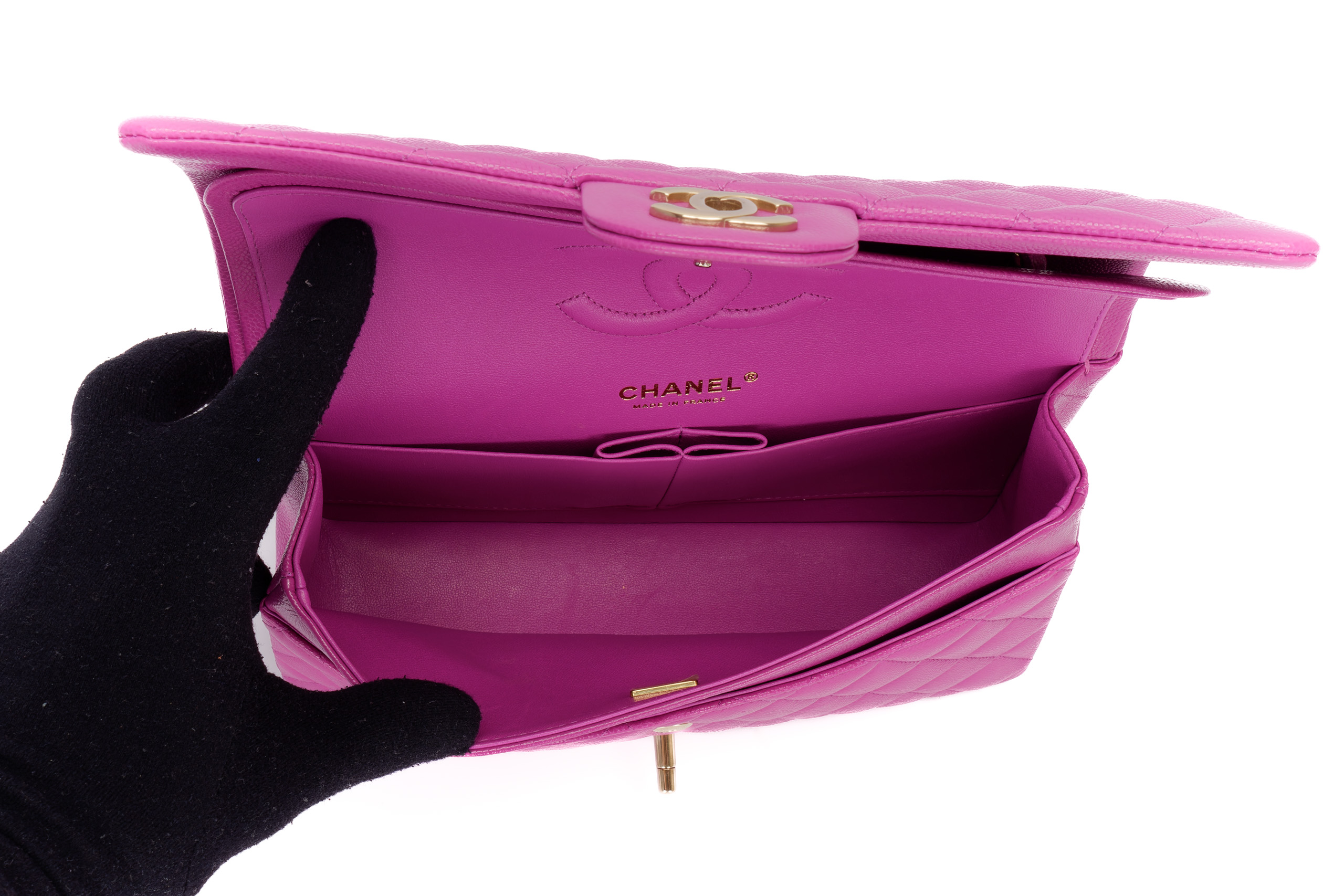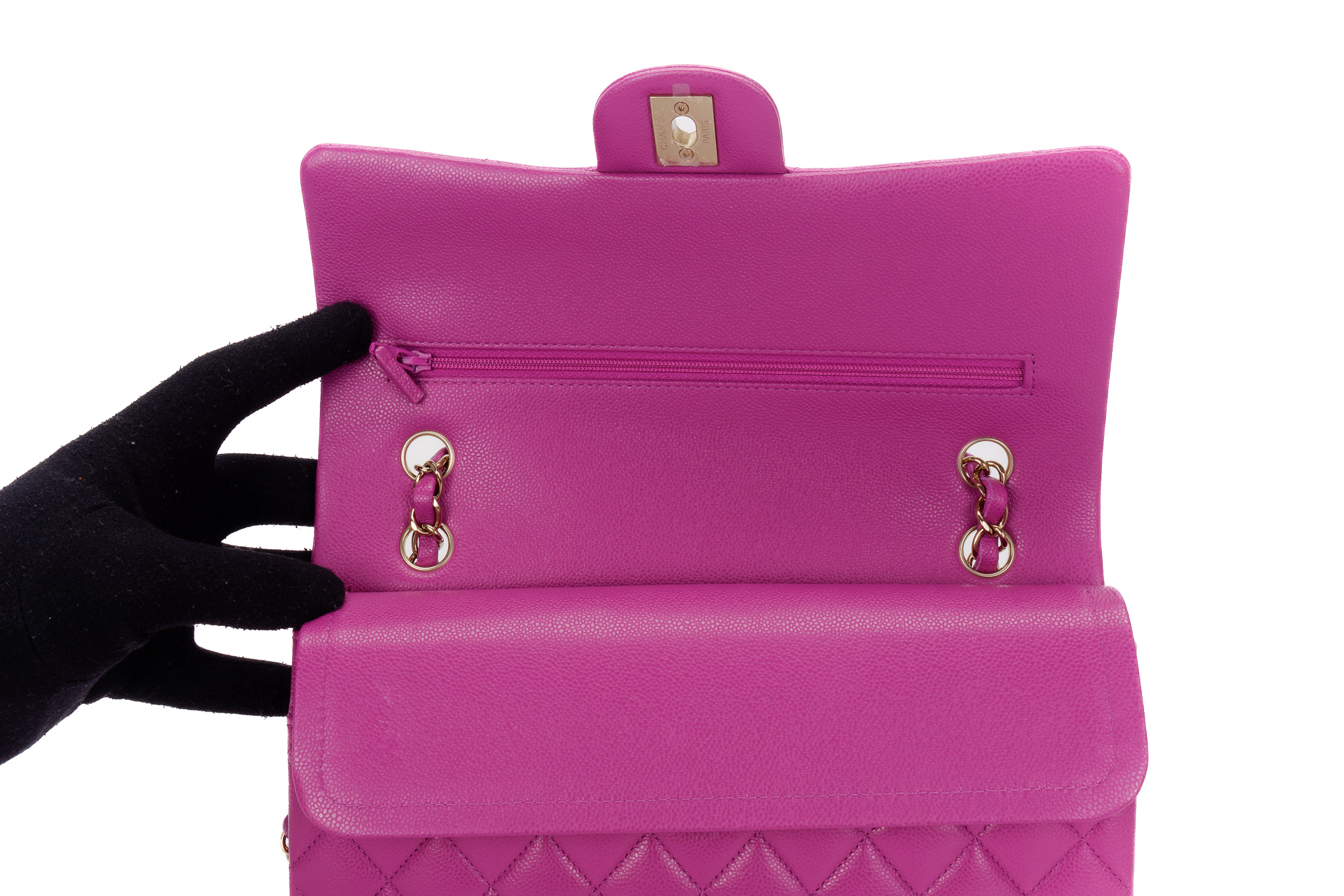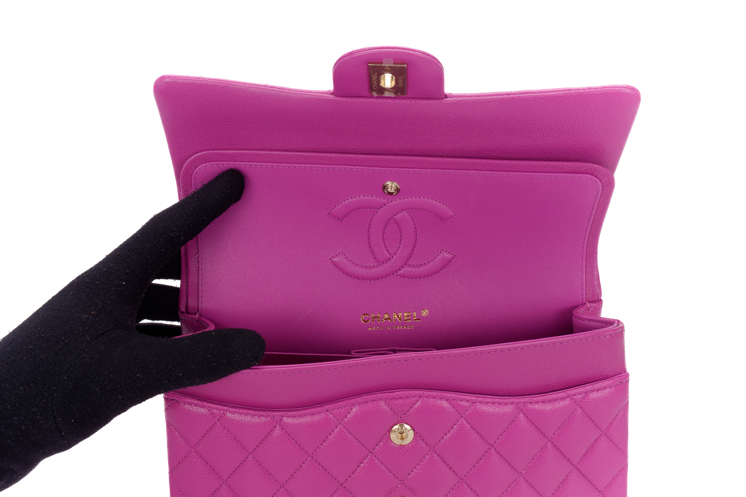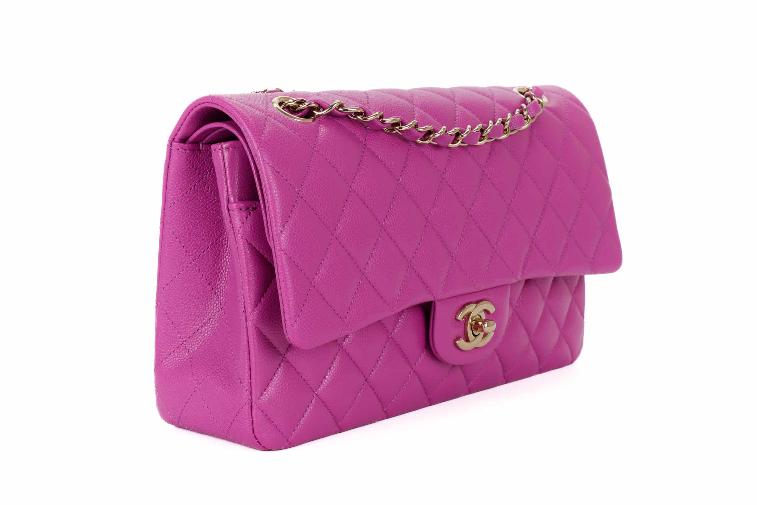 Chanel Medium Classic Flap Caviar Violet Light Gold Hardware / Microchipped 2023 As New condition