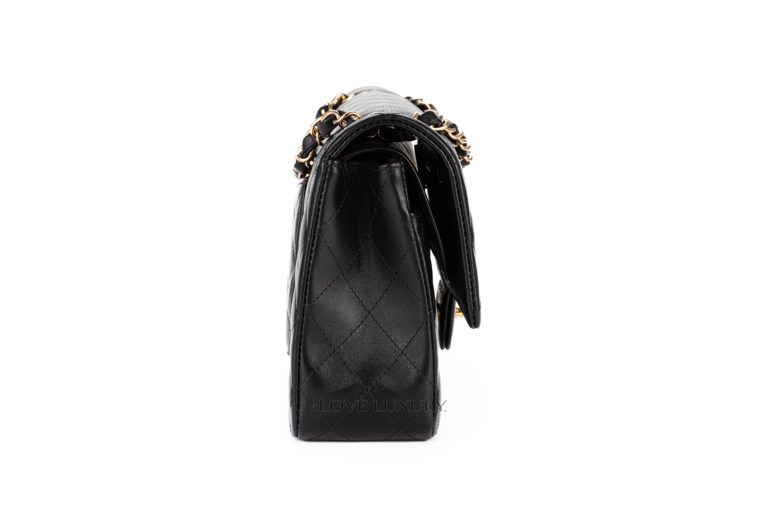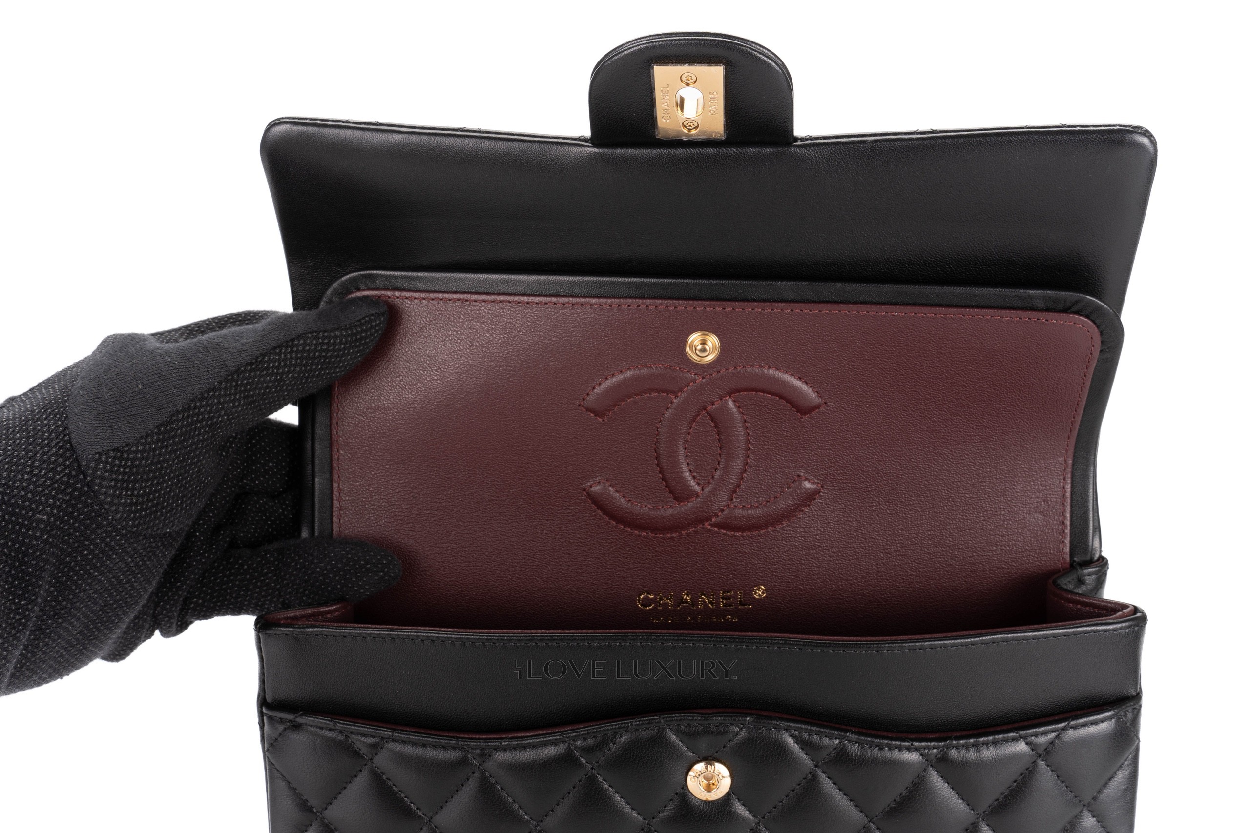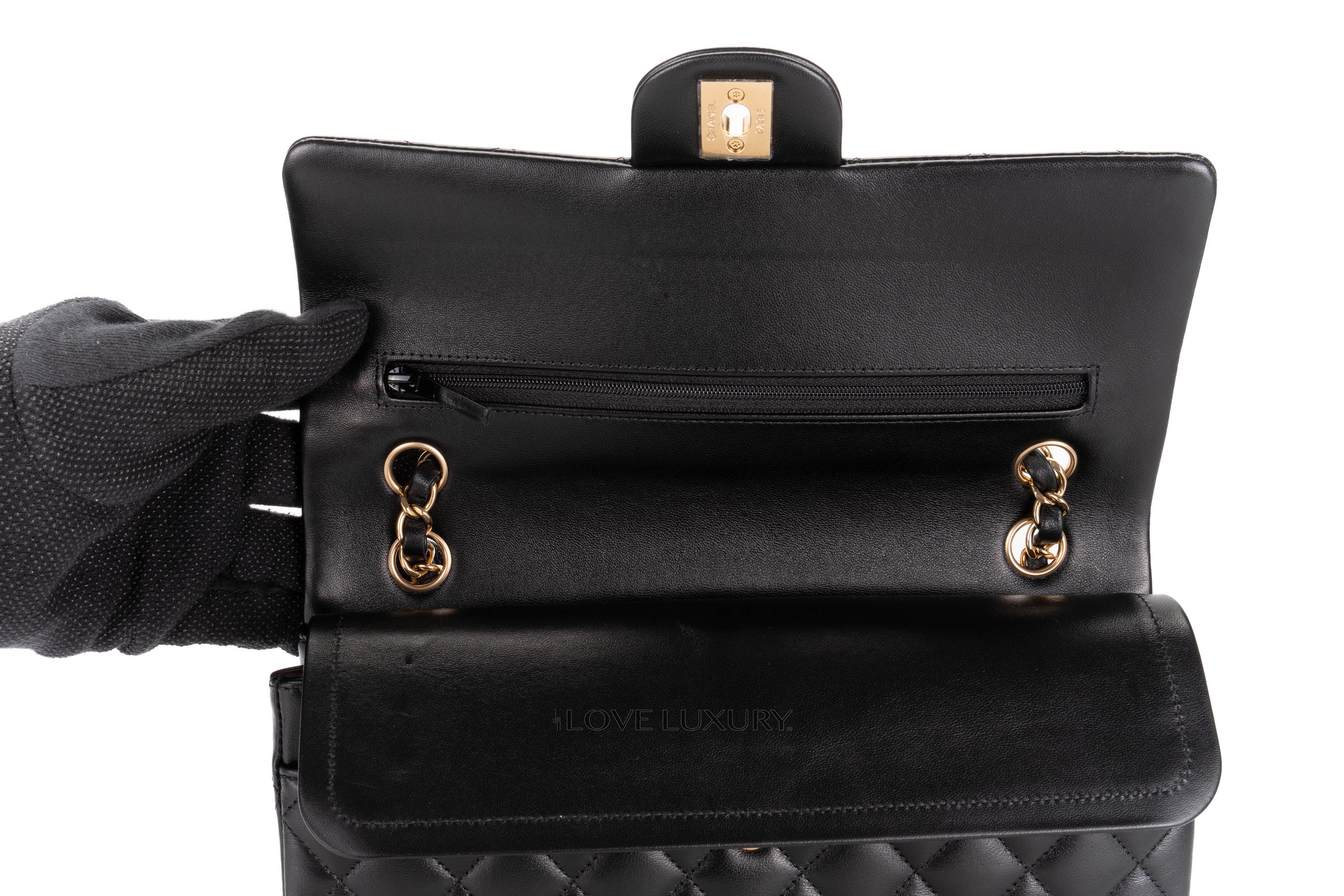 In 2021 Chanel introduced their new microchipped system, this was a counter fraud measure due to the high number of super fakes flooding the market. The microchips are a new and innovative to protect the brand and their much sought after models. This bag is a 2022 model that is in a box fresh condition. This is a black lambskin medium classic flap with gold hardware. It comes as a full set with the receipt and authentication.